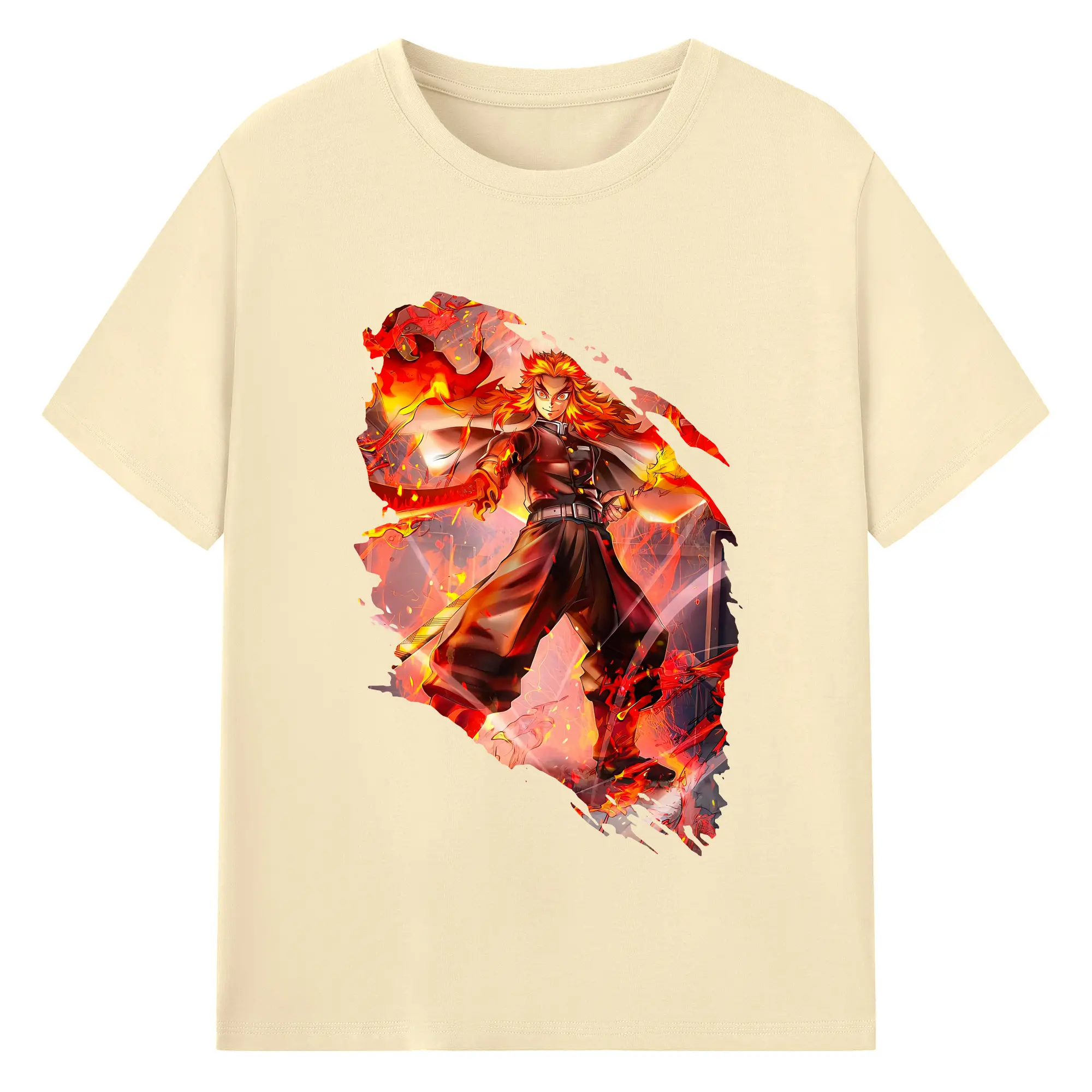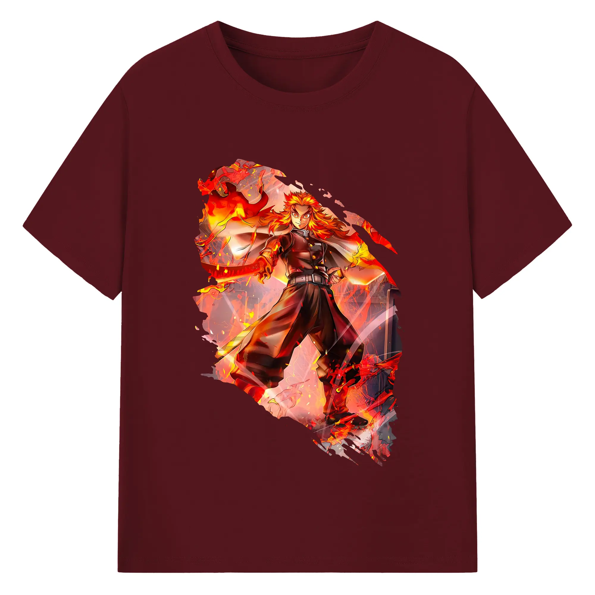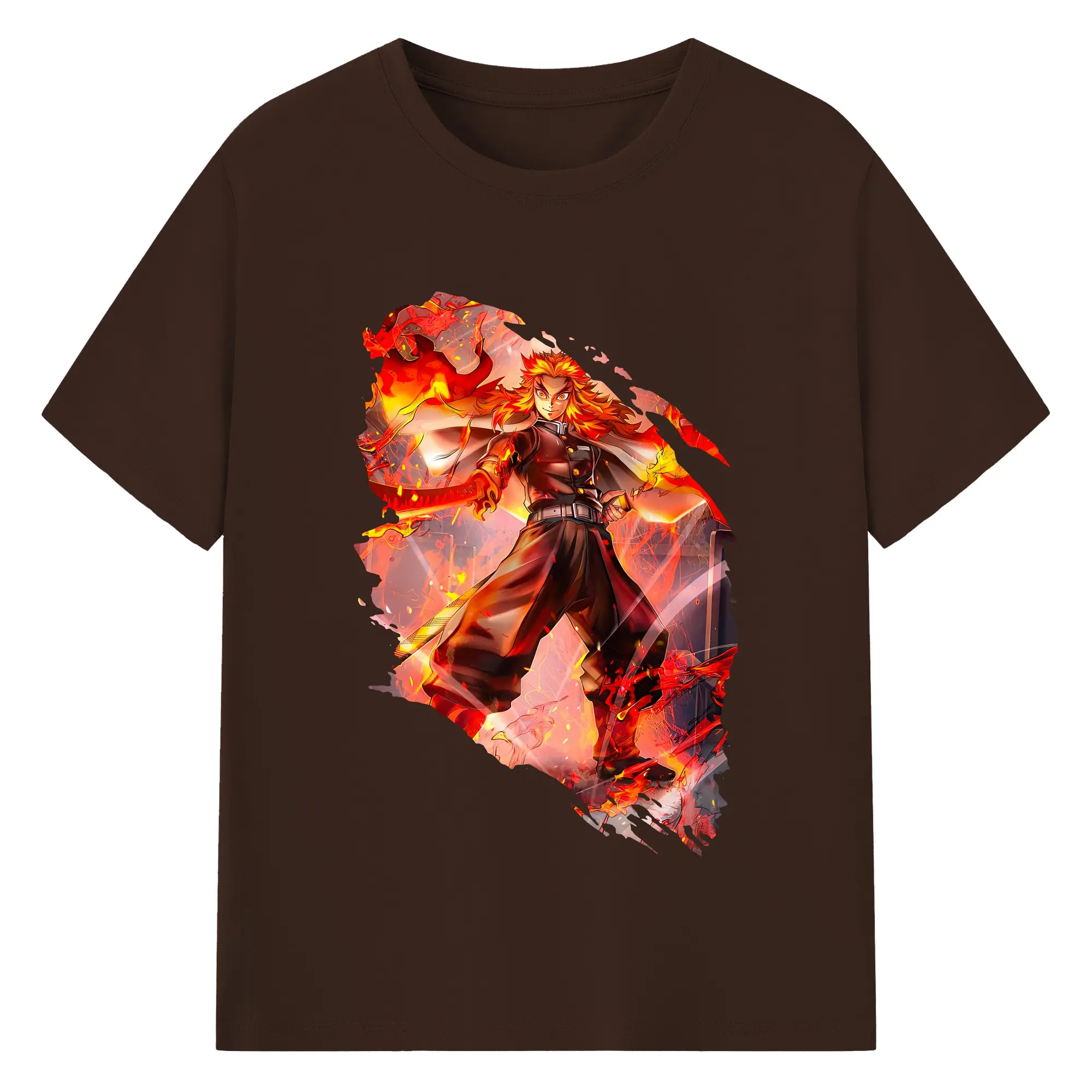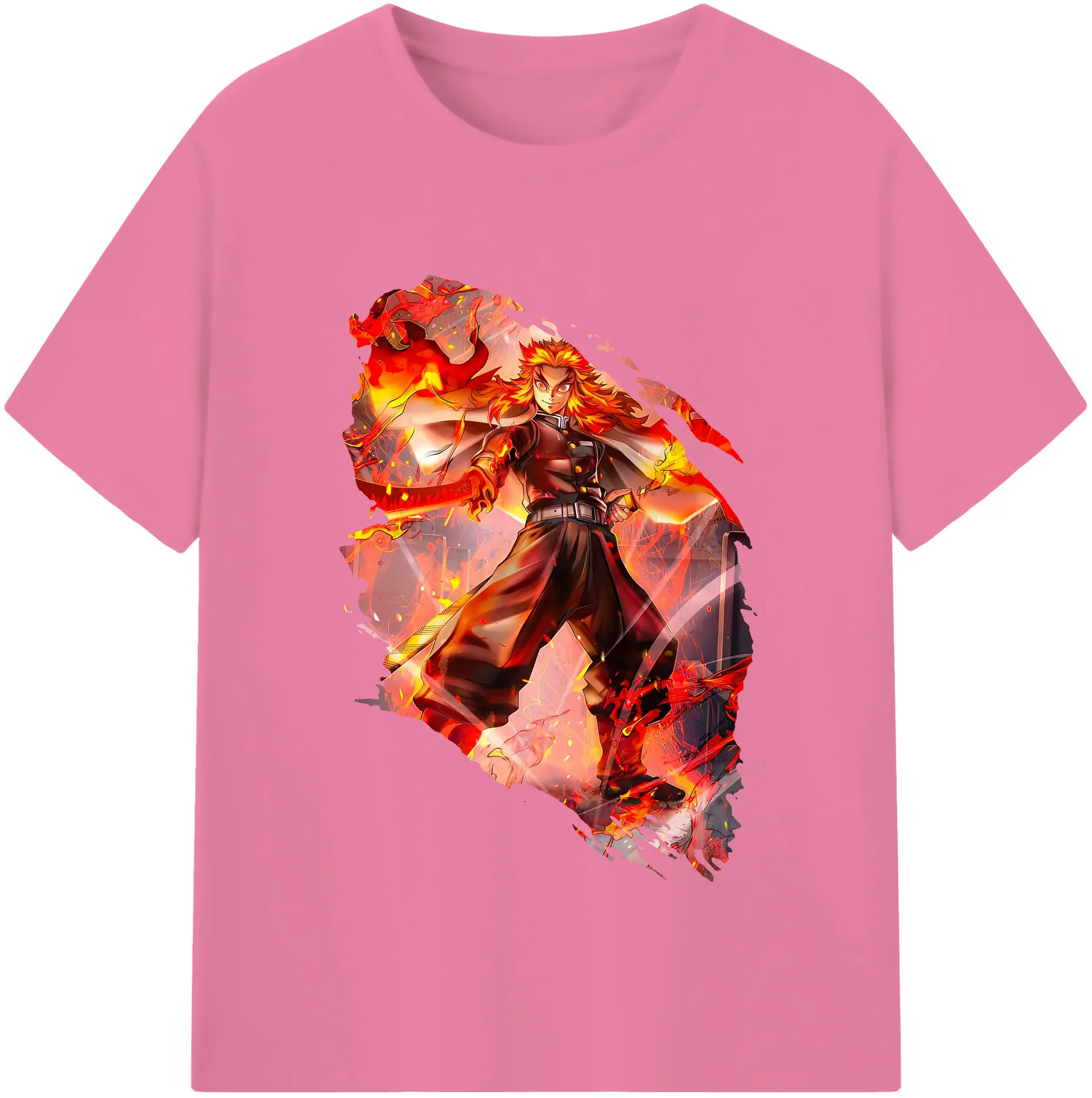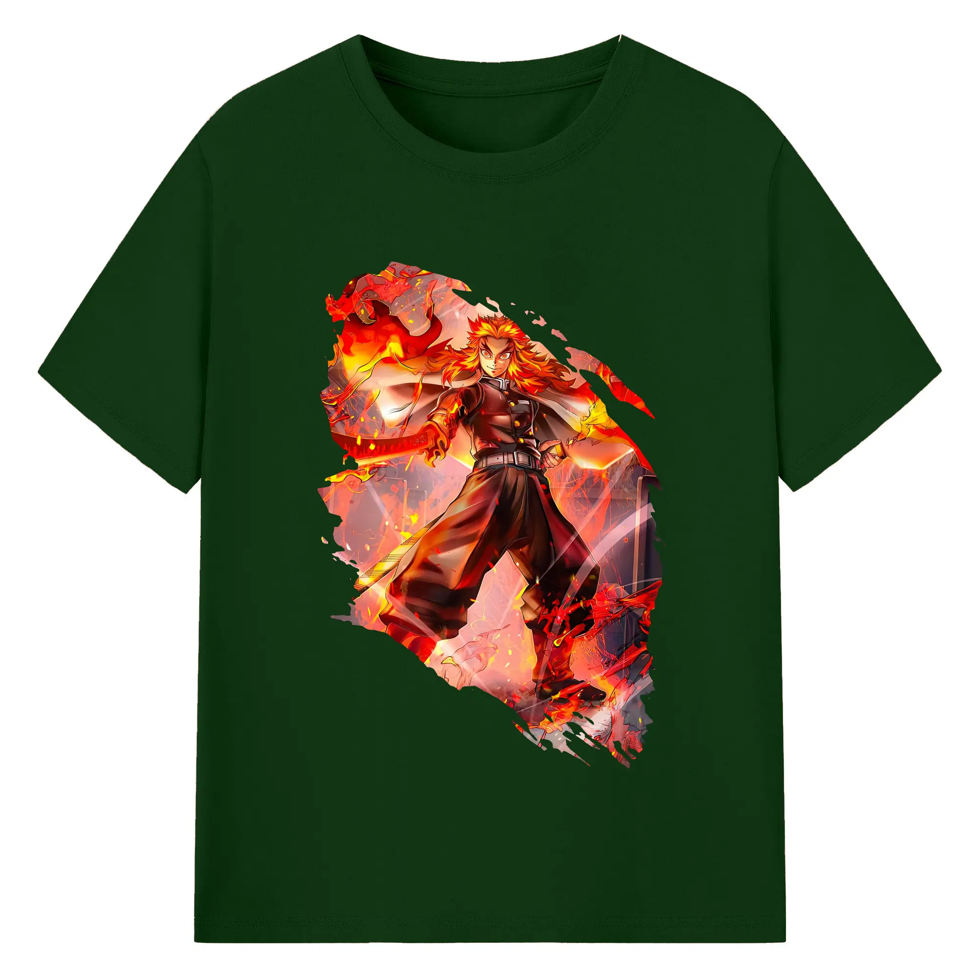 鬼滅の刃 グッズ,煉獄 杏寿郎 - 綿100% キッズTシャツ ・ フロントプリント ・ 快適 通気性 ・ スポーツ カジュアル 散歩用