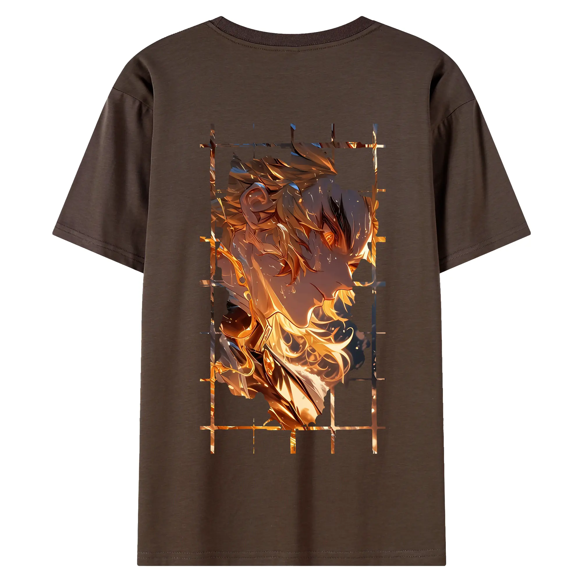 鬼滅の刃 グッズ,煉獄 杏寿郎 - 綿100% 半袖Tシャツ ・ フロントプリント ・ 快適 通気性 ・ 日常使い 散歩 スポーツ用