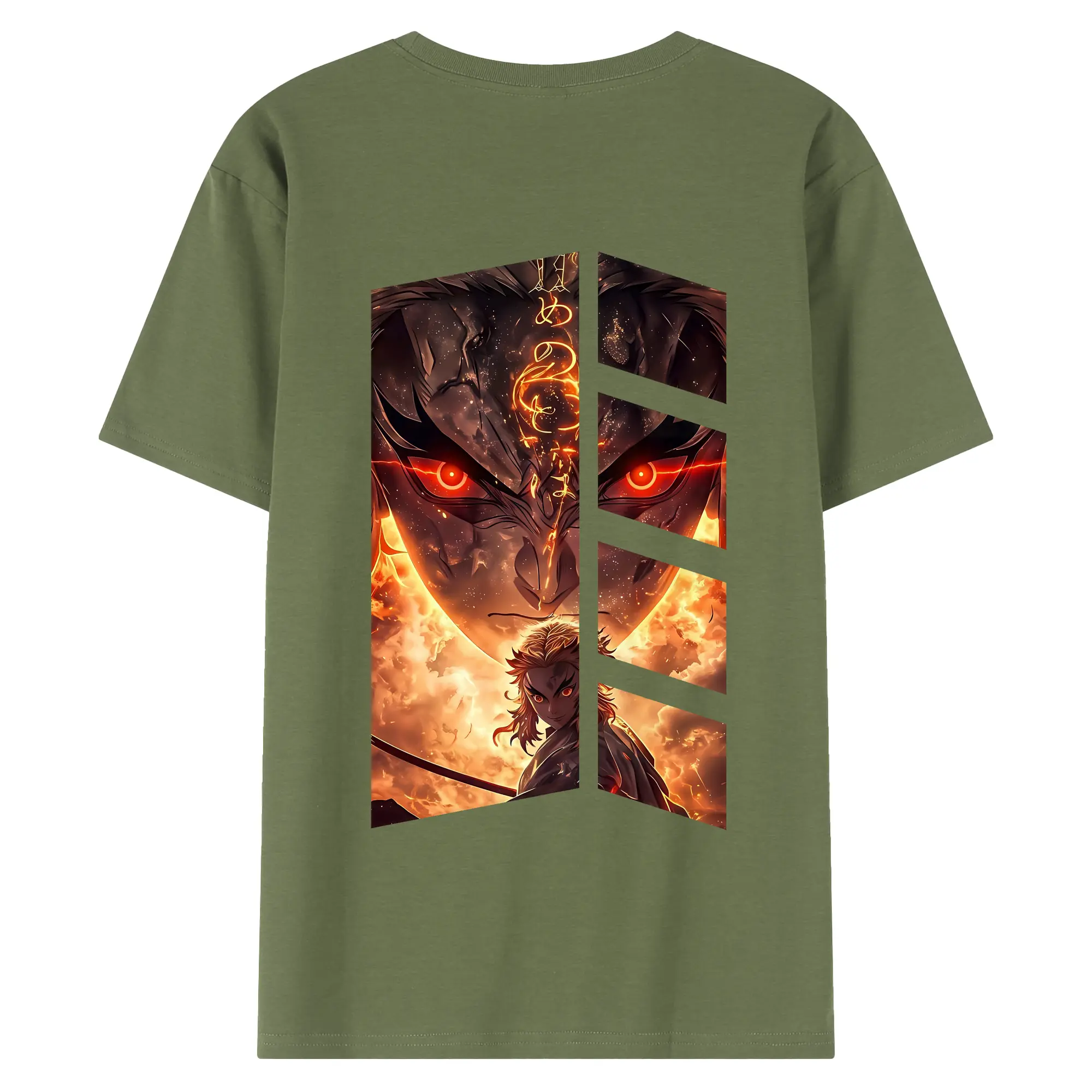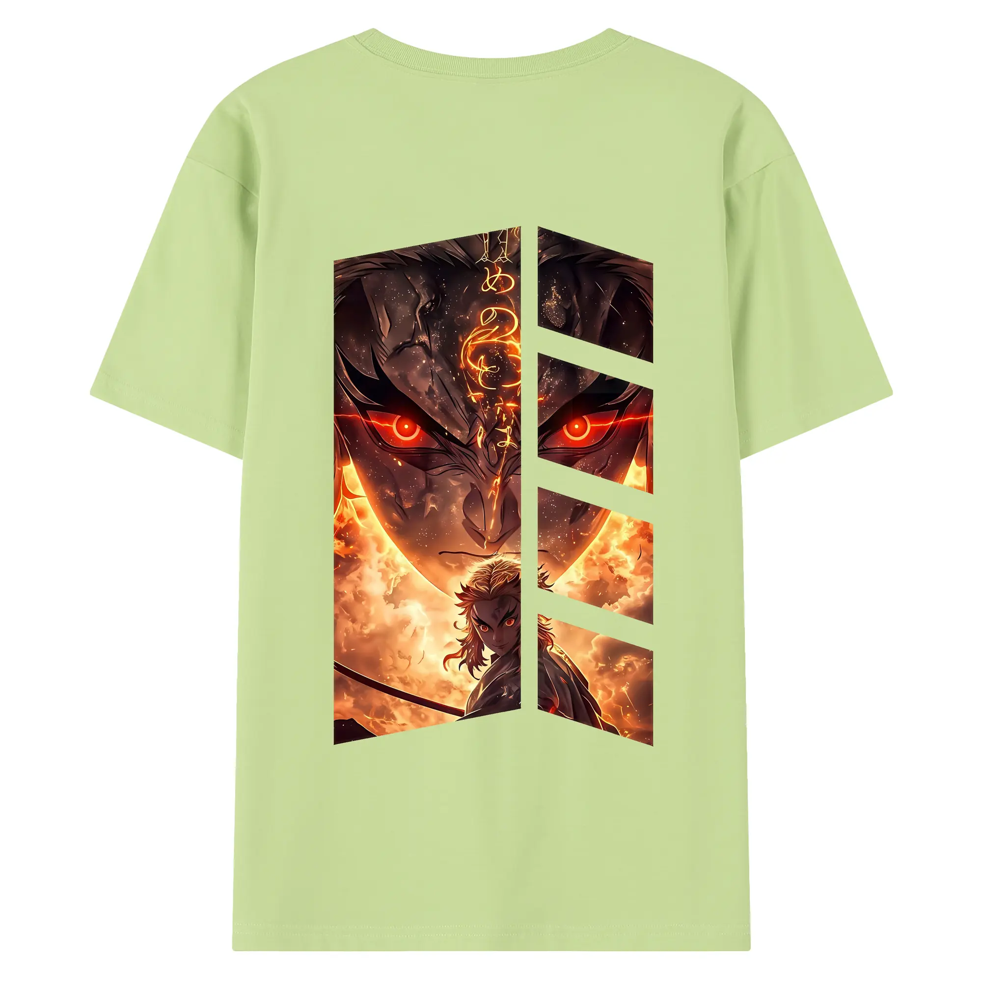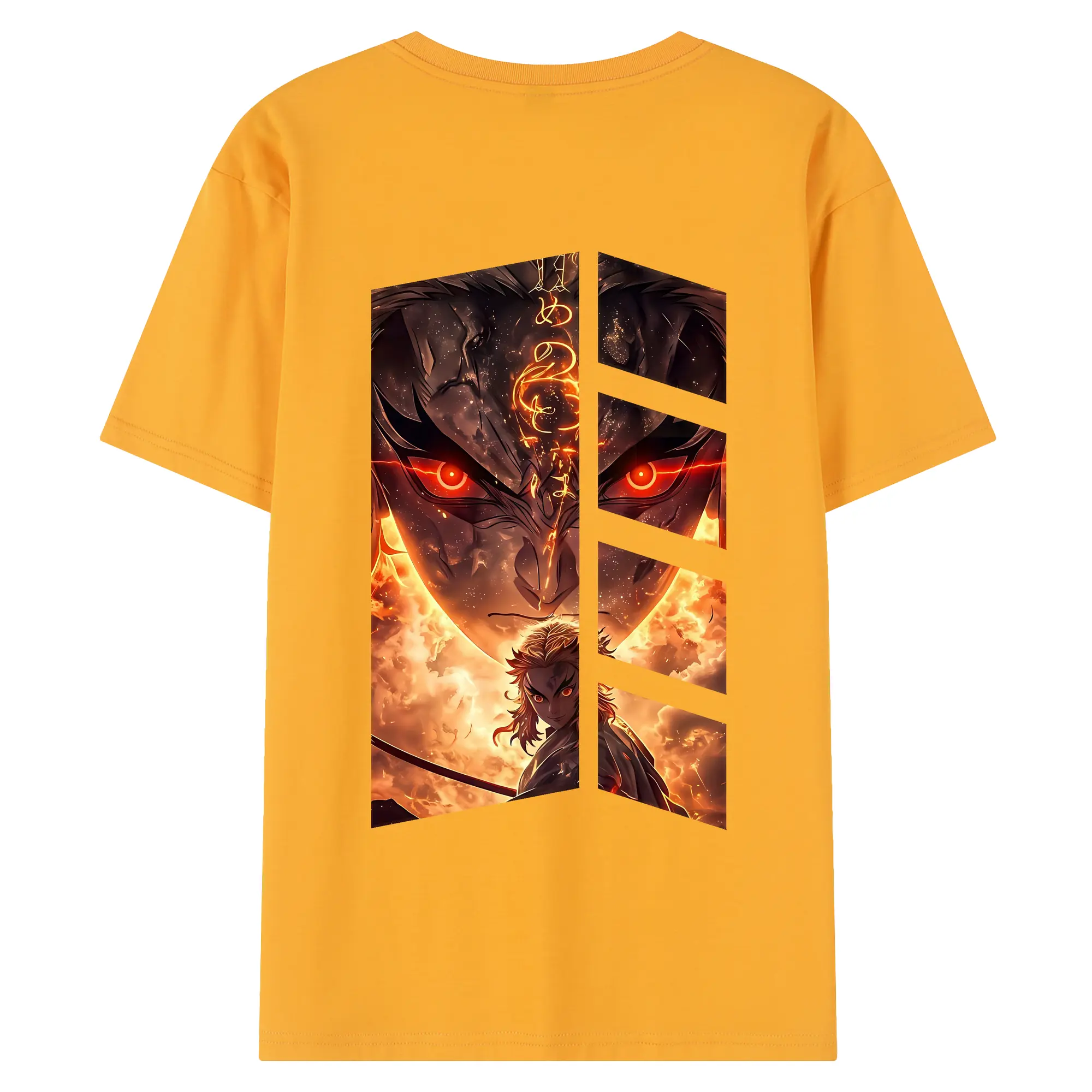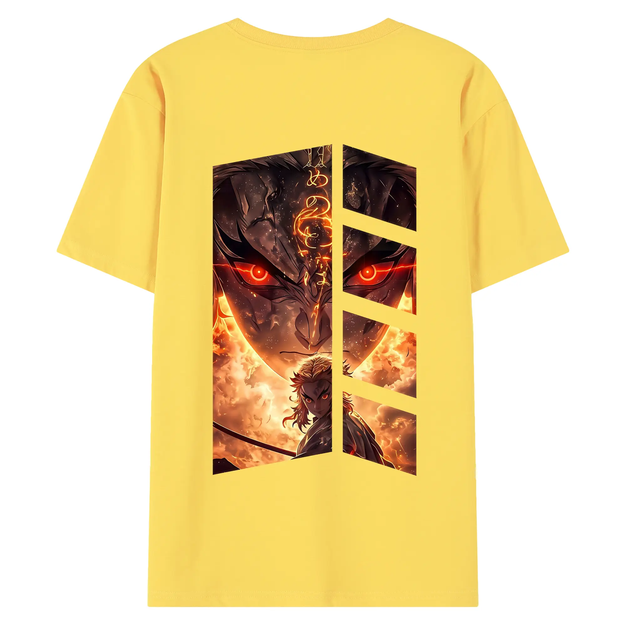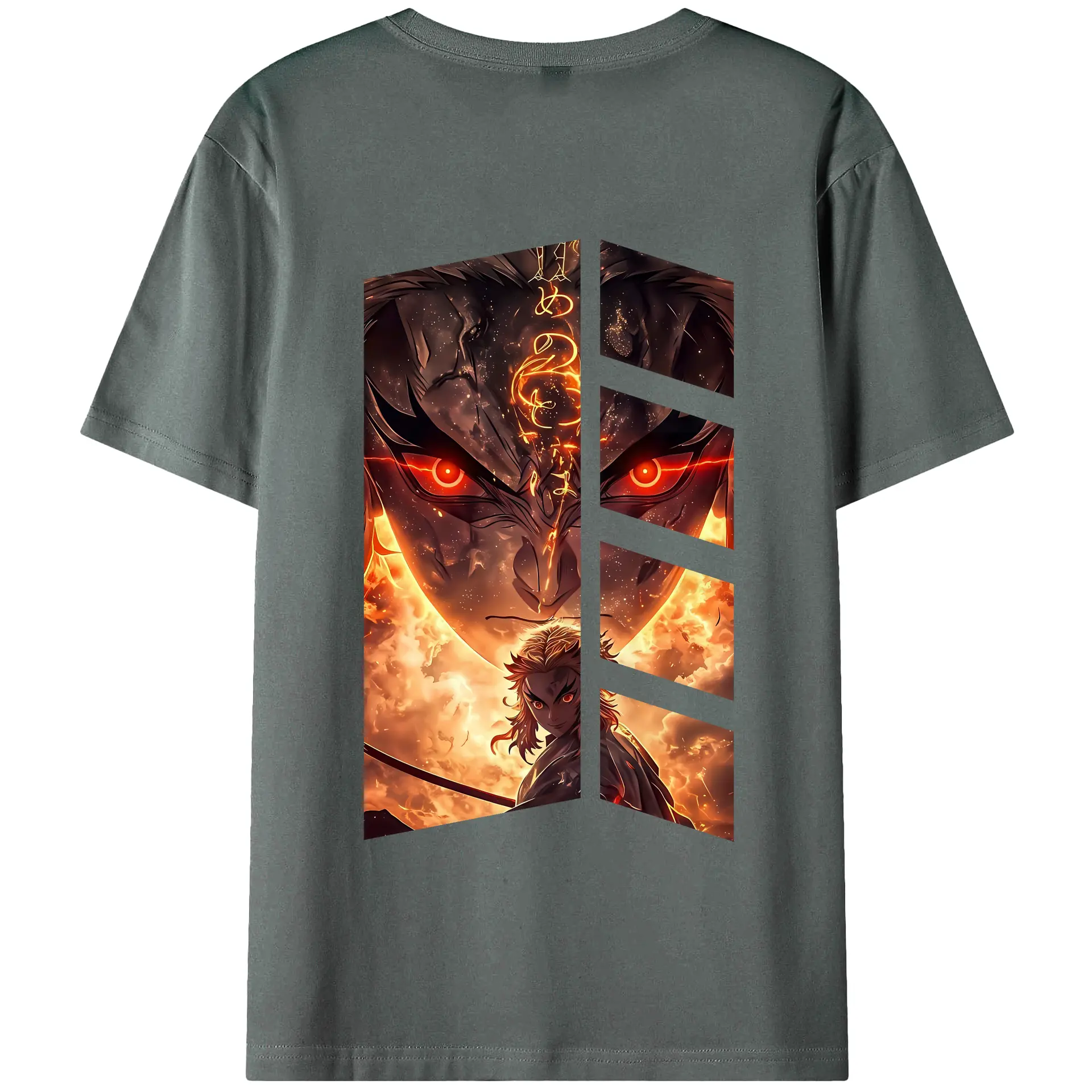 鬼滅の刃 グッズ,煉獄 杏寿郎 - 綿100% 半袖Tシャツ ・ フロントプリント ・ 快適 通気性 ・ 日常使い 散歩 スポーツ用