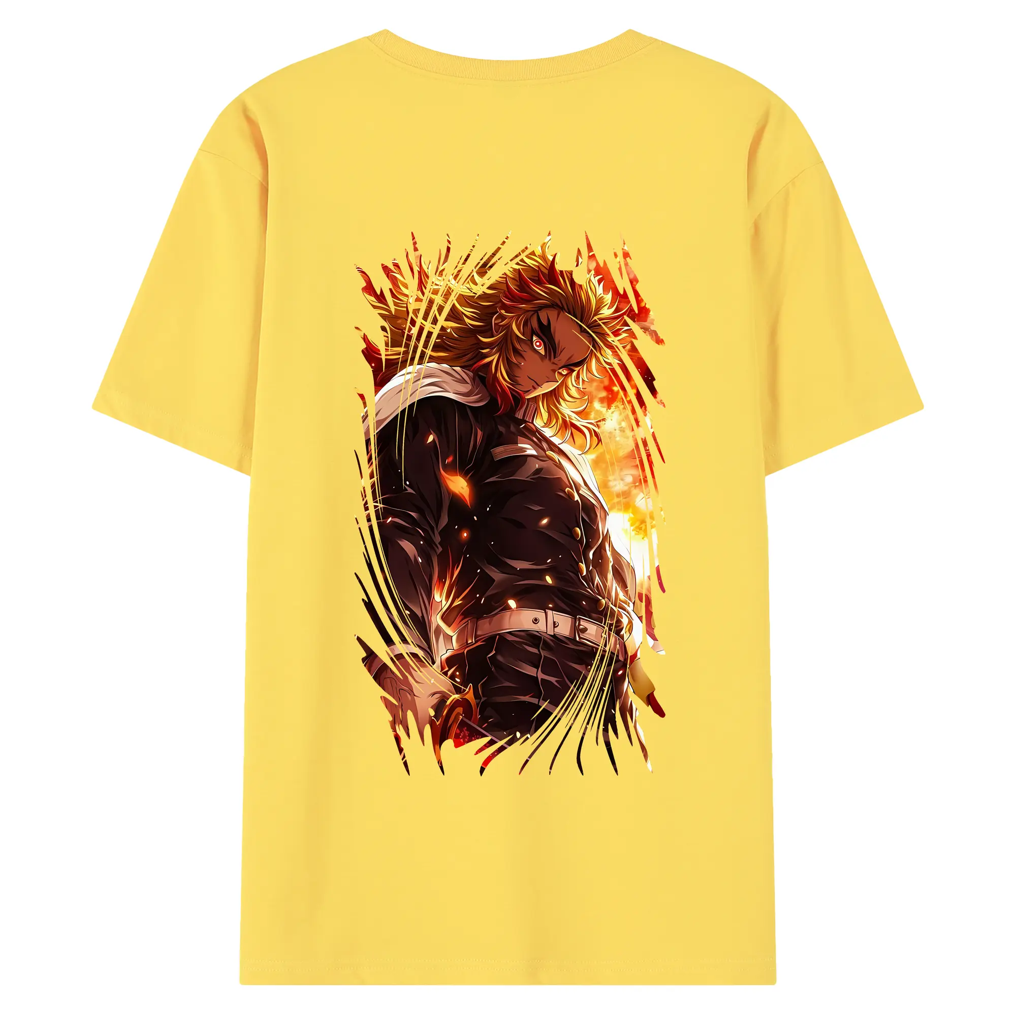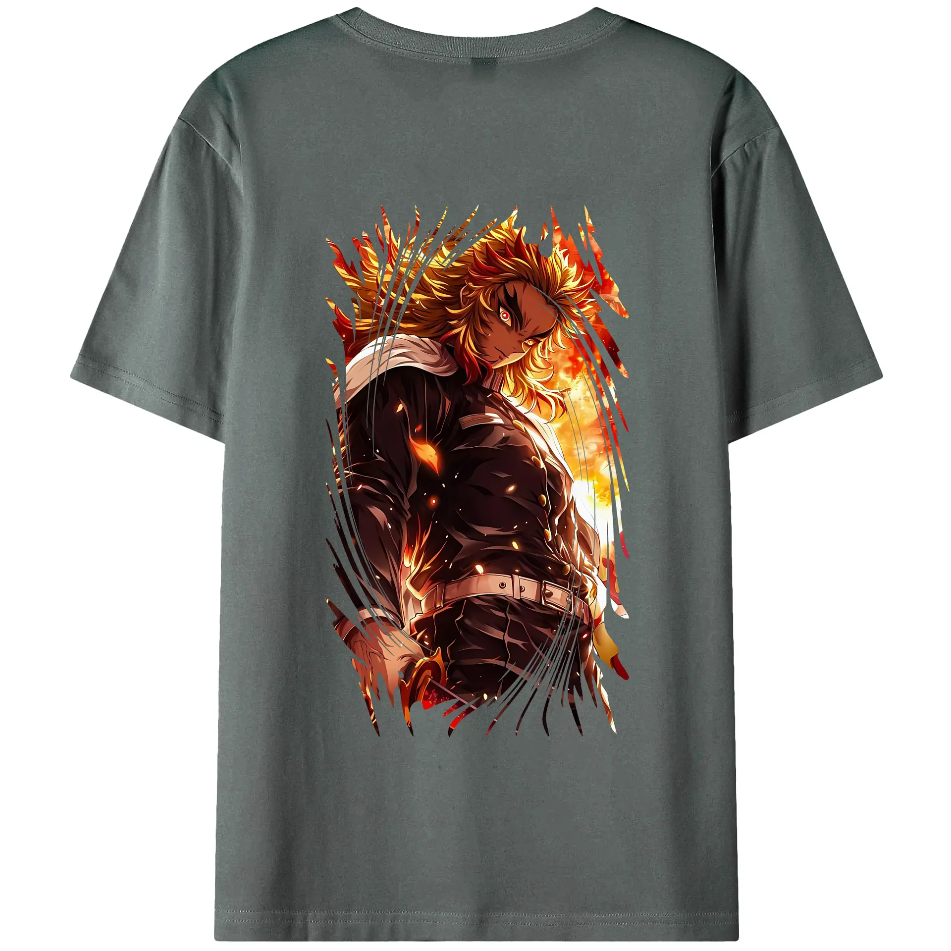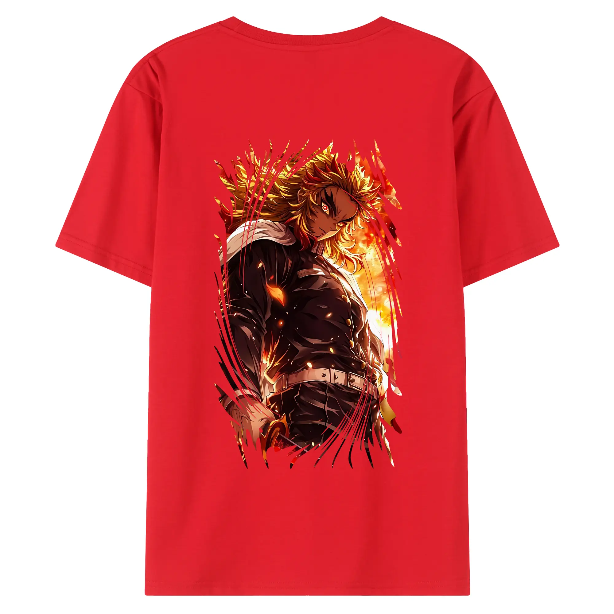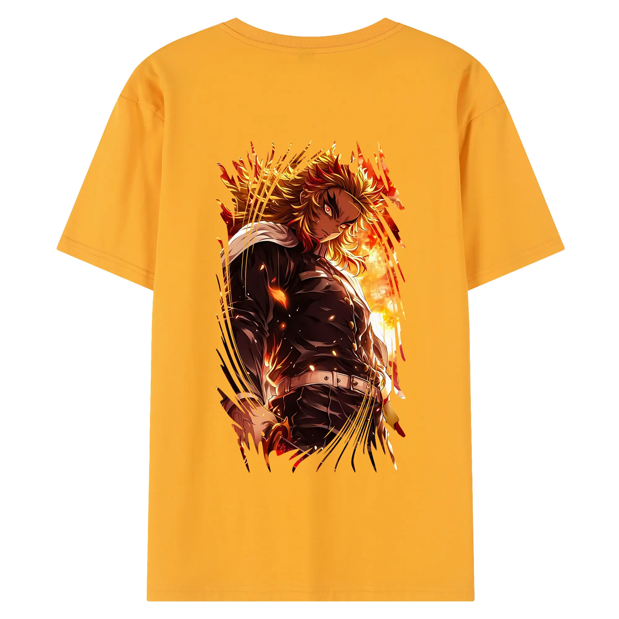 鬼滅の刃 グッズ,煉獄 杏寿郎 - 綿100% 半袖Tシャツ ・ フロントプリント ・ 快適 通気性 ・ 日常使い 散歩 スポーツ用