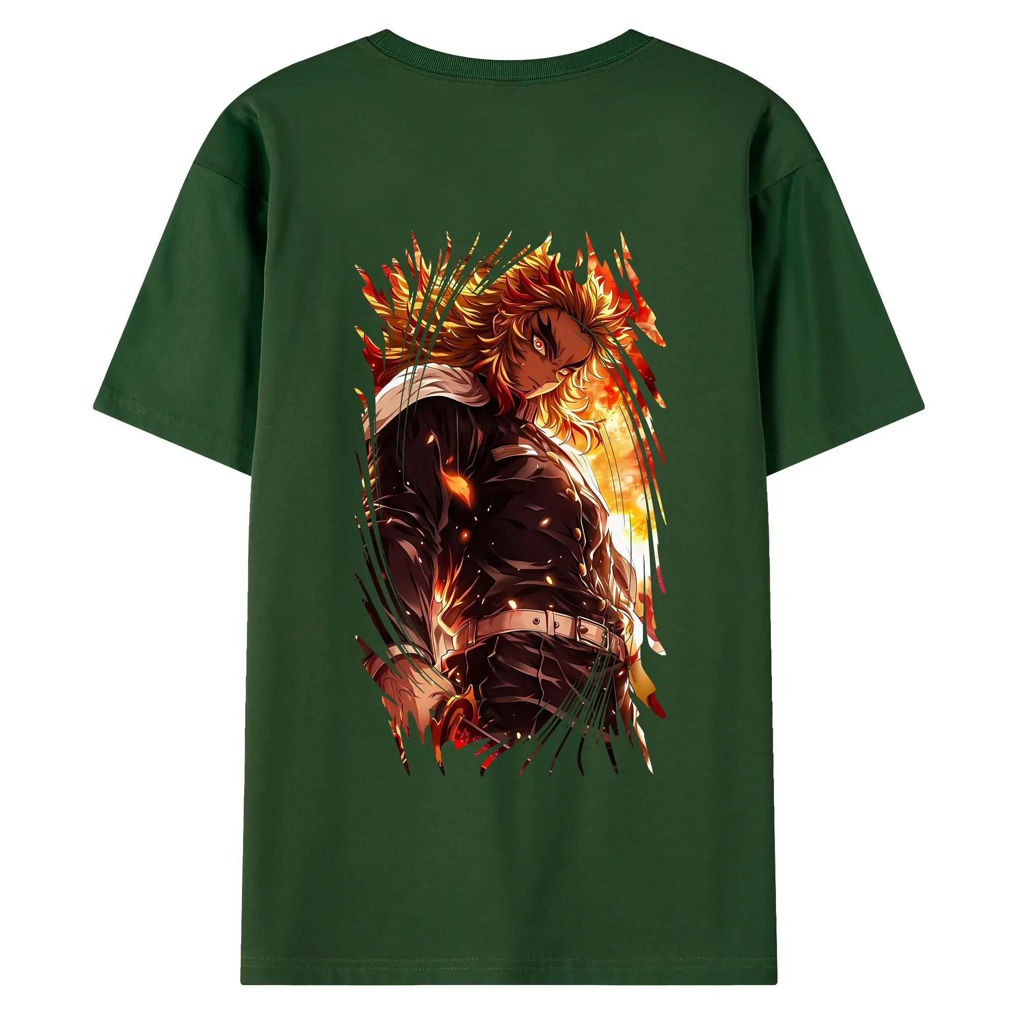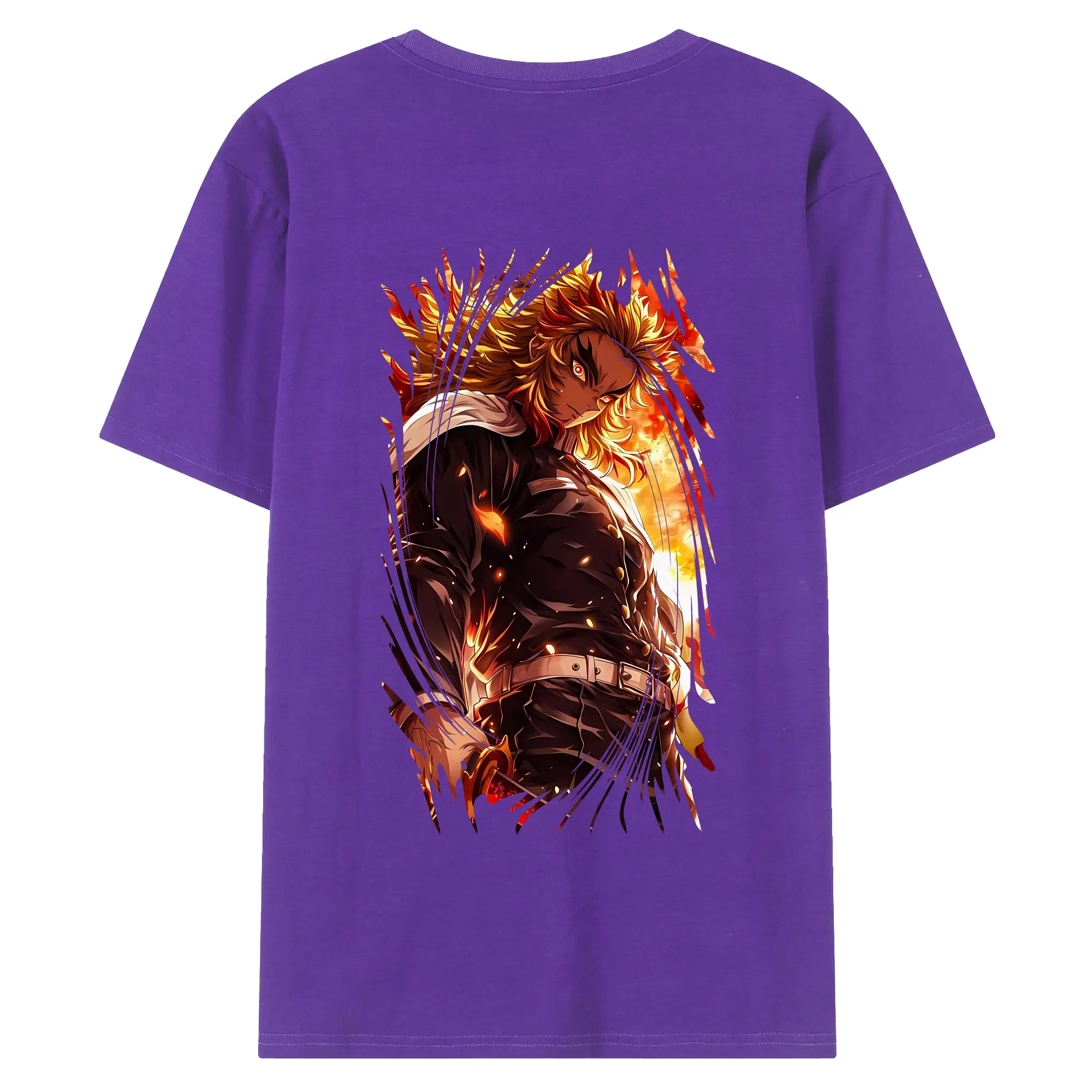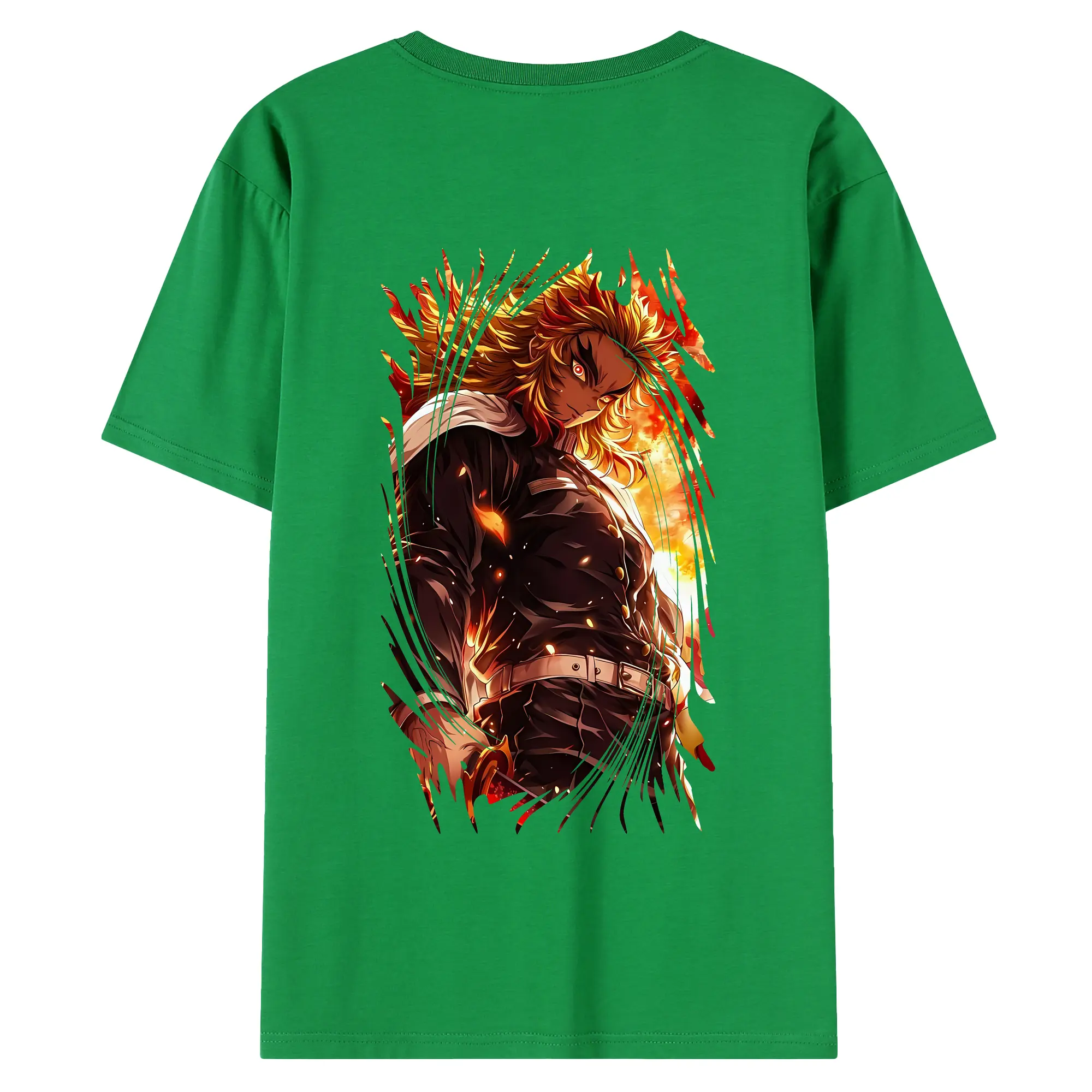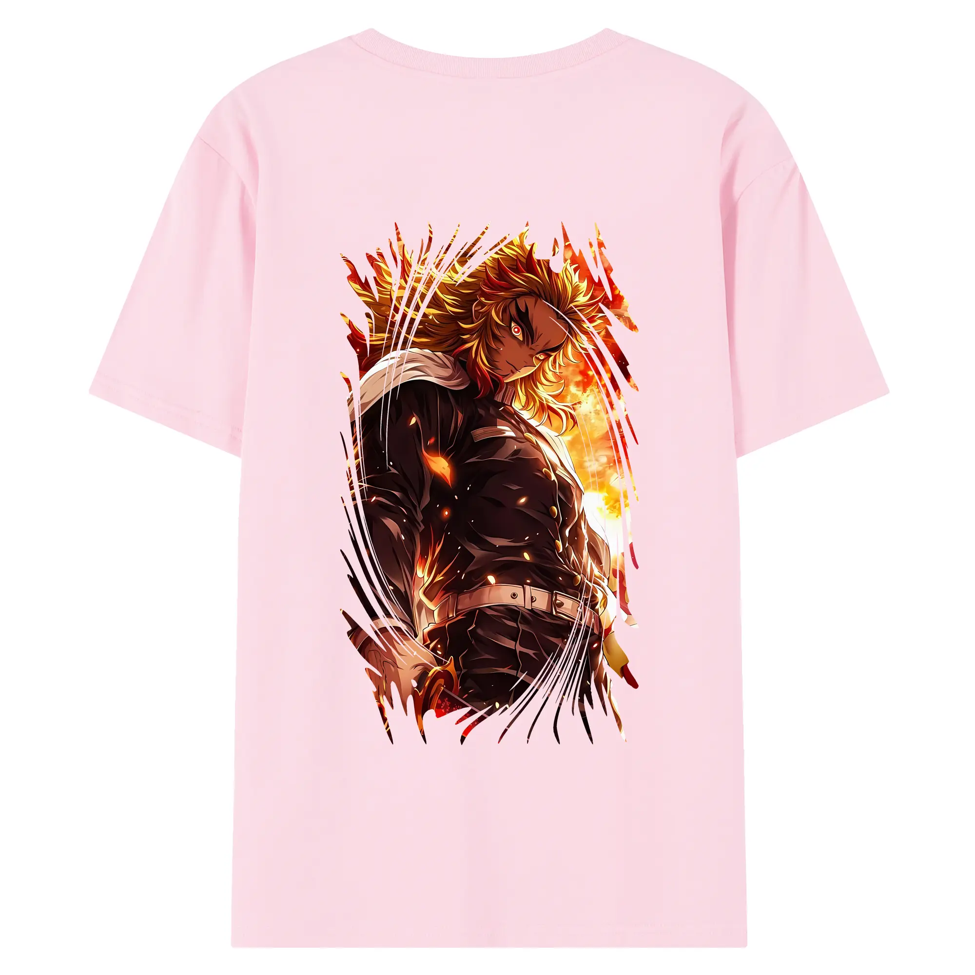 鬼滅の刃 グッズ,煉獄 杏寿郎 - 綿100% 半袖Tシャツ ・ フロントプリント ・ 快適 通気性 ・ 日常使い 散歩 スポーツ用