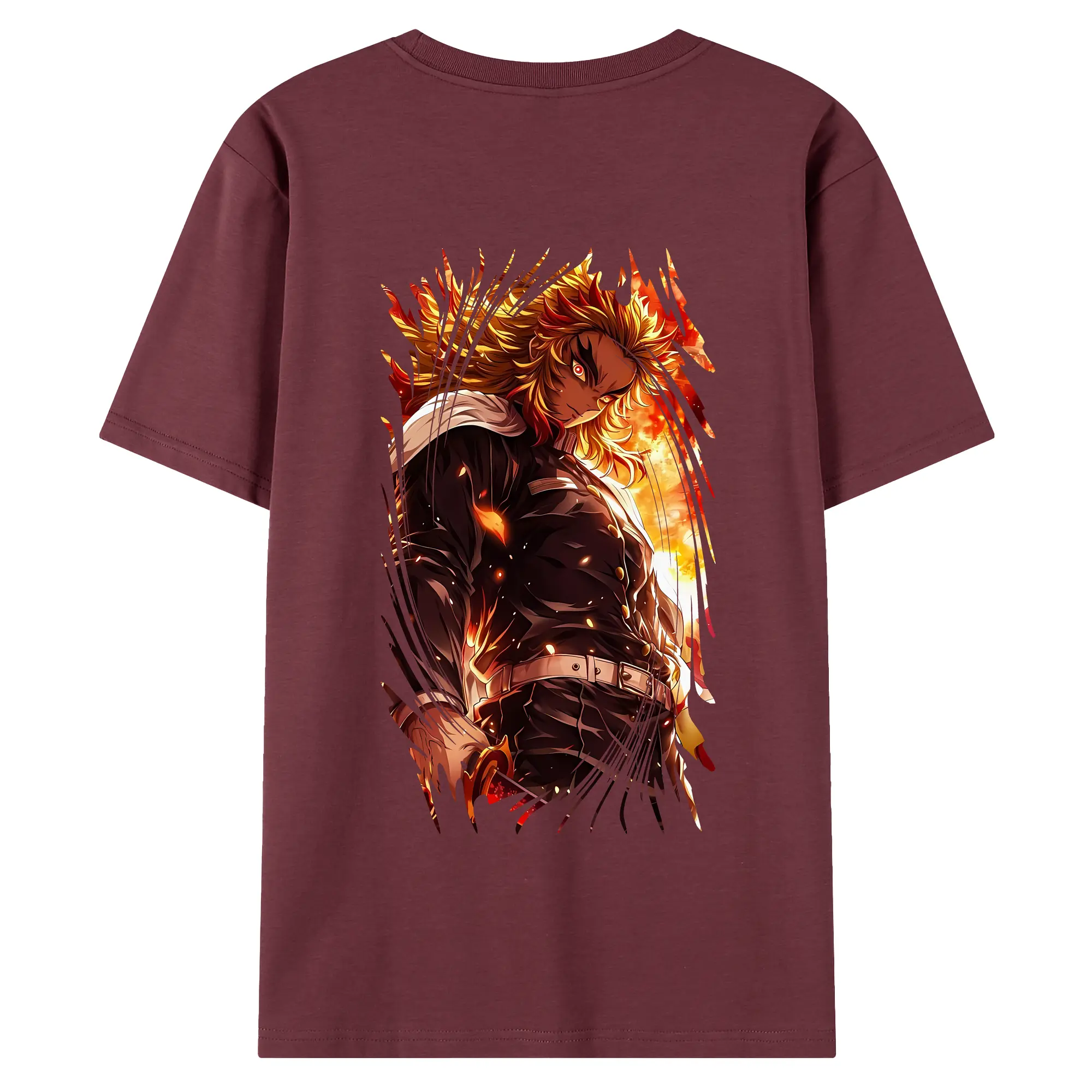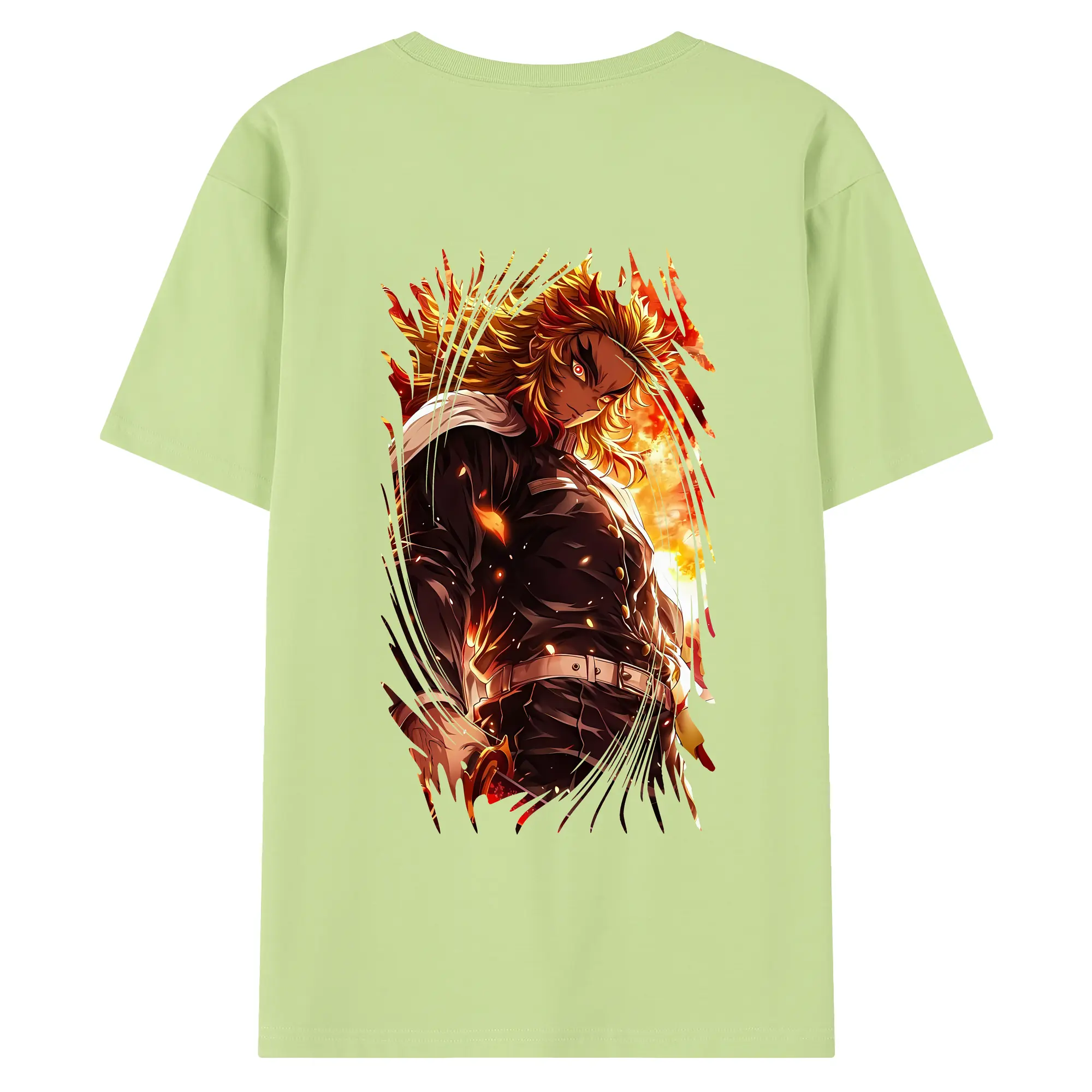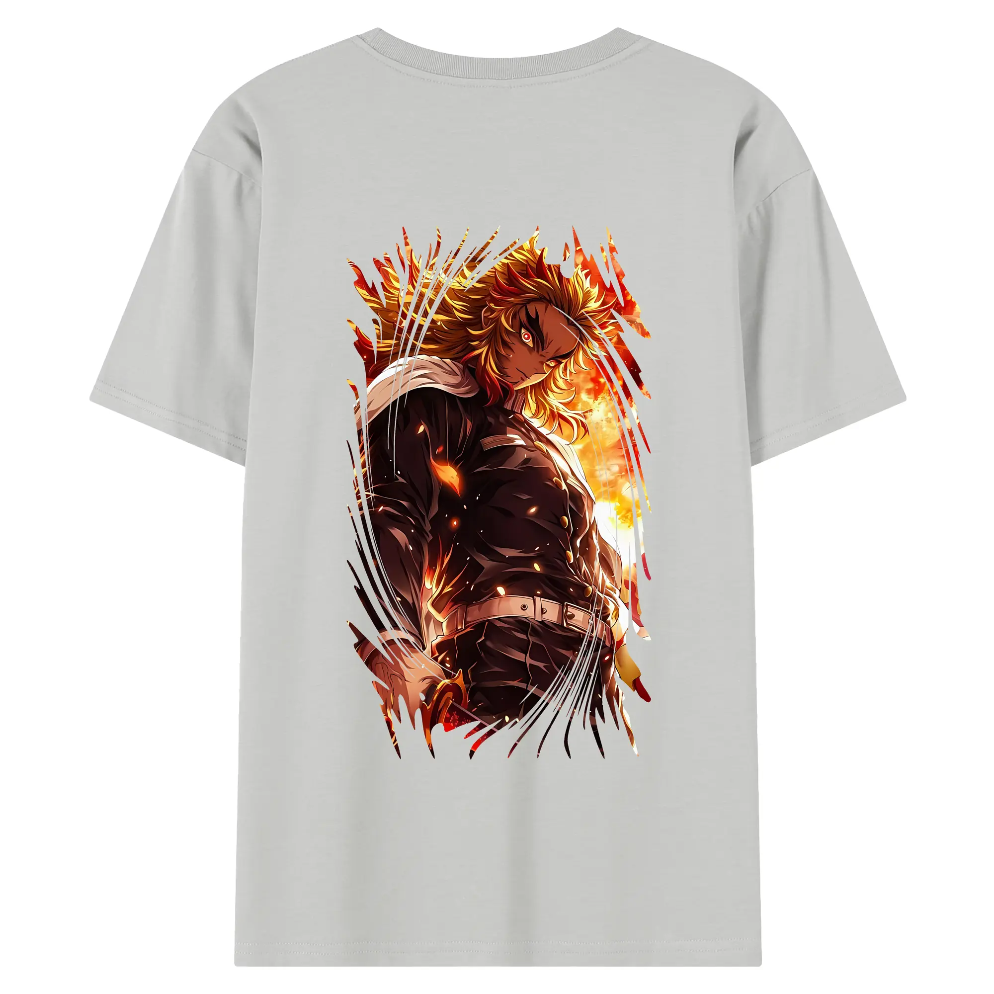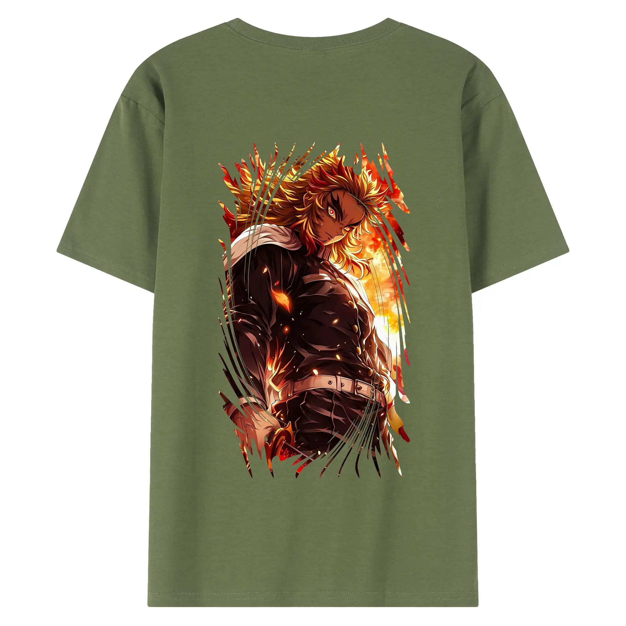 鬼滅の刃 グッズ,煉獄 杏寿郎 - 綿100% 半袖Tシャツ ・ フロントプリント ・ 快適 通気性 ・ 日常使い 散歩 スポーツ用