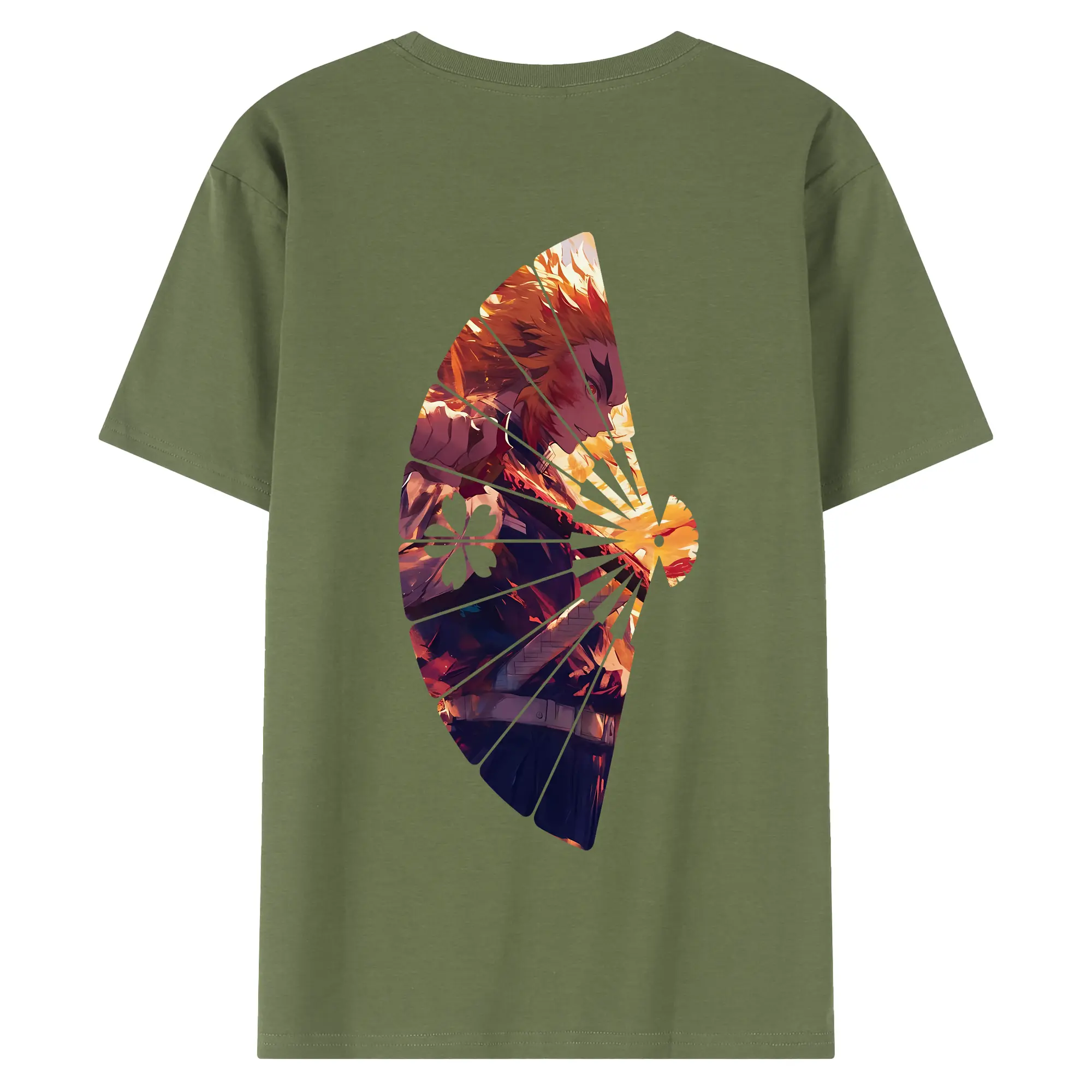 鬼滅の刃 グッズ,煉獄 杏寿郎 - 綿100% 半袖Tシャツ ・ フロントプリント ・ 快適 通気性 ・ 日常使い 散歩 スポーツ用