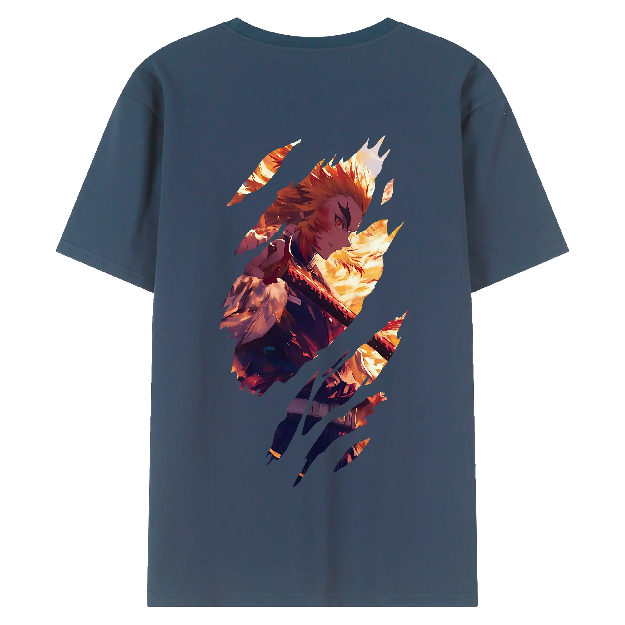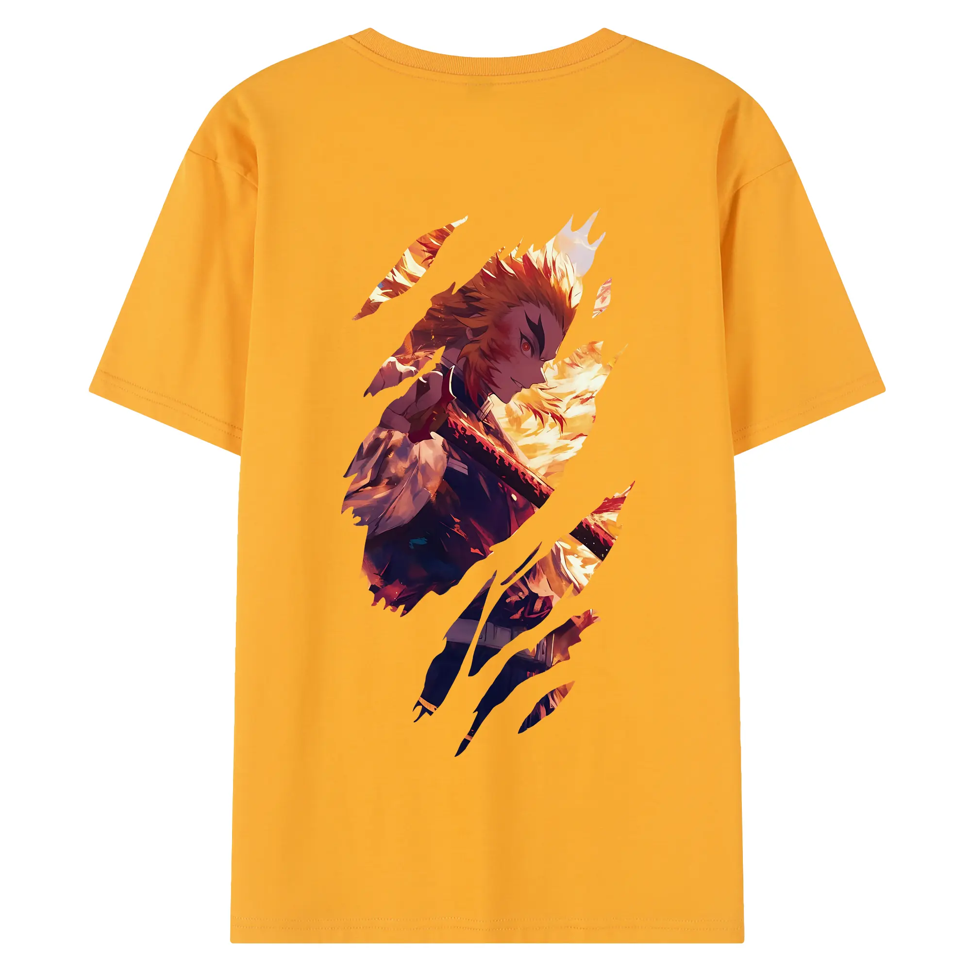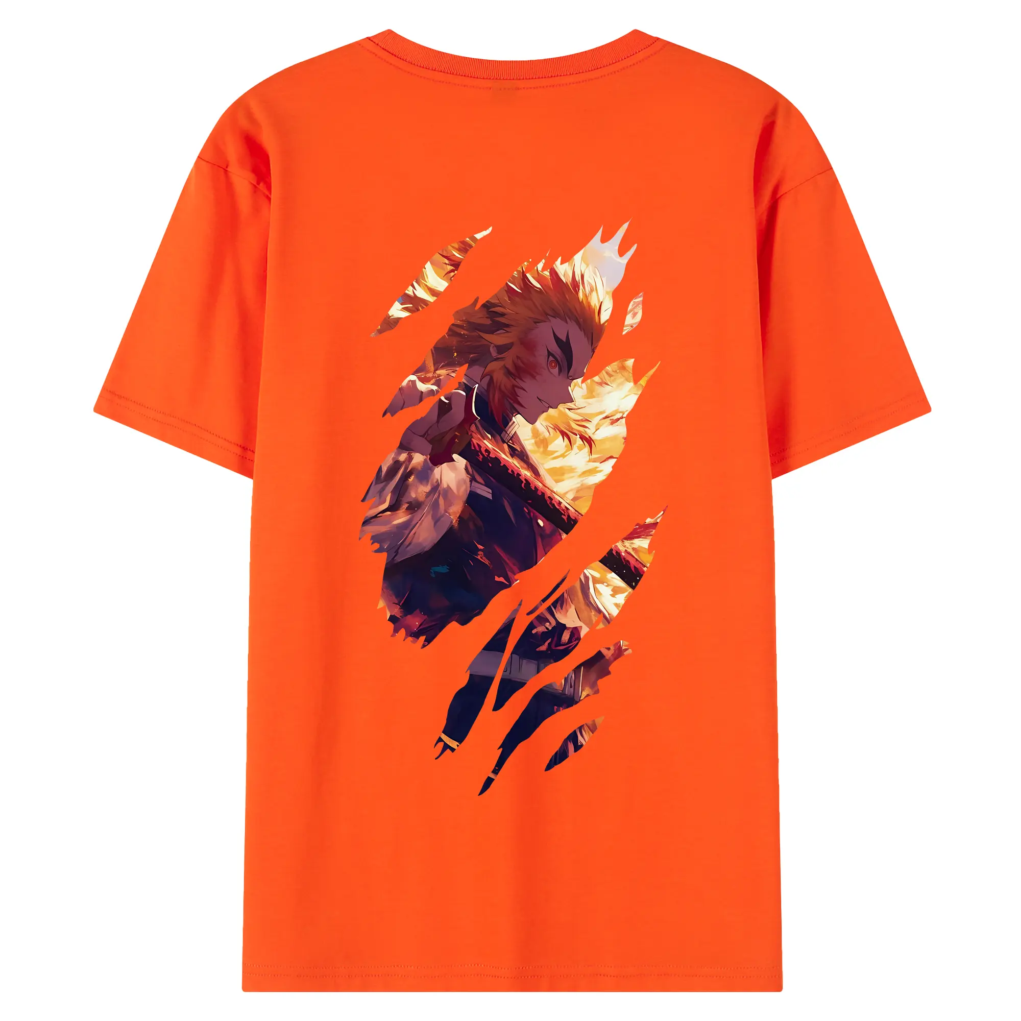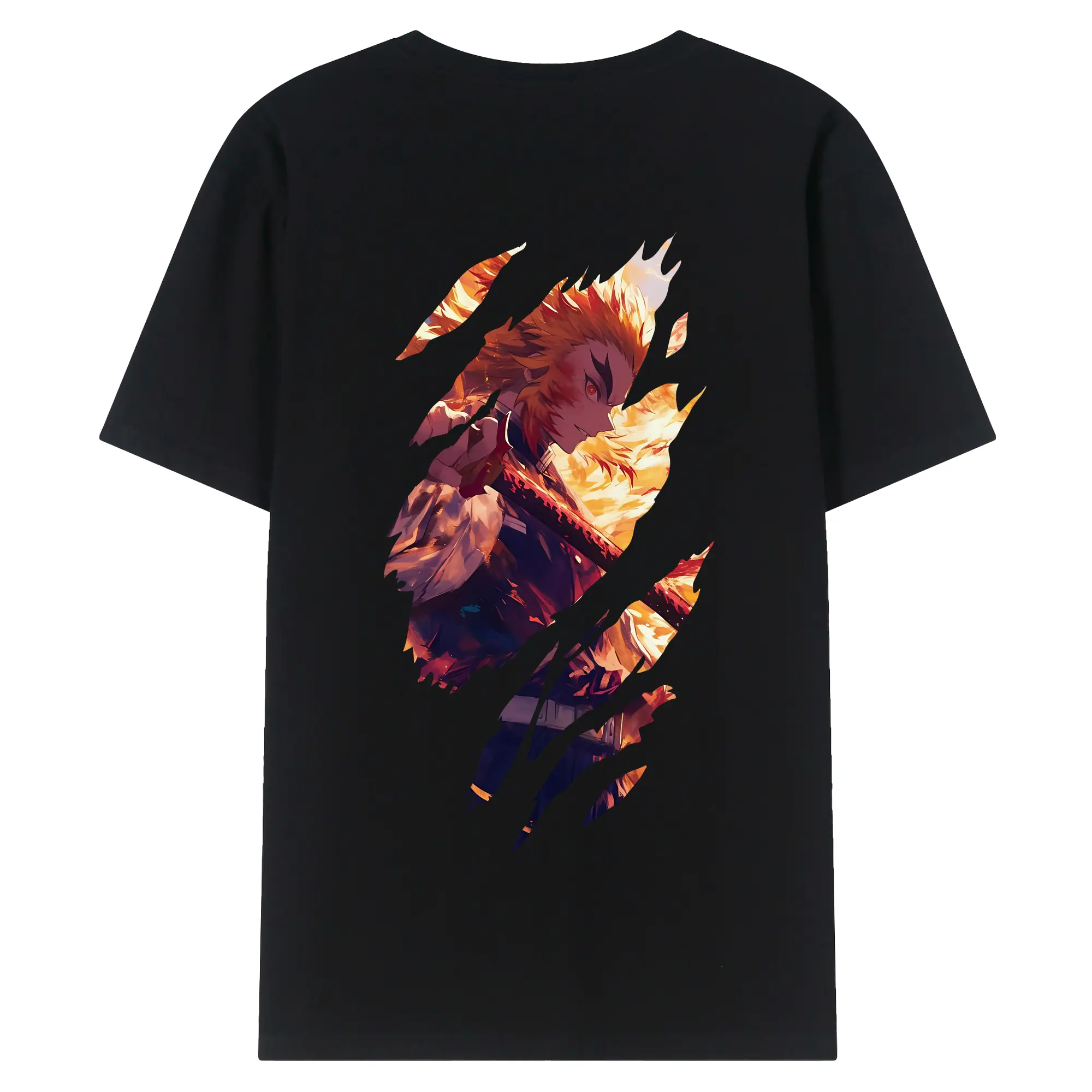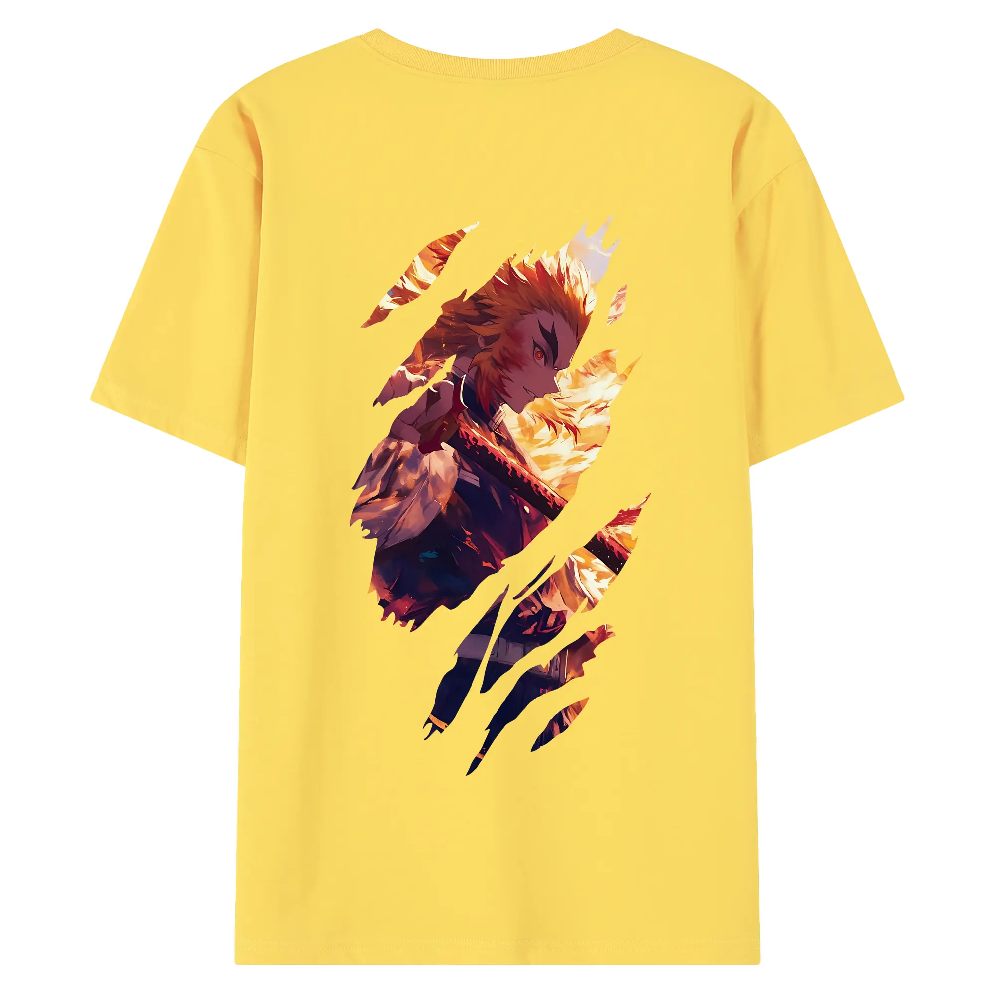 鬼滅の刃 グッズ,煉獄 杏寿郎 - 綿100% 半袖Tシャツ ・ フロントプリント ・ 快適 通気性 ・ 日常使い 散歩 スポーツ用