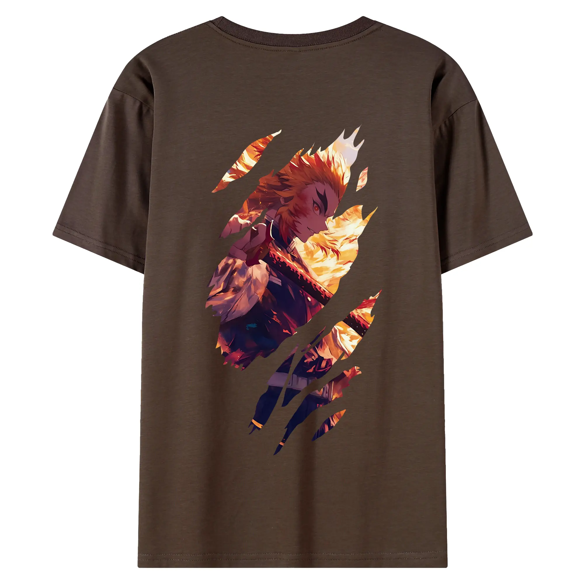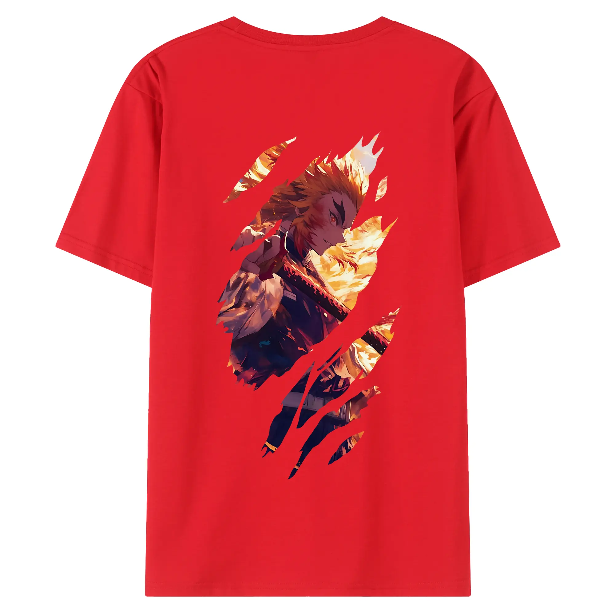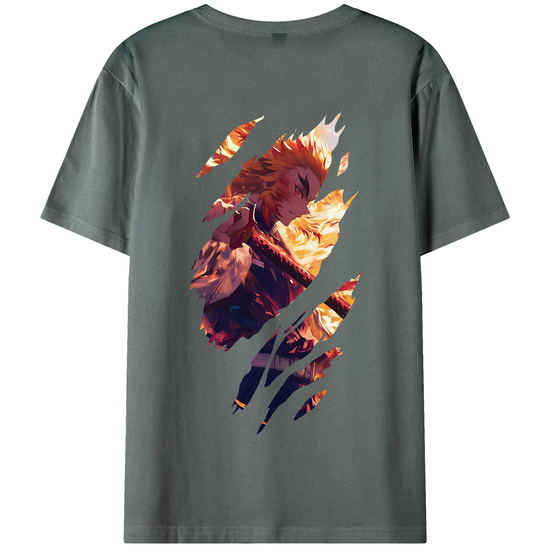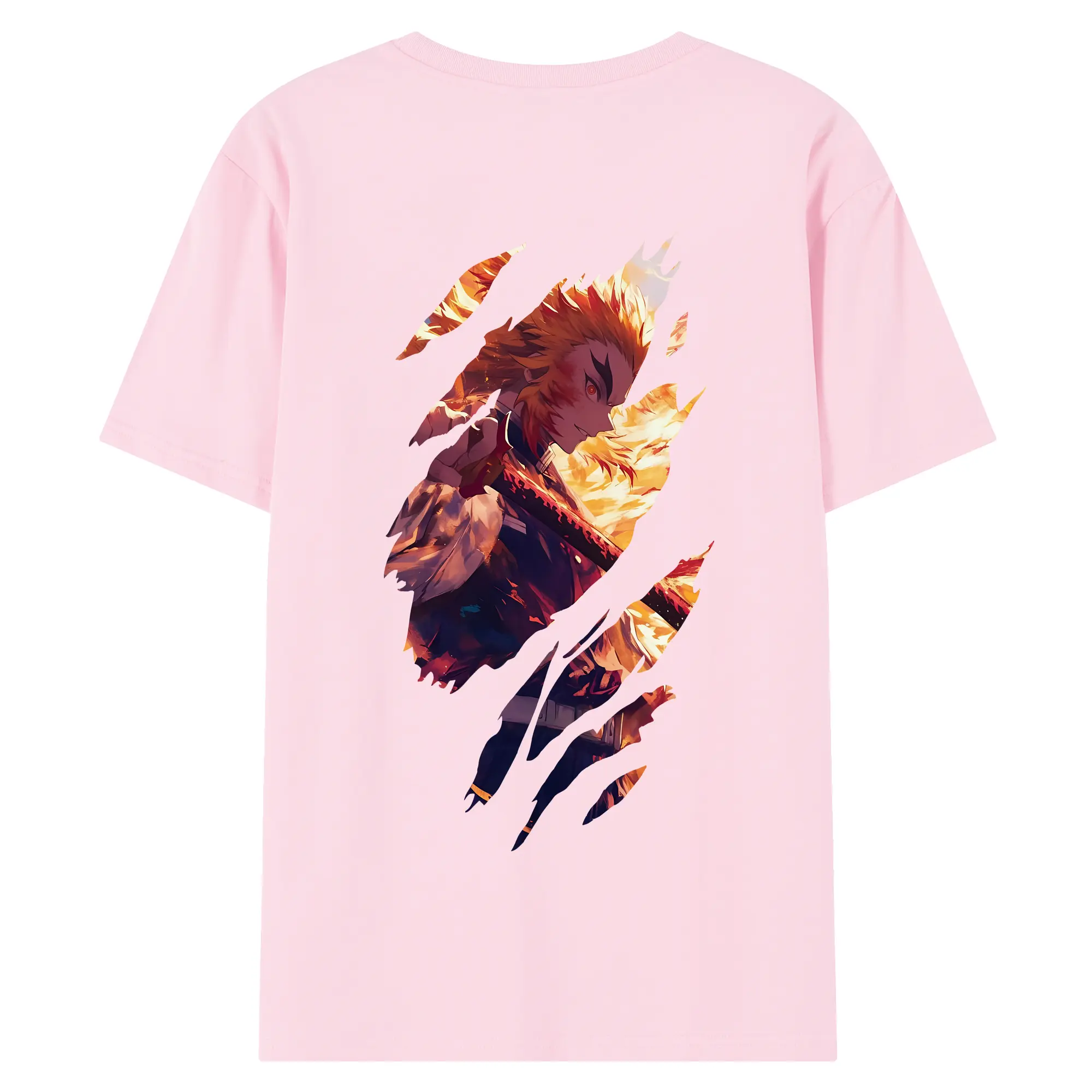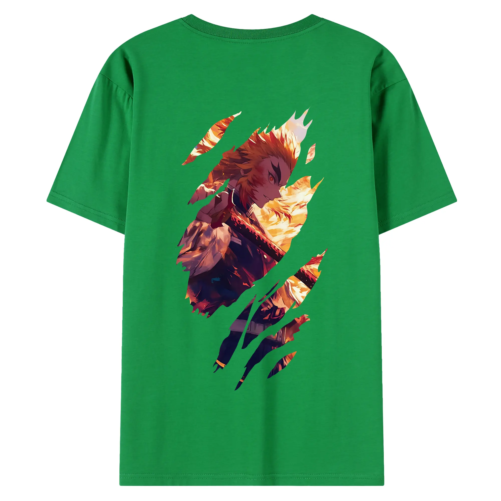 鬼滅の刃 グッズ,煉獄 杏寿郎 - 綿100% 半袖Tシャツ ・ フロントプリント ・ 快適 通気性 ・ 日常使い 散歩 スポーツ用