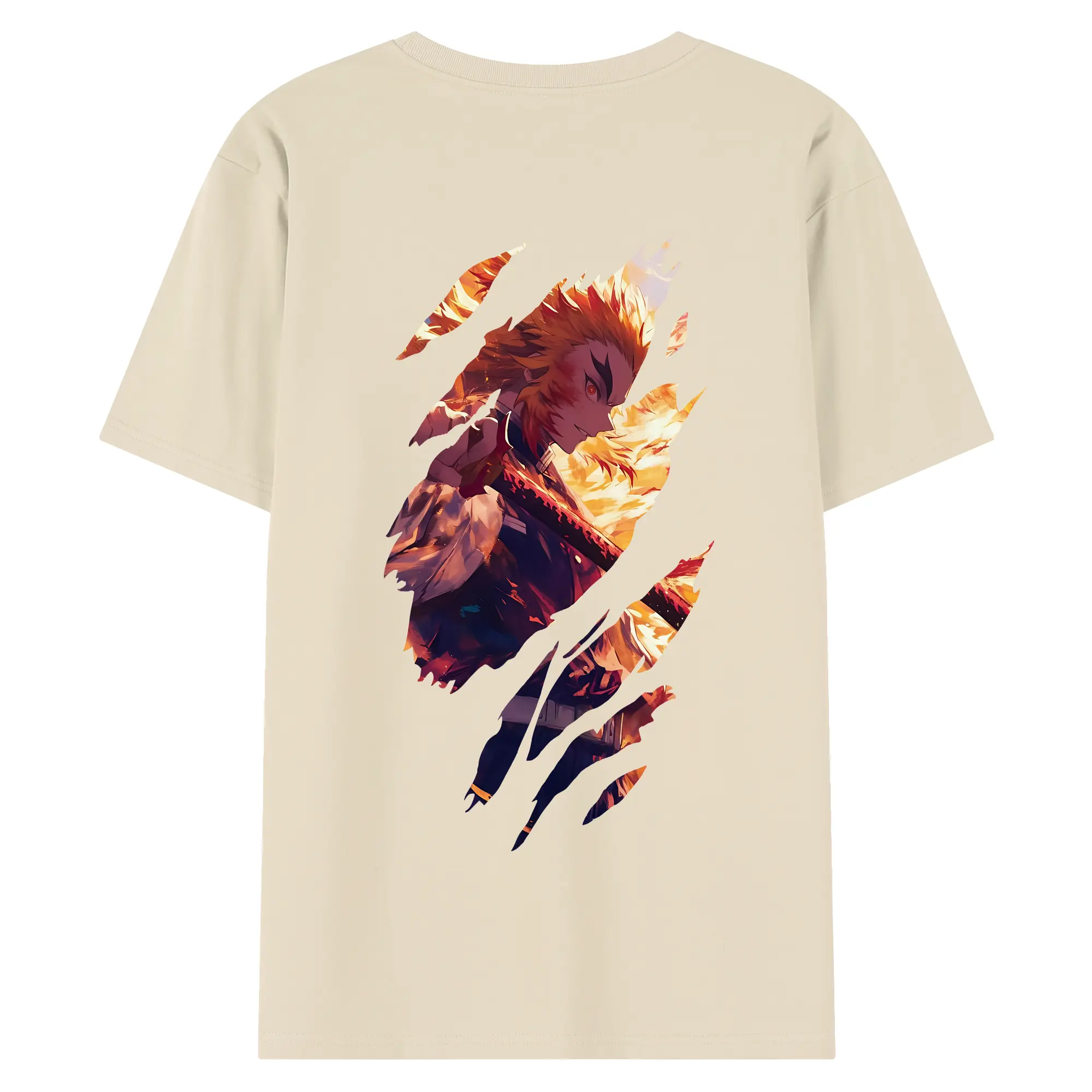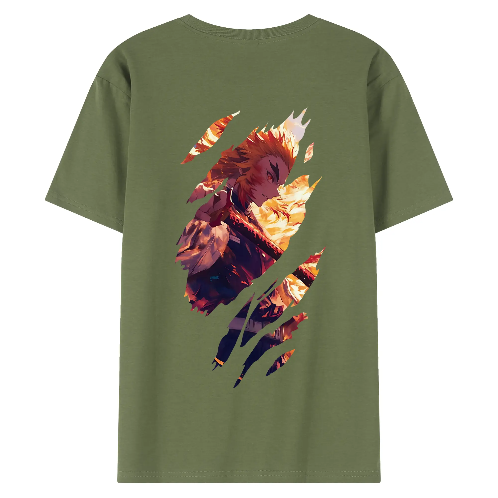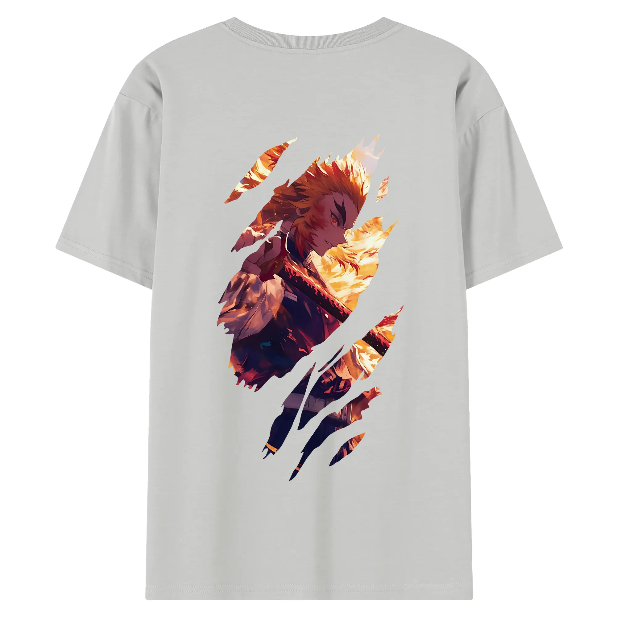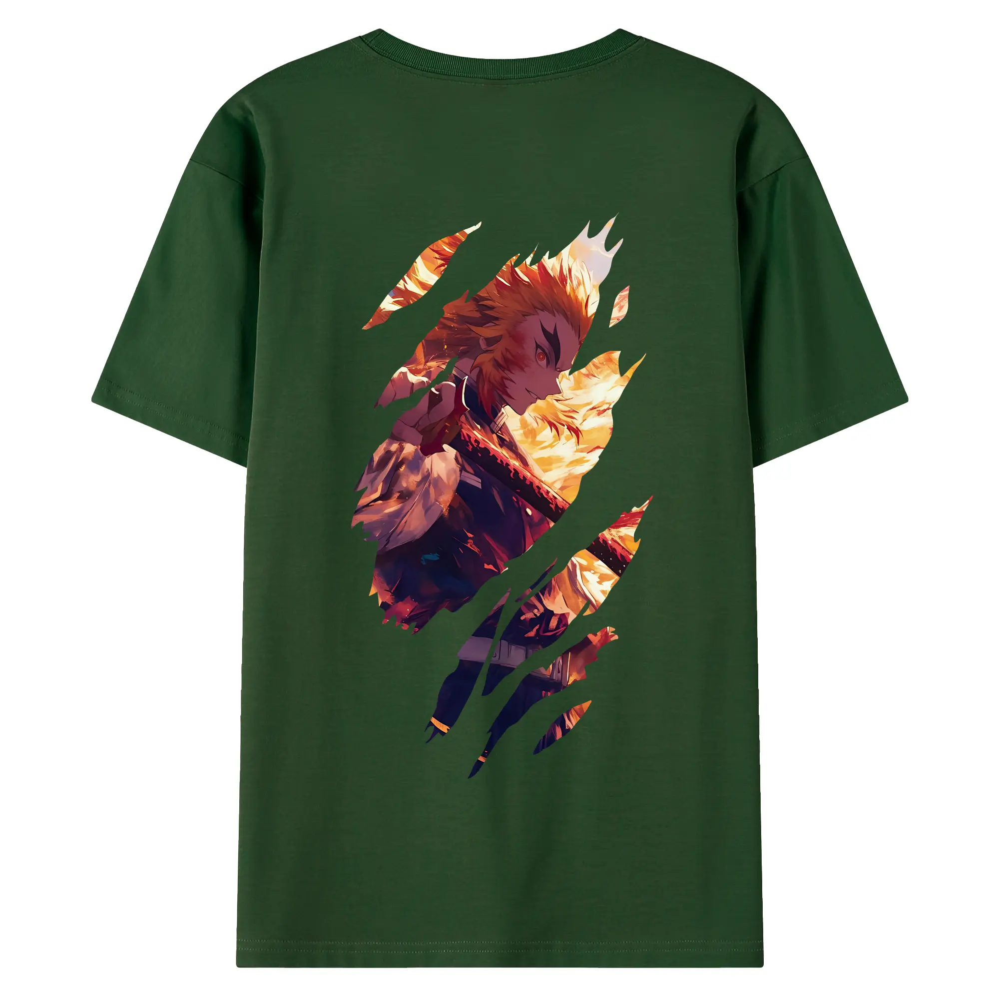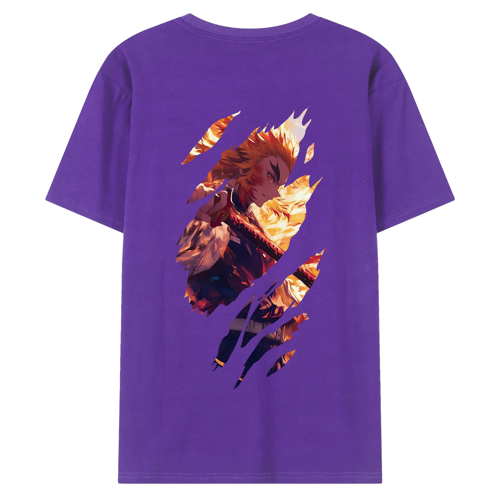 鬼滅の刃 グッズ,煉獄 杏寿郎 - 綿100% 半袖Tシャツ ・ フロントプリント ・ 快適 通気性 ・ 日常使い 散歩 スポーツ用