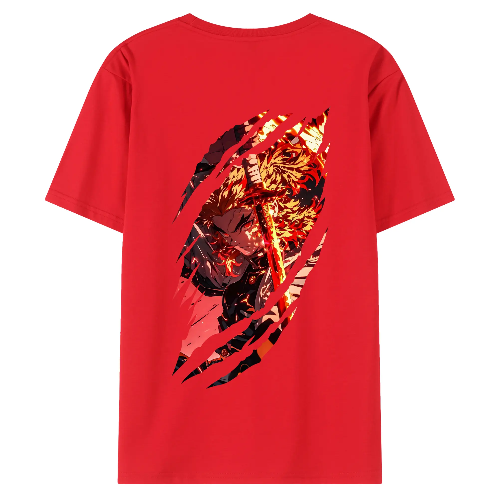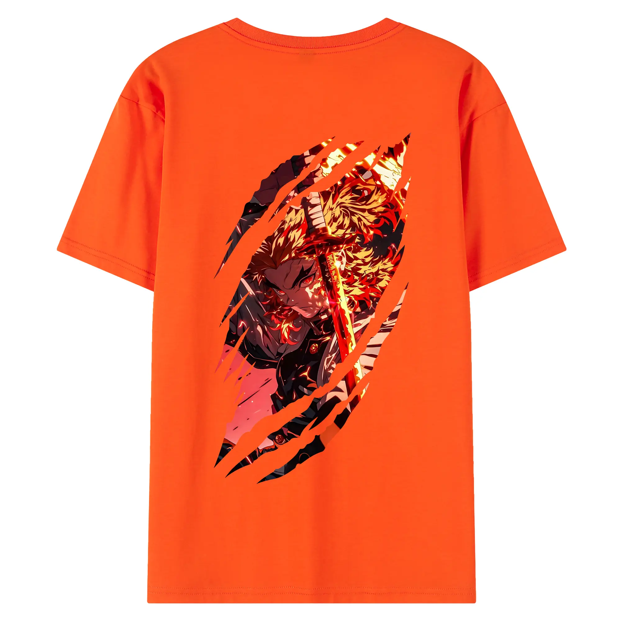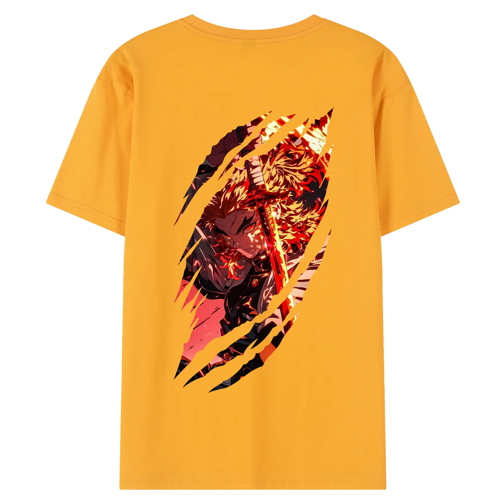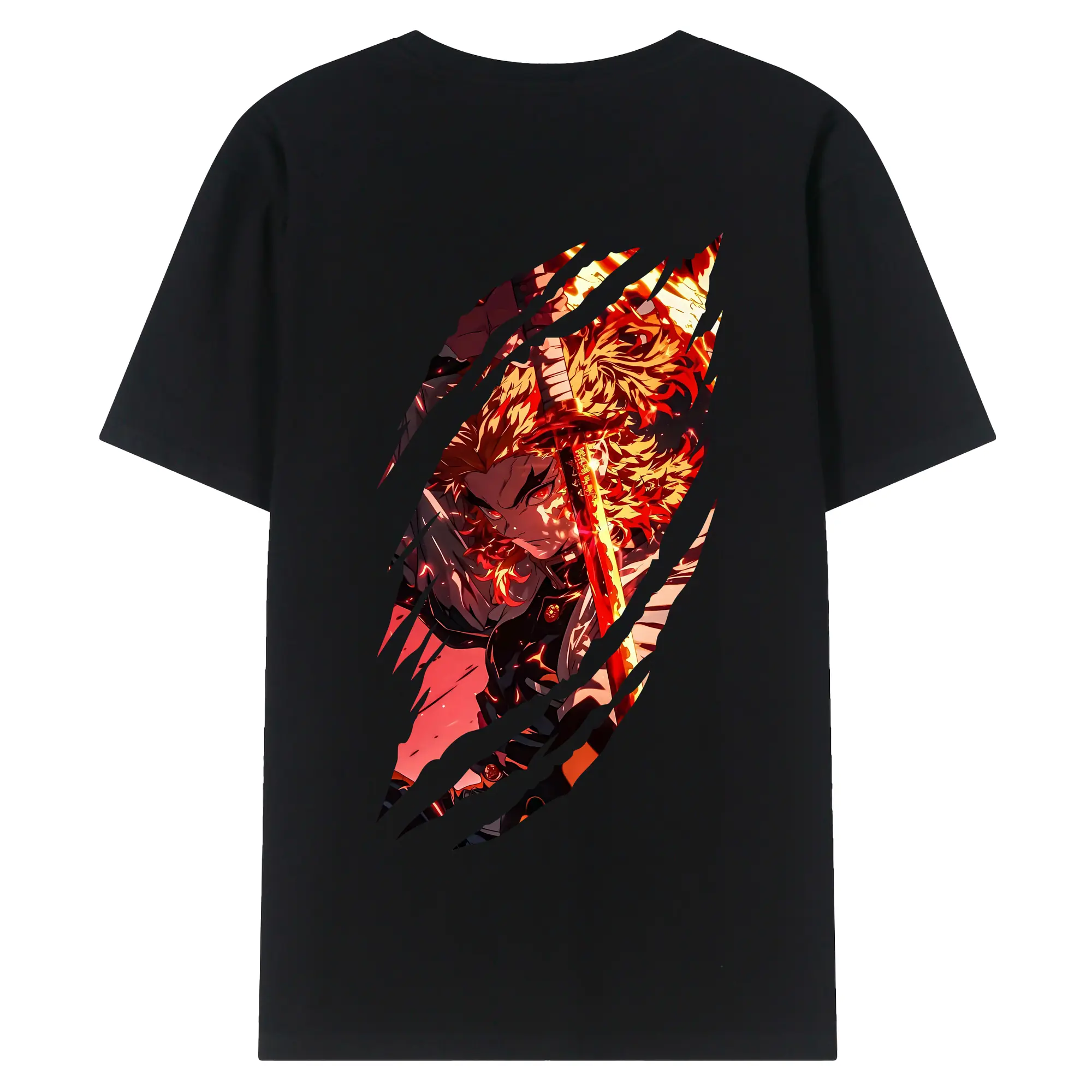 鬼滅の刃 グッズ,煉獄 杏寿郎 - 綿100% 半袖Tシャツ ・ フロントプリント ・ 快適 通気性 ・ 日常使い 散歩 スポーツ用
