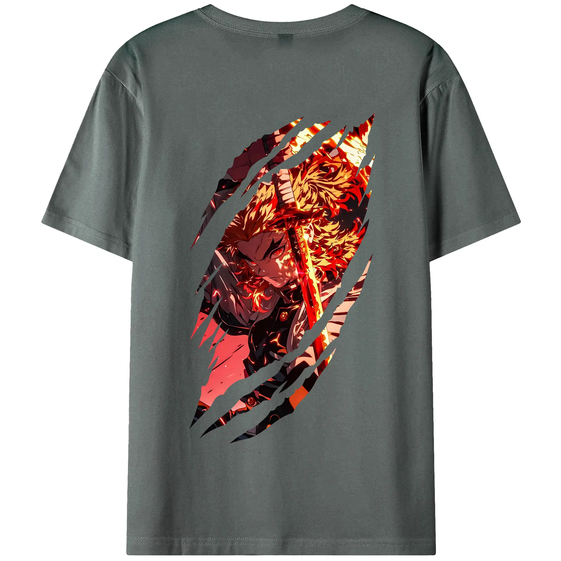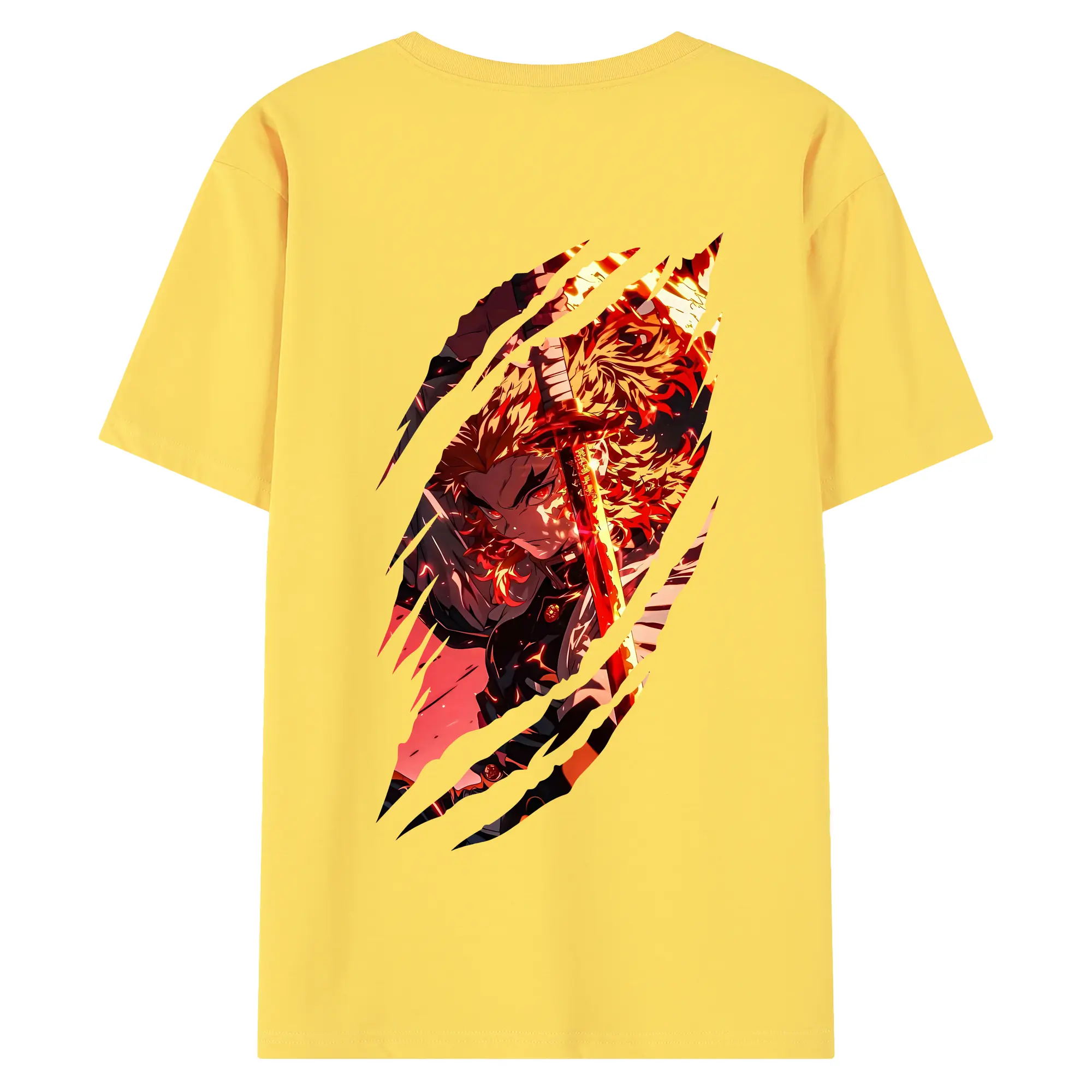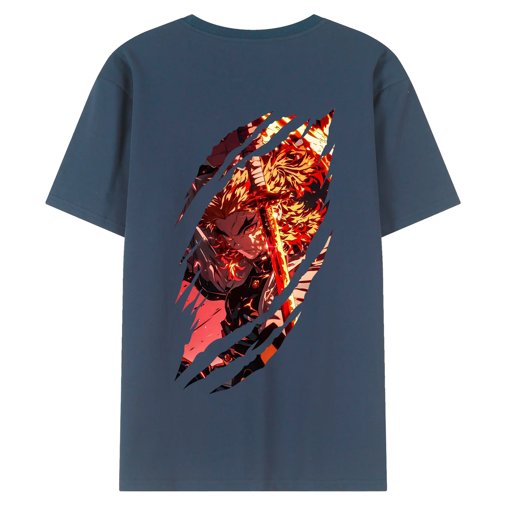 鬼滅の刃 グッズ,煉獄 杏寿郎 - 綿100% 半袖Tシャツ ・ フロントプリント ・ 快適 通気性 ・ 日常使い 散歩 スポーツ用