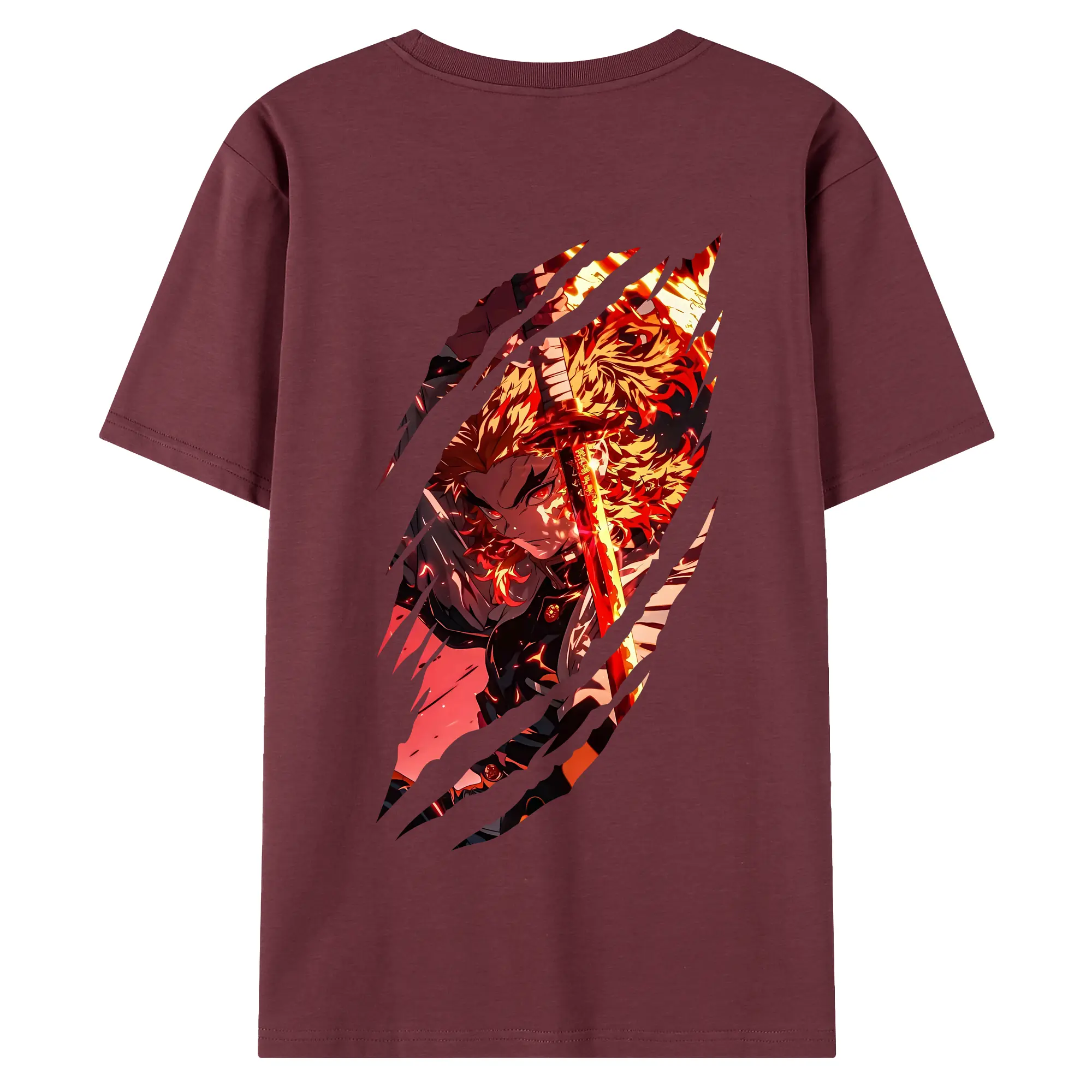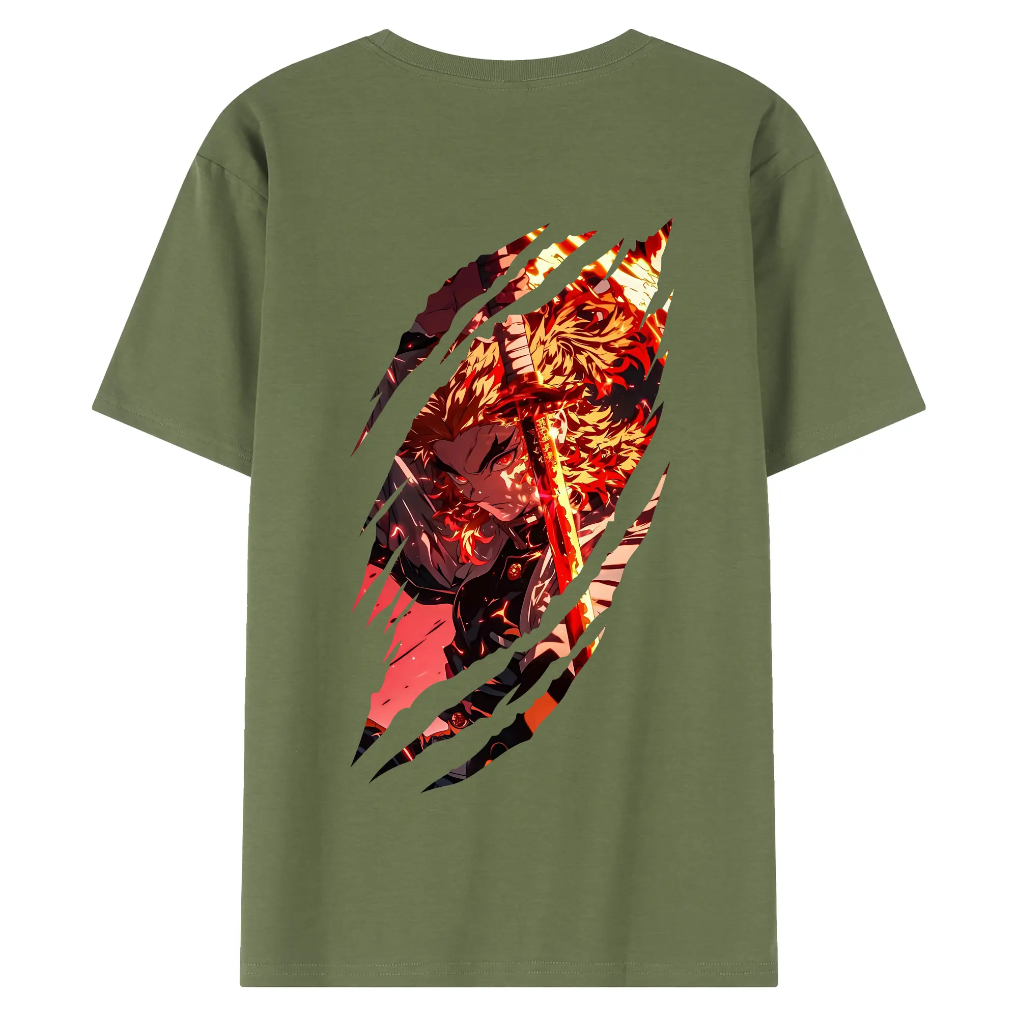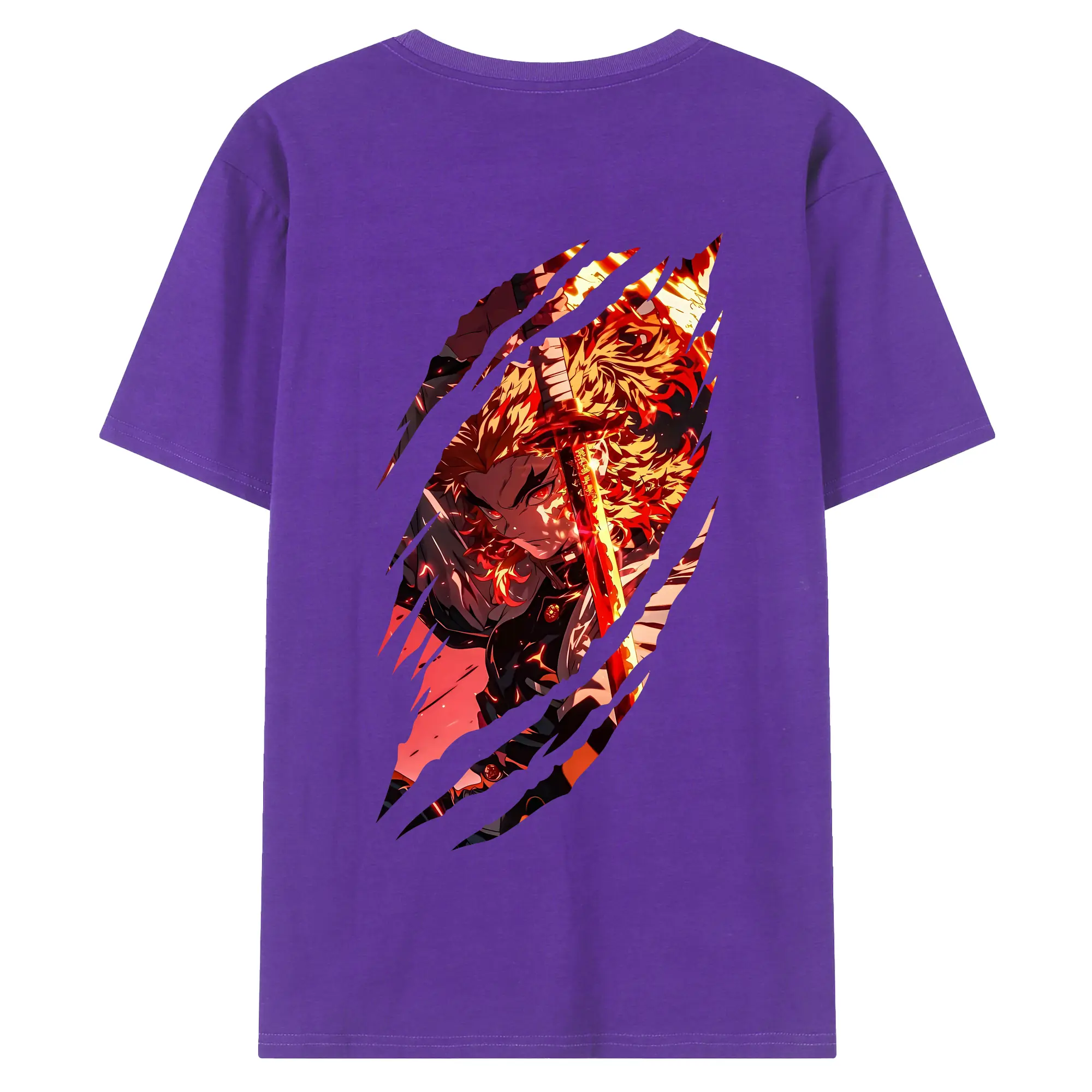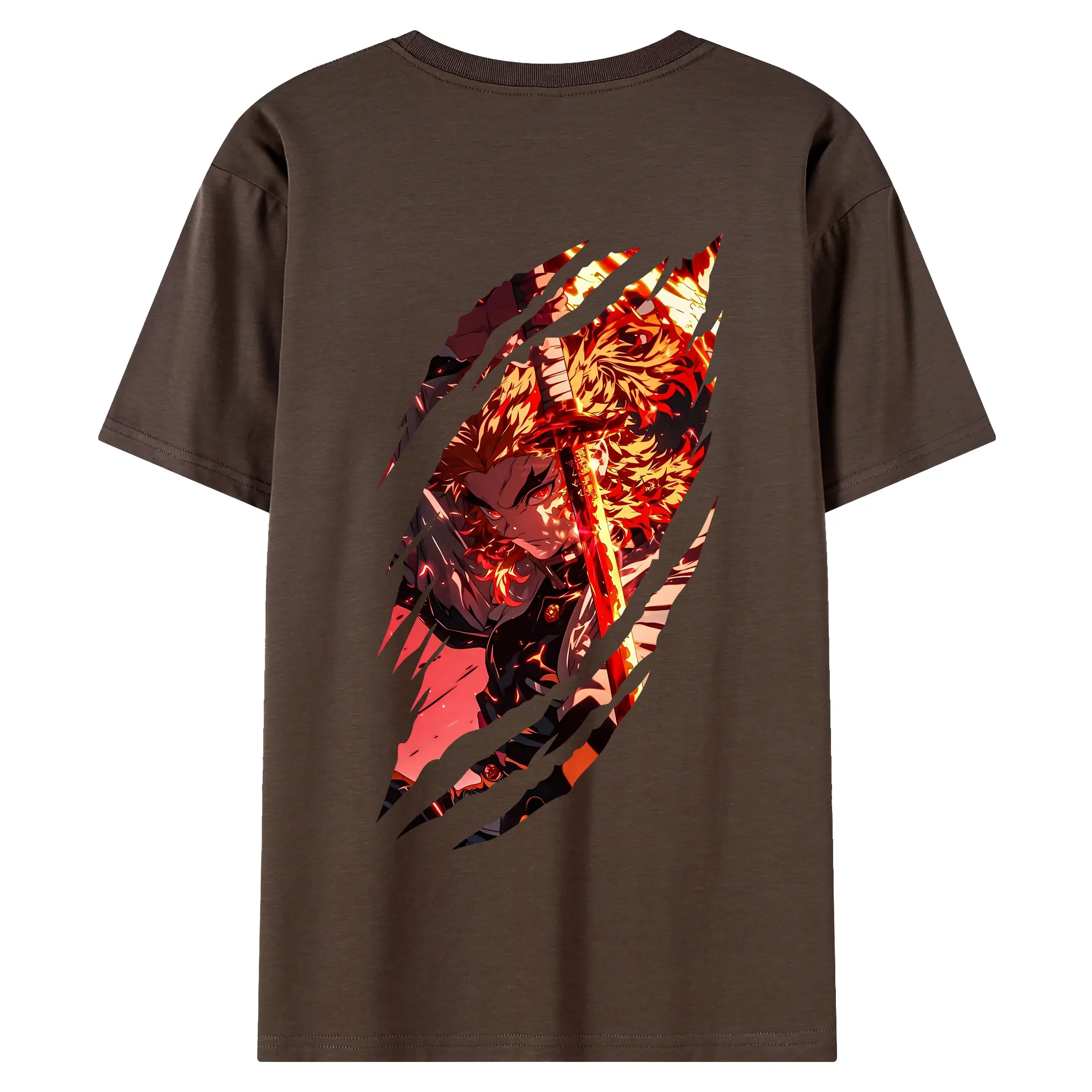 鬼滅の刃 グッズ,煉獄 杏寿郎 - 綿100% 半袖Tシャツ ・ フロントプリント ・ 快適 通気性 ・ 日常使い 散歩 スポーツ用