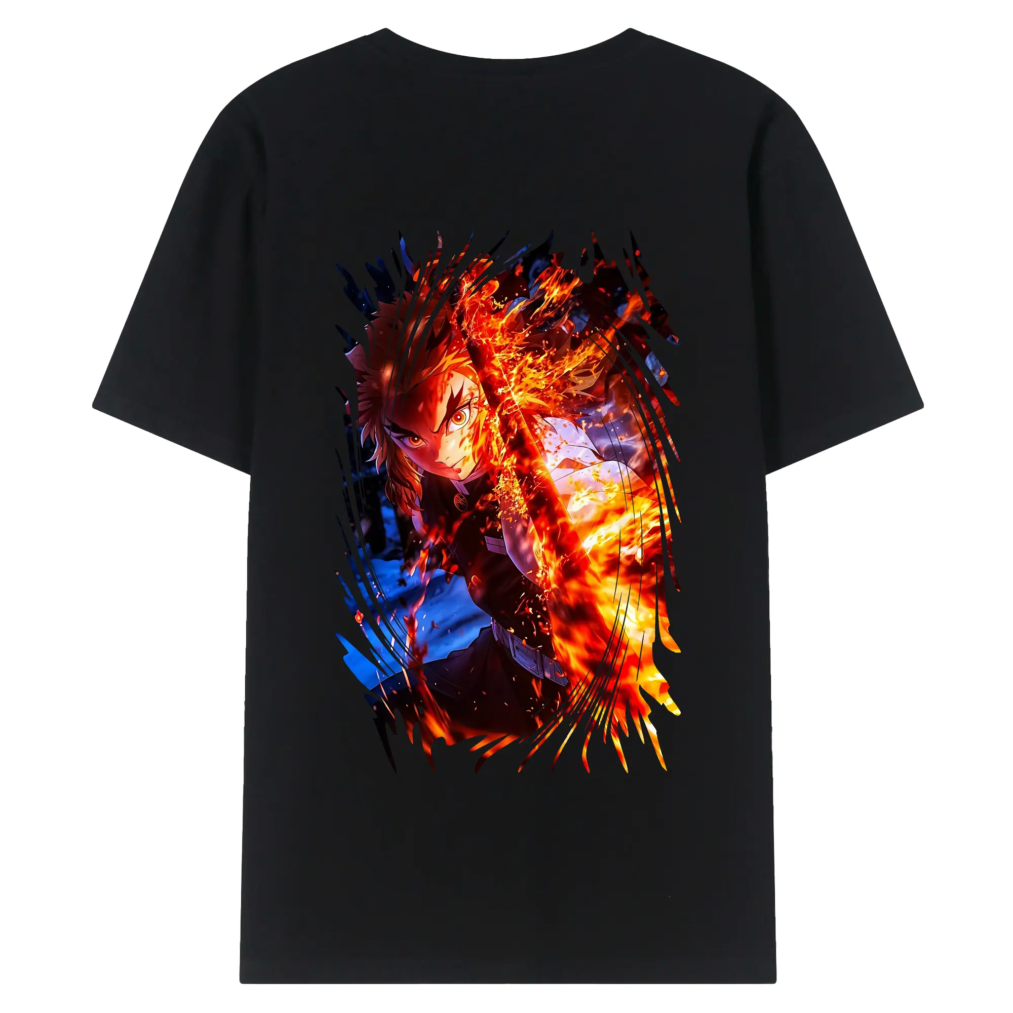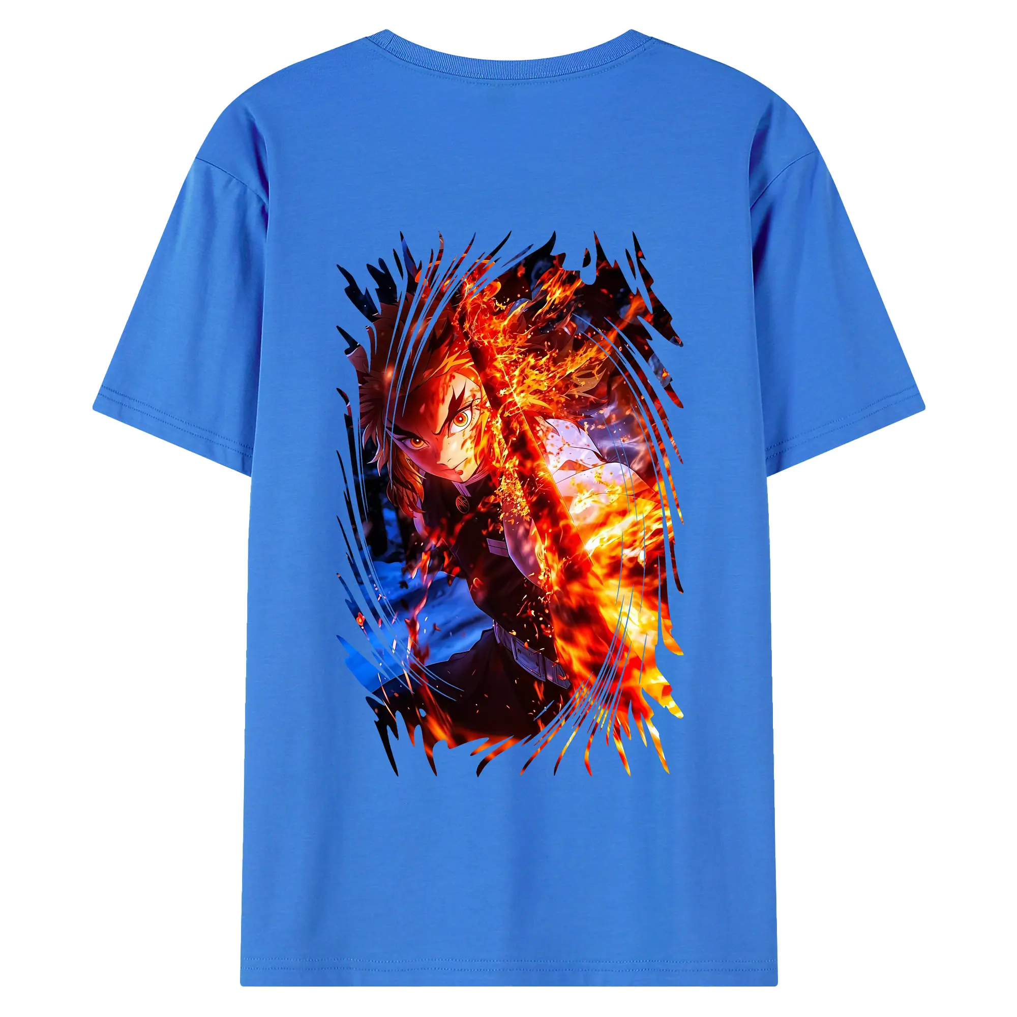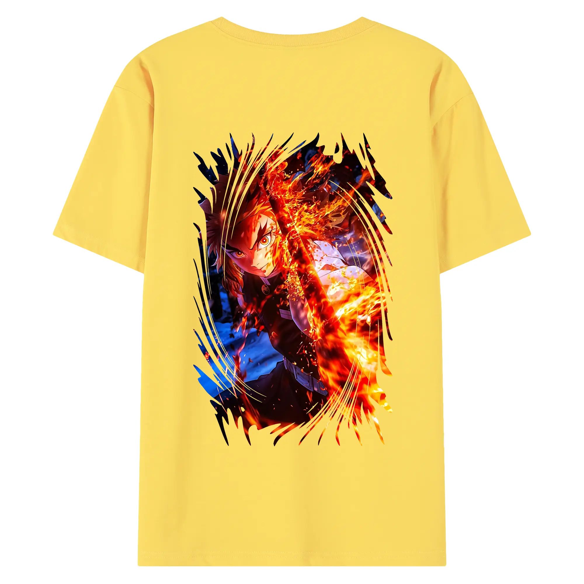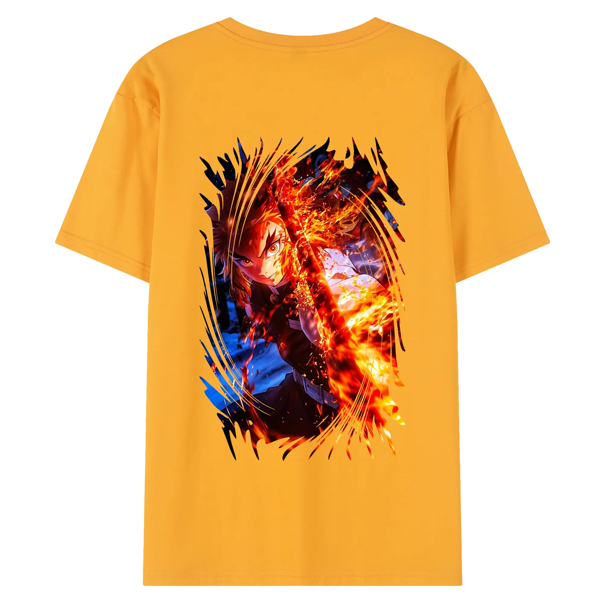 鬼滅の刃 グッズ,煉獄 杏寿郎 - 綿100% 半袖Tシャツ ・ フロントプリント ・ 快適 通気性 ・ 日常使い 散歩 スポーツ用