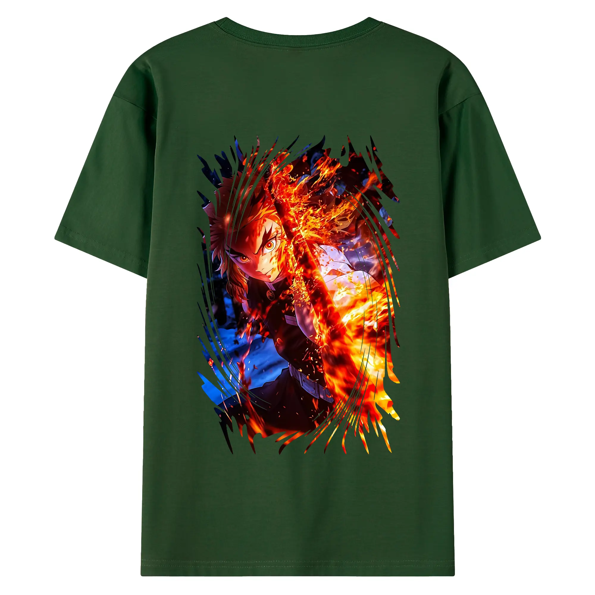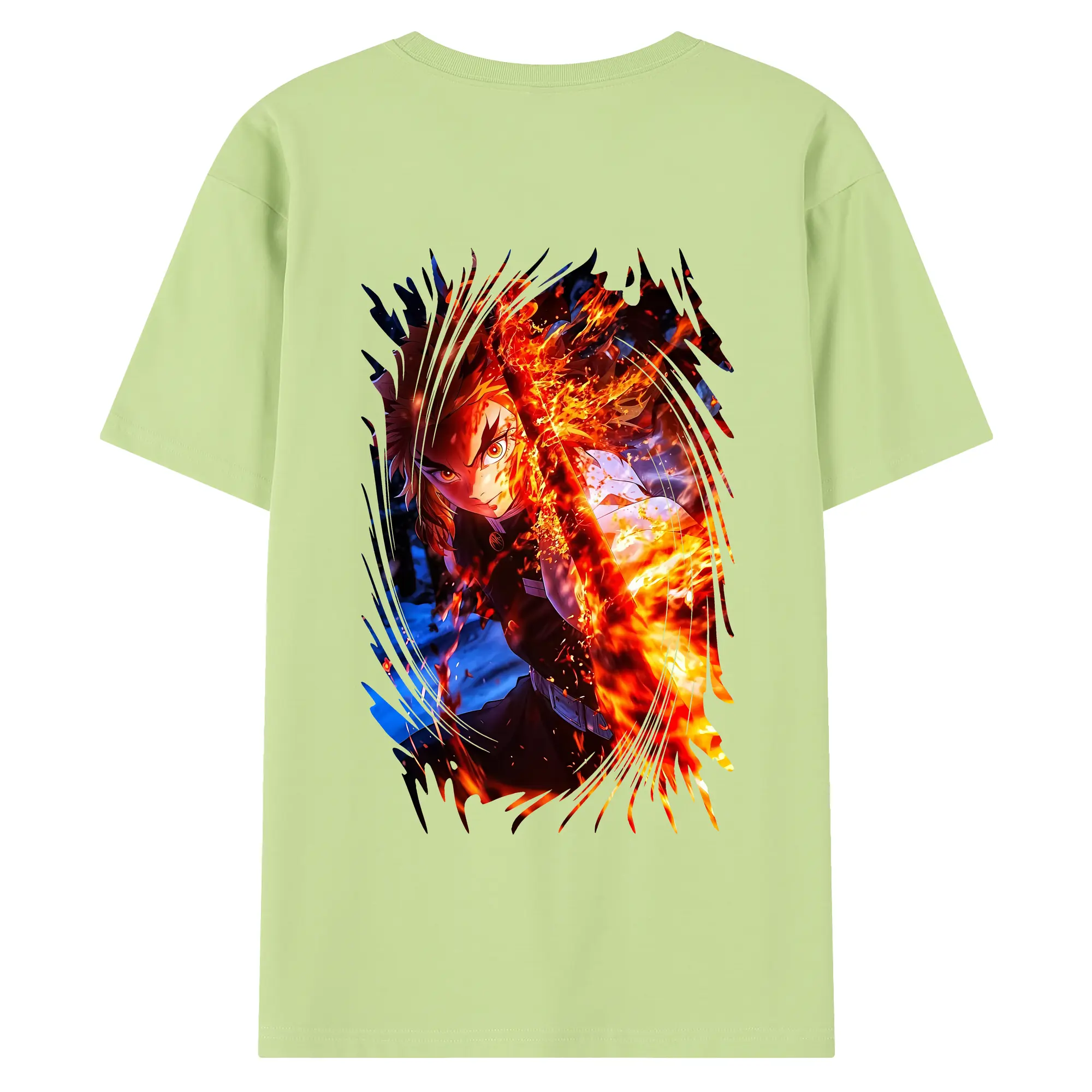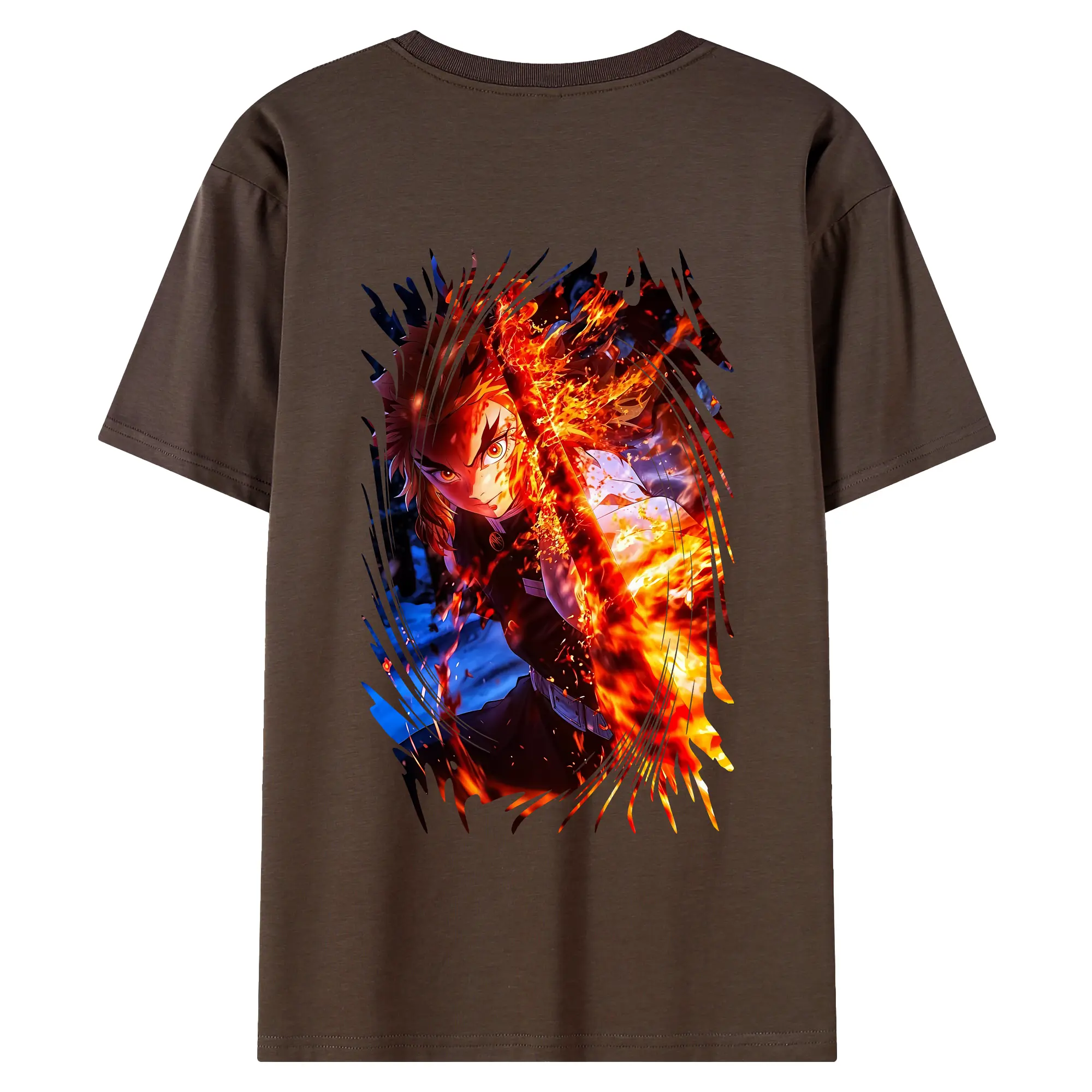 鬼滅の刃 グッズ,煉獄 杏寿郎 - 綿100% 半袖Tシャツ ・ フロントプリント ・ 快適 通気性 ・ 日常使い 散歩 スポーツ用