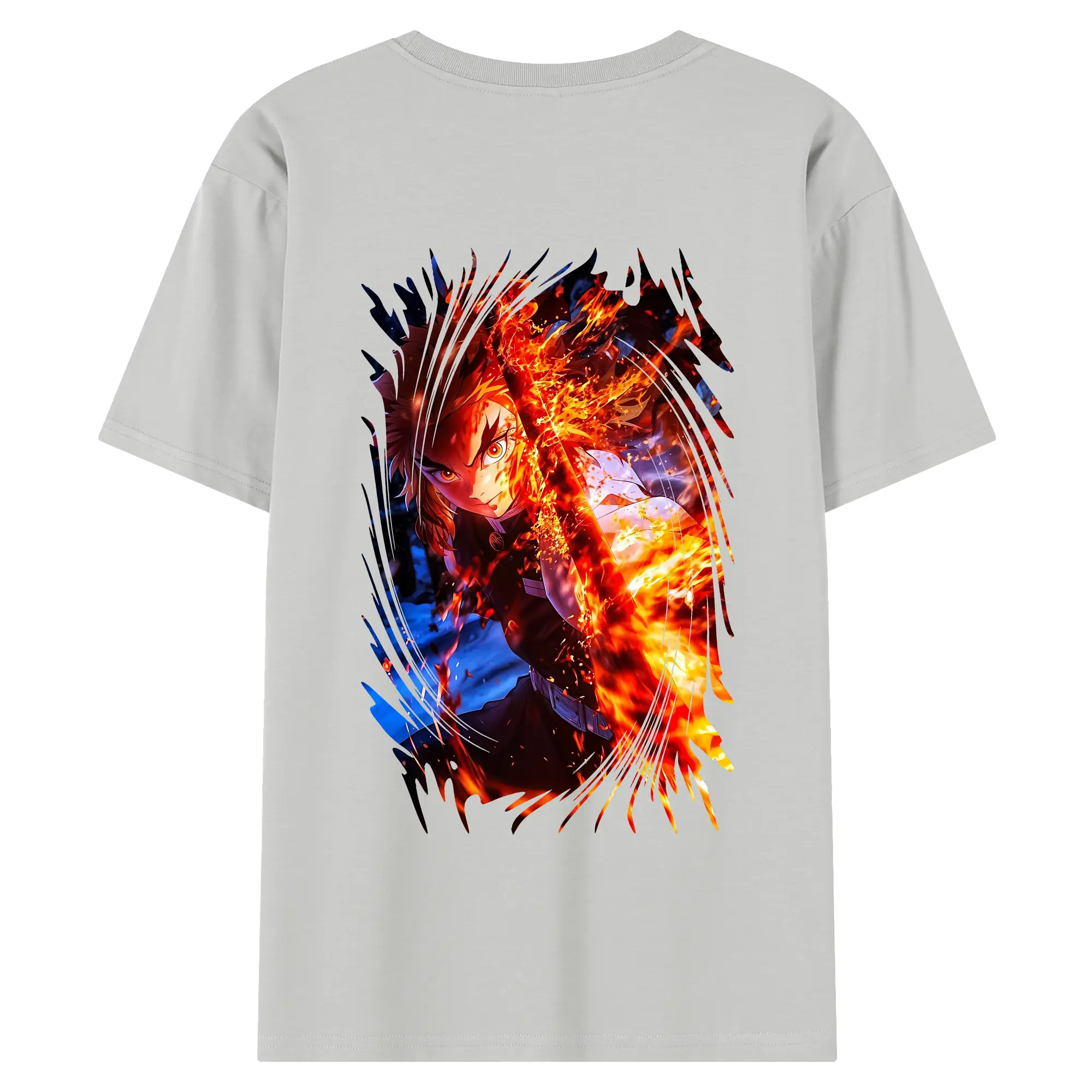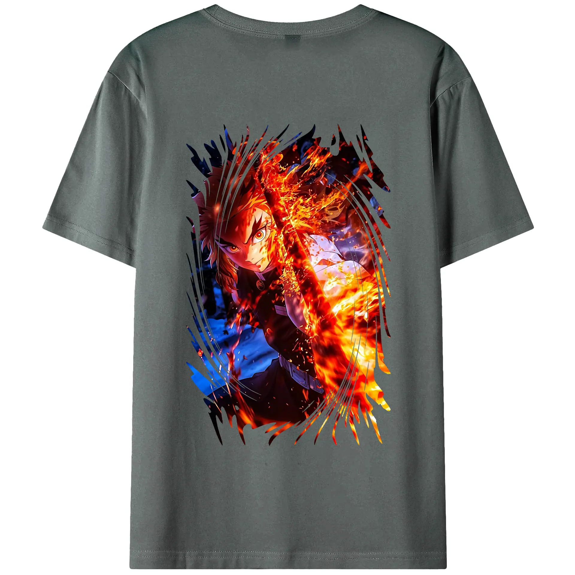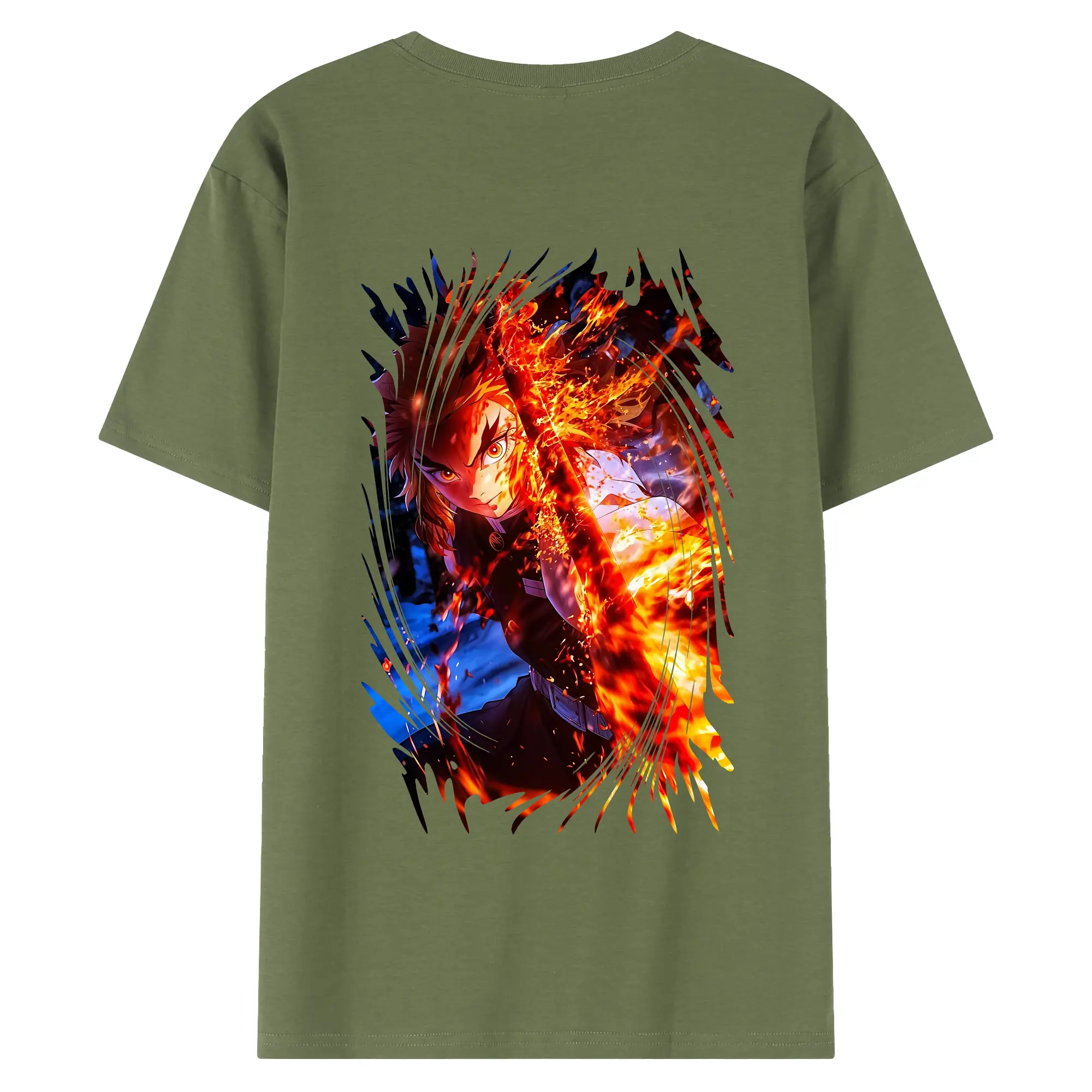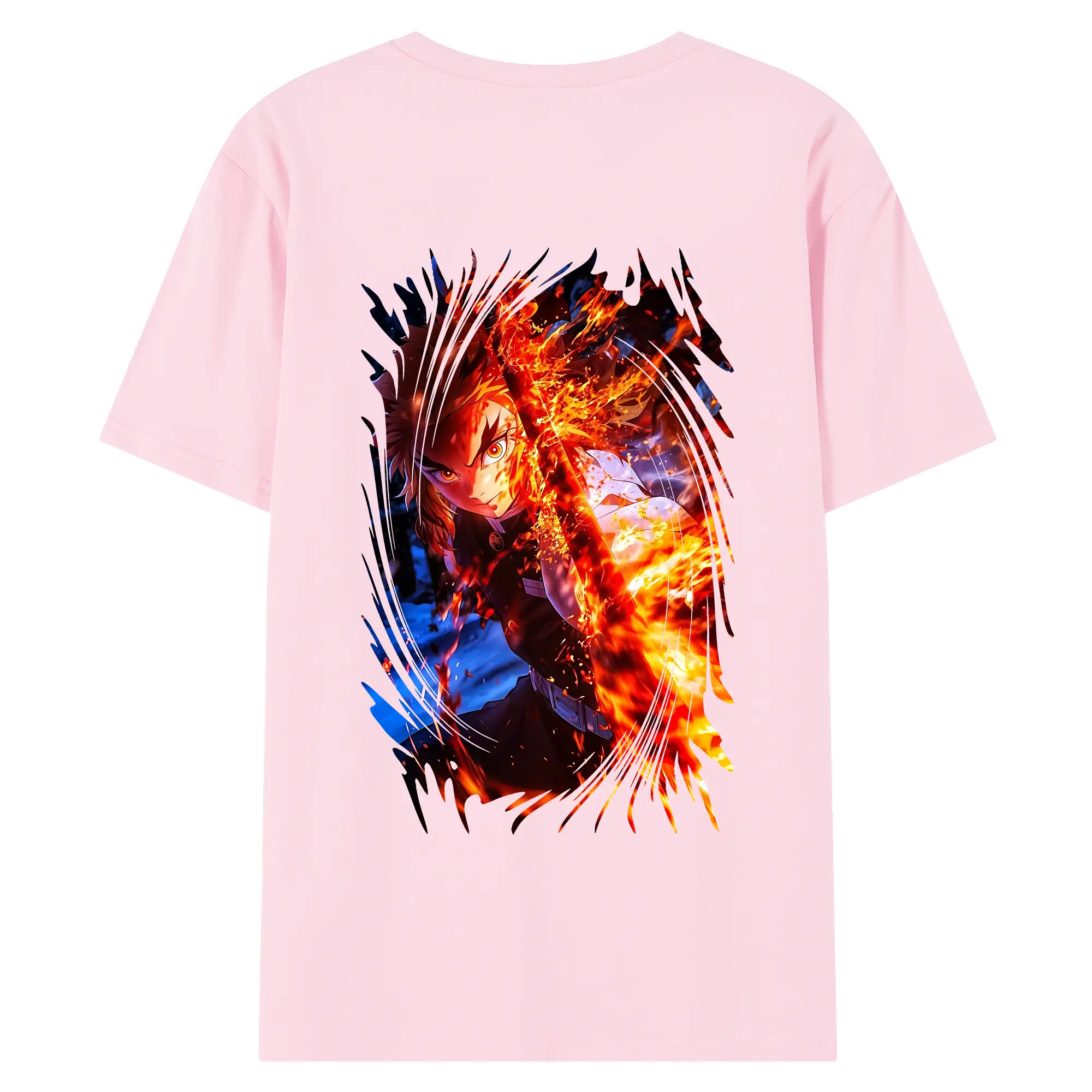 鬼滅の刃 グッズ,煉獄 杏寿郎 - 綿100% 半袖Tシャツ ・ フロントプリント ・ 快適 通気性 ・ 日常使い 散歩 スポーツ用