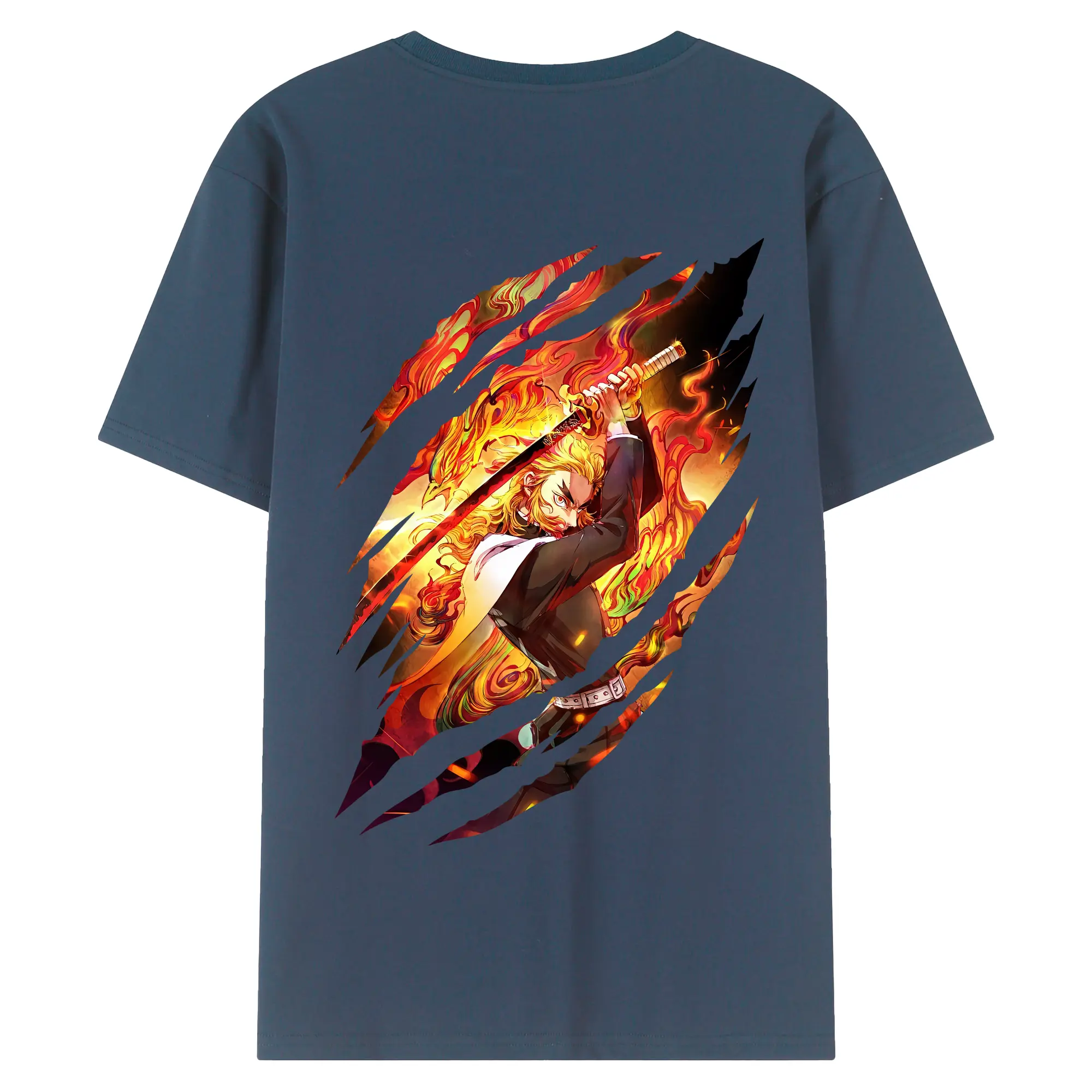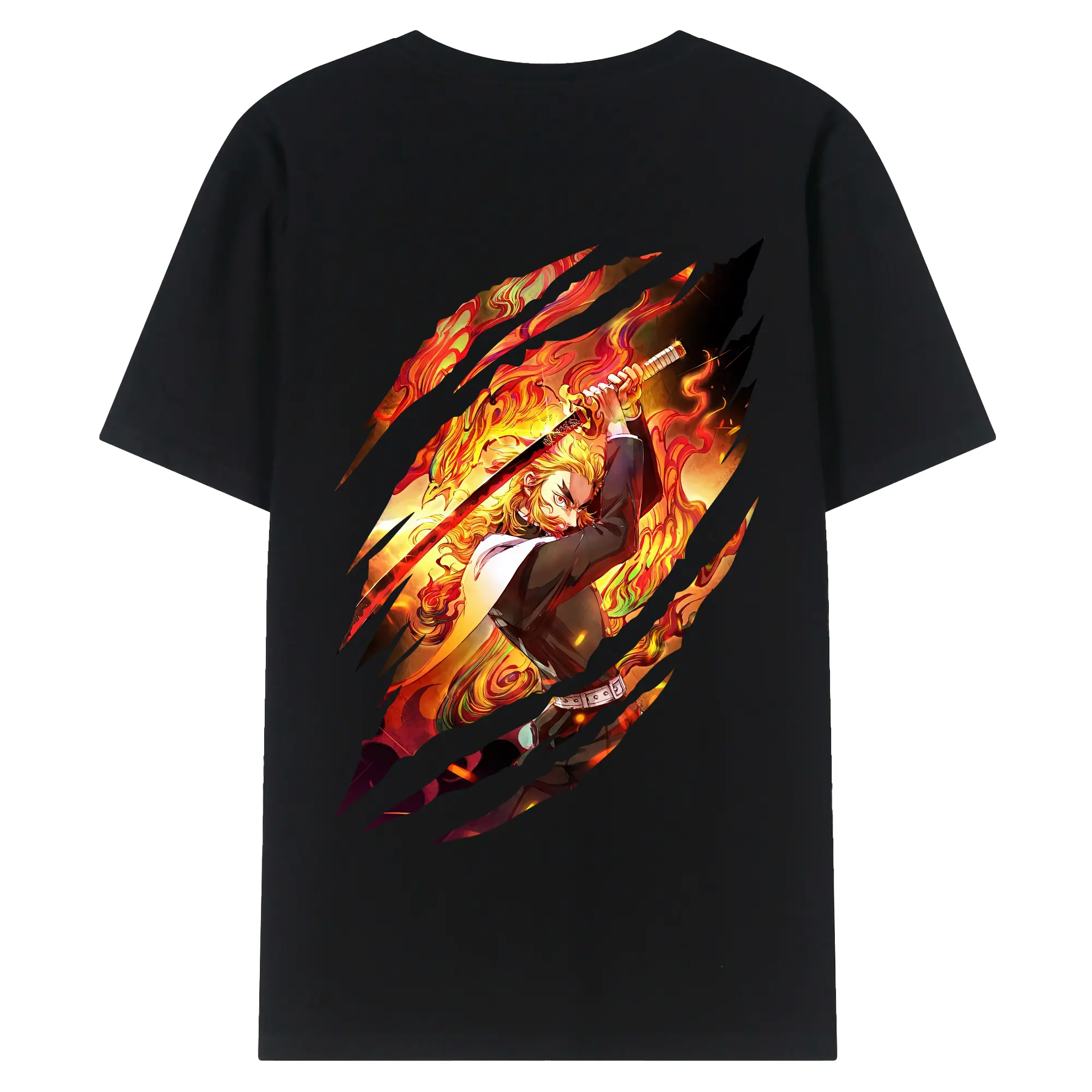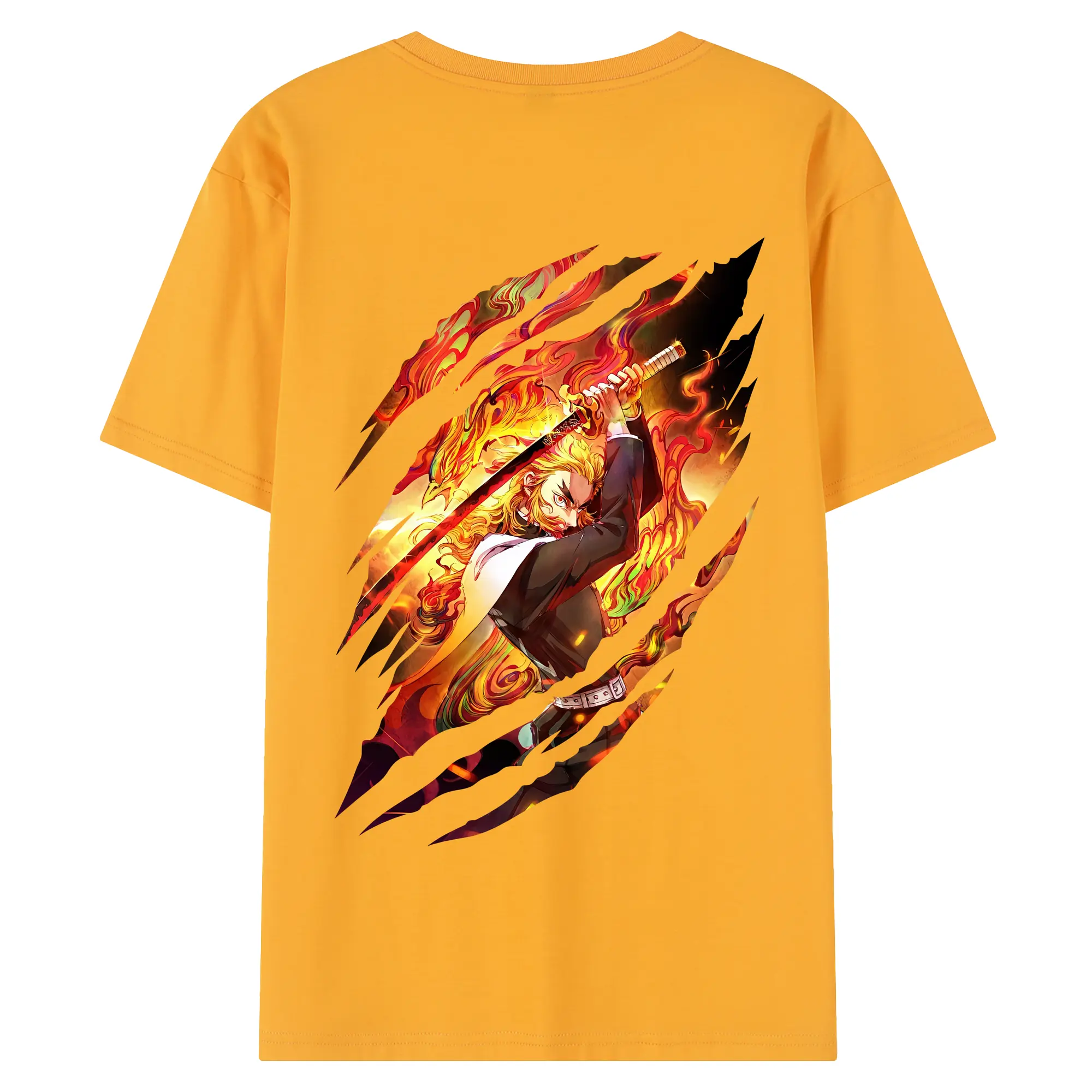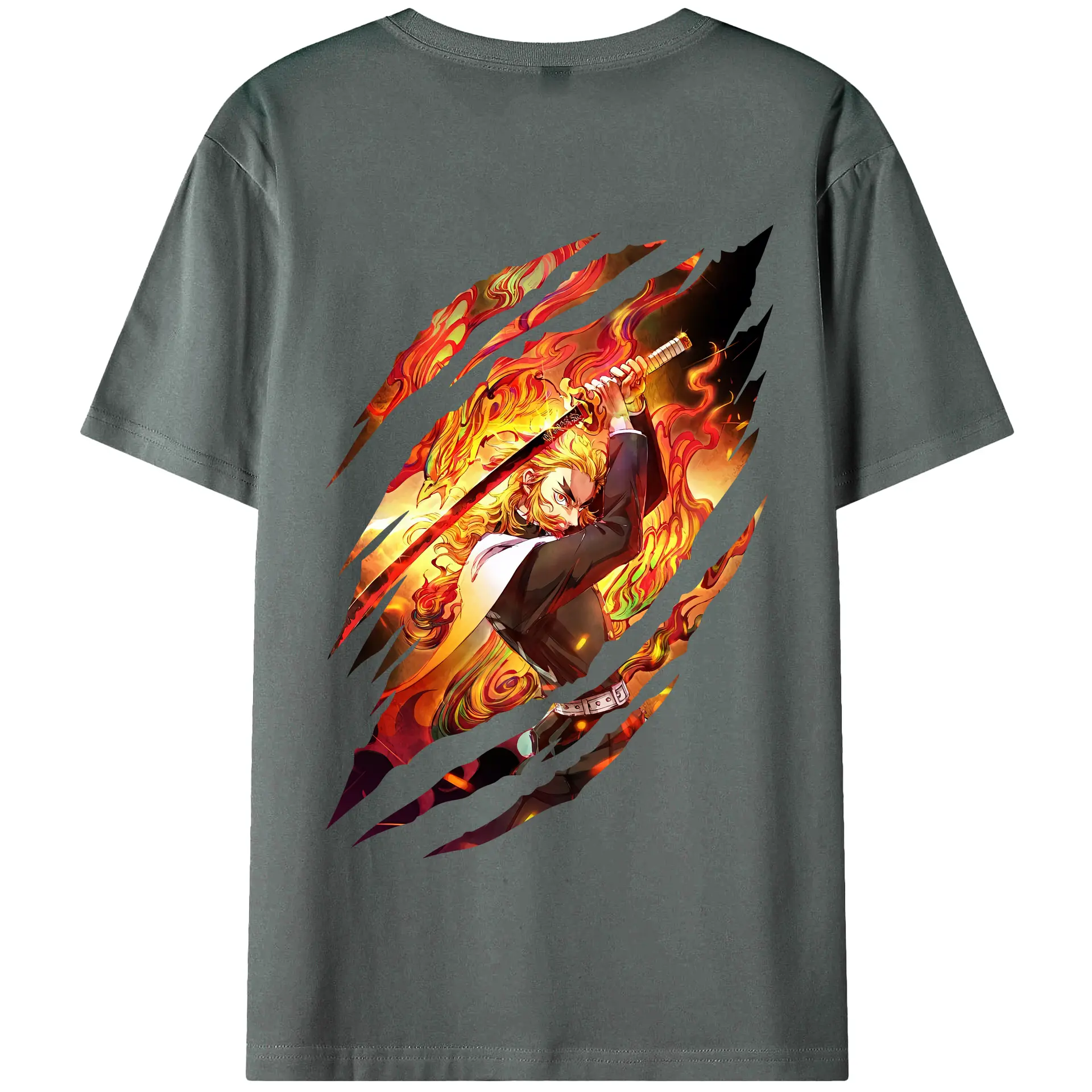 鬼滅の刃 グッズ,煉獄 杏寿郎 - 綿100% 半袖Tシャツ ・ フロントプリント ・ 快適 通気性 ・ 日常使い 散歩 スポーツ用