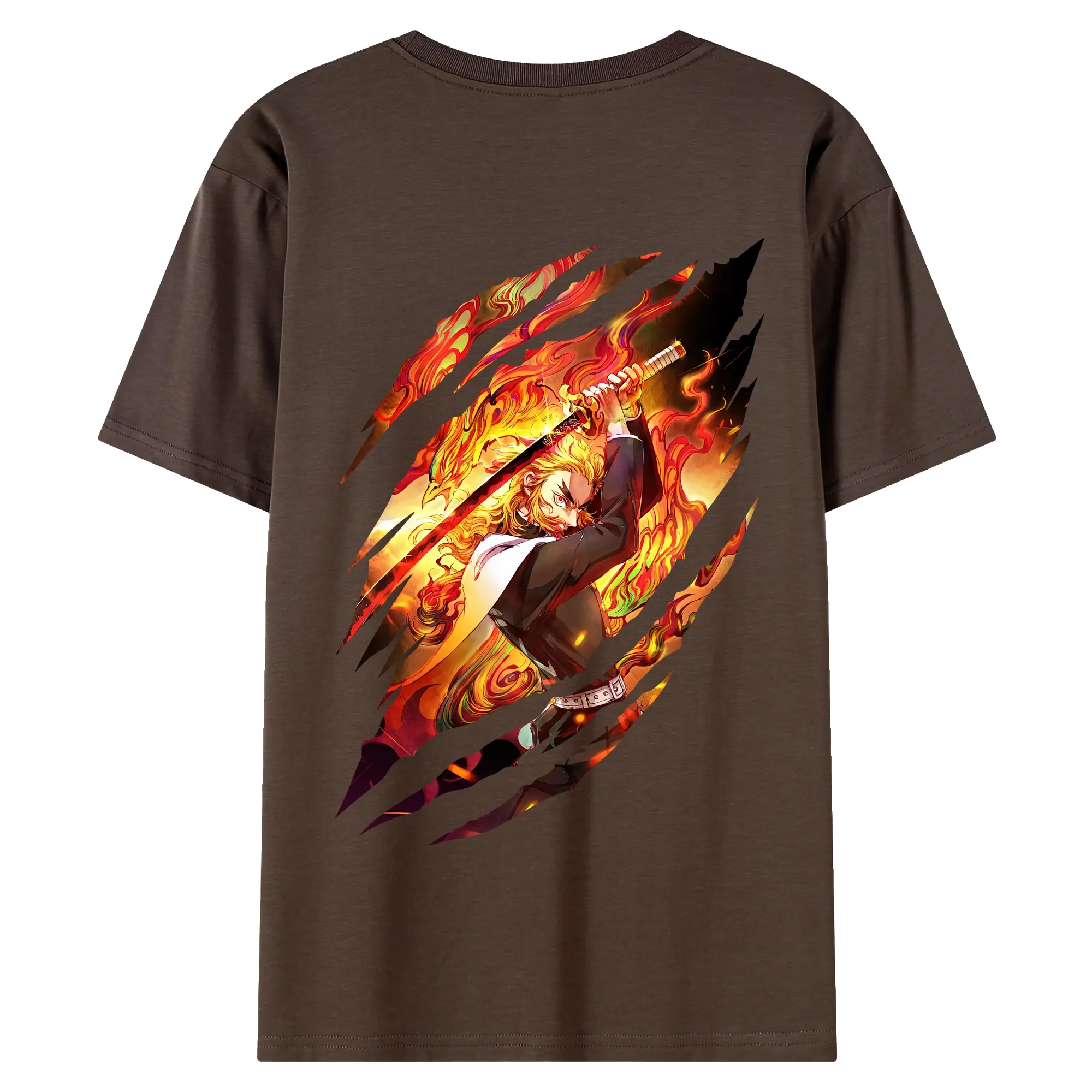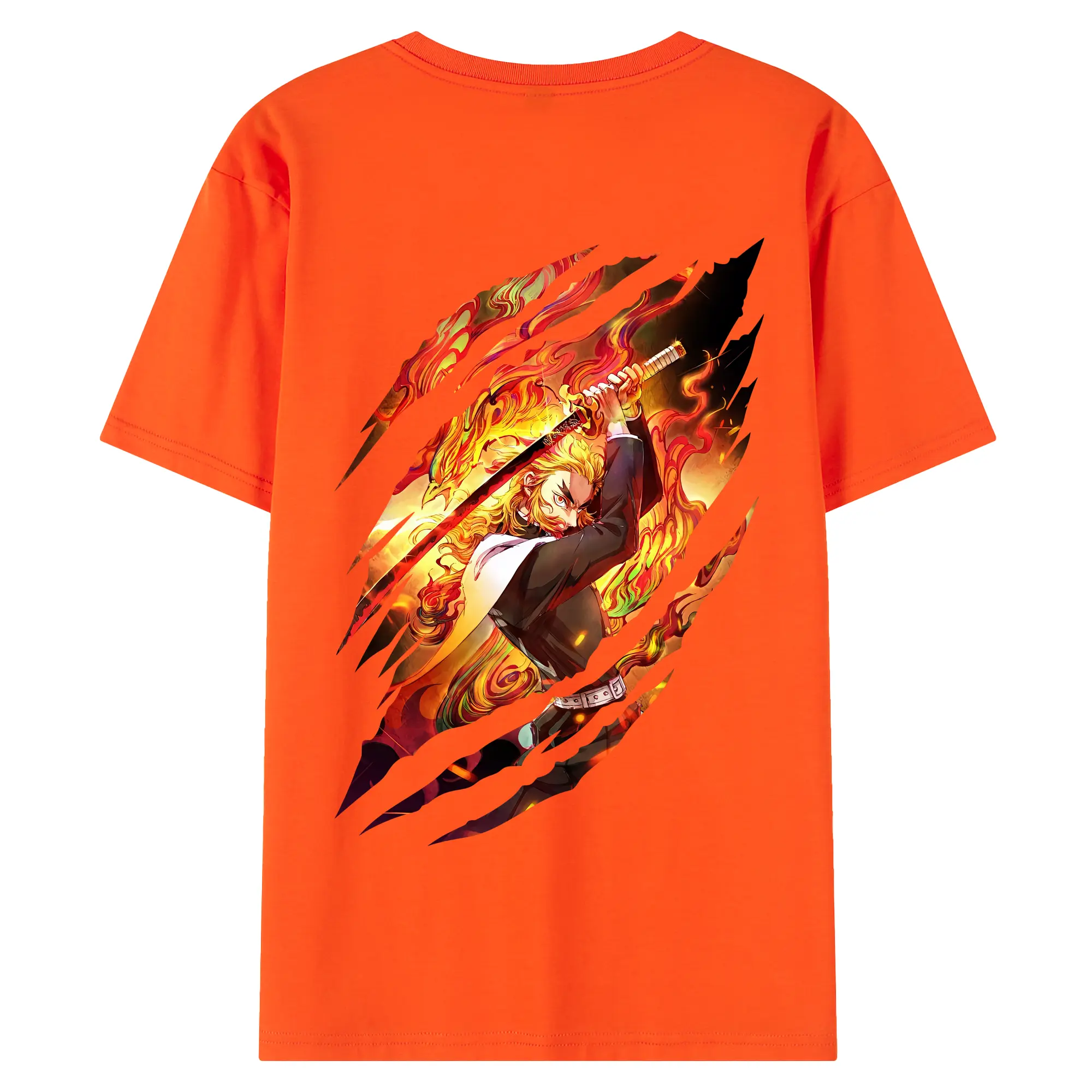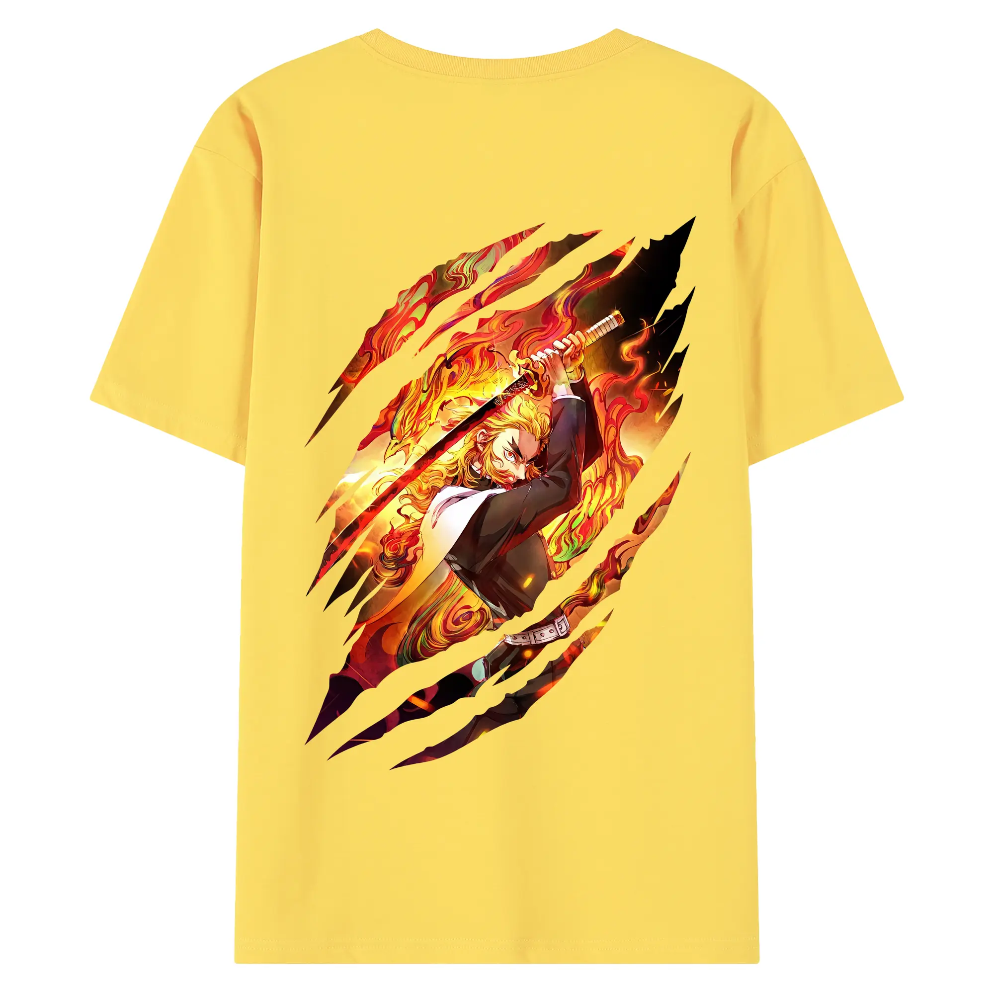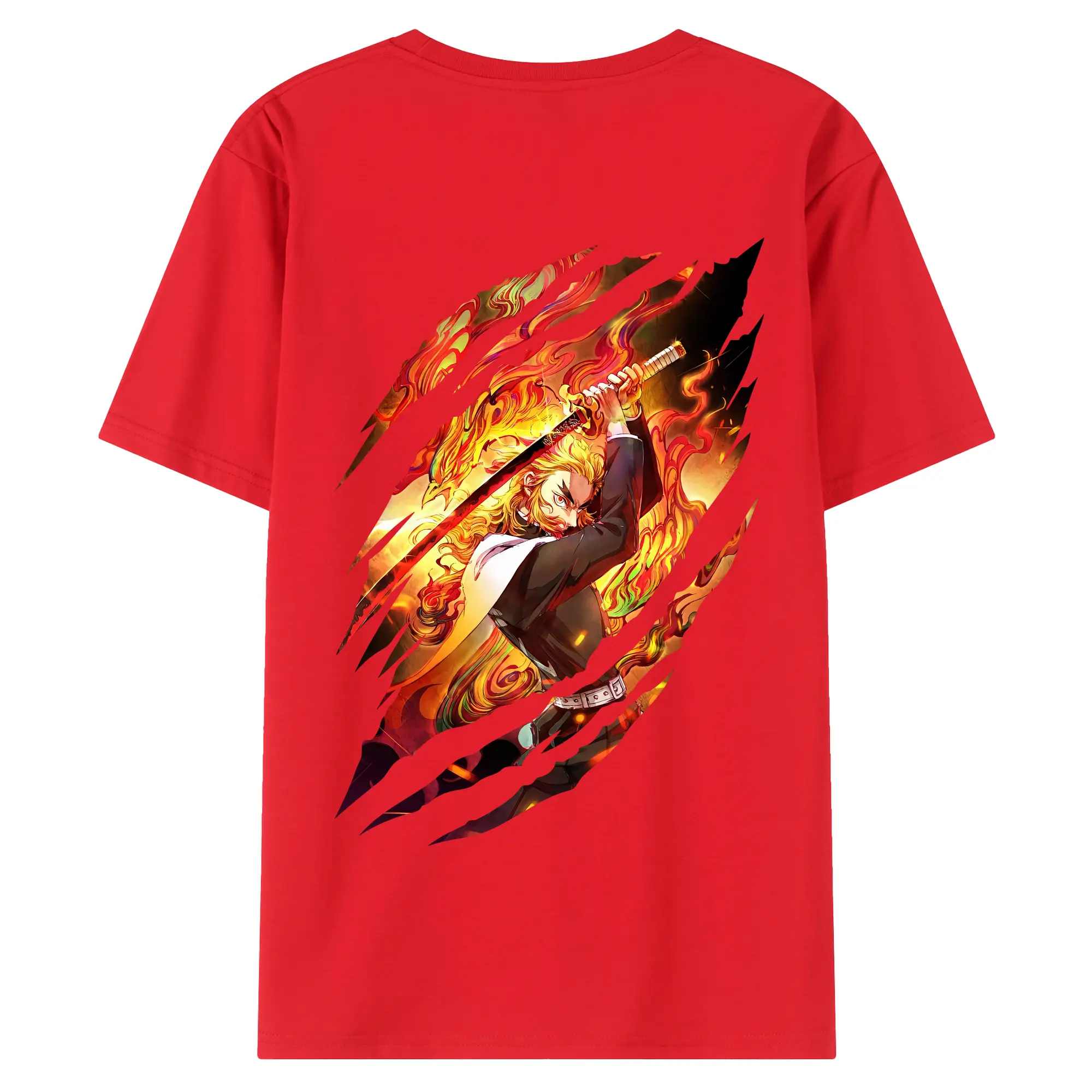 鬼滅の刃 グッズ,煉獄 杏寿郎 - 綿100% 半袖Tシャツ ・ フロントプリント ・ 快適 通気性 ・ 日常使い 散歩 スポーツ用