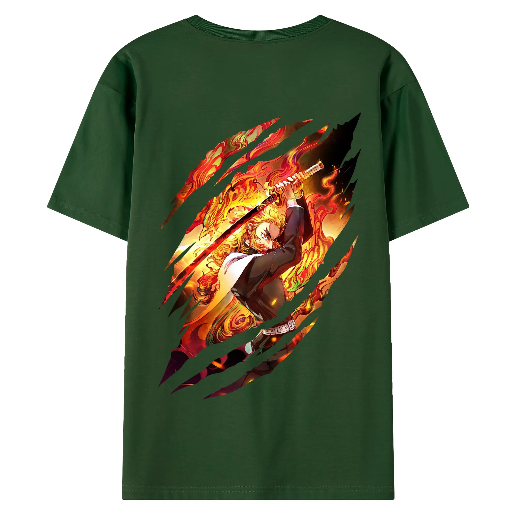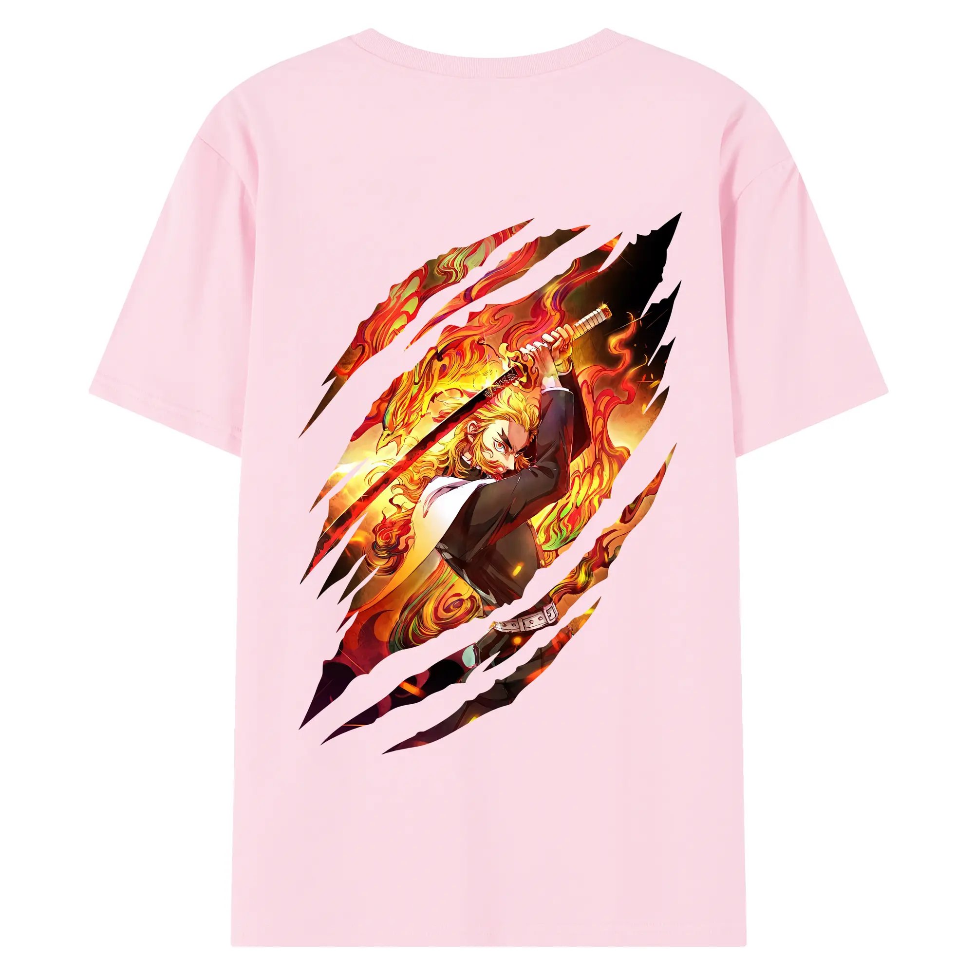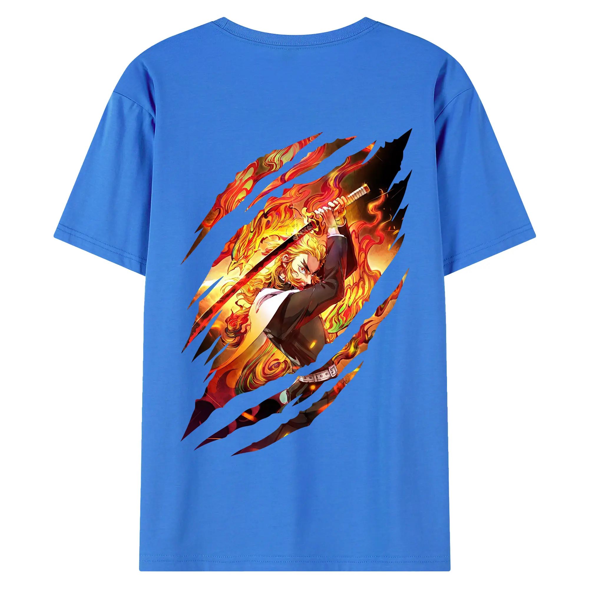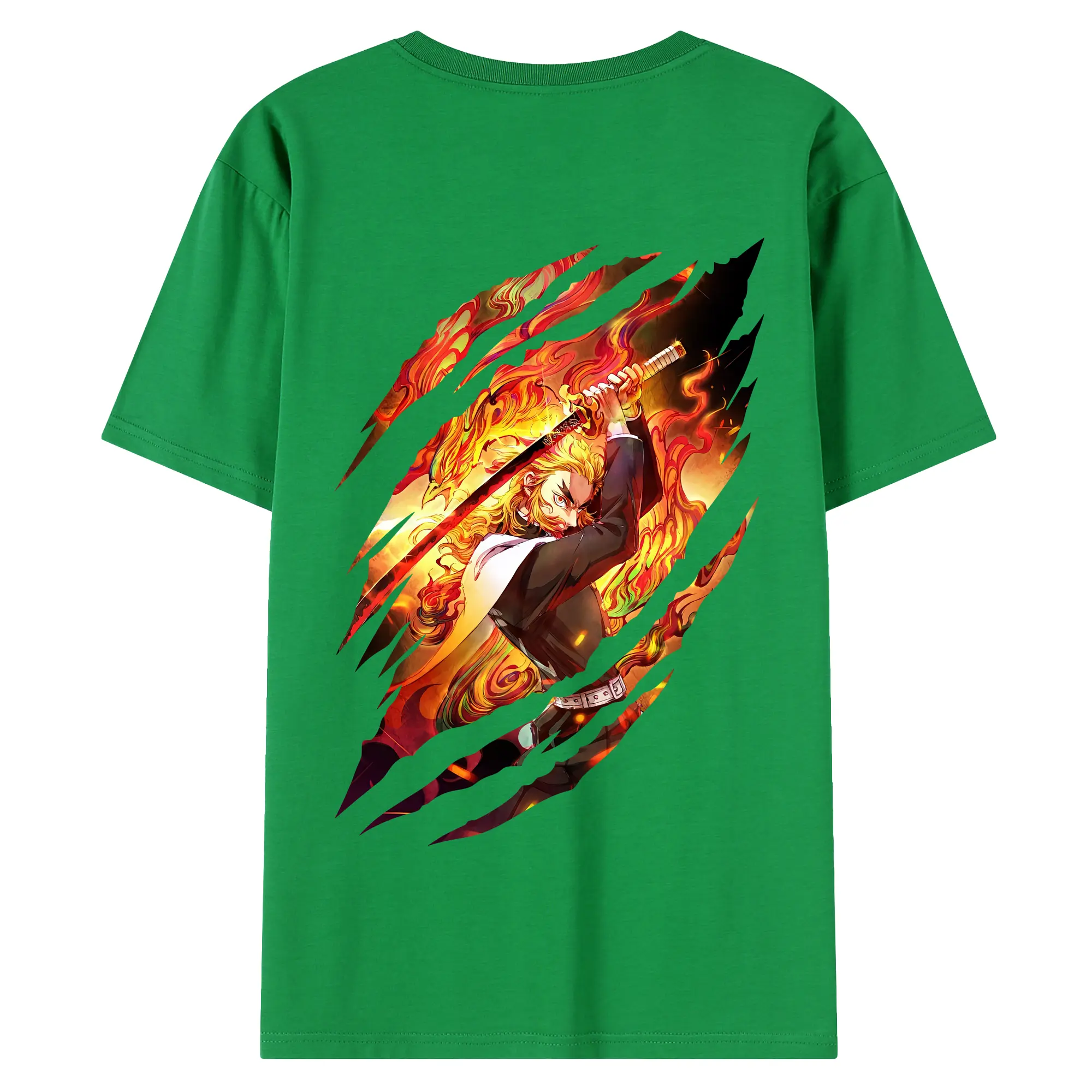 鬼滅の刃 グッズ,煉獄 杏寿郎 - 綿100% 半袖Tシャツ ・ フロントプリント ・ 快適 通気性 ・ 日常使い 散歩 スポーツ用