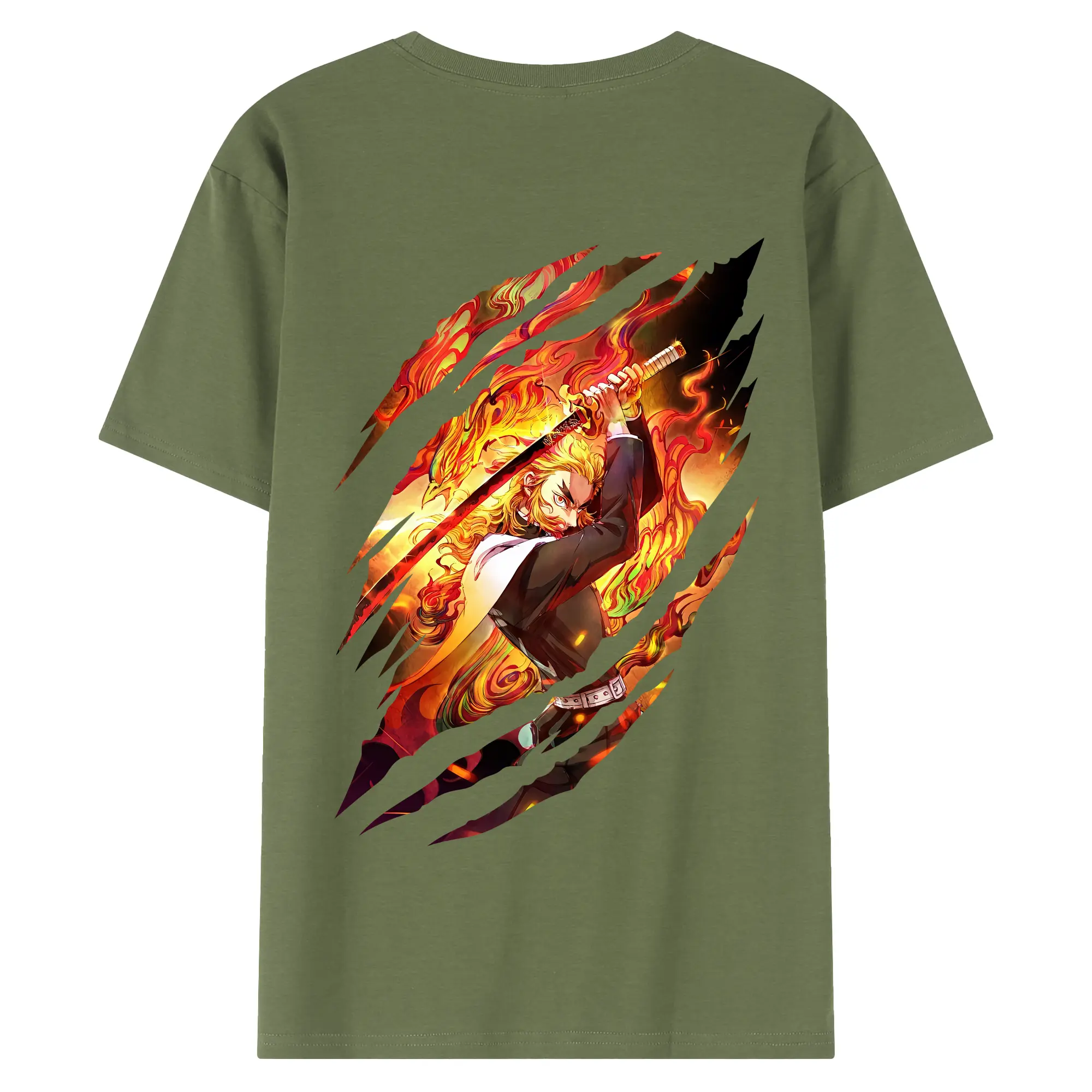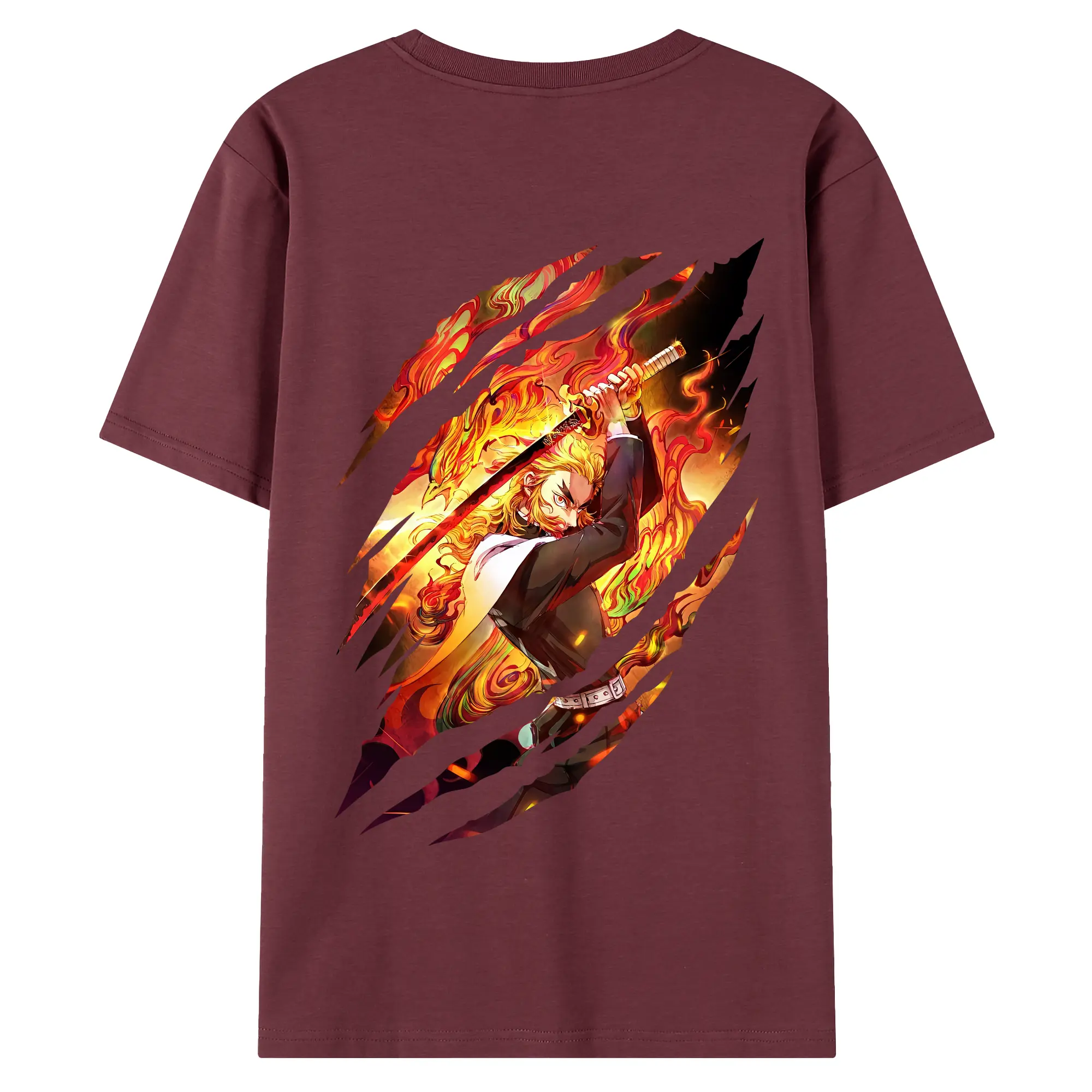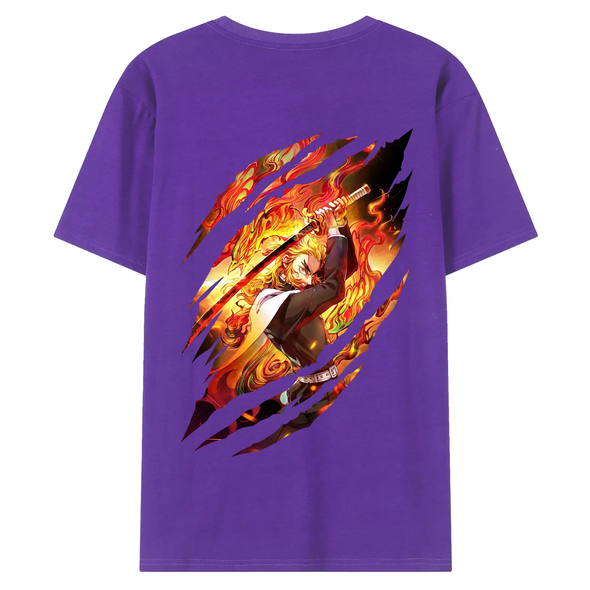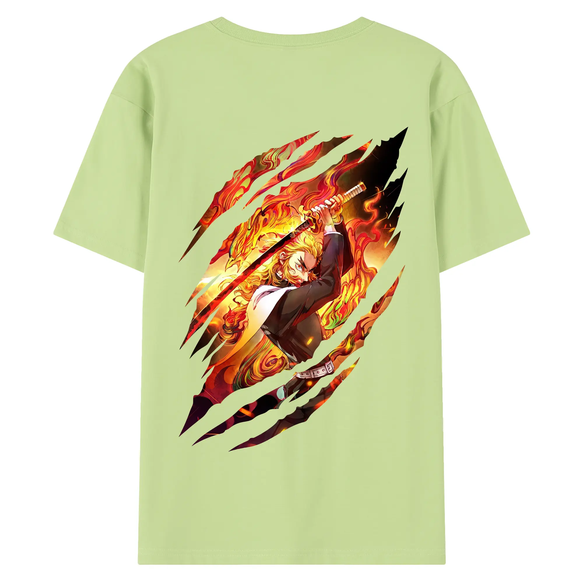 鬼滅の刃 グッズ,煉獄 杏寿郎 - 綿100% 半袖Tシャツ ・ フロントプリント ・ 快適 通気性 ・ 日常使い 散歩 スポーツ用