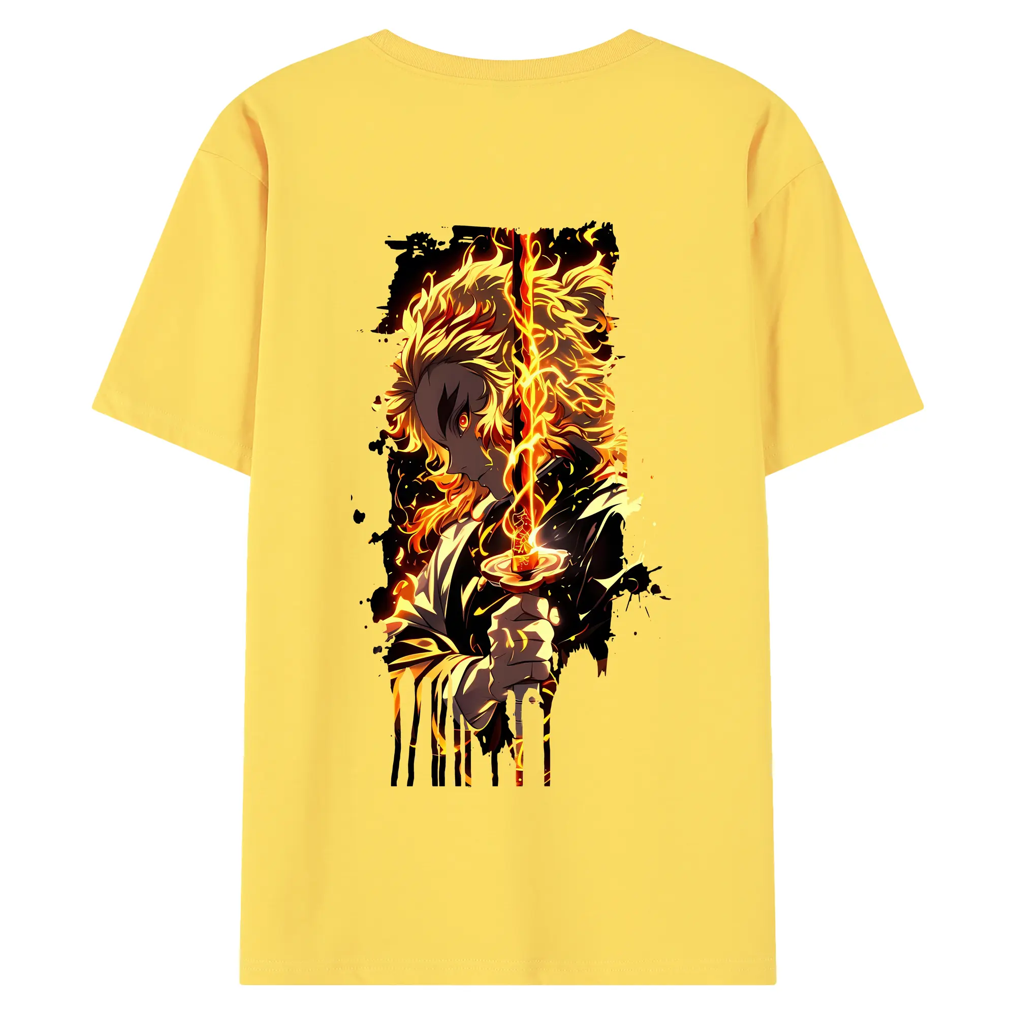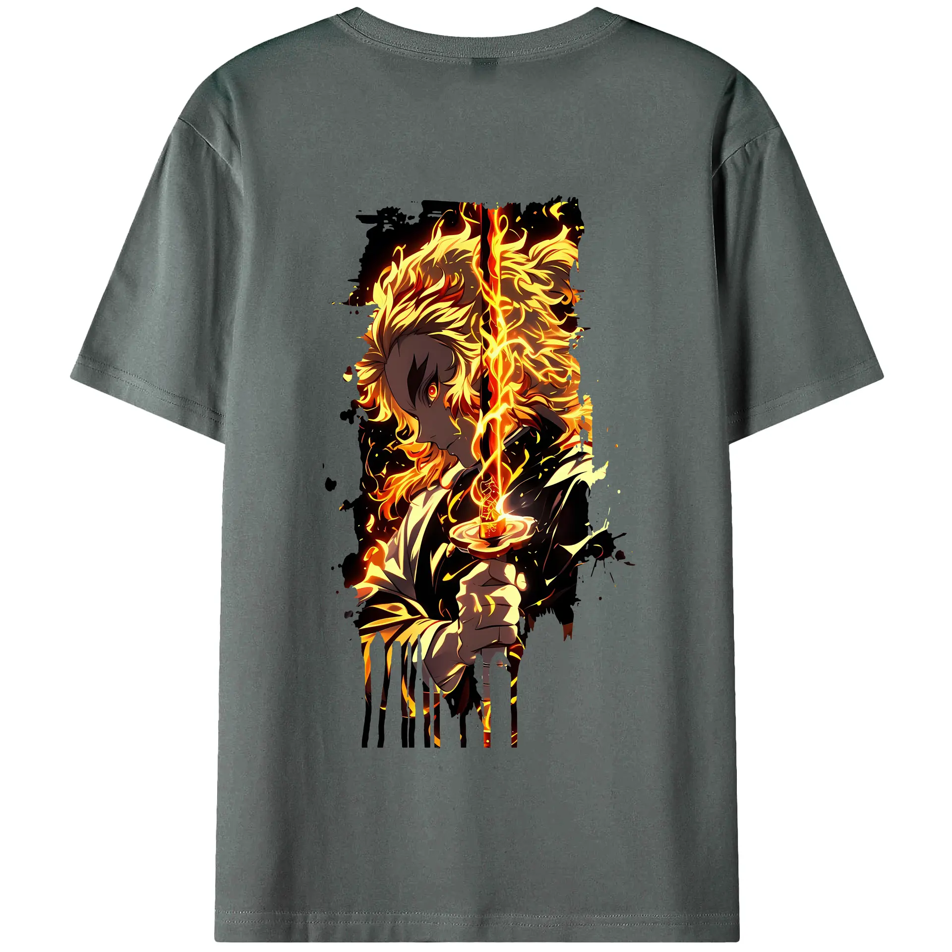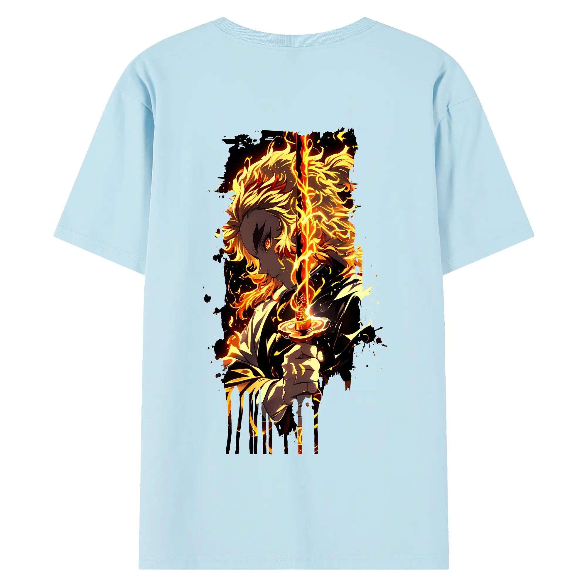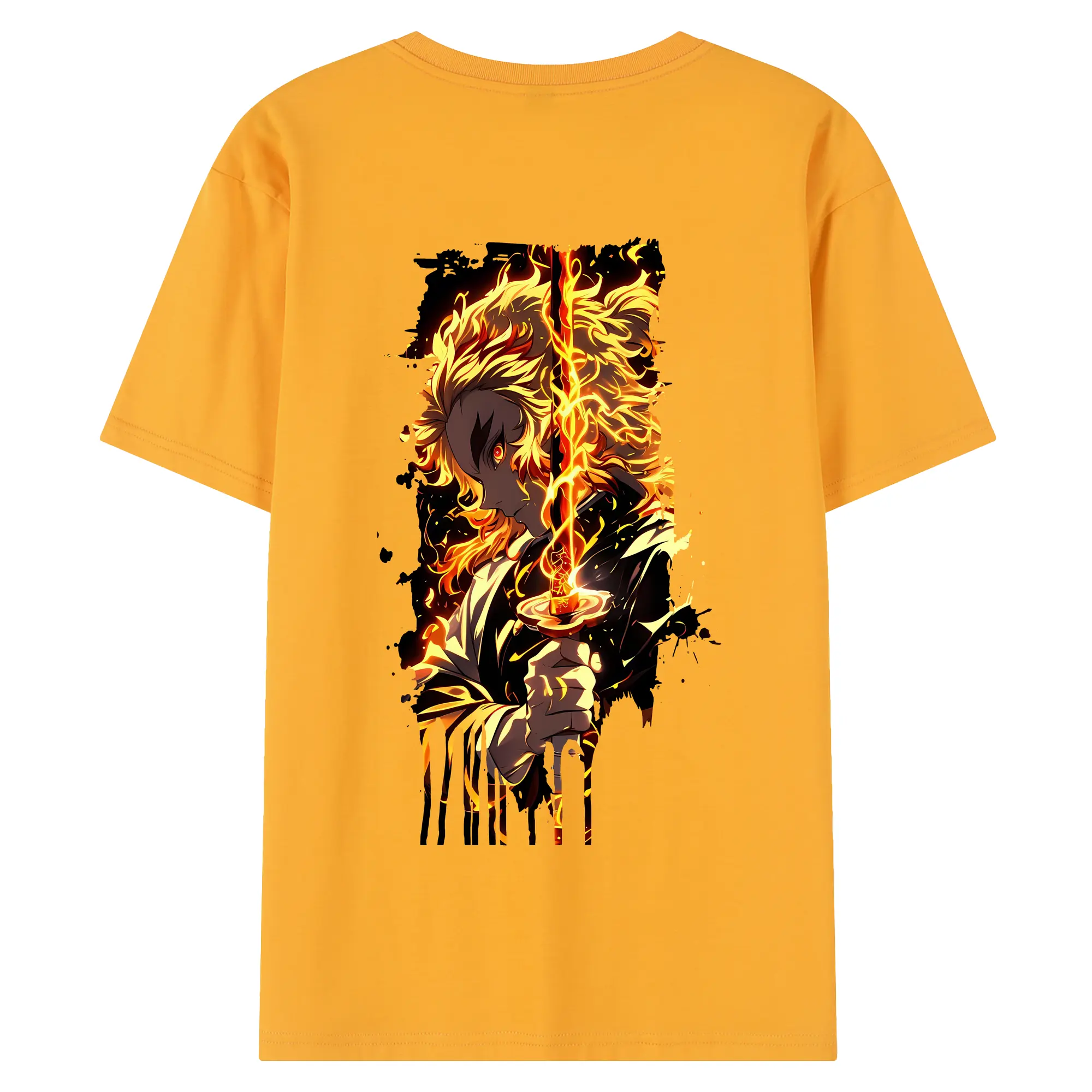 鬼滅の刃 グッズ,煉獄 杏寿郎 - 綿100% 半袖Tシャツ ・ フロントプリント ・ 快適 通気性 ・ 日常使い 散歩 スポーツ用