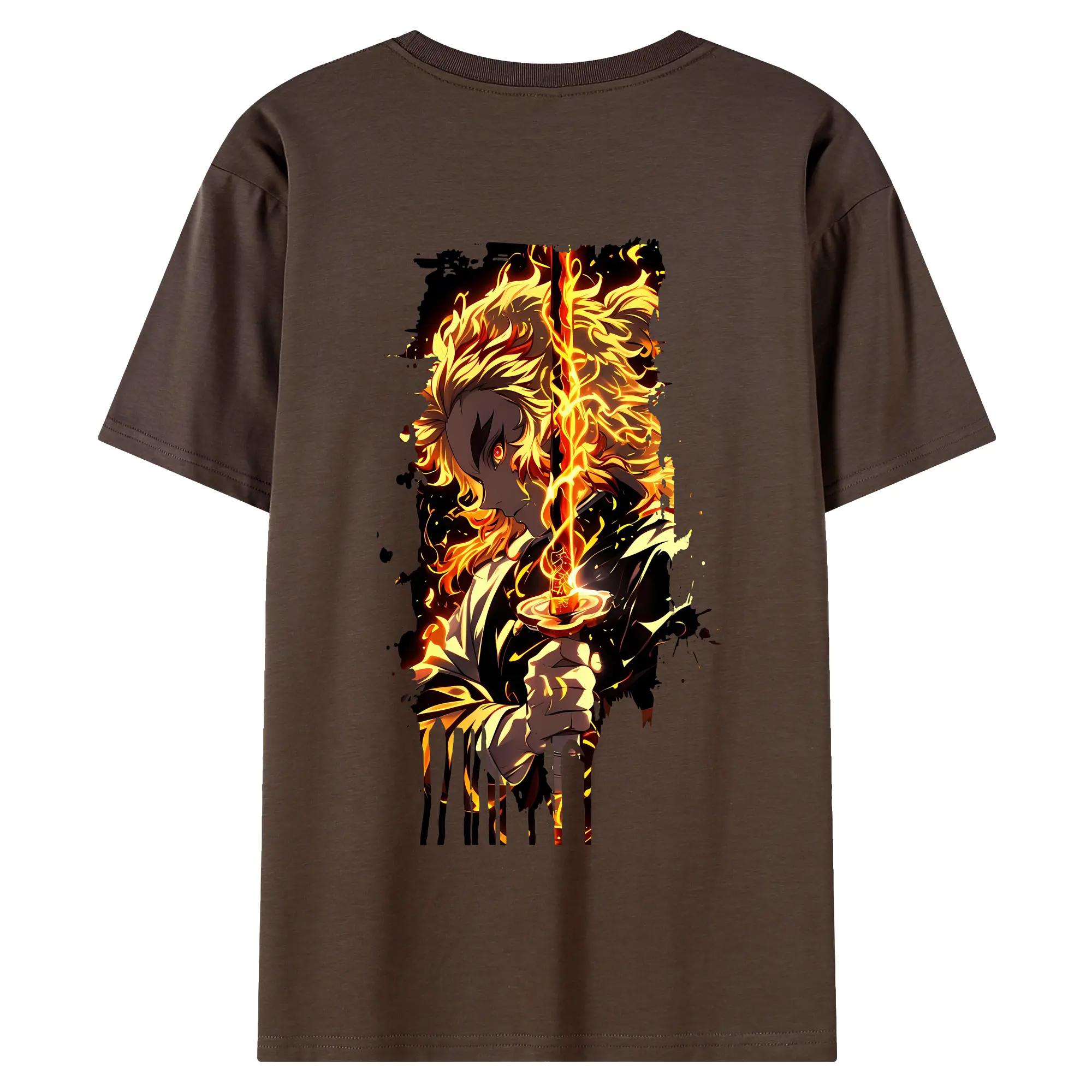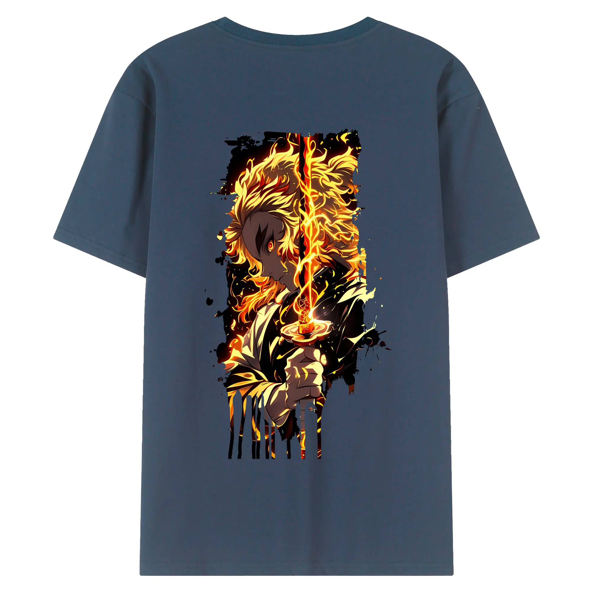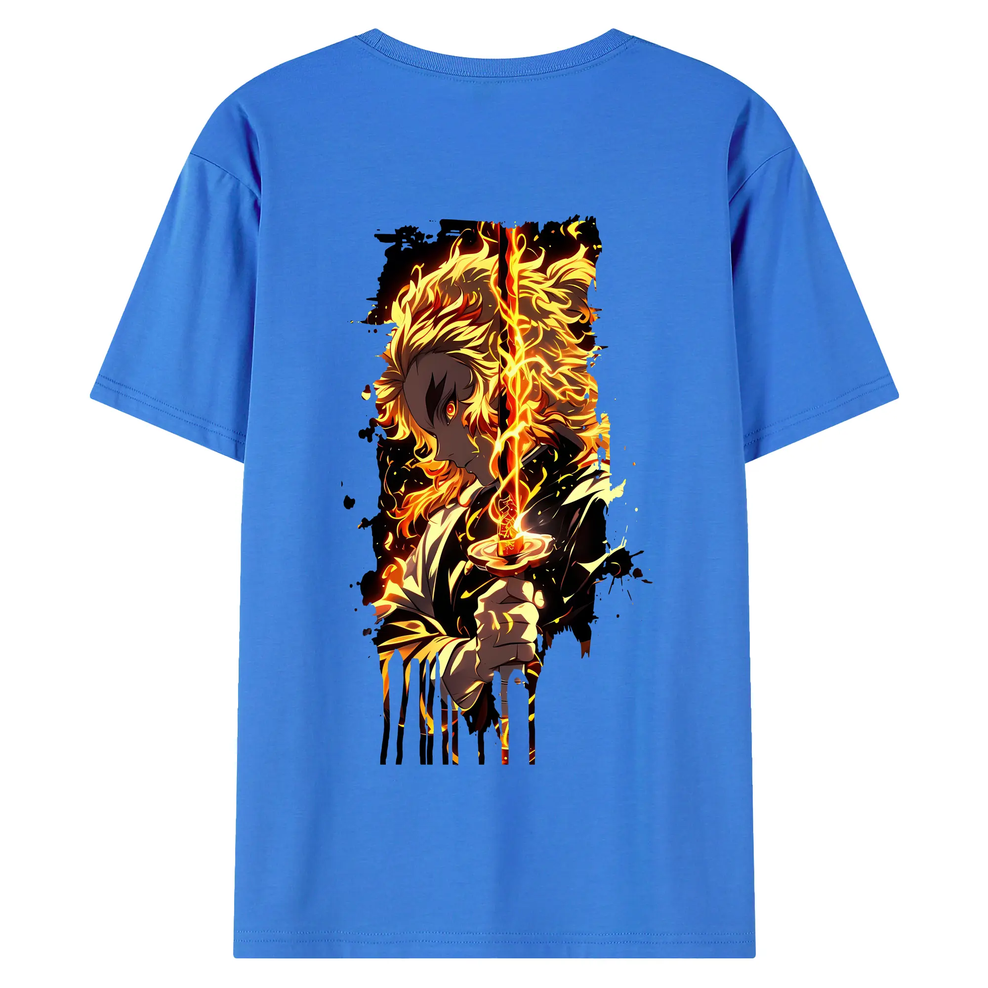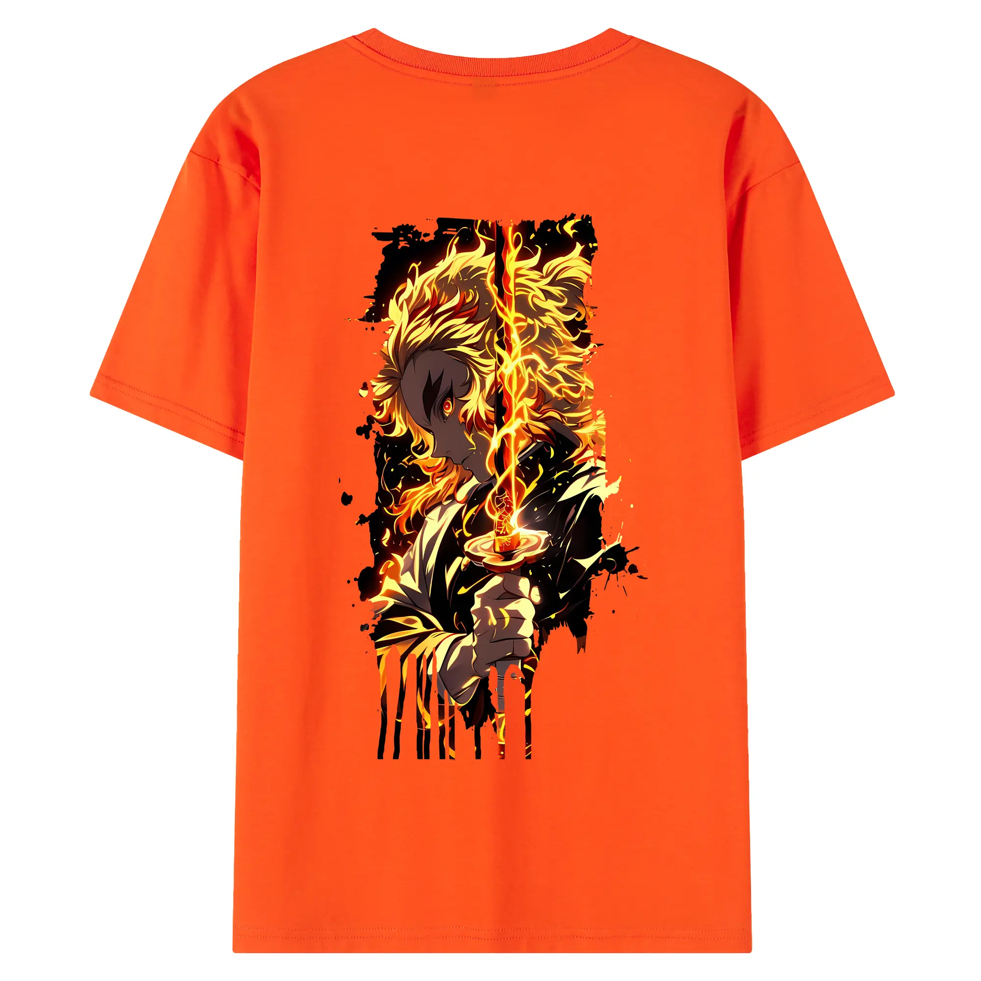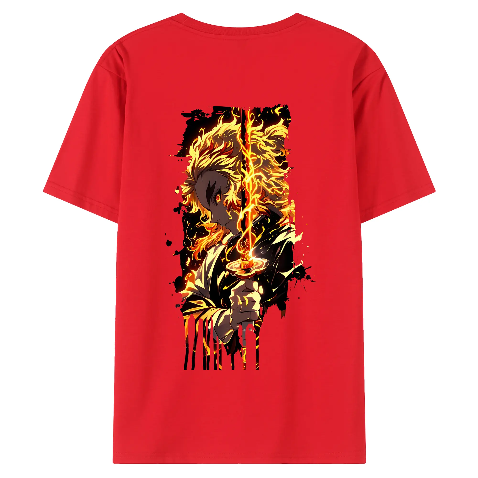 鬼滅の刃 グッズ,煉獄 杏寿郎 - 綿100% 半袖Tシャツ ・ フロントプリント ・ 快適 通気性 ・ 日常使い 散歩 スポーツ用