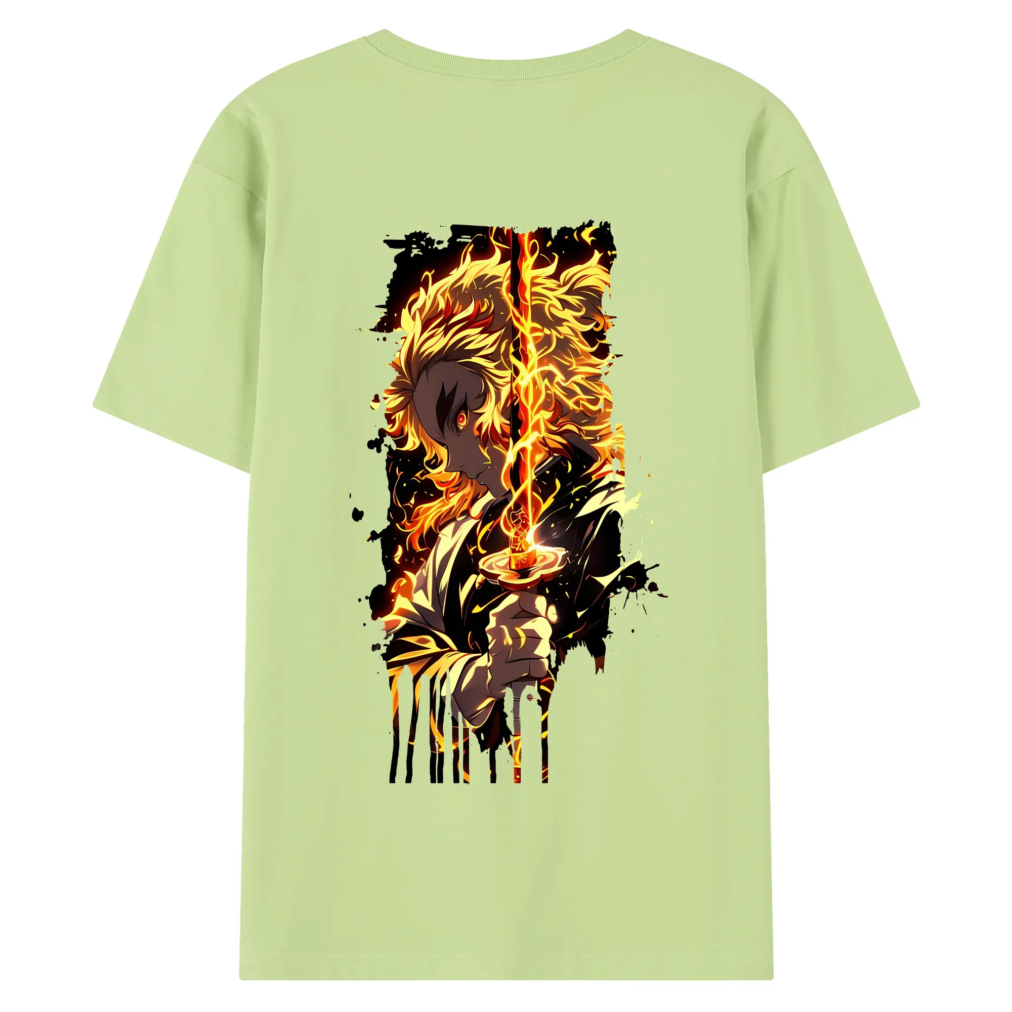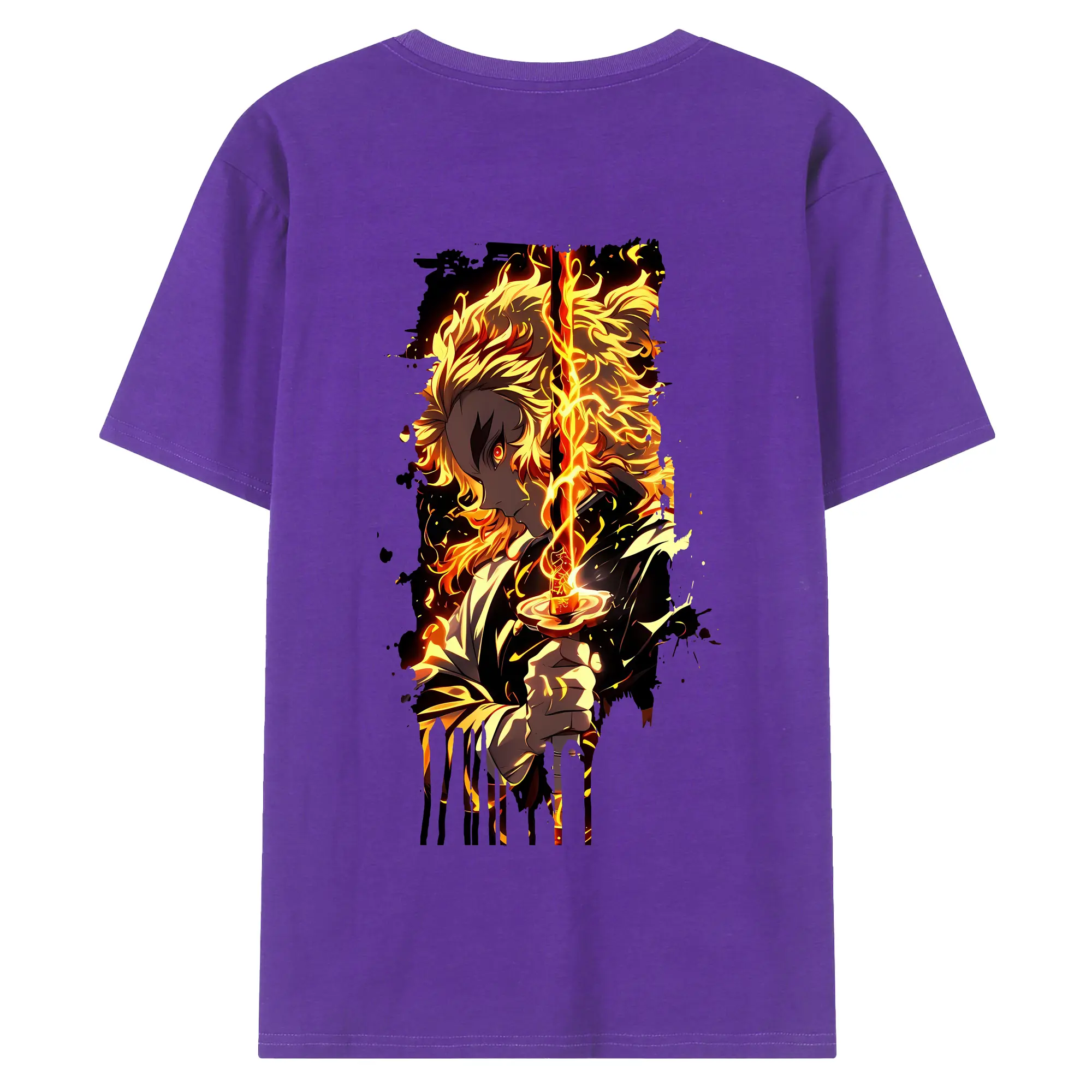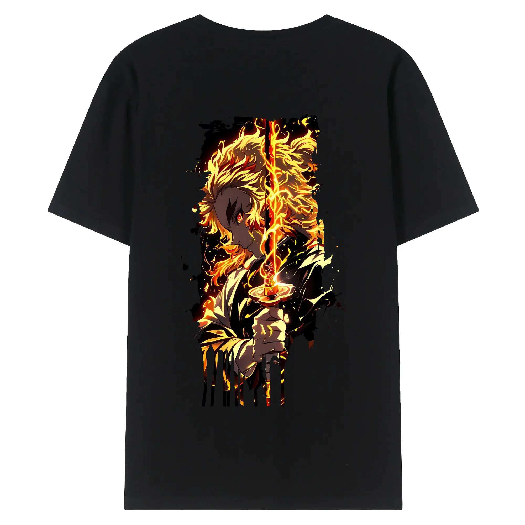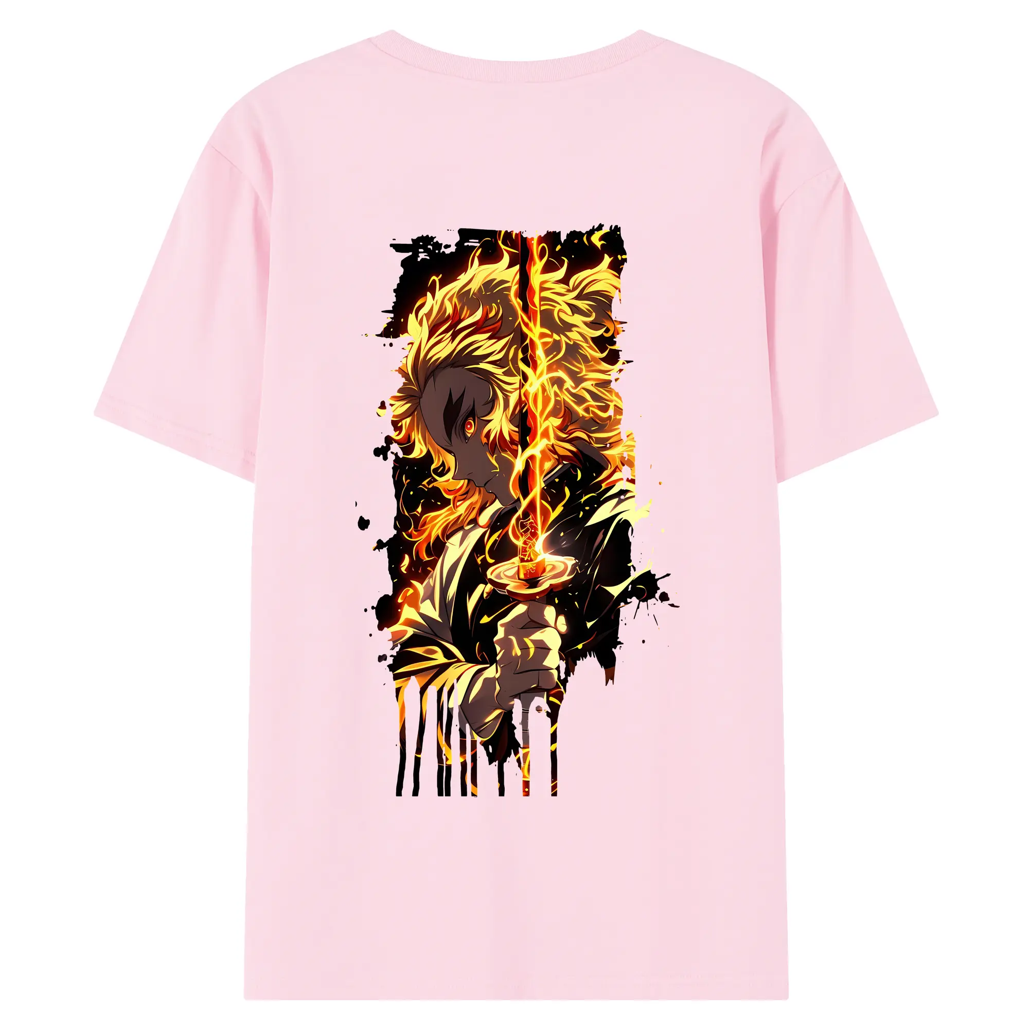 鬼滅の刃 グッズ,煉獄 杏寿郎 - 綿100% 半袖Tシャツ ・ フロントプリント ・ 快適 通気性 ・ 日常使い 散歩 スポーツ用