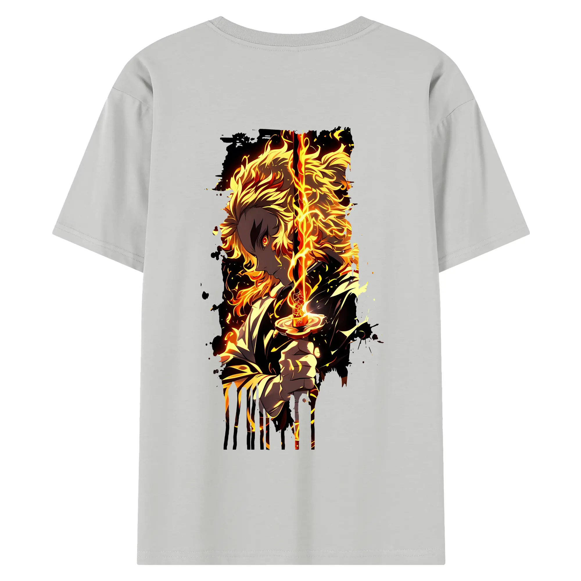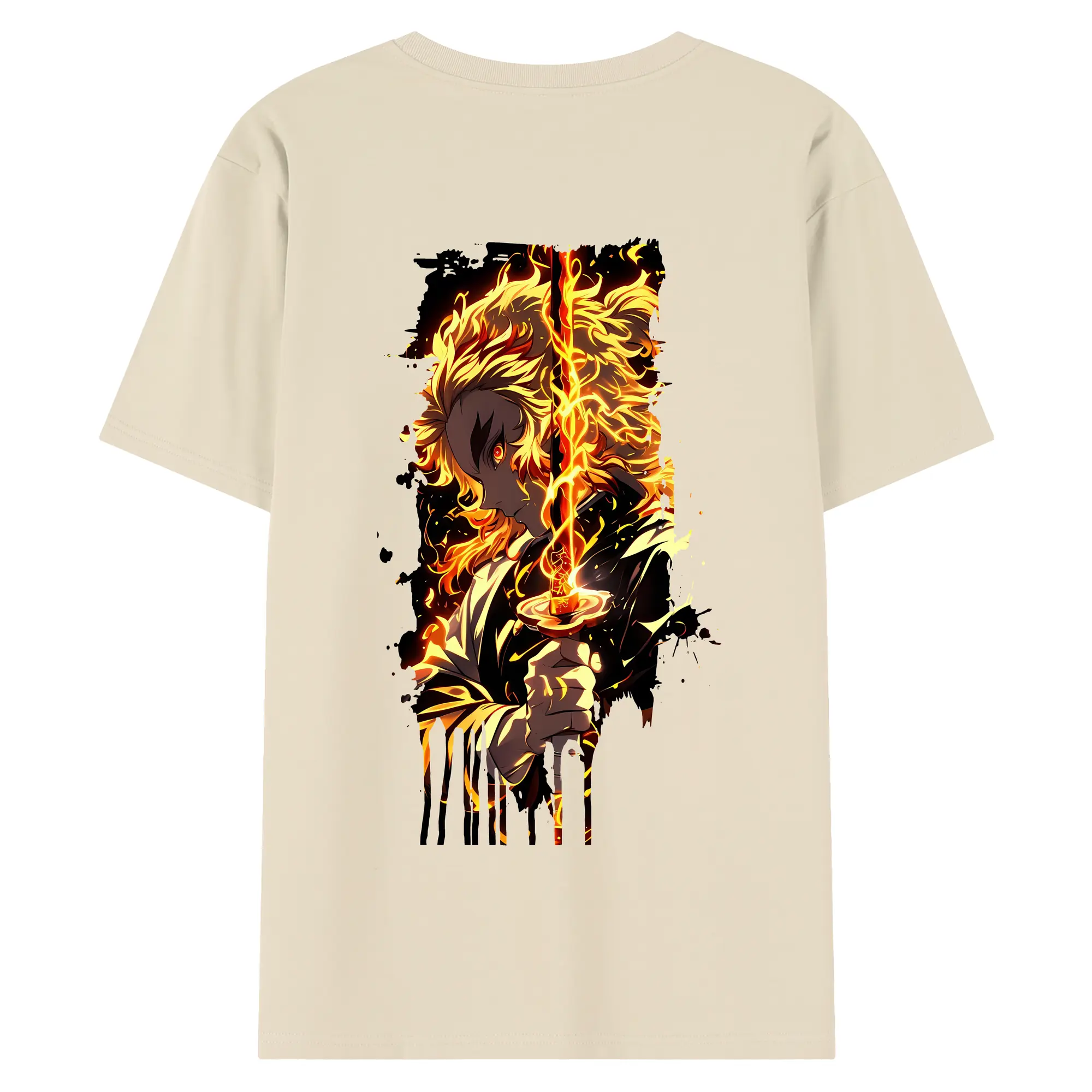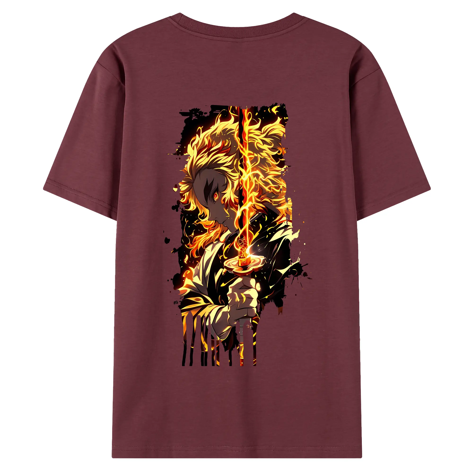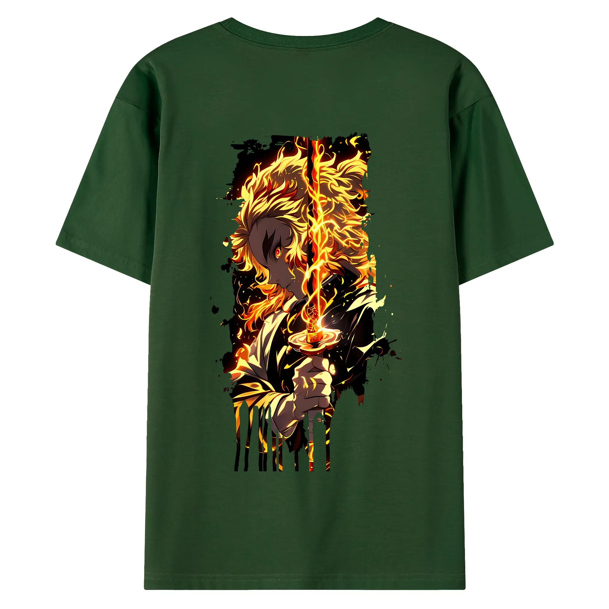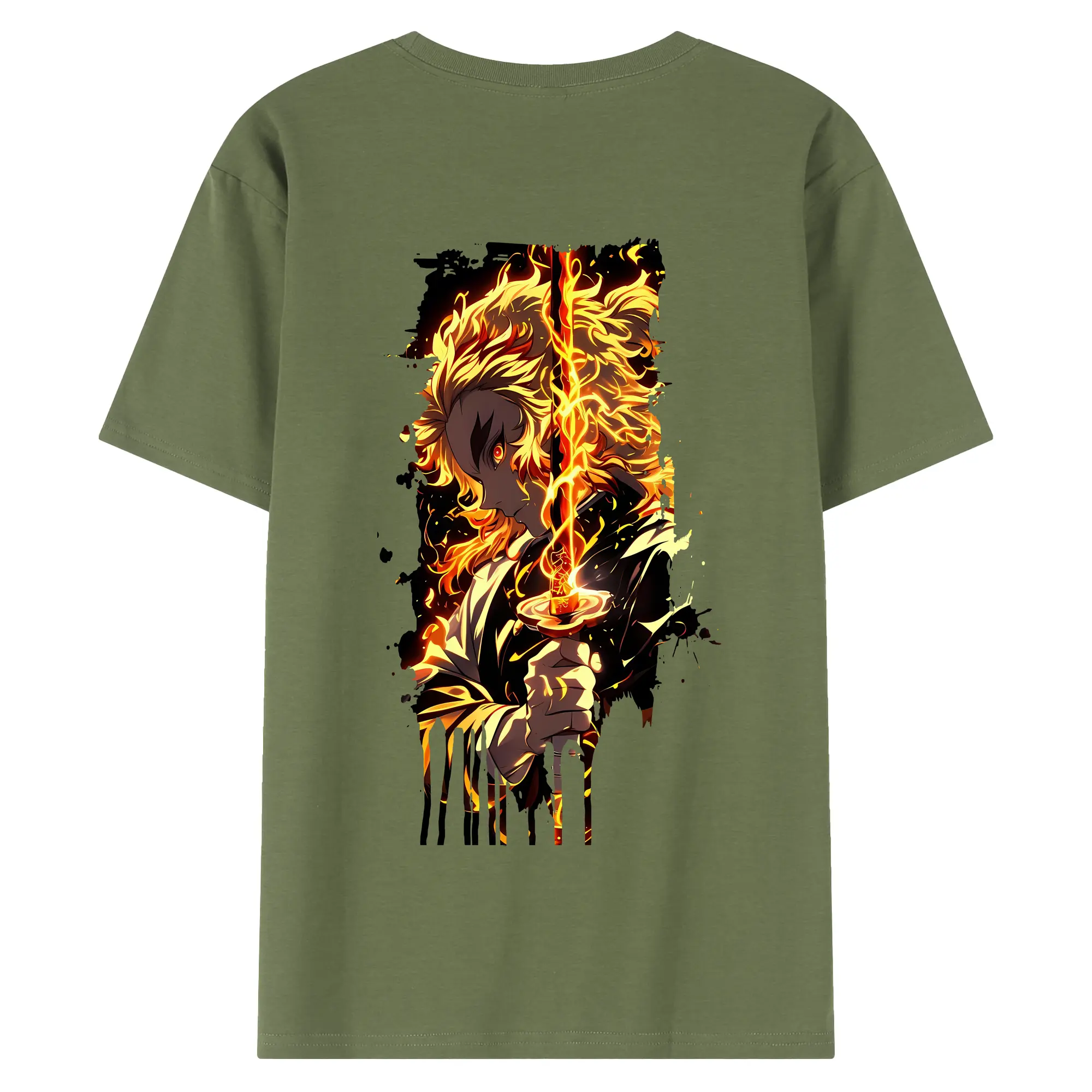 鬼滅の刃 グッズ,煉獄 杏寿郎 - 綿100% 半袖Tシャツ ・ フロントプリント ・ 快適 通気性 ・ 日常使い 散歩 スポーツ用