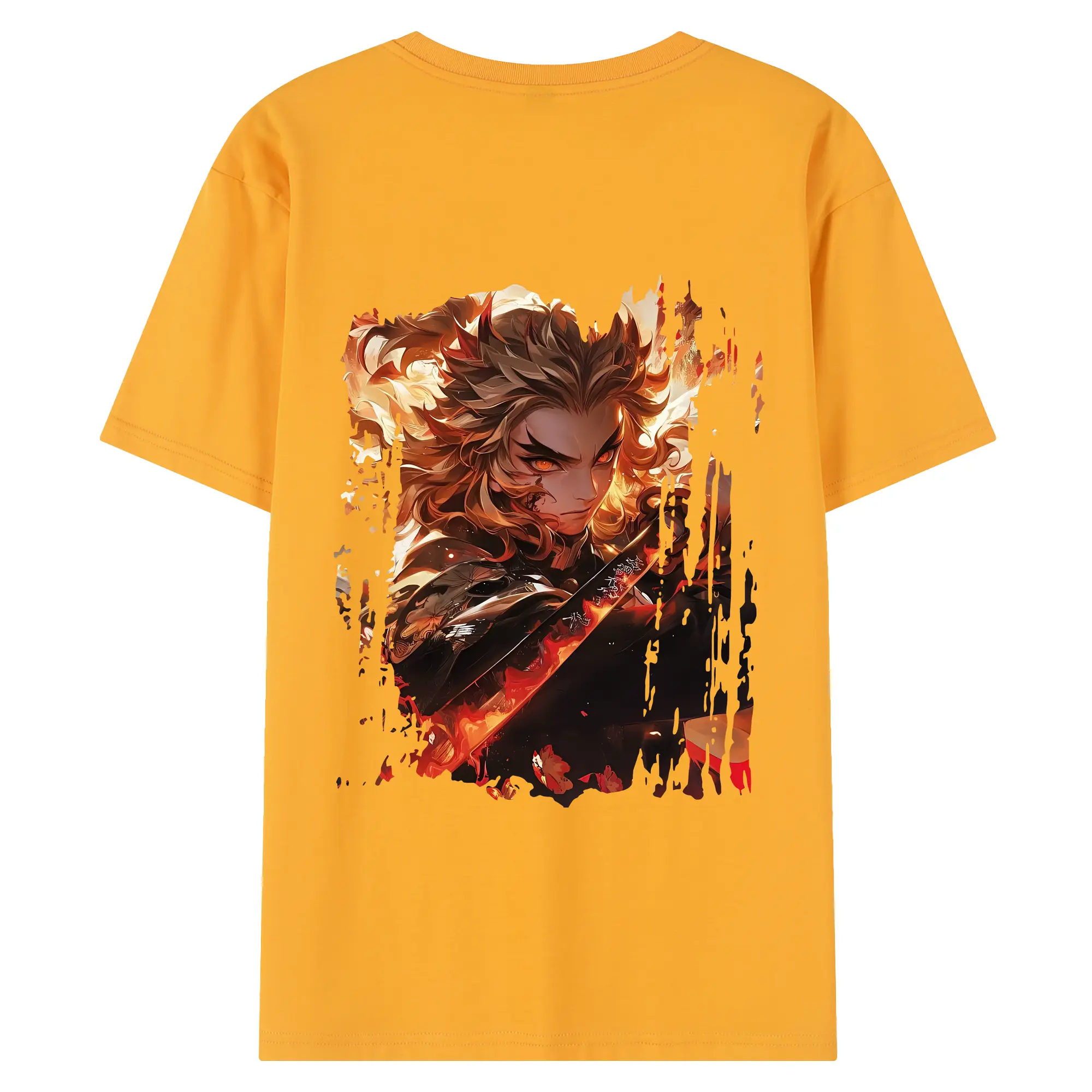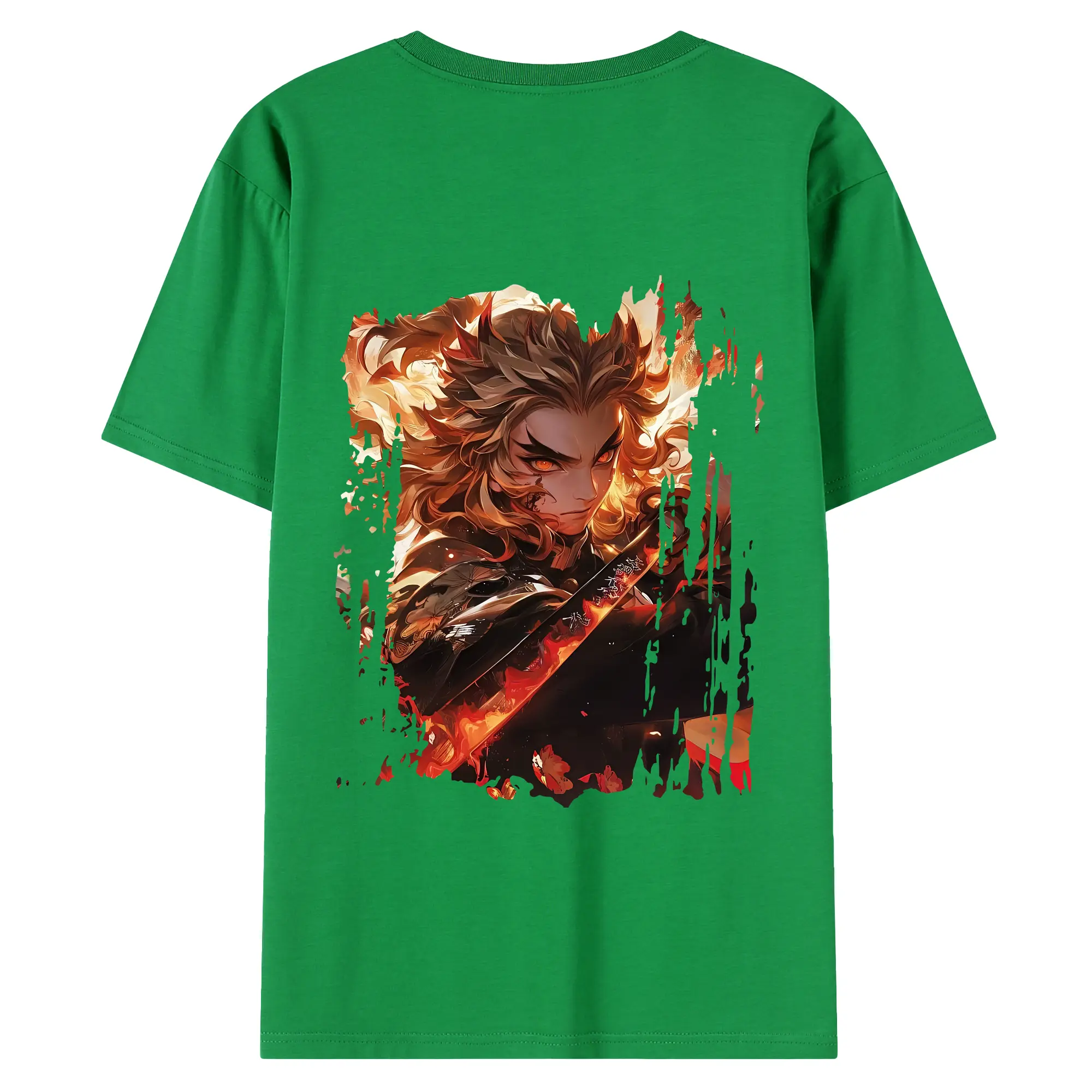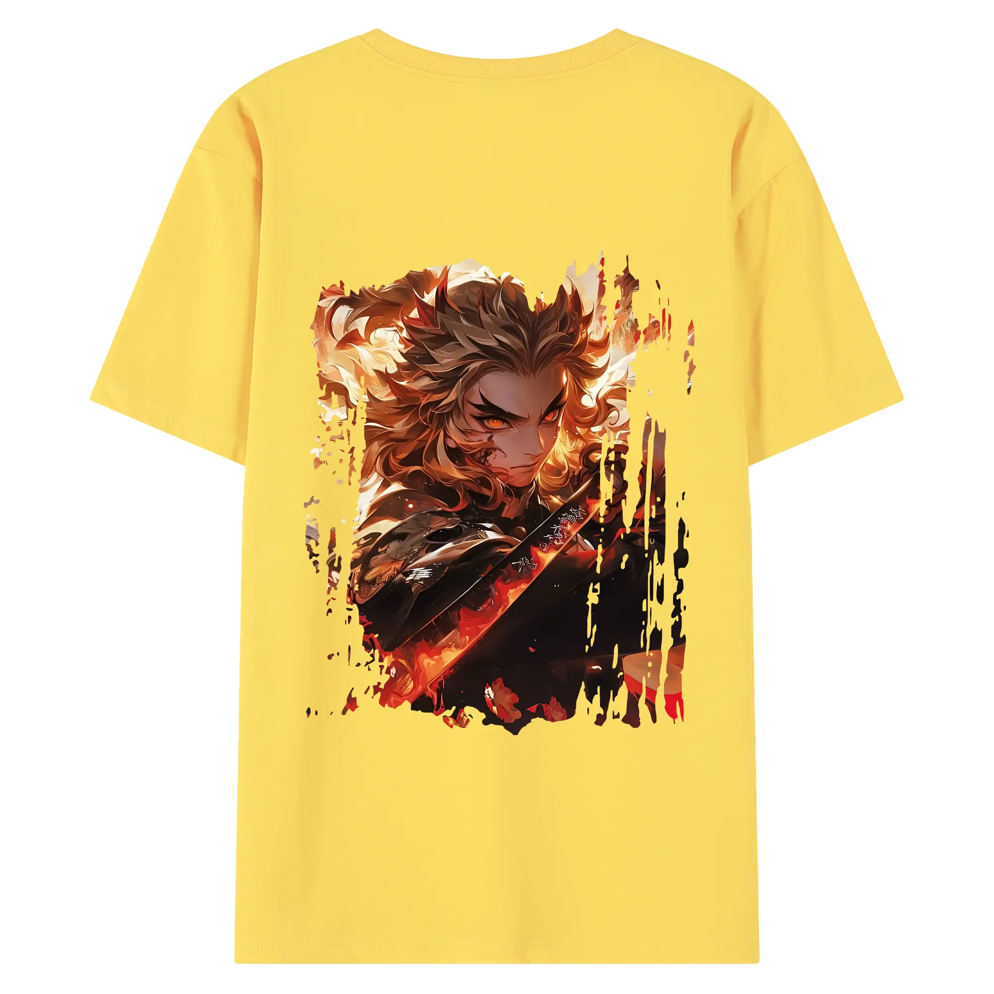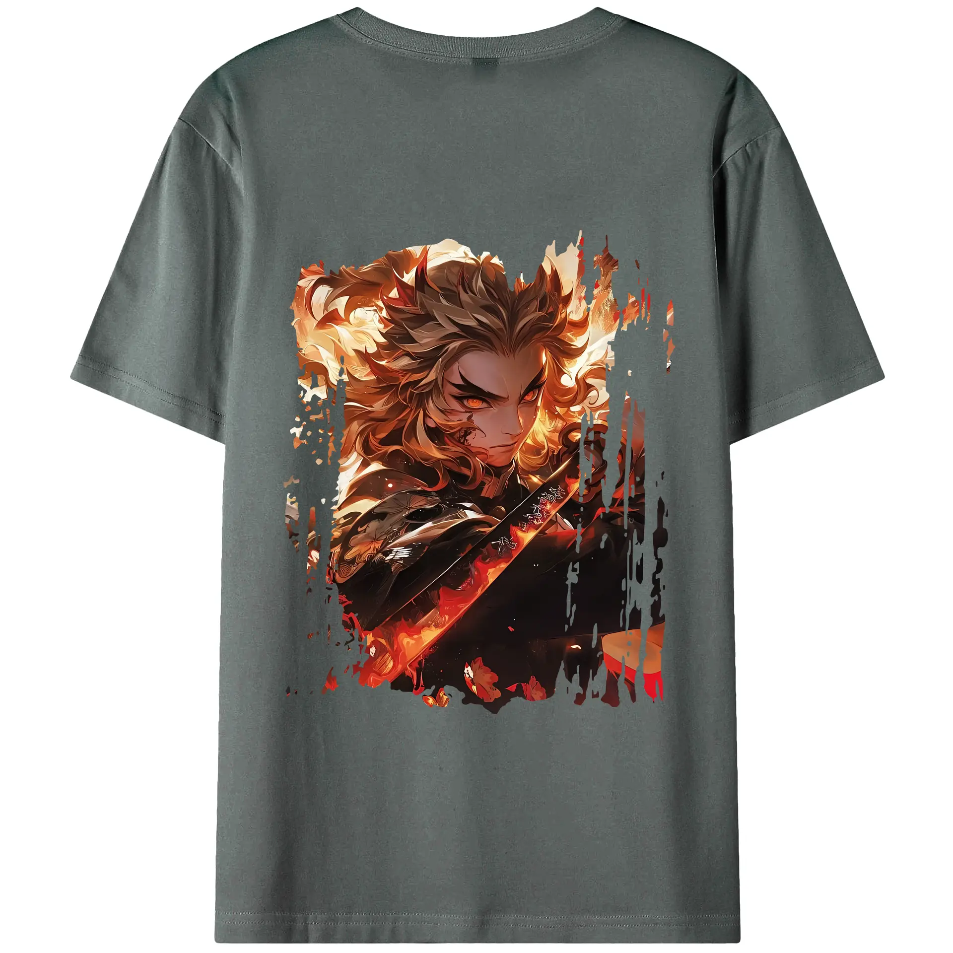 鬼滅の刃 グッズ,煉獄 杏寿郎 - 綿100% 半袖Tシャツ ・ フロントプリント ・ 快適 通気性 ・ 日常使い 散歩 スポーツ用