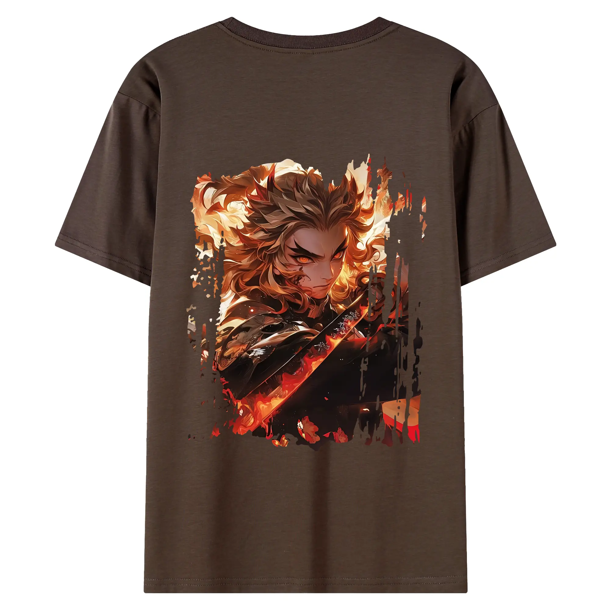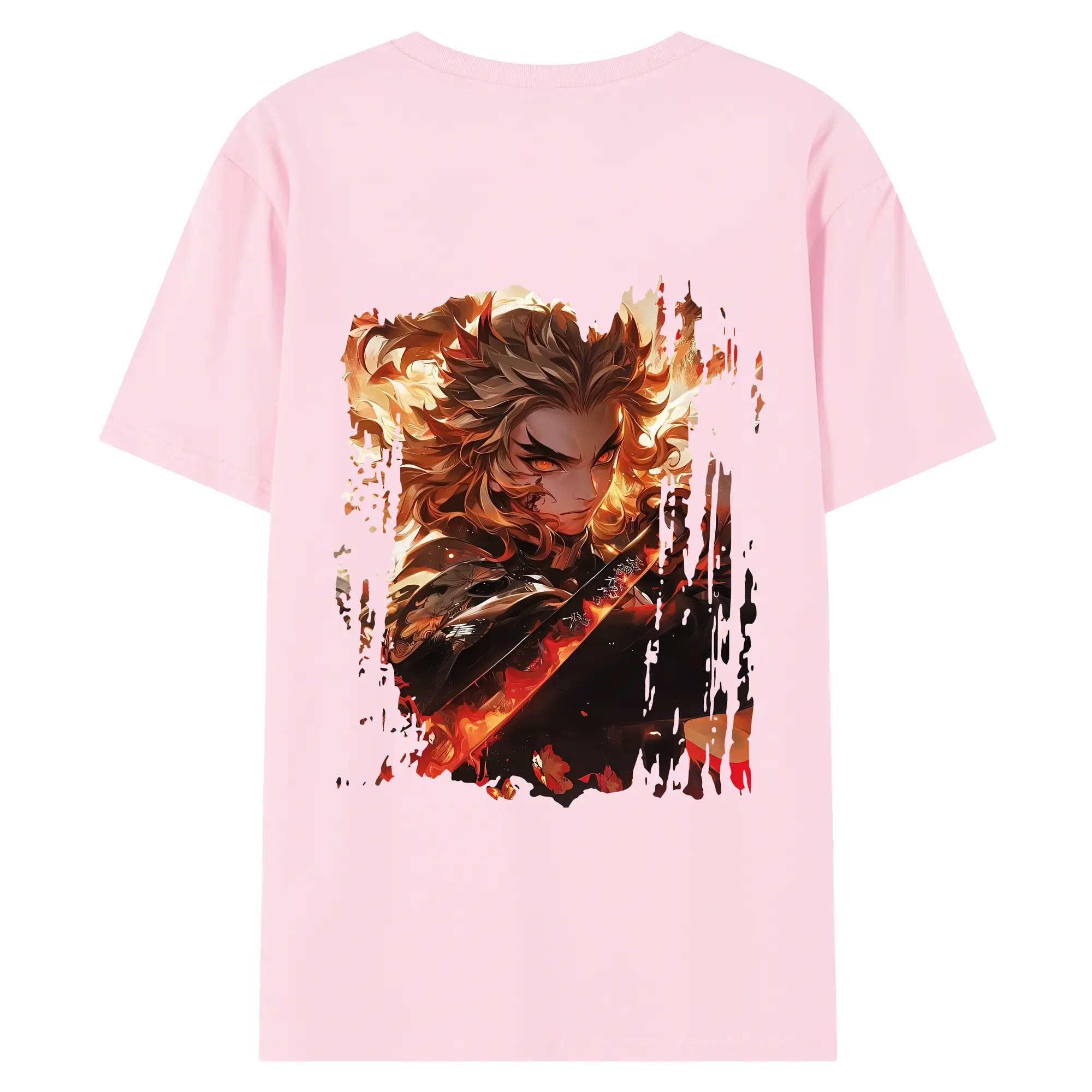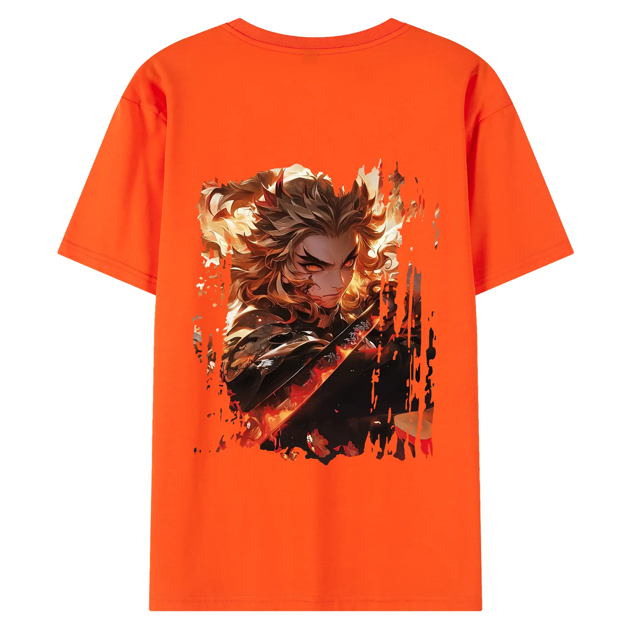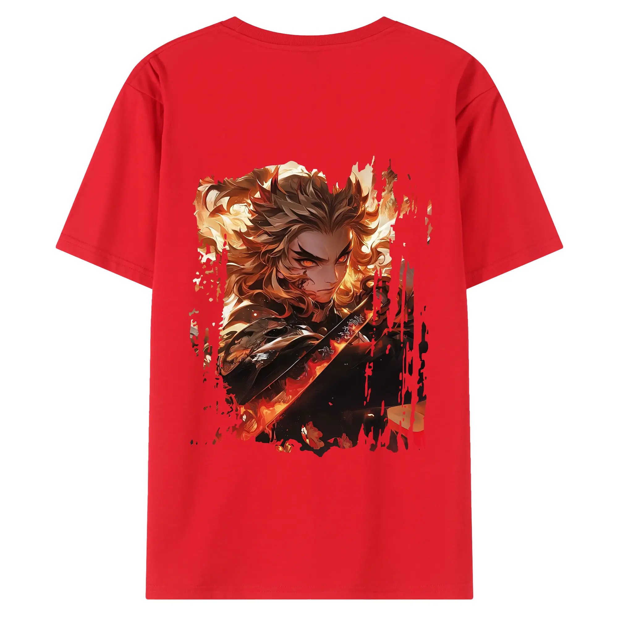 鬼滅の刃 グッズ,煉獄 杏寿郎 - 綿100% 半袖Tシャツ ・ フロントプリント ・ 快適 通気性 ・ 日常使い 散歩 スポーツ用