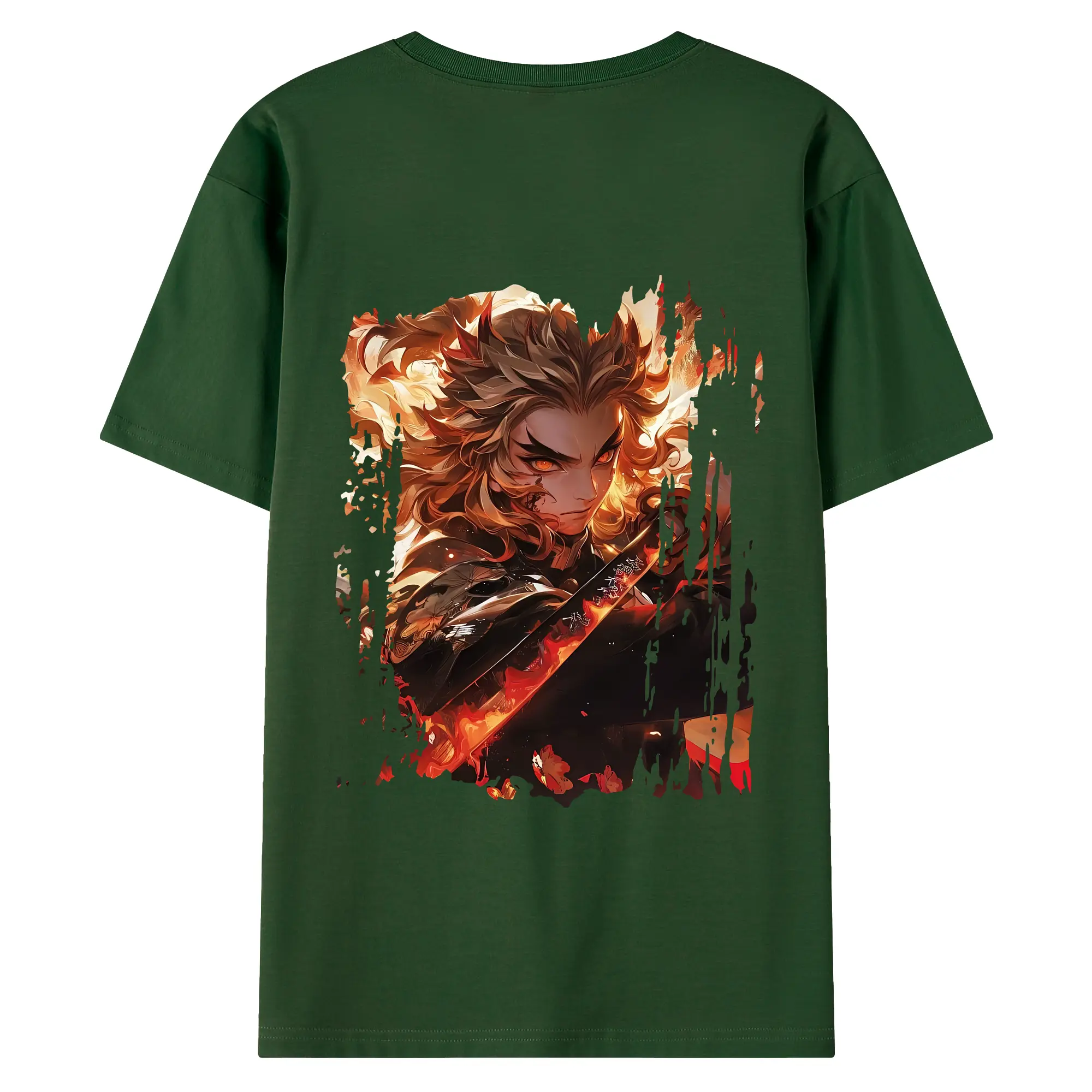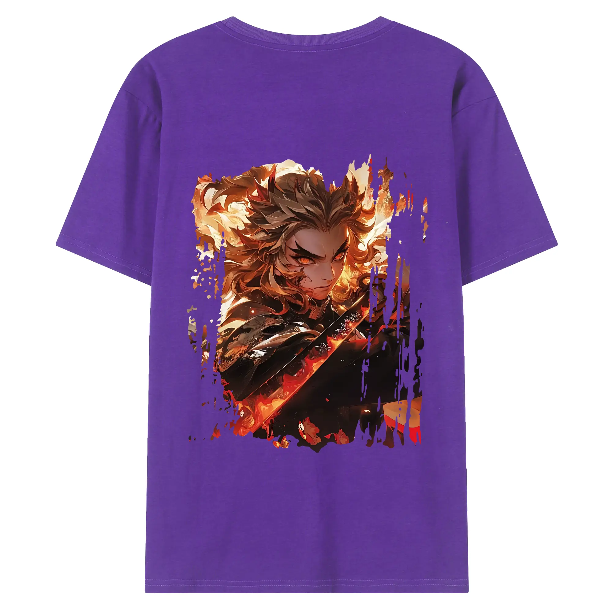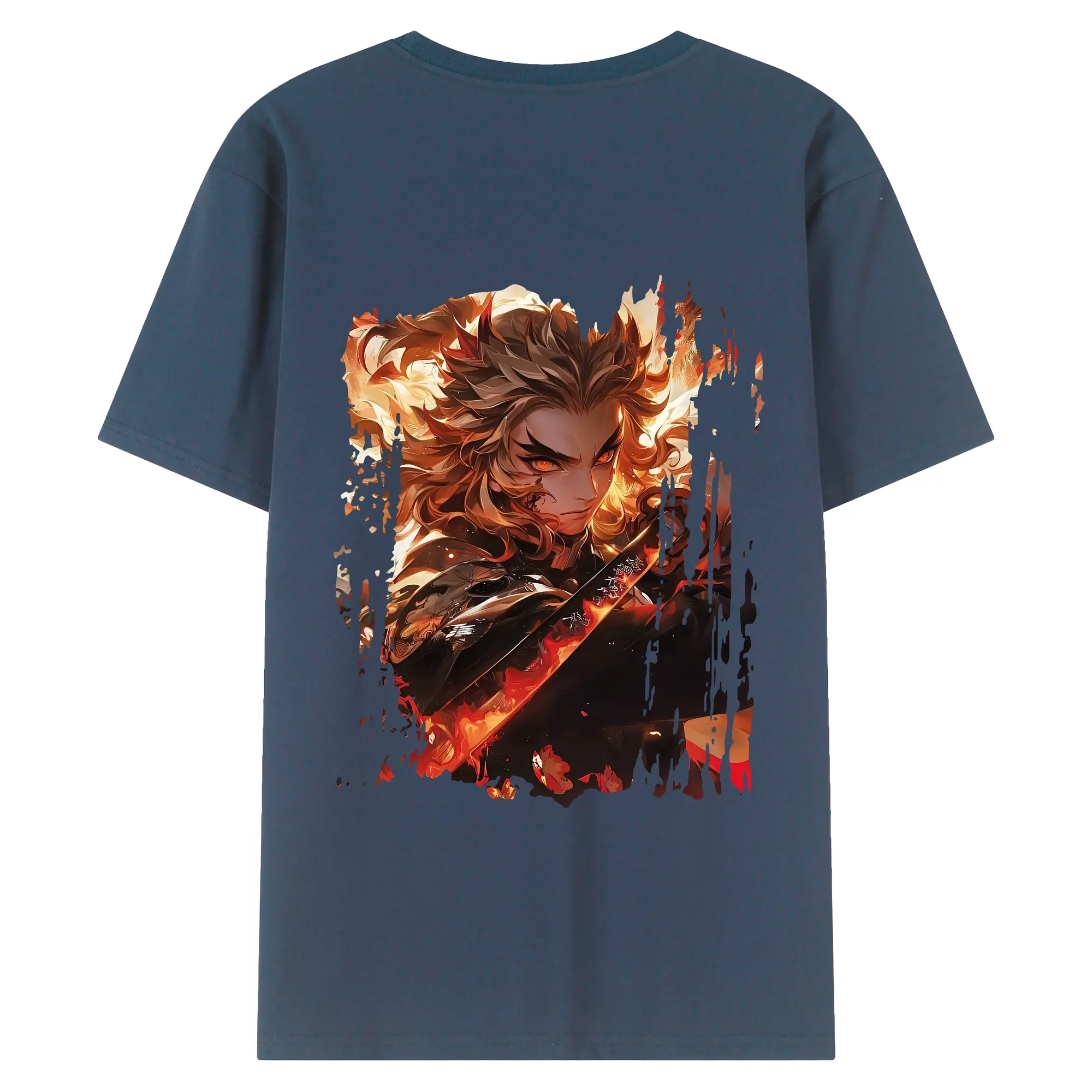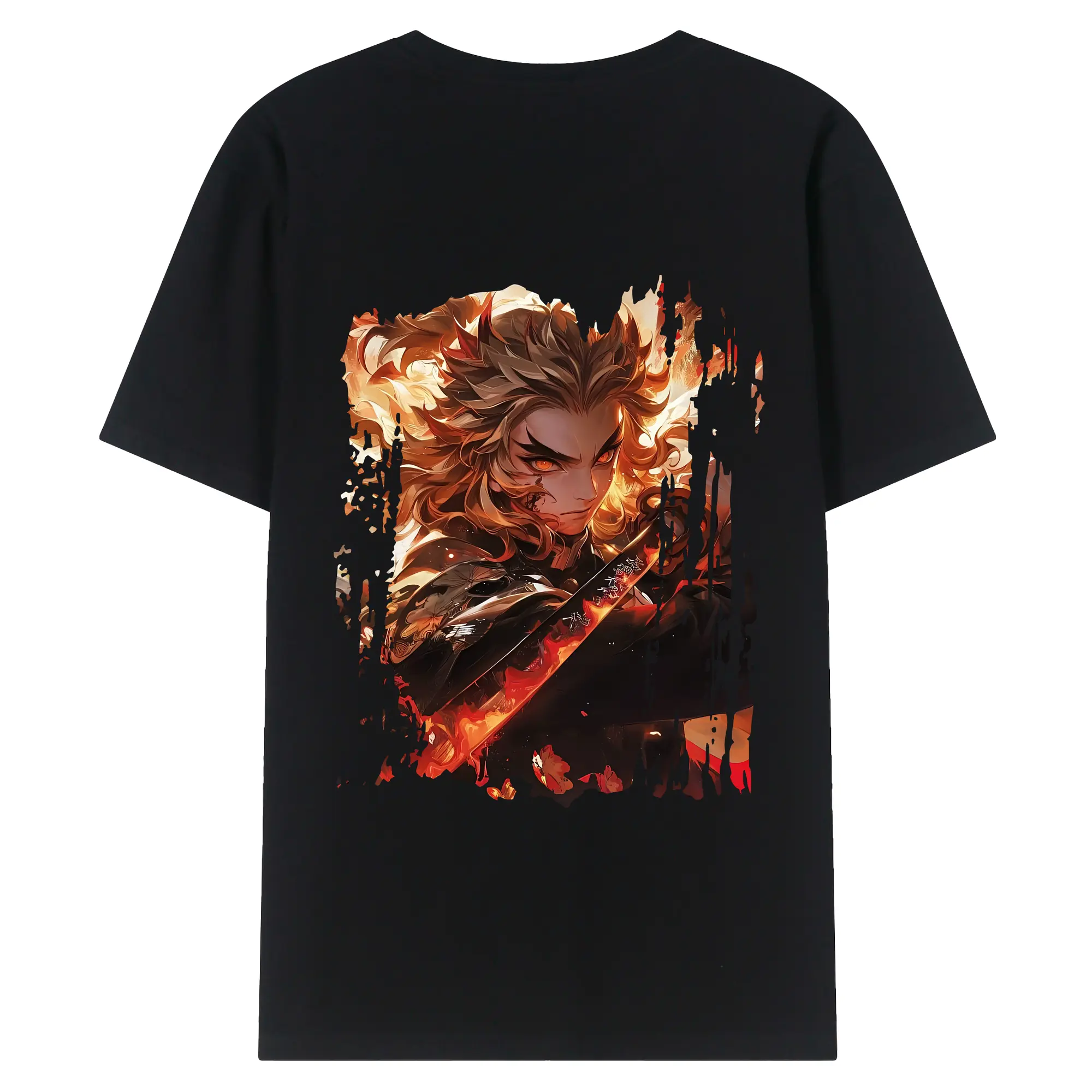 鬼滅の刃 グッズ,煉獄 杏寿郎 - 綿100% 半袖Tシャツ ・ フロントプリント ・ 快適 通気性 ・ 日常使い 散歩 スポーツ用