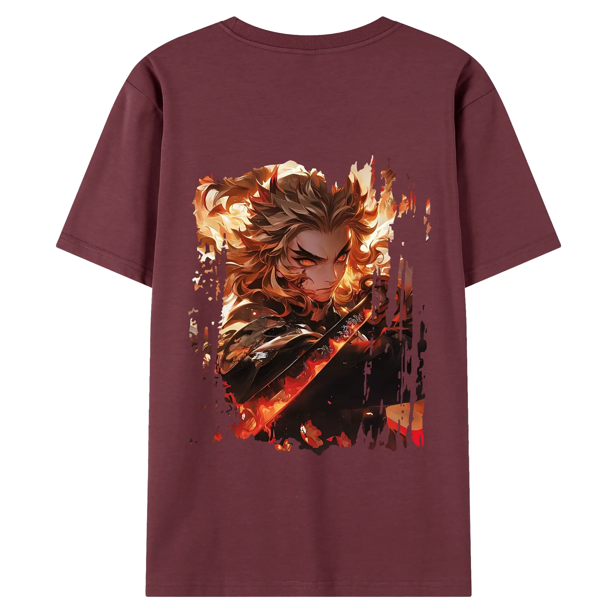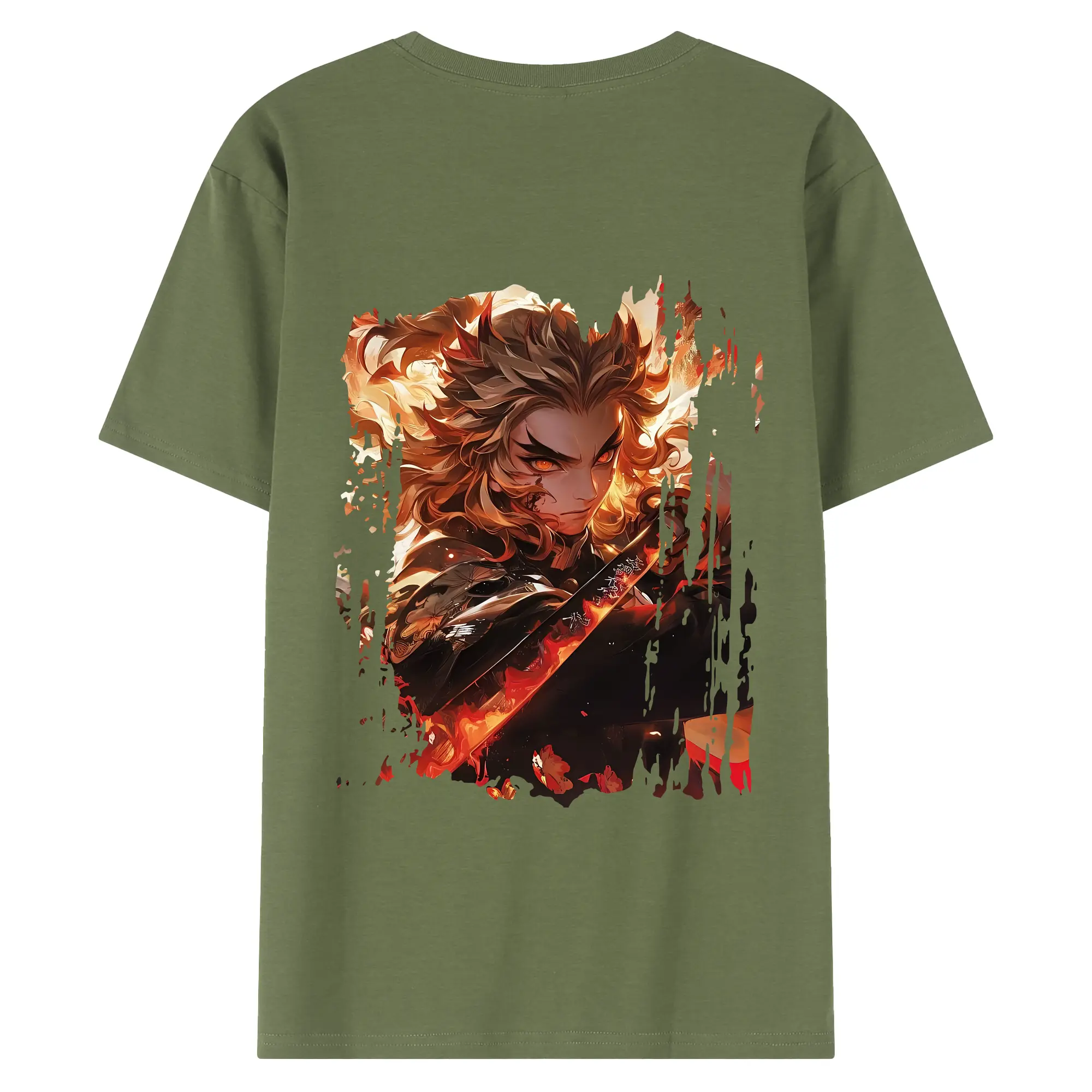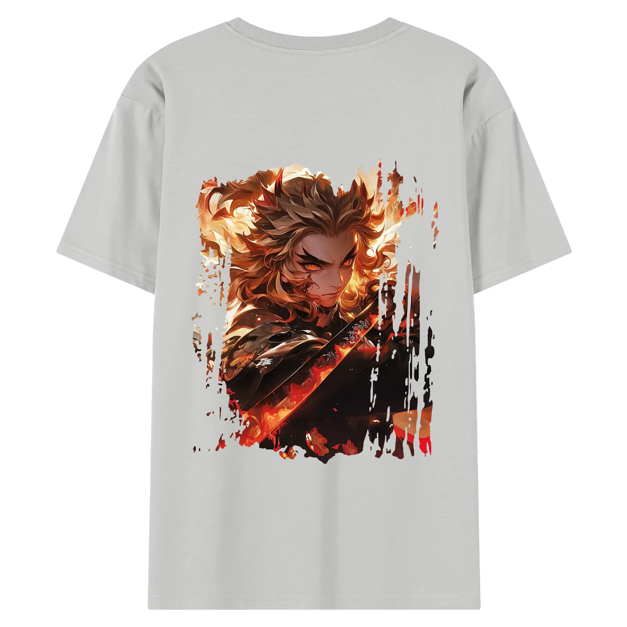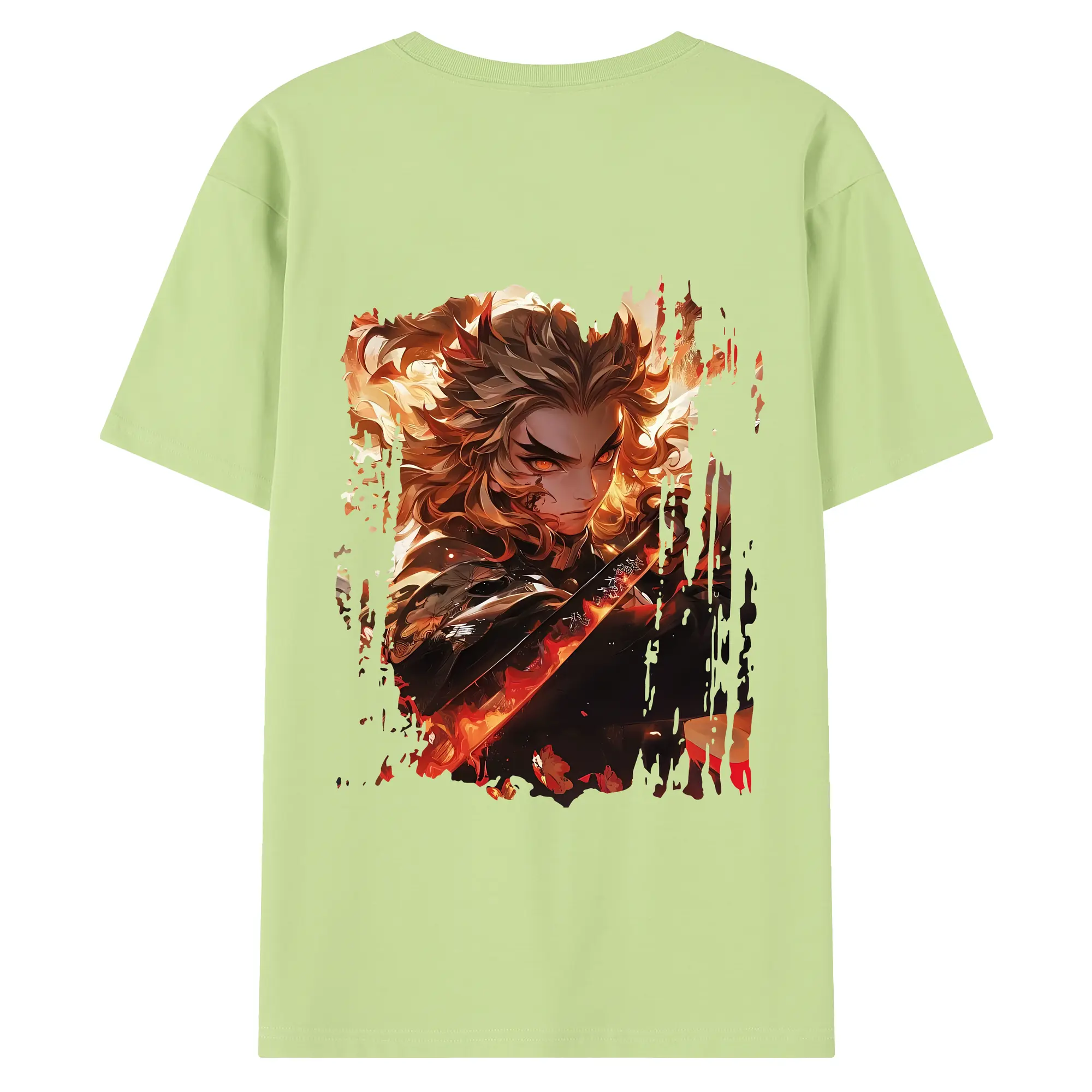 鬼滅の刃 グッズ,煉獄 杏寿郎 - 綿100% 半袖Tシャツ ・ フロントプリント ・ 快適 通気性 ・ 日常使い 散歩 スポーツ用