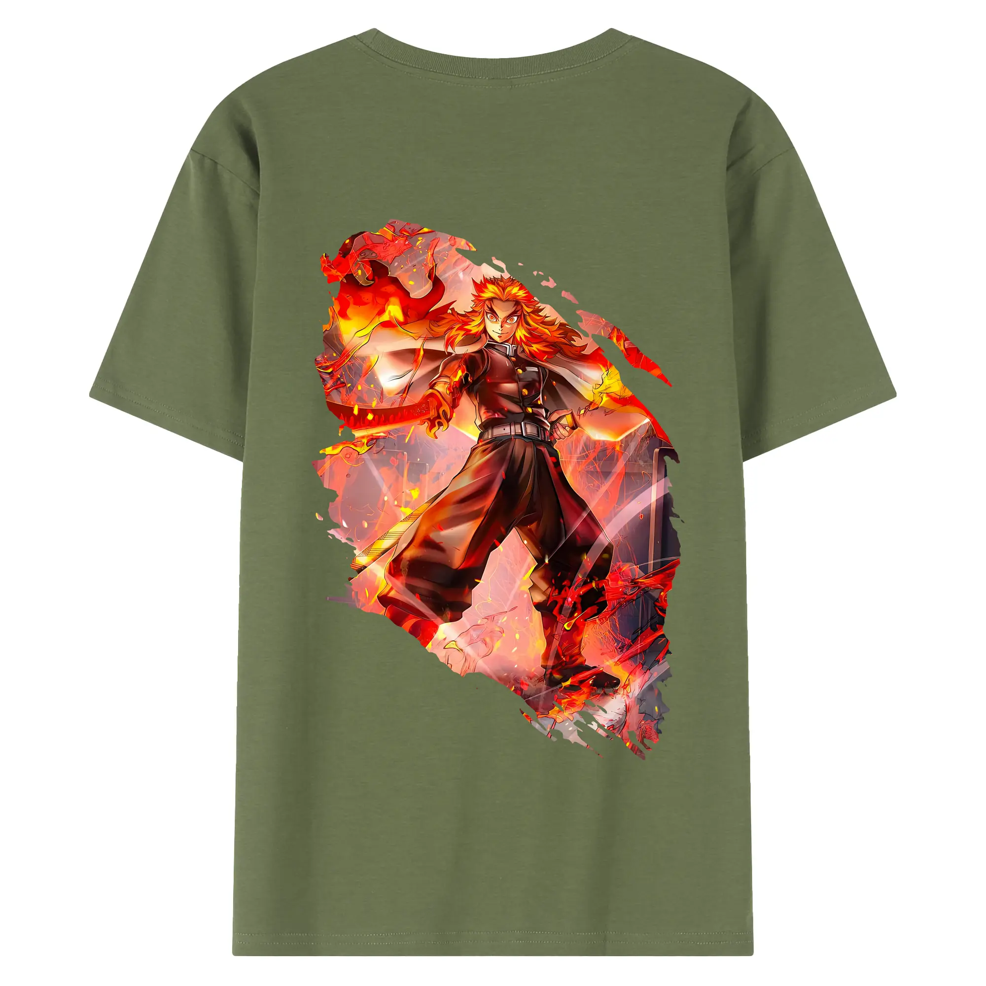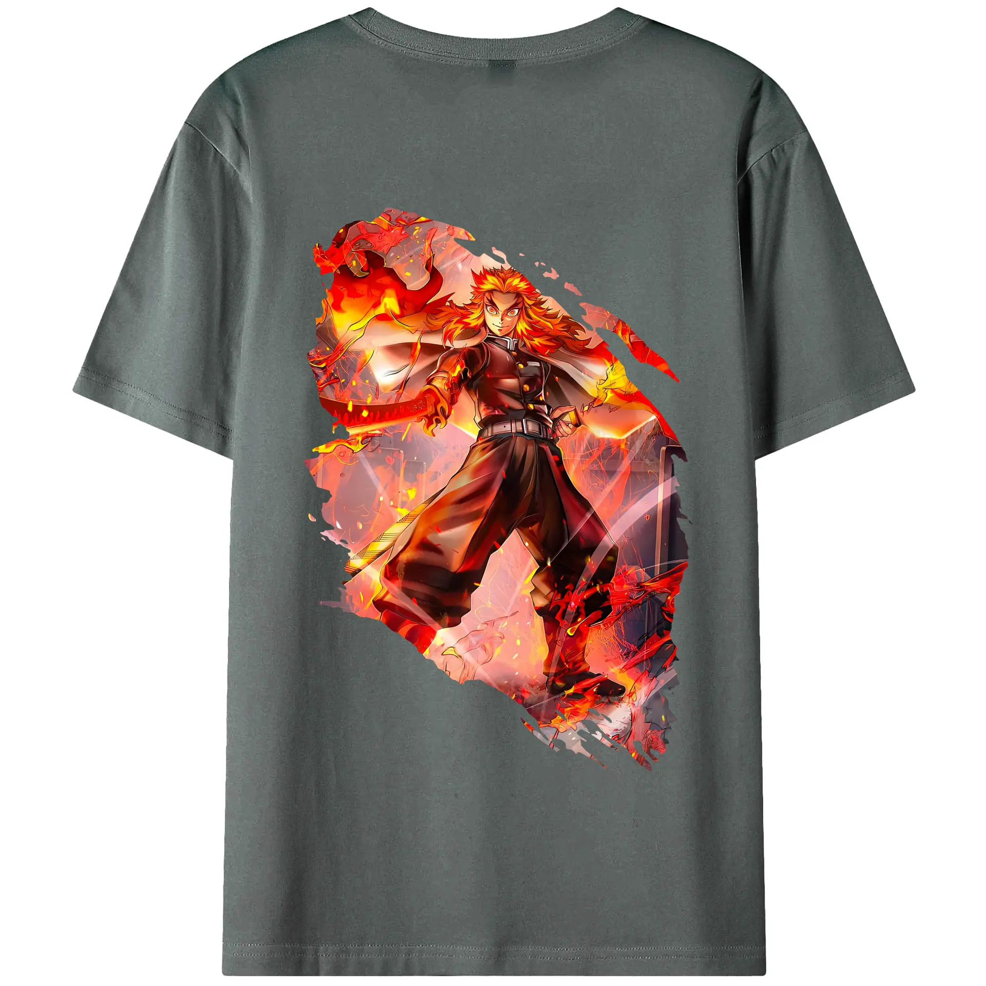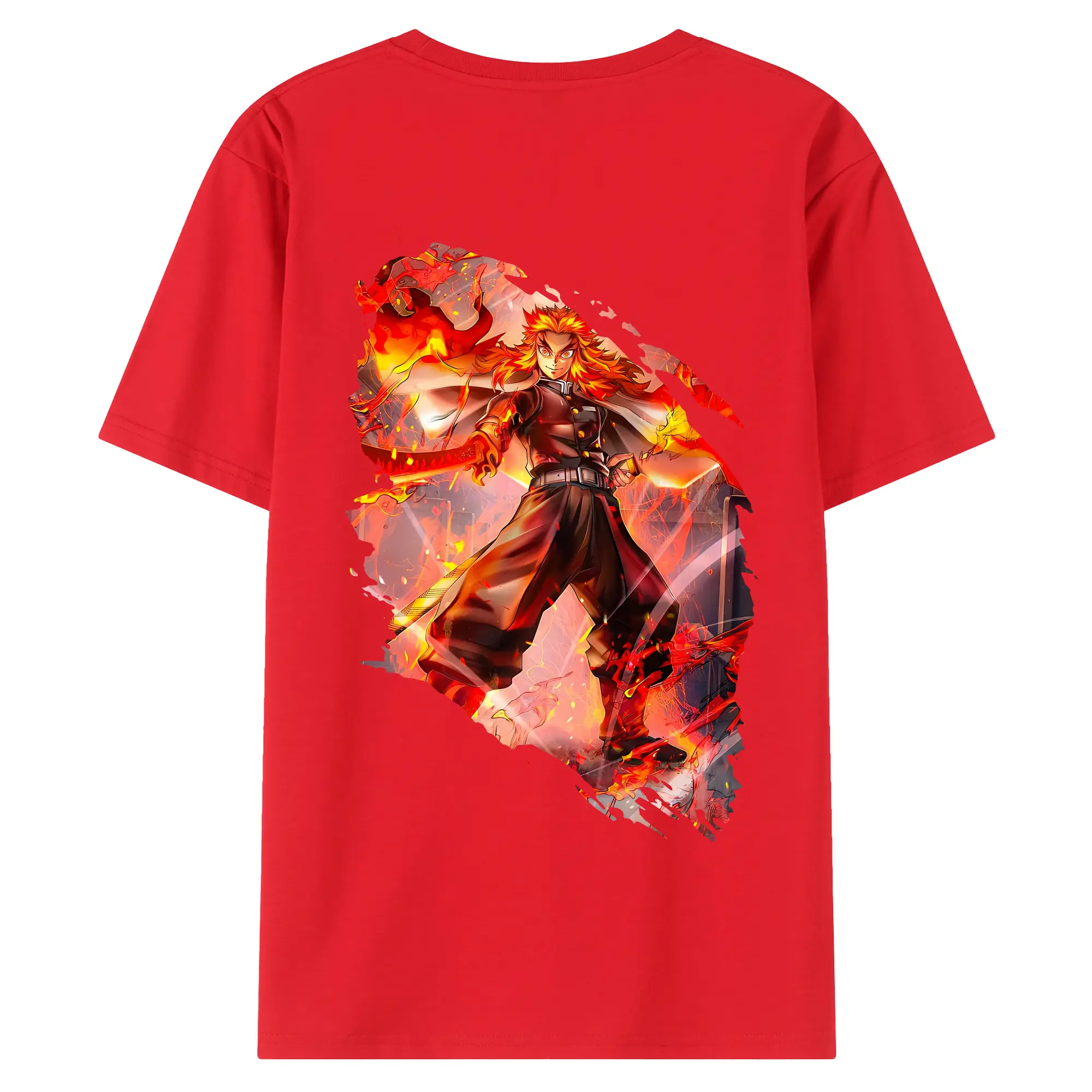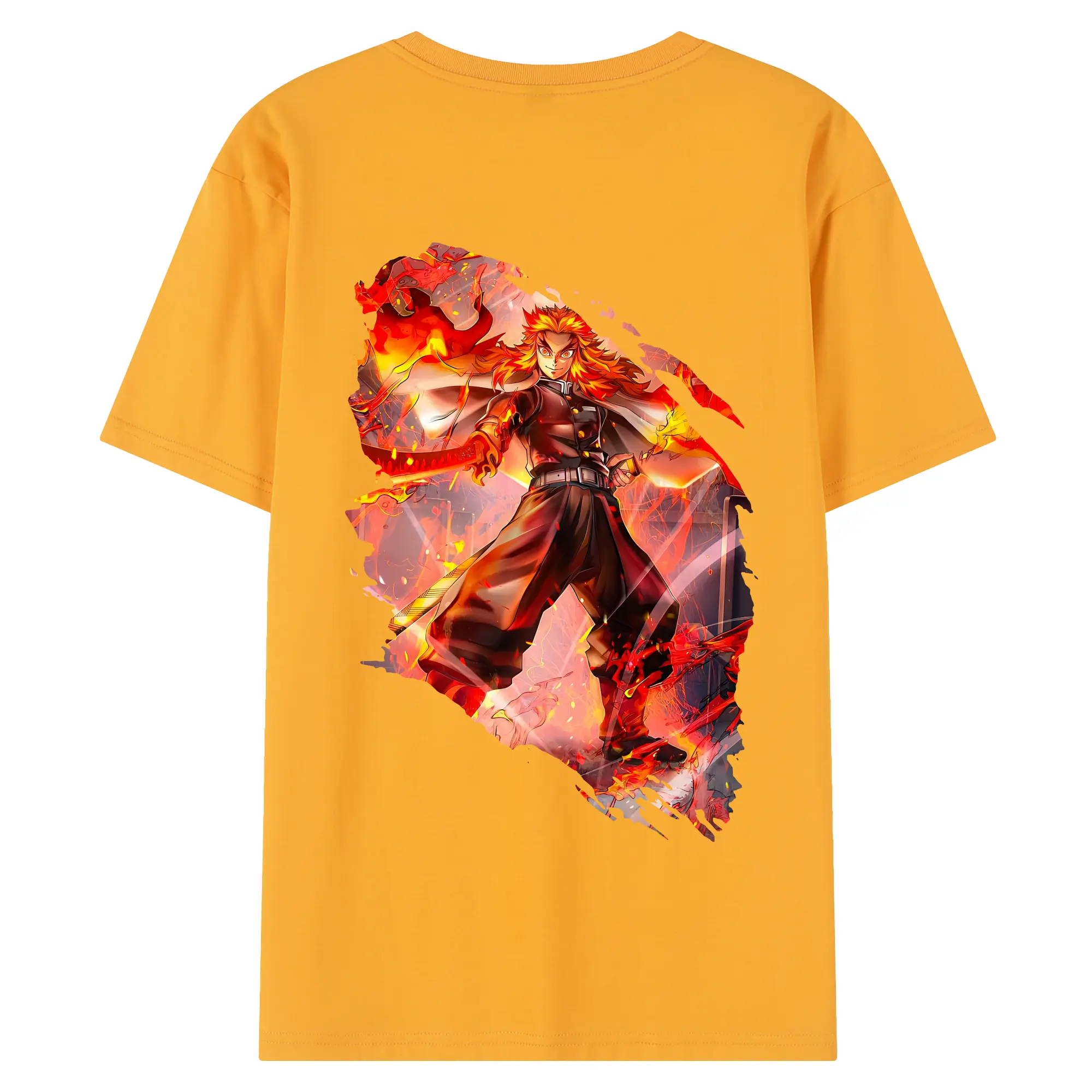 鬼滅の刃 グッズ,煉獄 杏寿郎 - 綿100% 半袖Tシャツ ・ フロントプリント ・ 快適 通気性 ・ 日常使い 散歩 スポーツ用