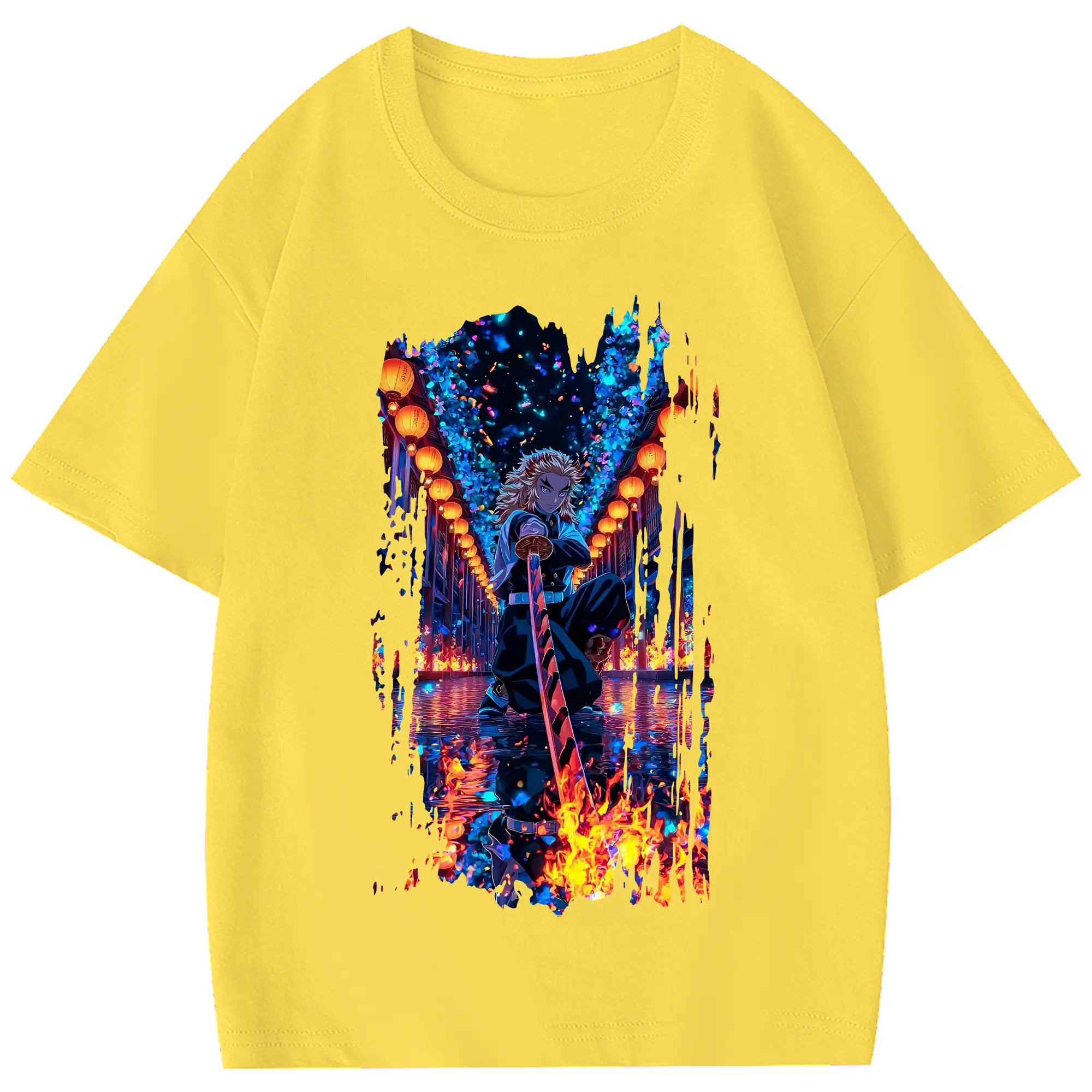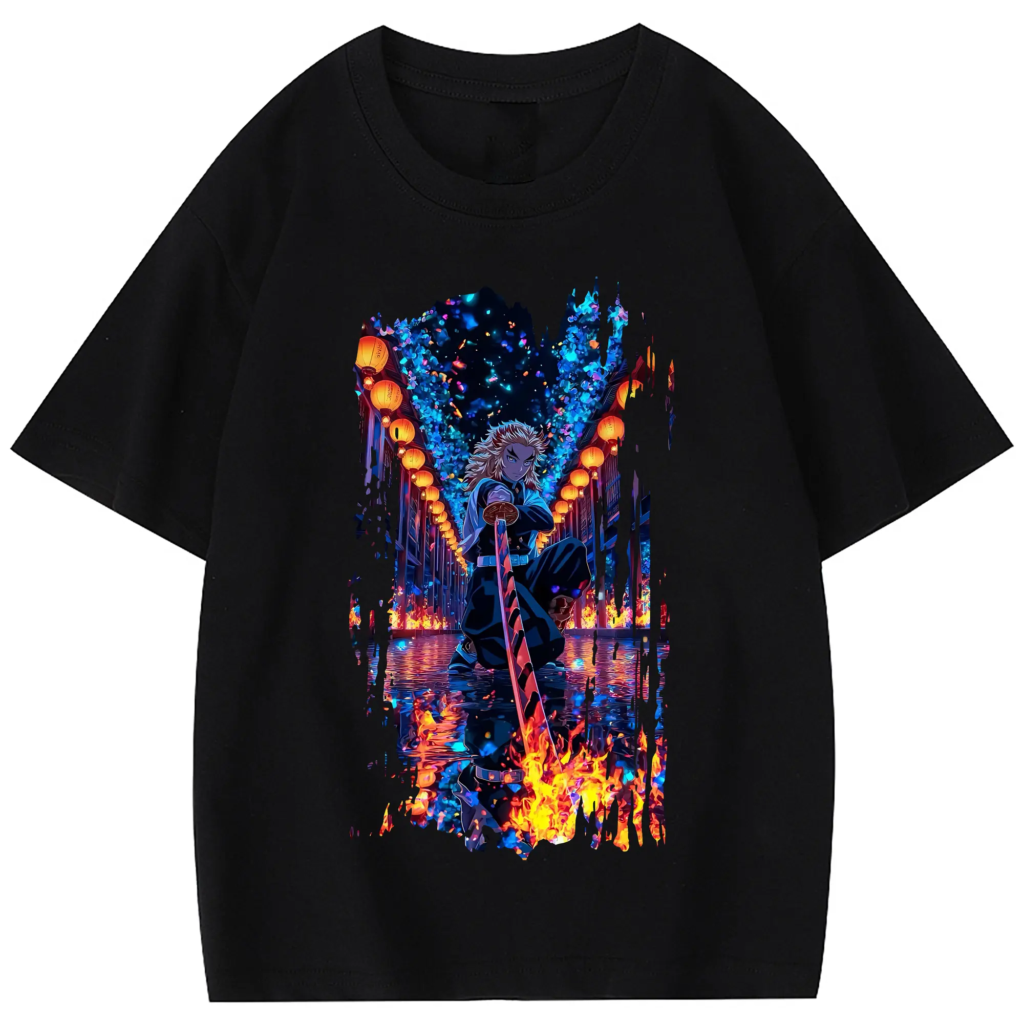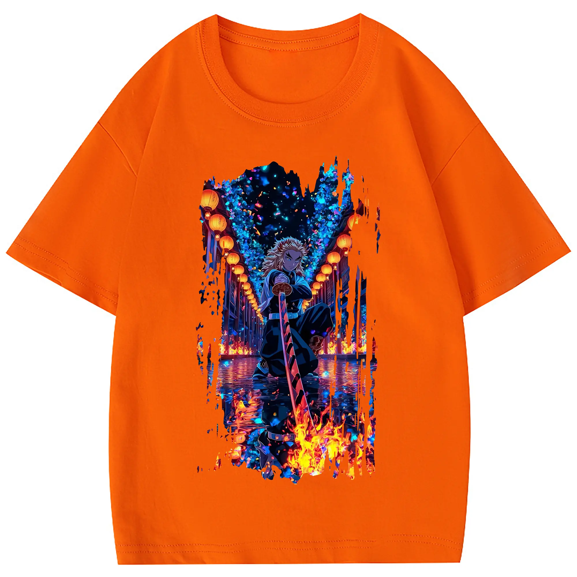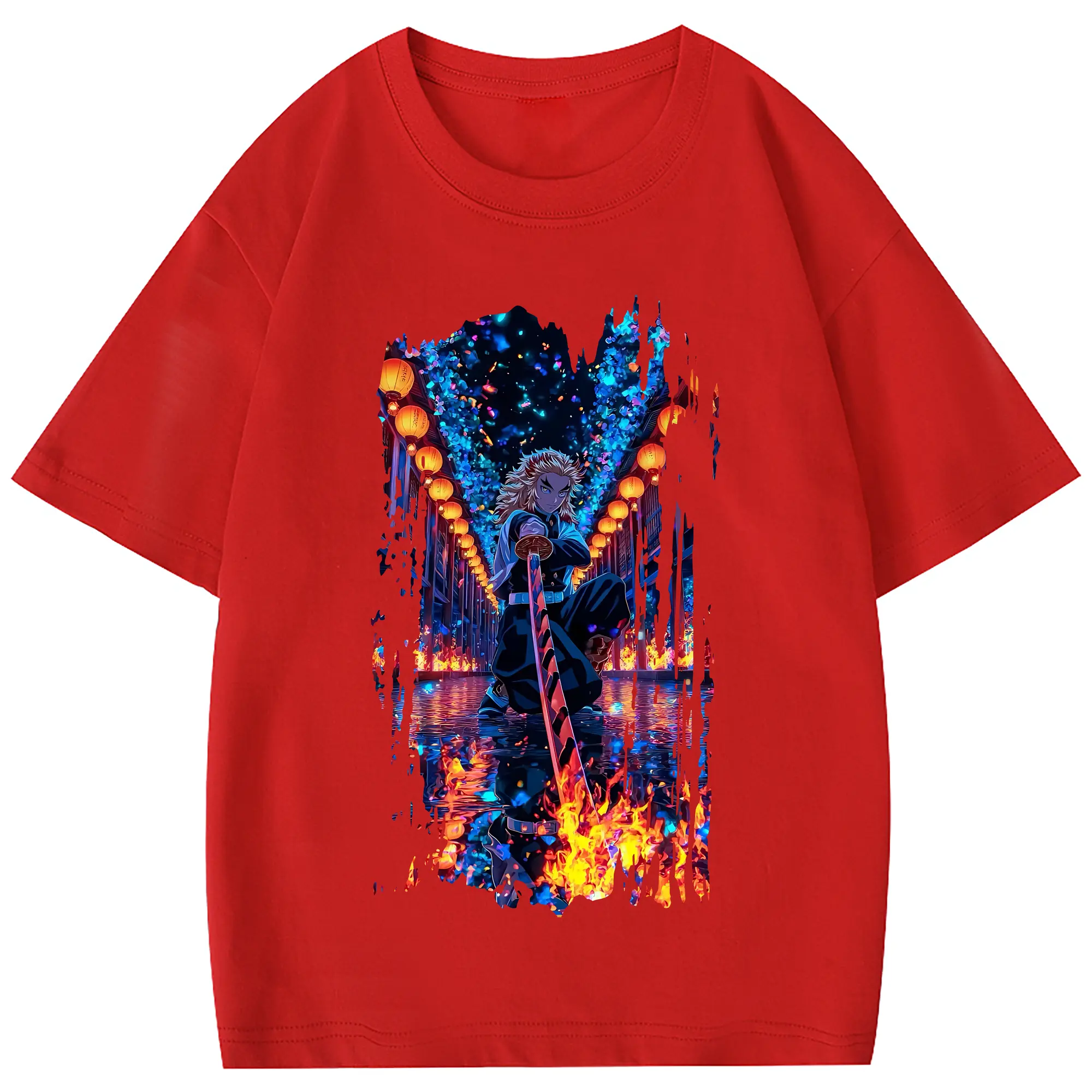 鬼滅の刃 グッズ,煉獄 杏寿郎 - 綿100% 半袖Tシャツ ・ フロントプリント ・ 快適 通気性 ・ 日常使い 散歩 スポーツ用