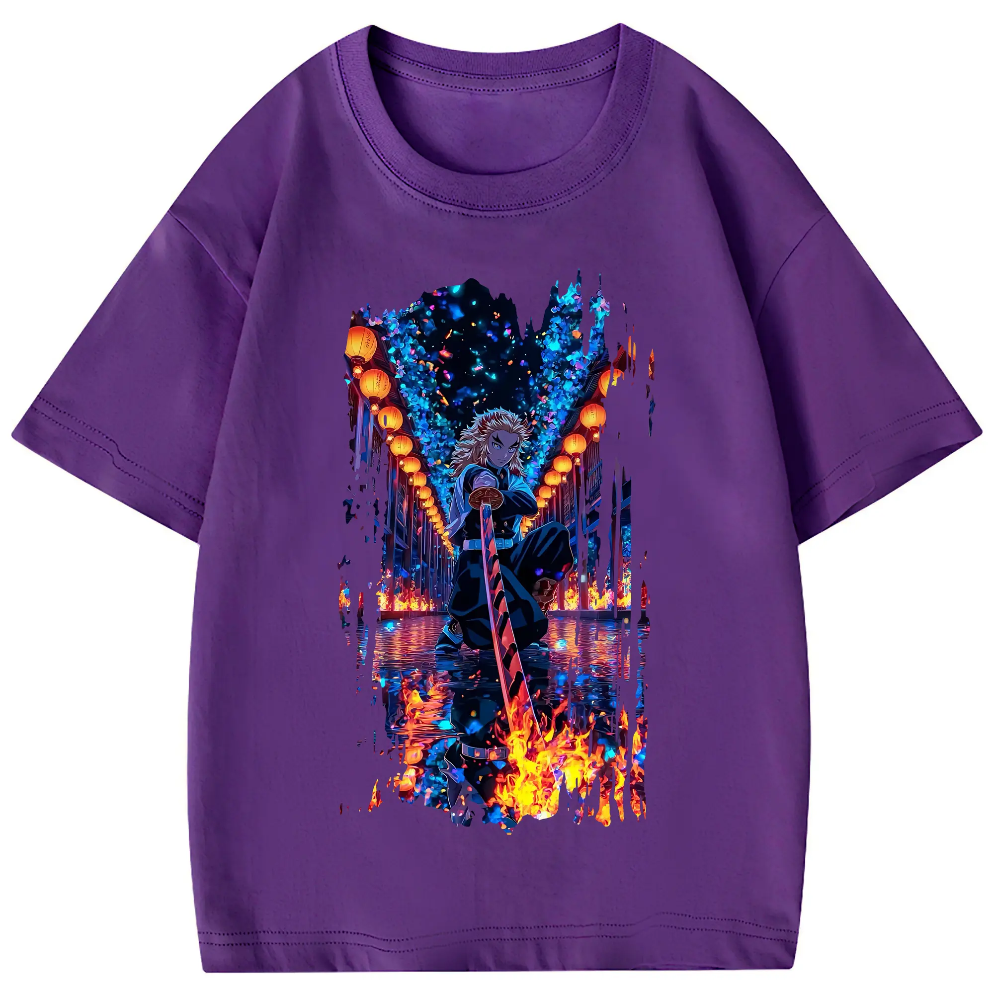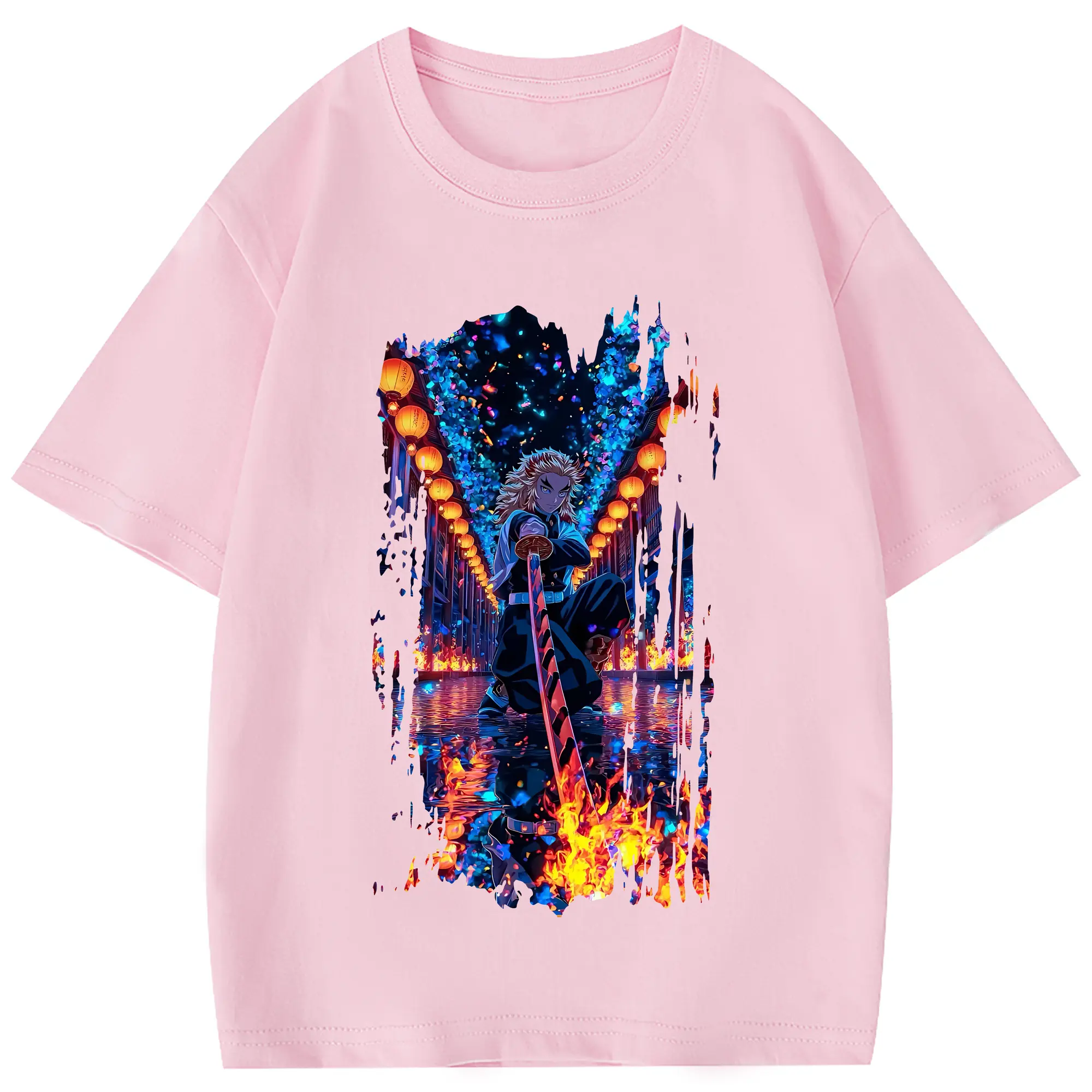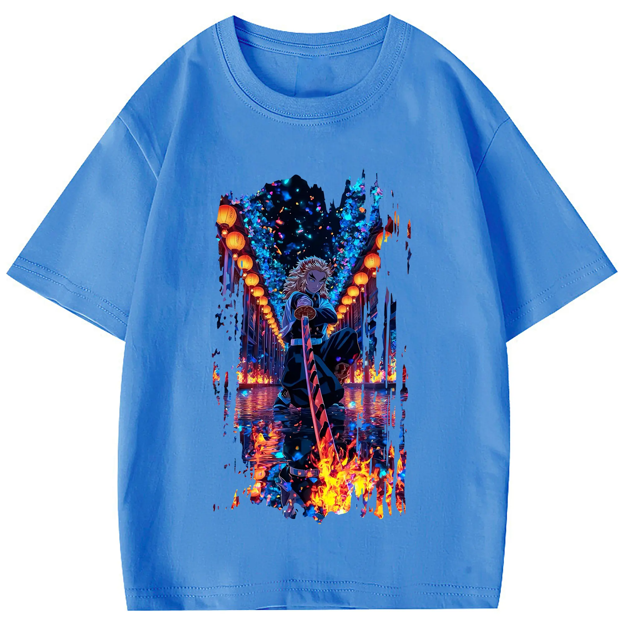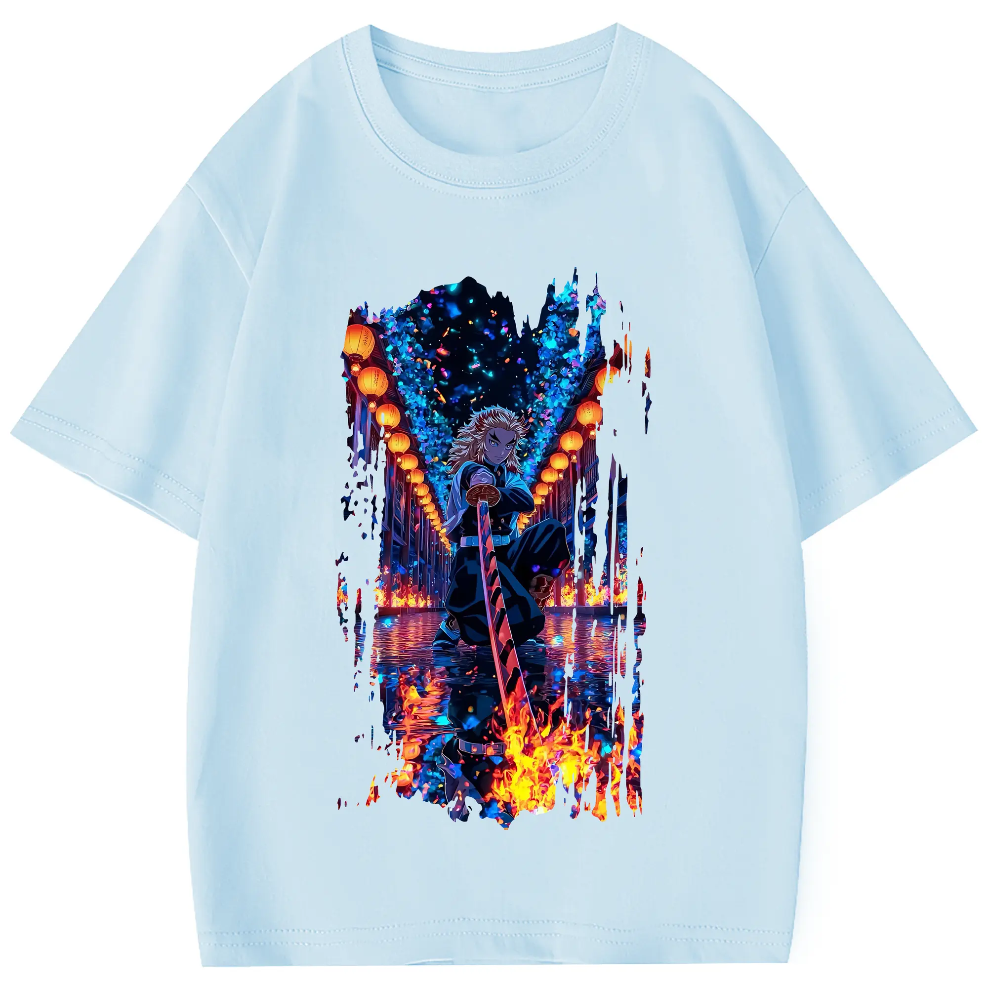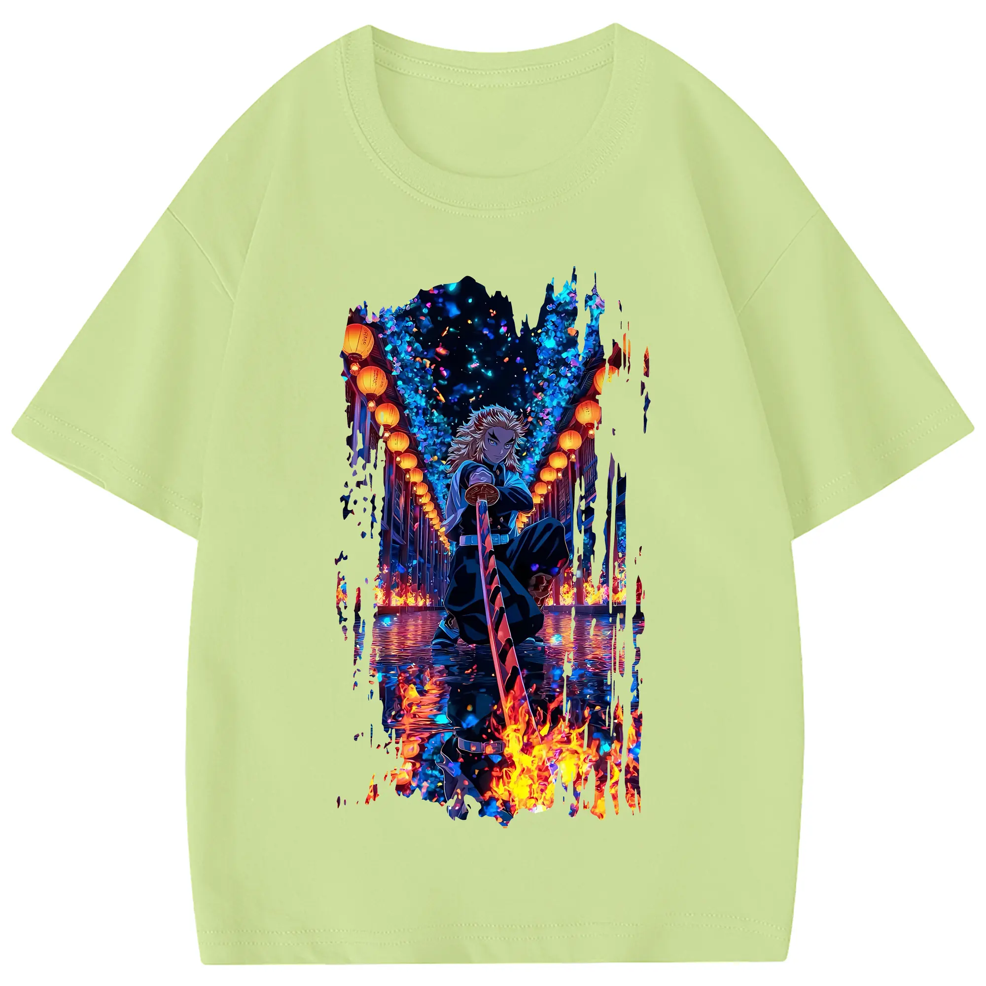 鬼滅の刃 グッズ,煉獄 杏寿郎 - 綿100% 半袖Tシャツ ・ フロントプリント ・ 快適 通気性 ・ 日常使い 散歩 スポーツ用