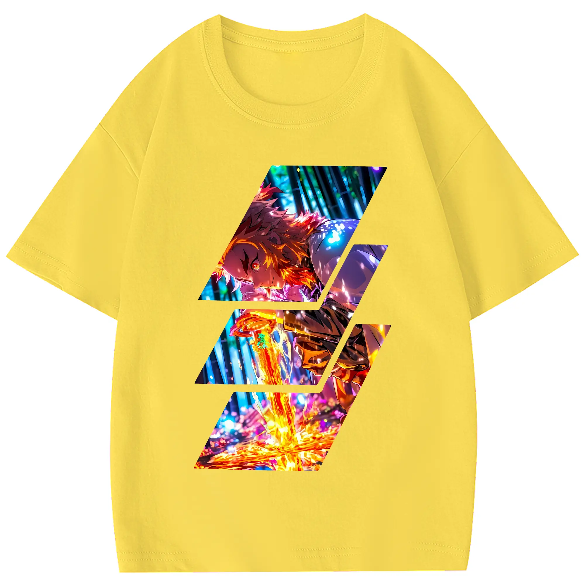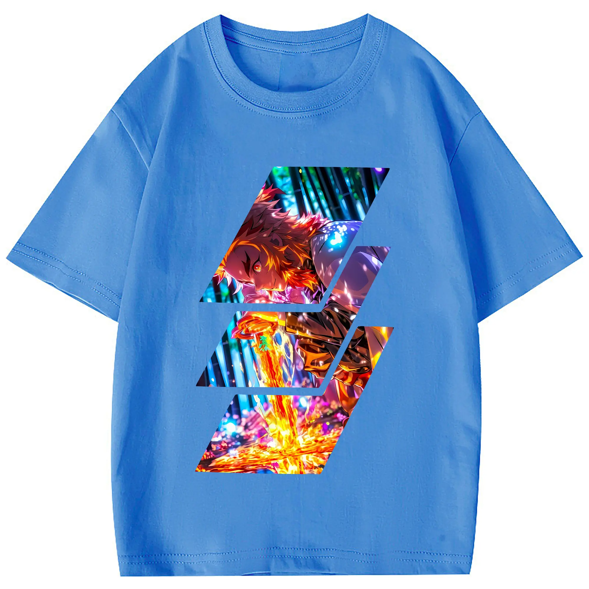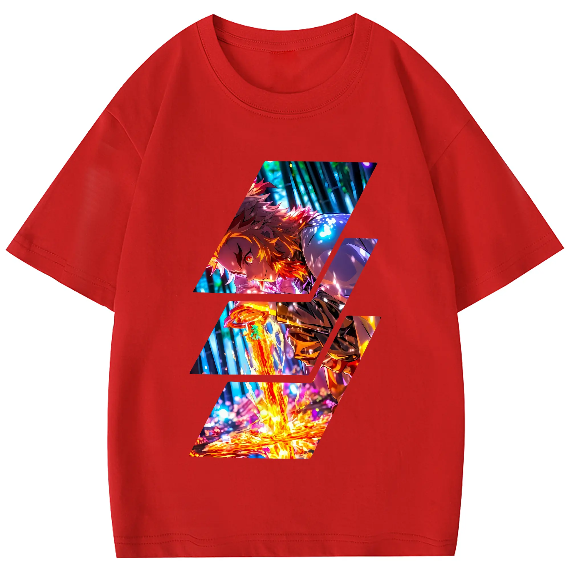 鬼滅の刃 グッズ,煉獄 杏寿郎 - 綿100% 半袖Tシャツ ・ フロントプリント ・ 快適 通気性 ・ 日常使い 散歩 スポーツ用