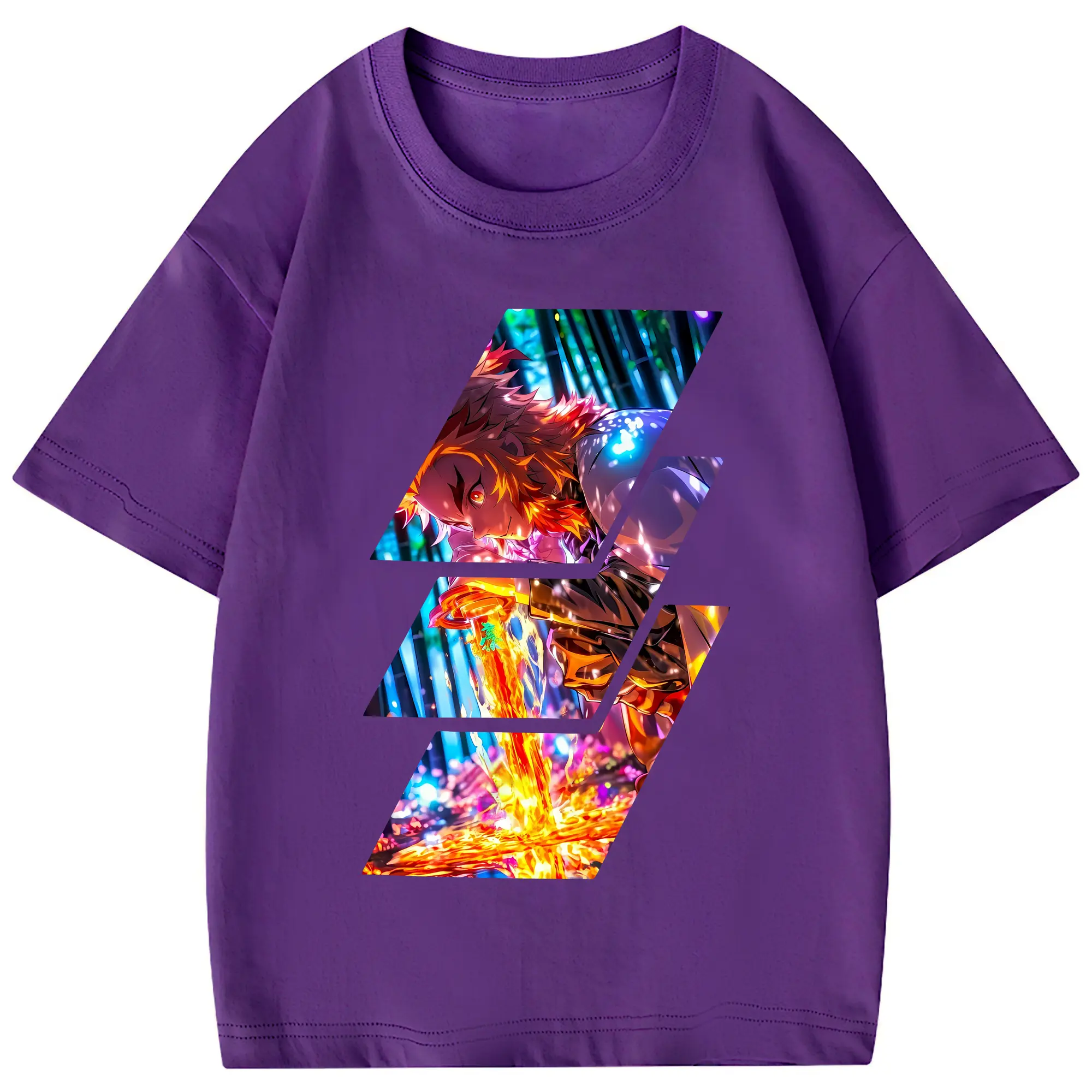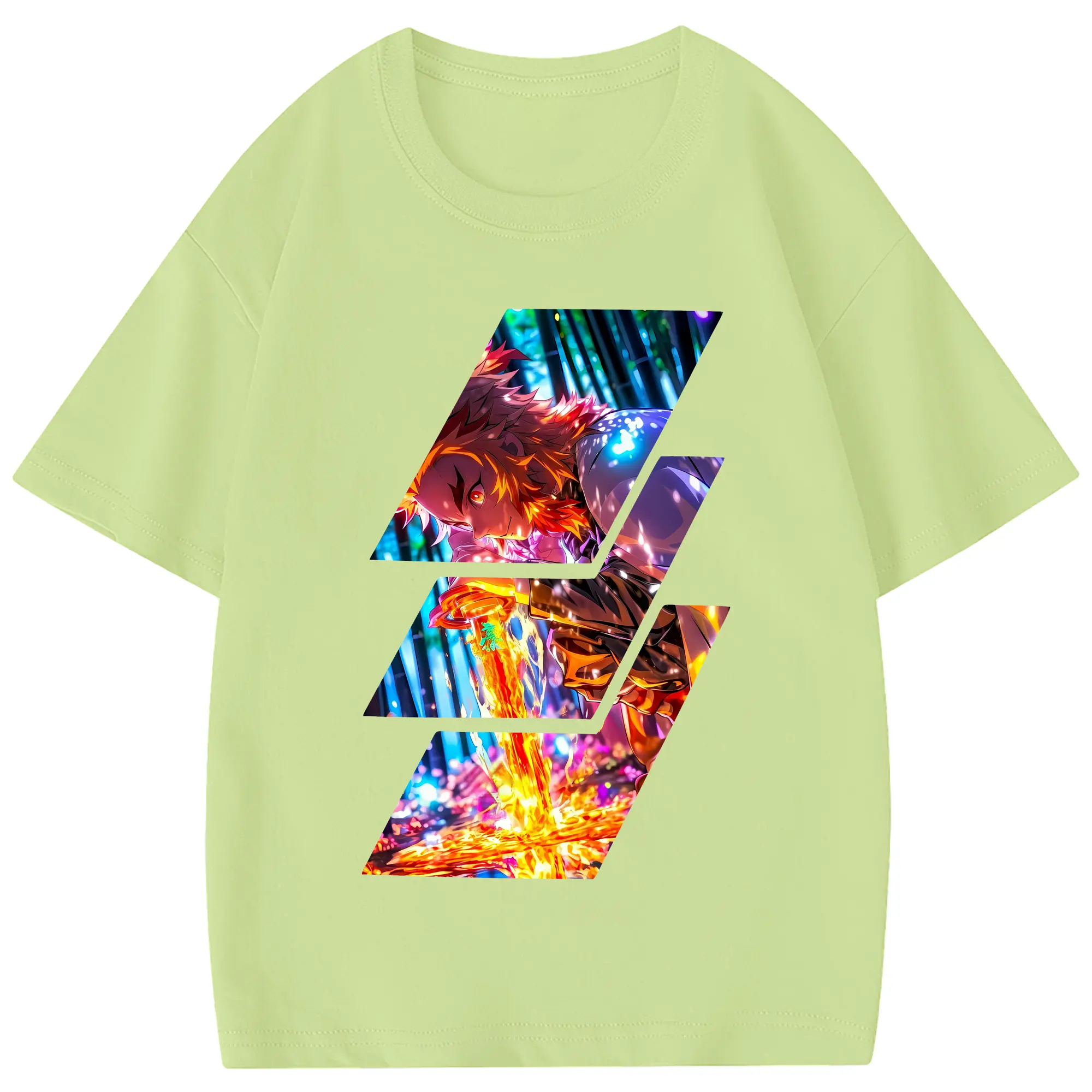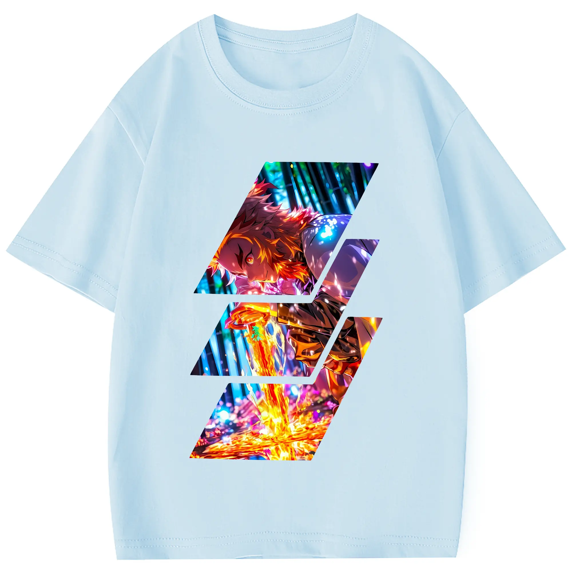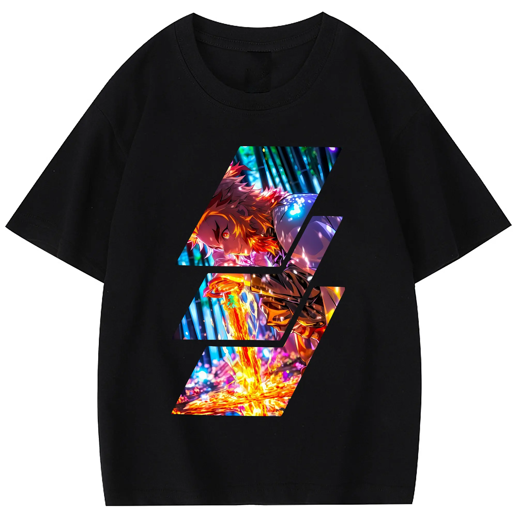 鬼滅の刃 グッズ,煉獄 杏寿郎 - 綿100% 半袖Tシャツ ・ フロントプリント ・ 快適 通気性 ・ 日常使い 散歩 スポーツ用