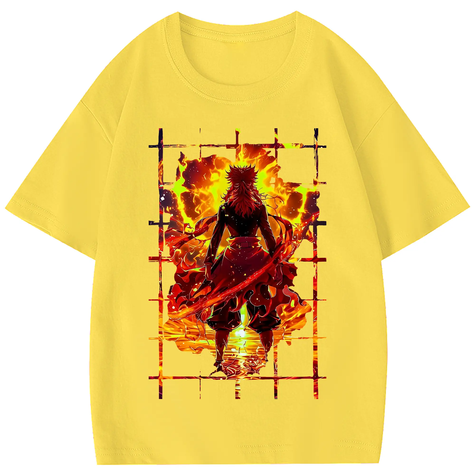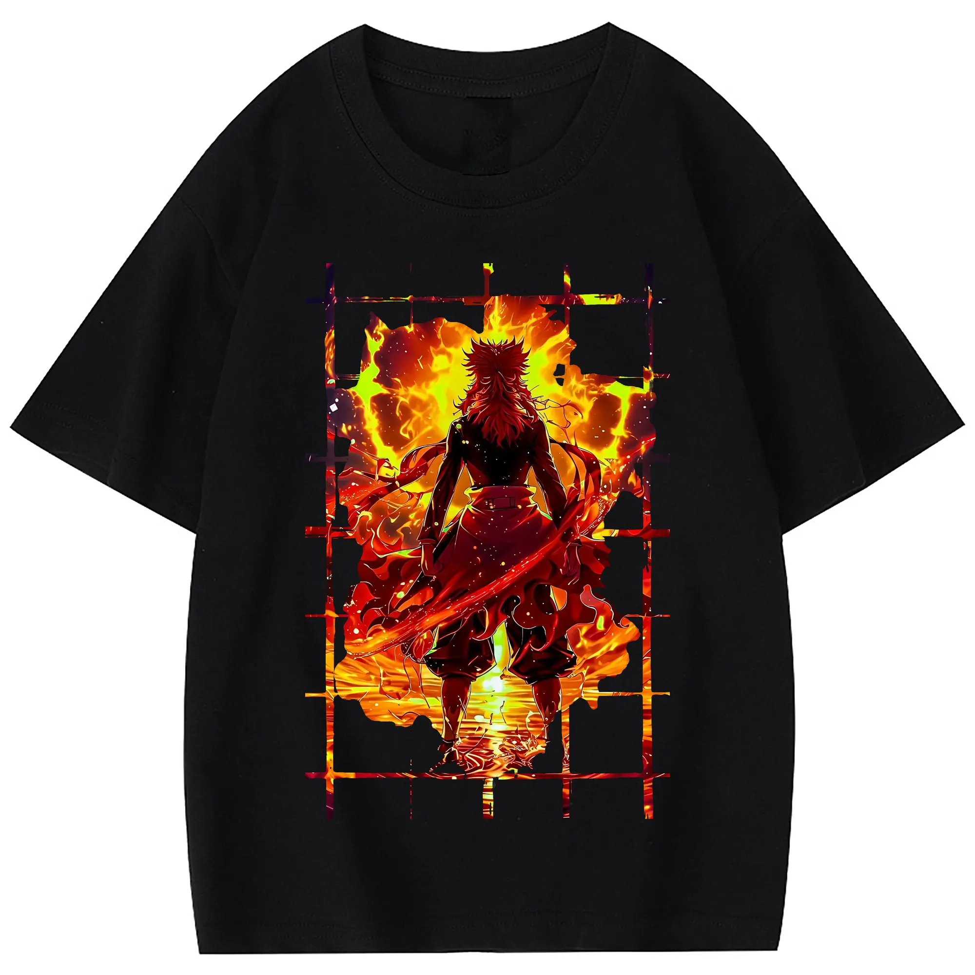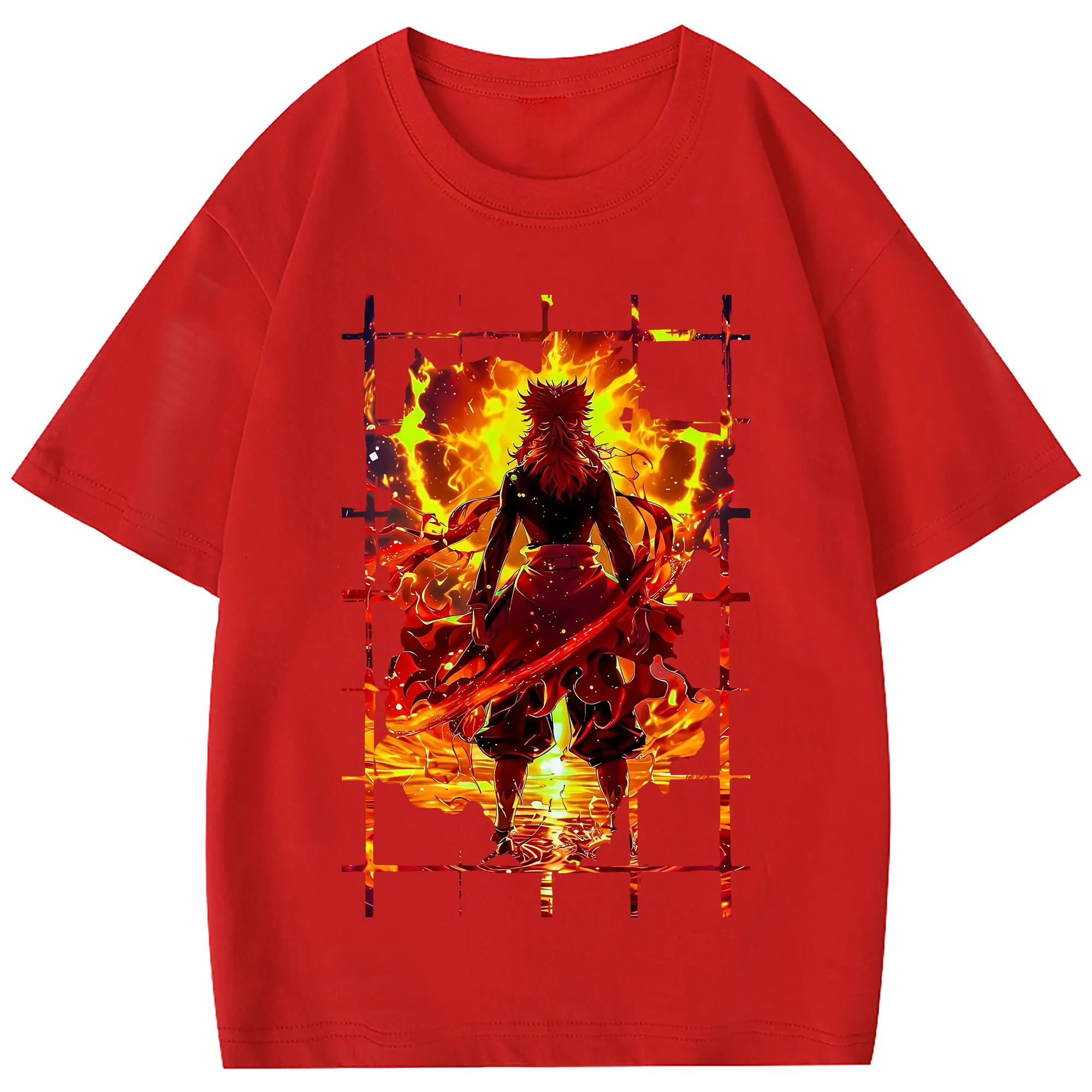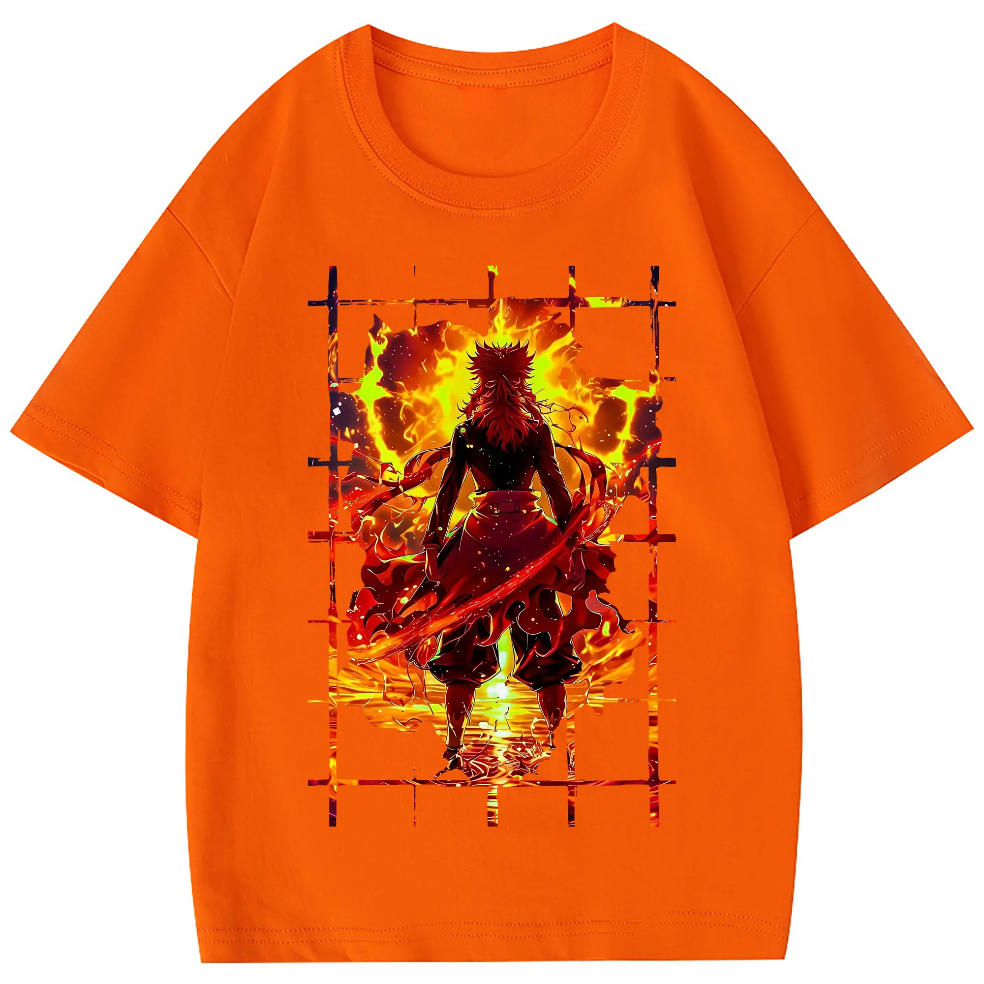 鬼滅の刃 グッズ,煉獄 杏寿郎 - 綿100% 半袖Tシャツ ・ フロントプリント ・ 快適 通気性 ・ 日常使い 散歩 スポーツ用