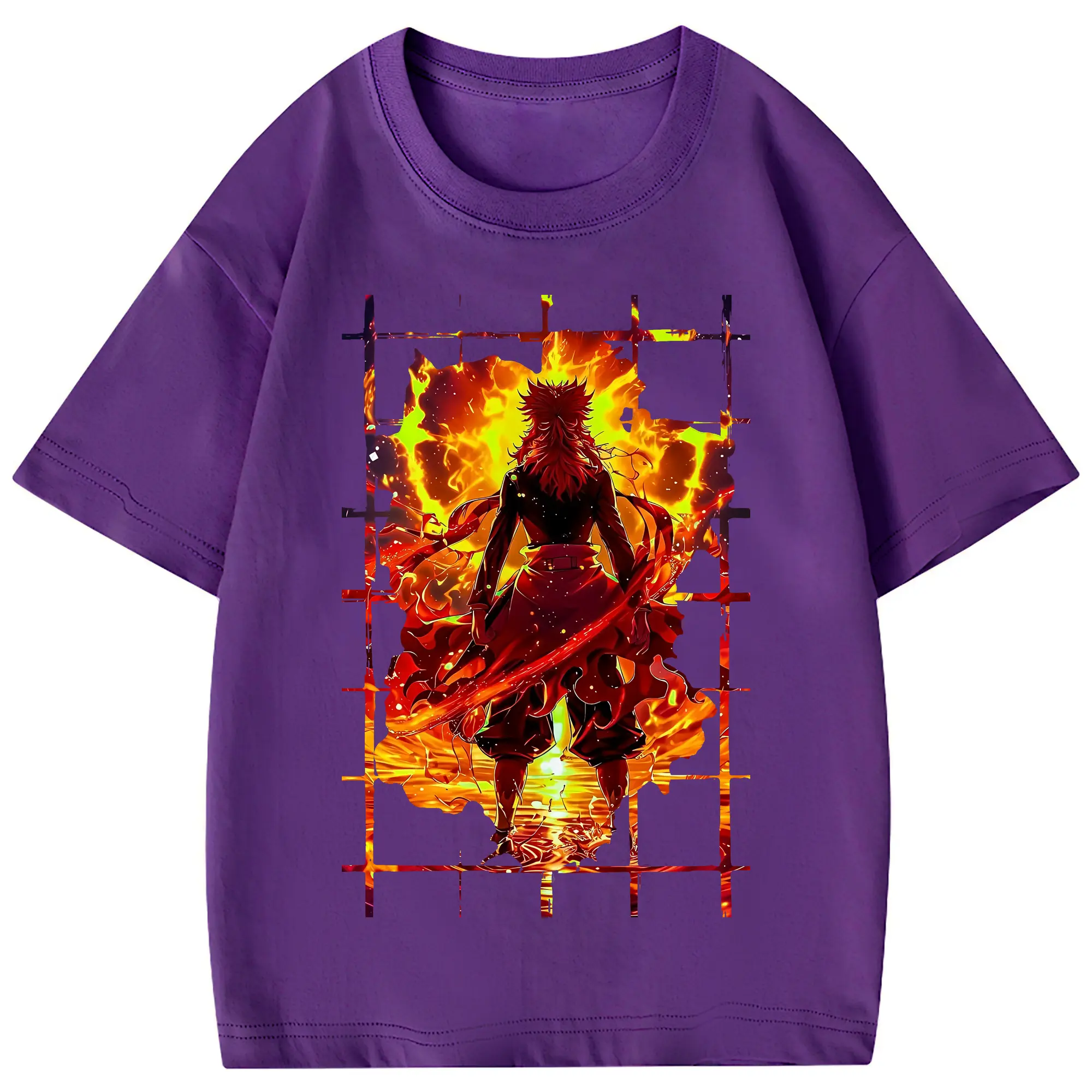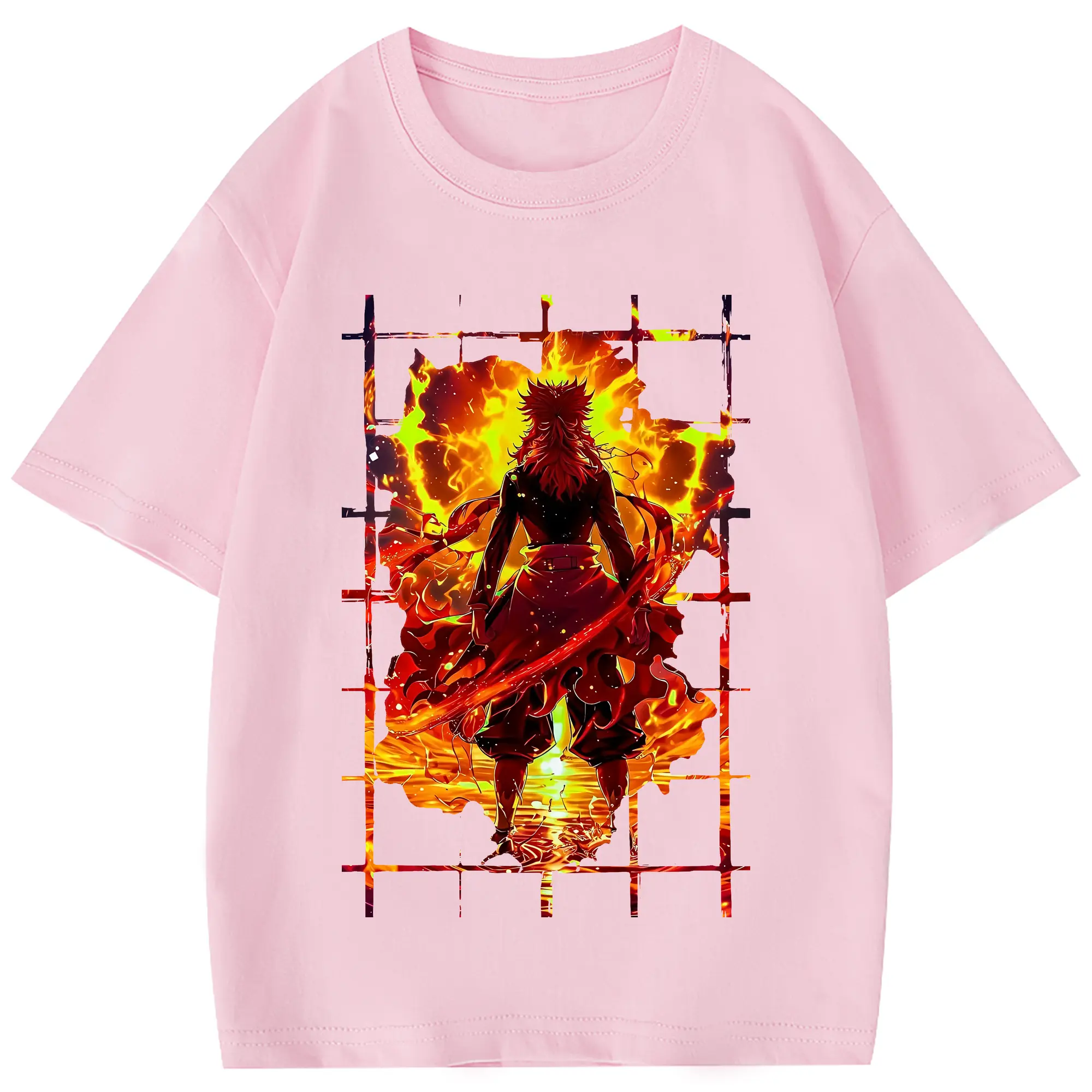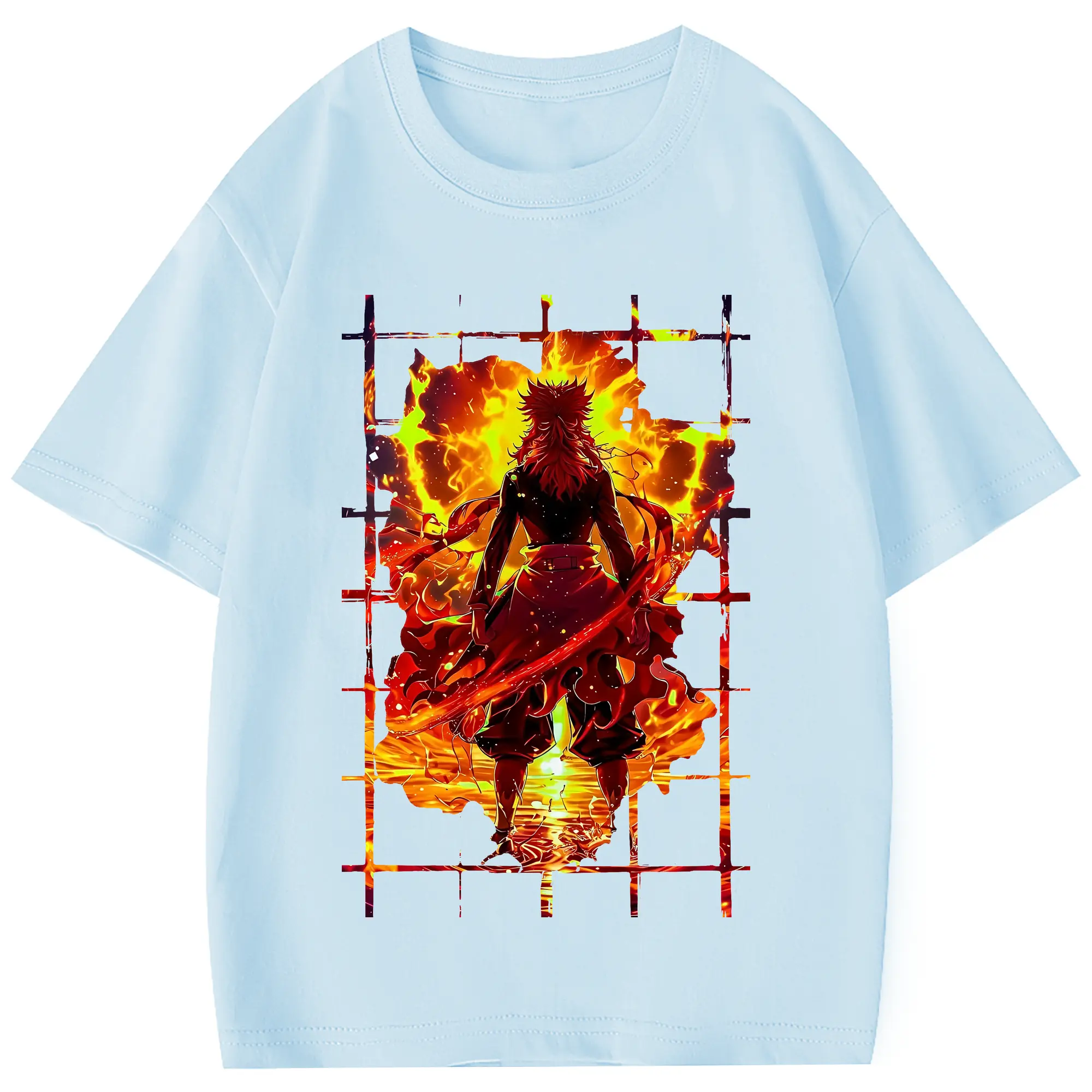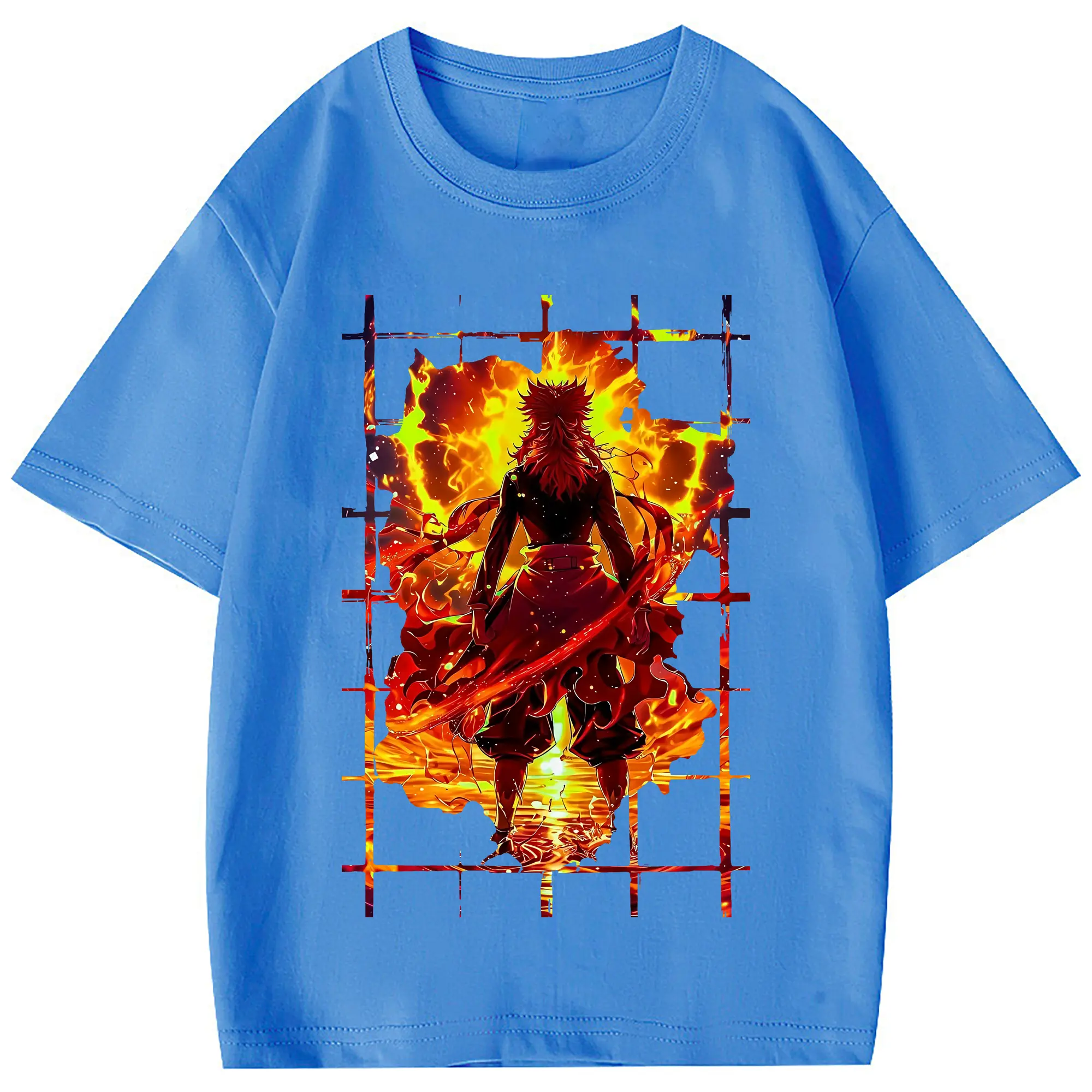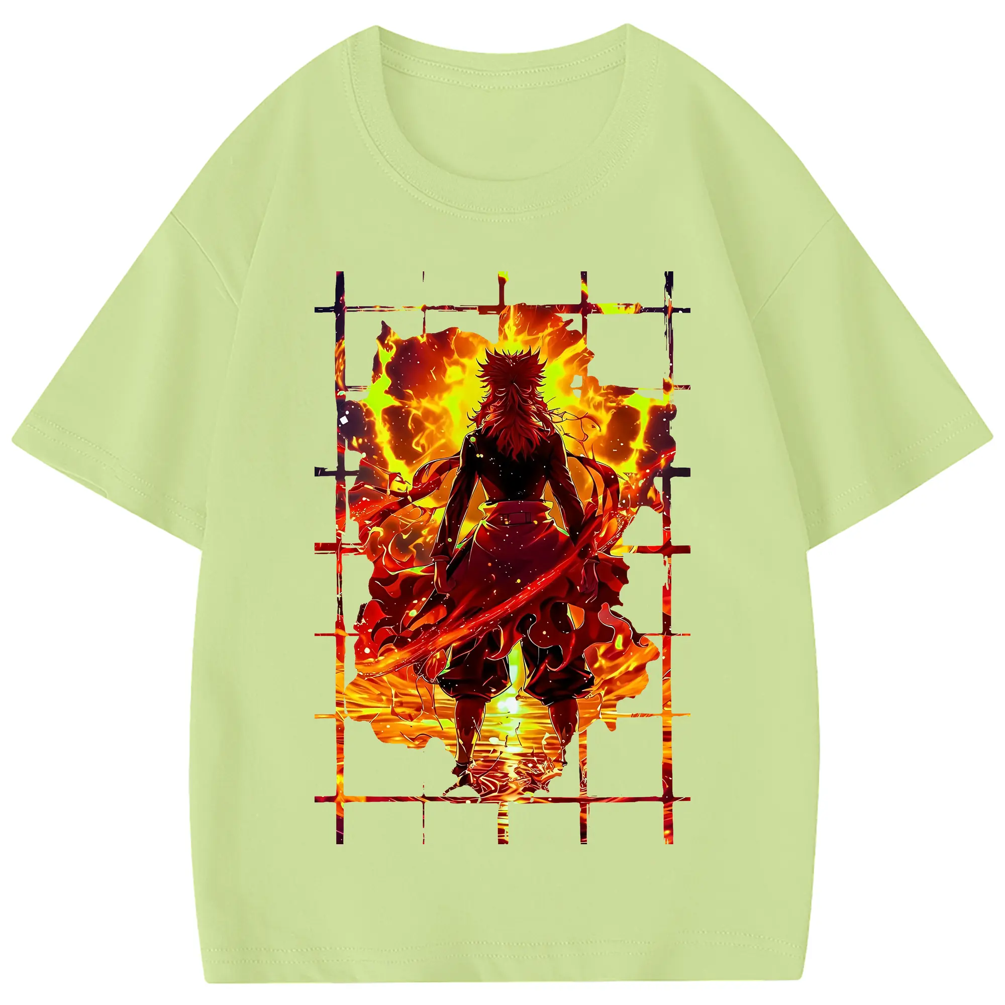 鬼滅の刃 グッズ,煉獄 杏寿郎 - 綿100% 半袖Tシャツ ・ フロントプリント ・ 快適 通気性 ・ 日常使い 散歩 スポーツ用