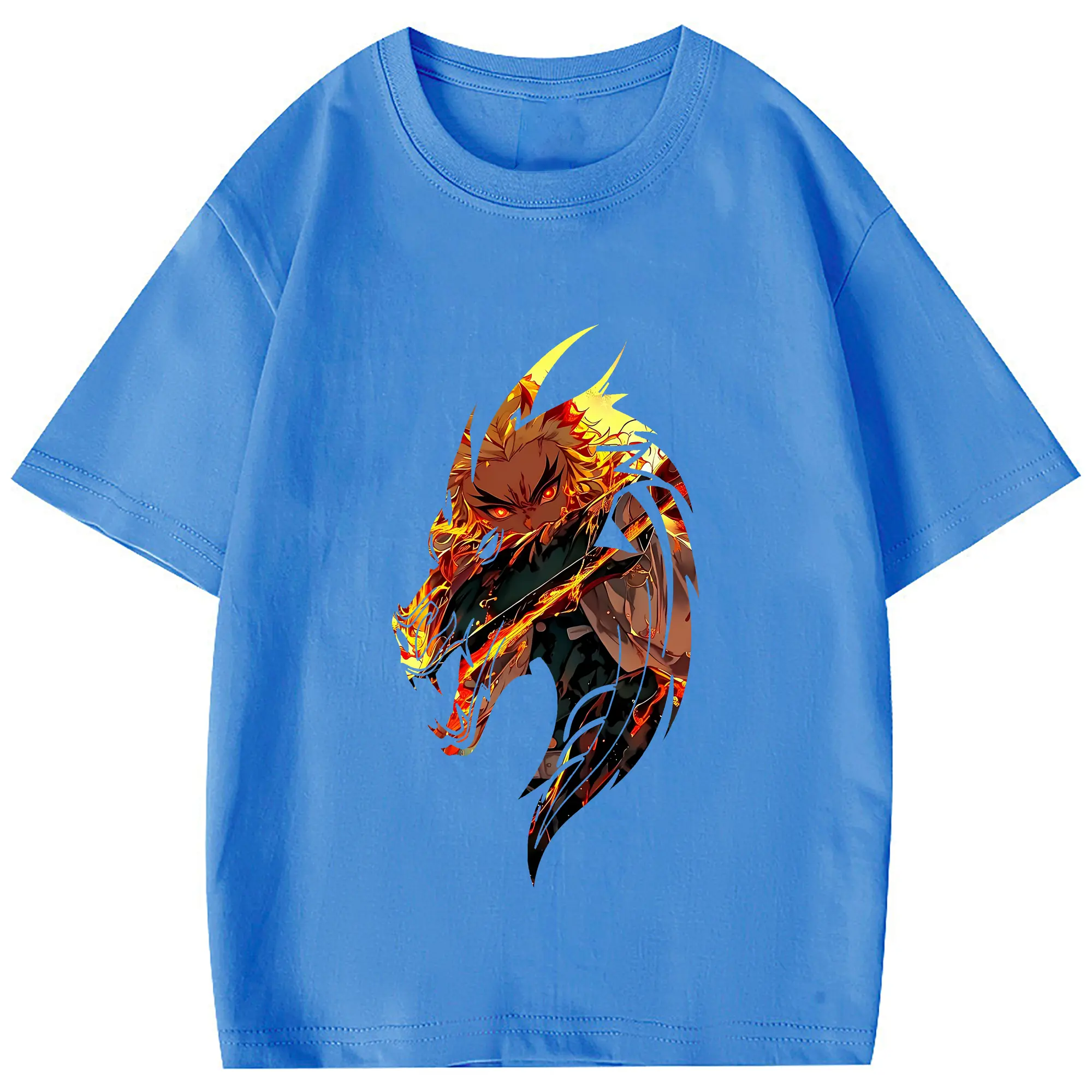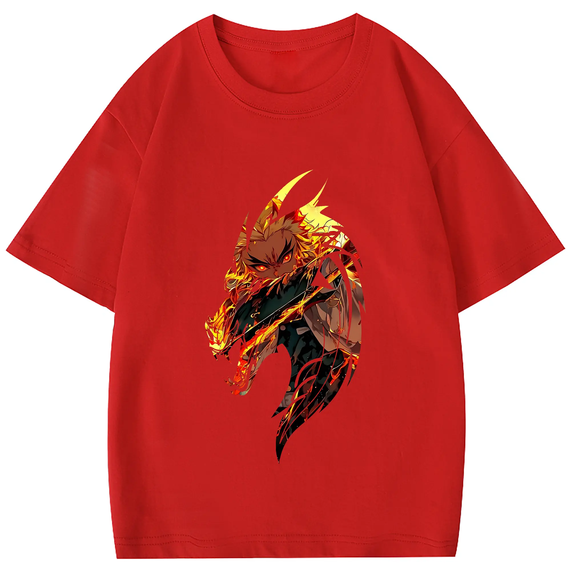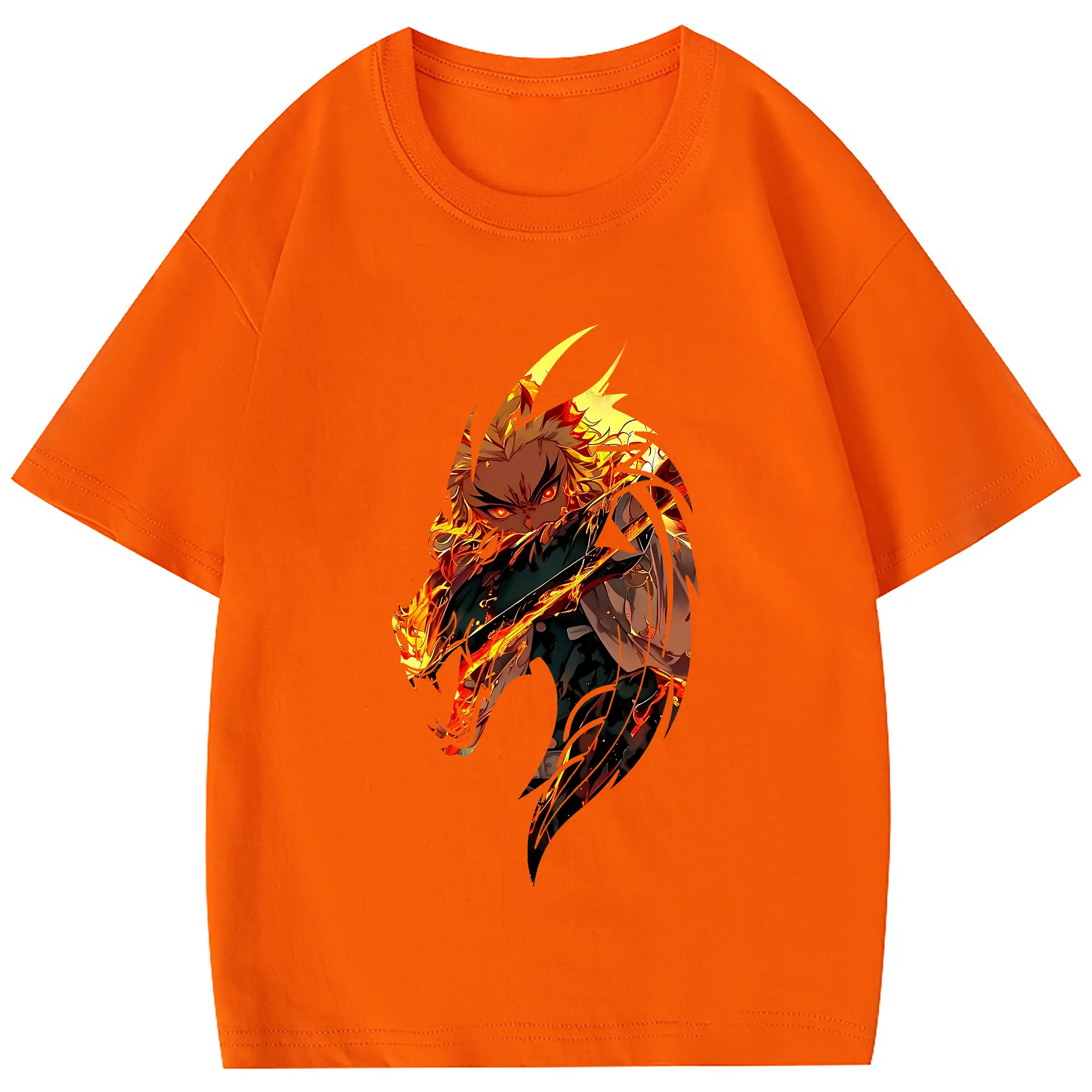 鬼滅の刃 グッズ,煉獄 杏寿郎 - 綿100% 半袖Tシャツ ・ フロントプリント ・ 快適 通気性 ・ 日常使い 散歩 スポーツ用