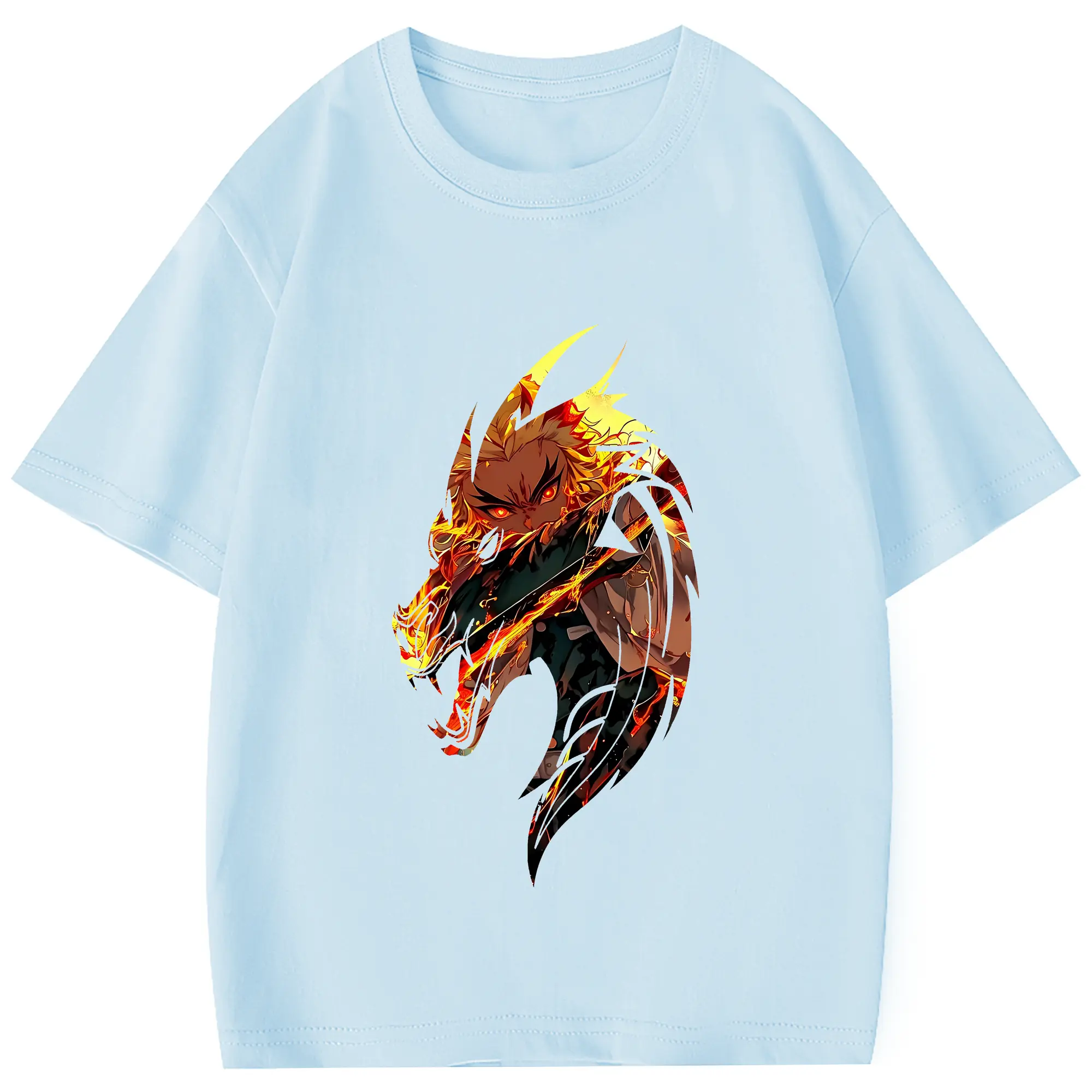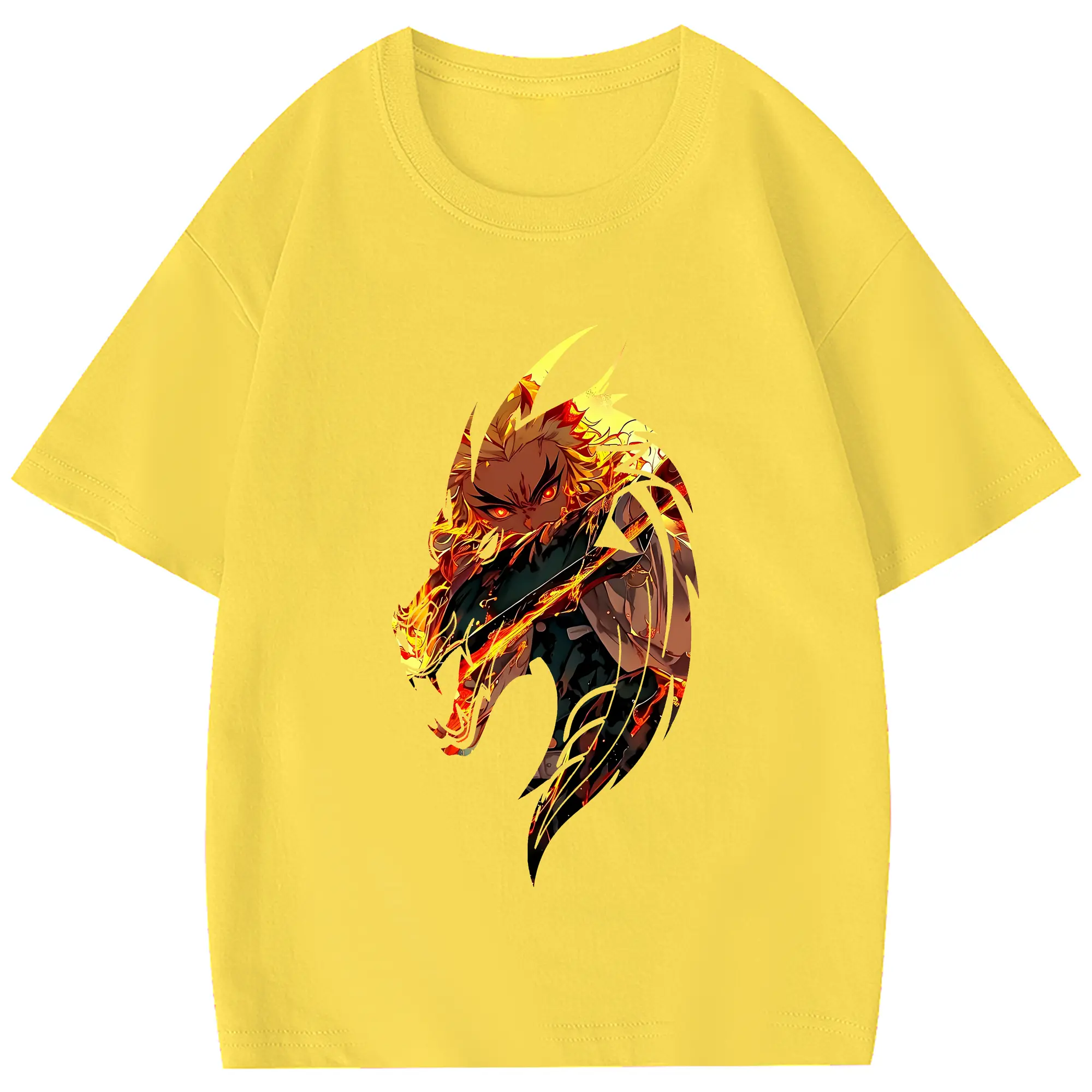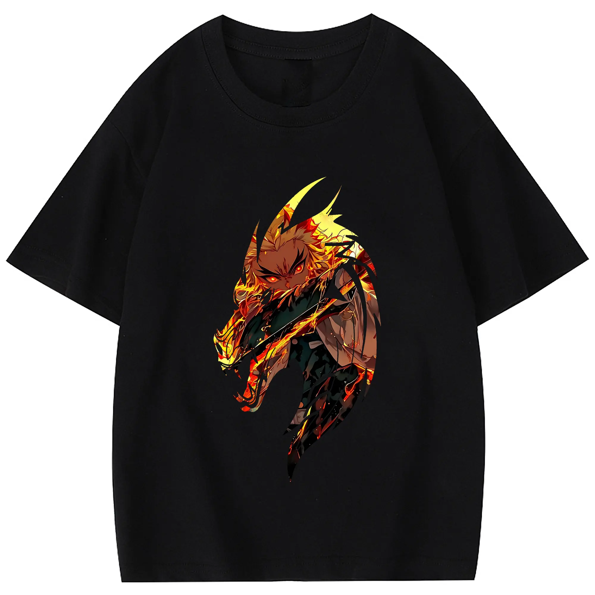 鬼滅の刃 グッズ,煉獄 杏寿郎 - 綿100% 半袖Tシャツ ・ フロントプリント ・ 快適 通気性 ・ 日常使い 散歩 スポーツ用