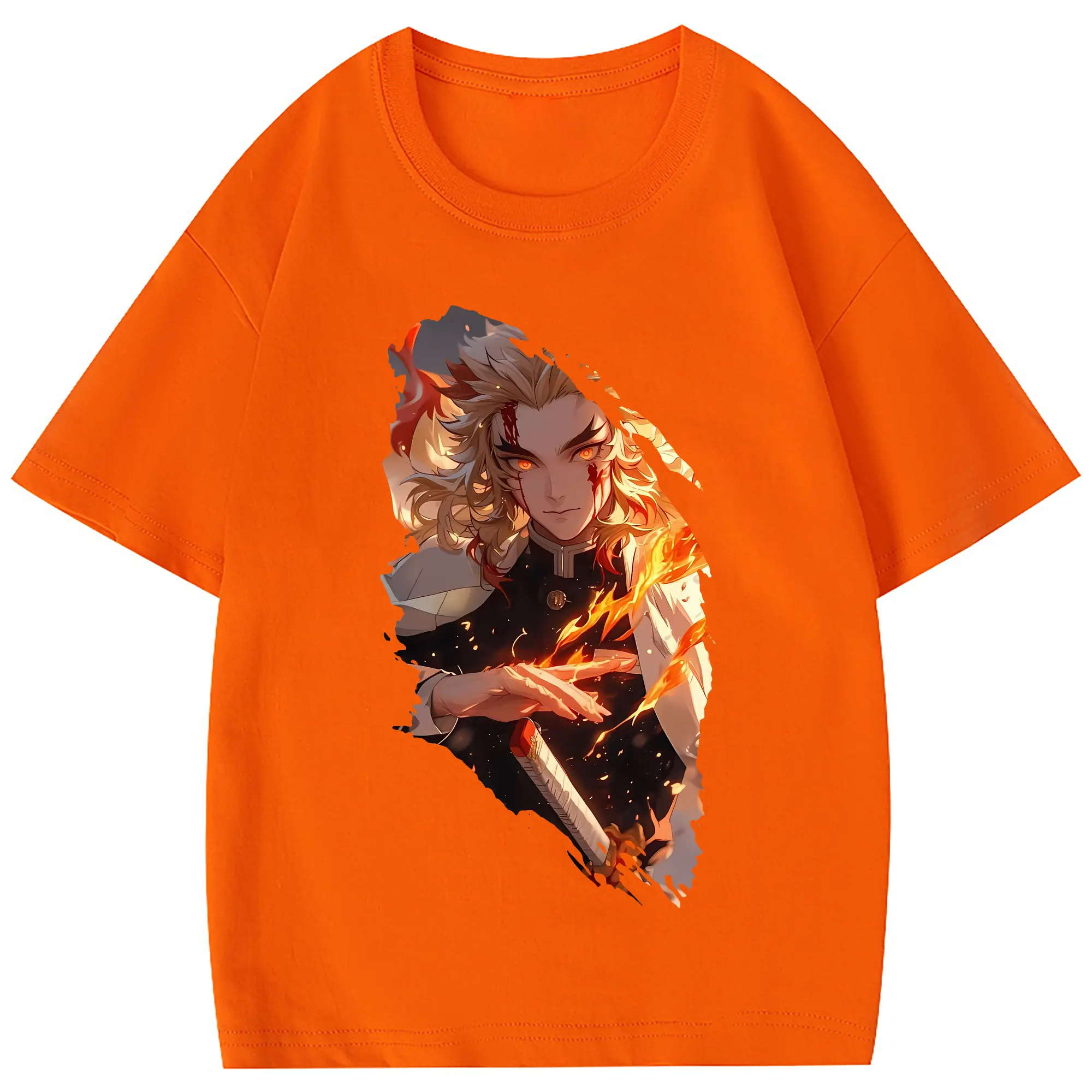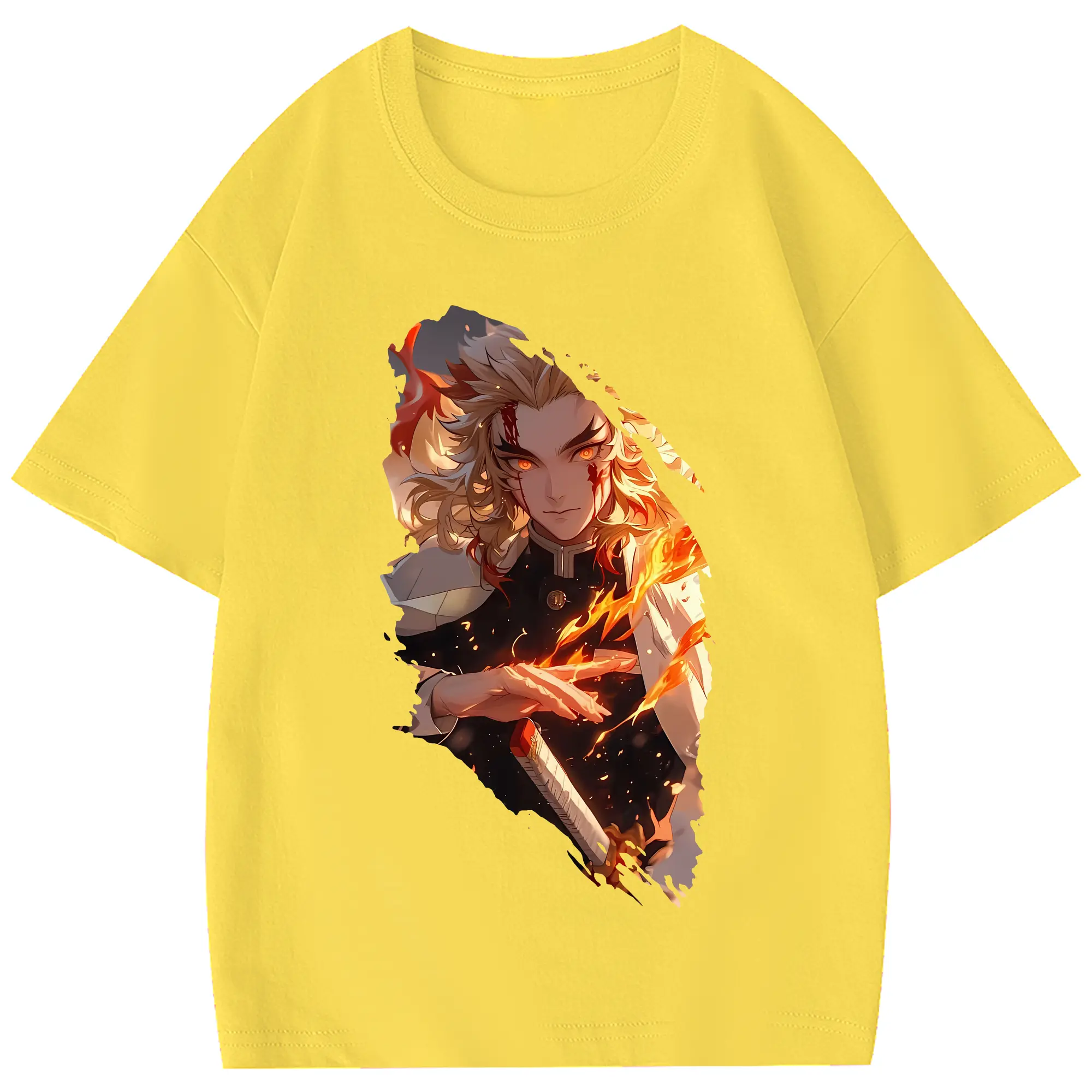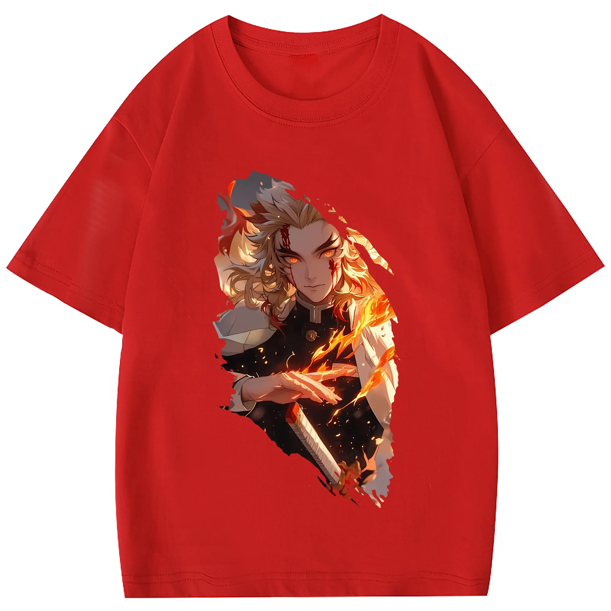 鬼滅の刃 グッズ,煉獄 杏寿郎 - 綿100% 半袖Tシャツ ・ フロントプリント ・ 快適 通気性 ・ 日常使い 散歩 スポーツ用