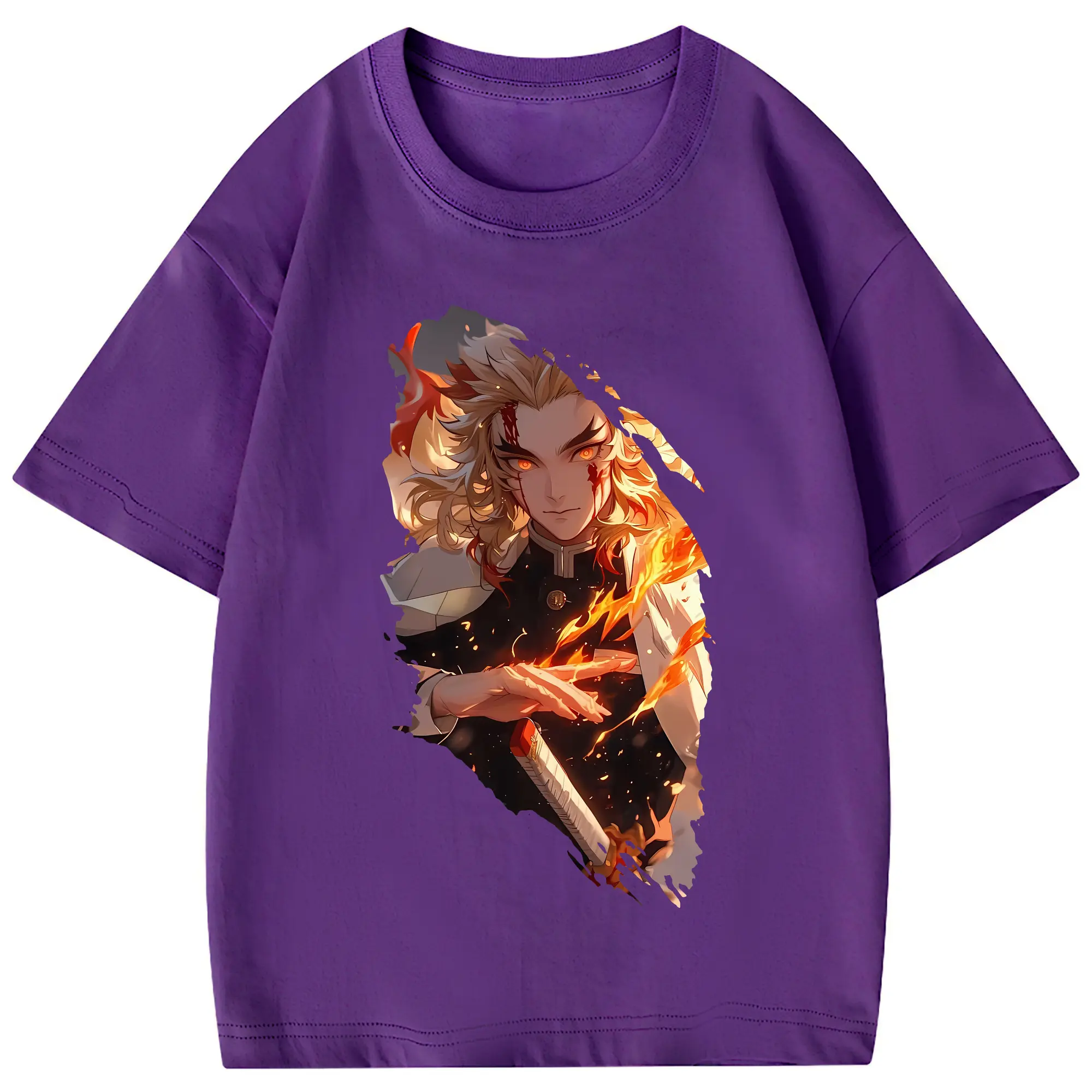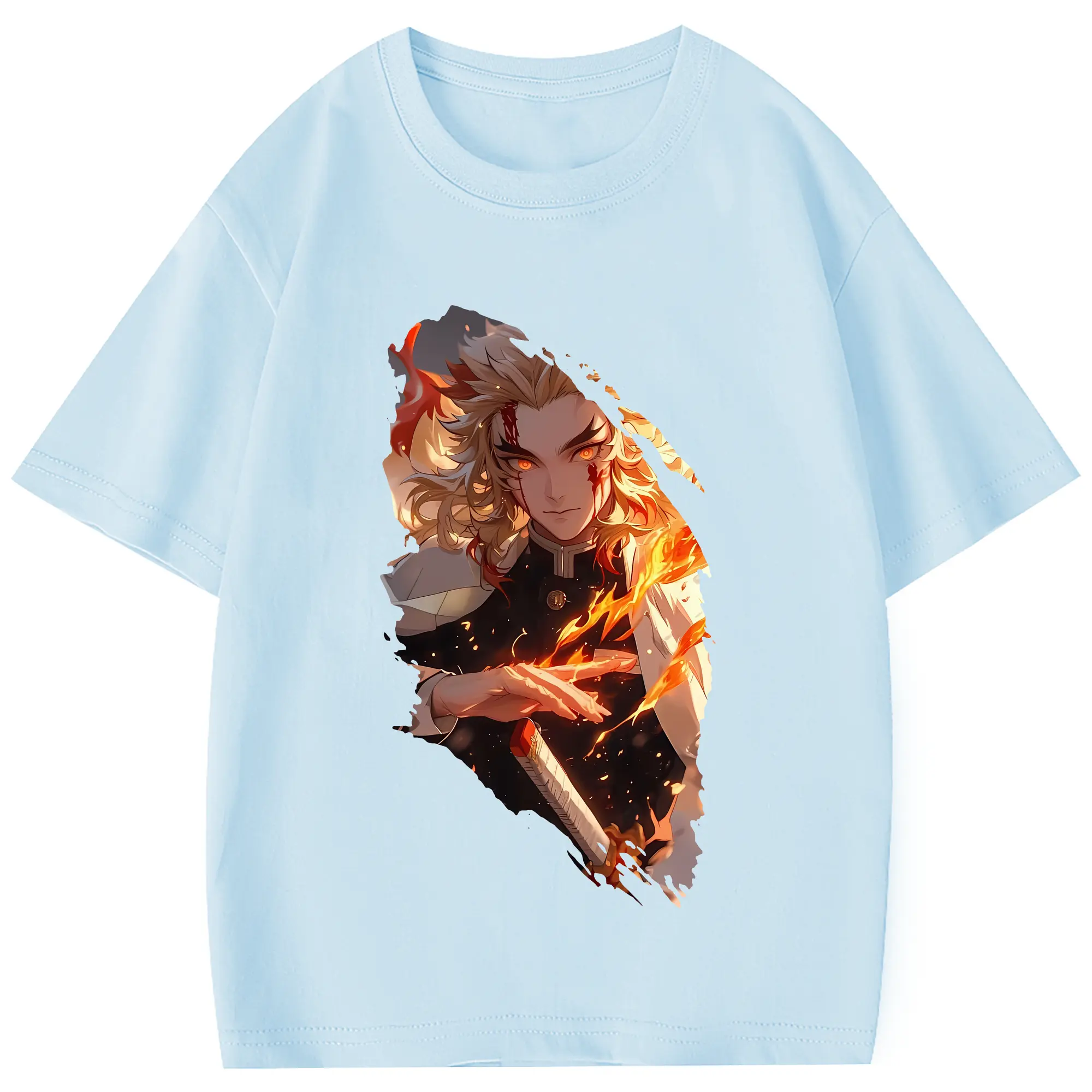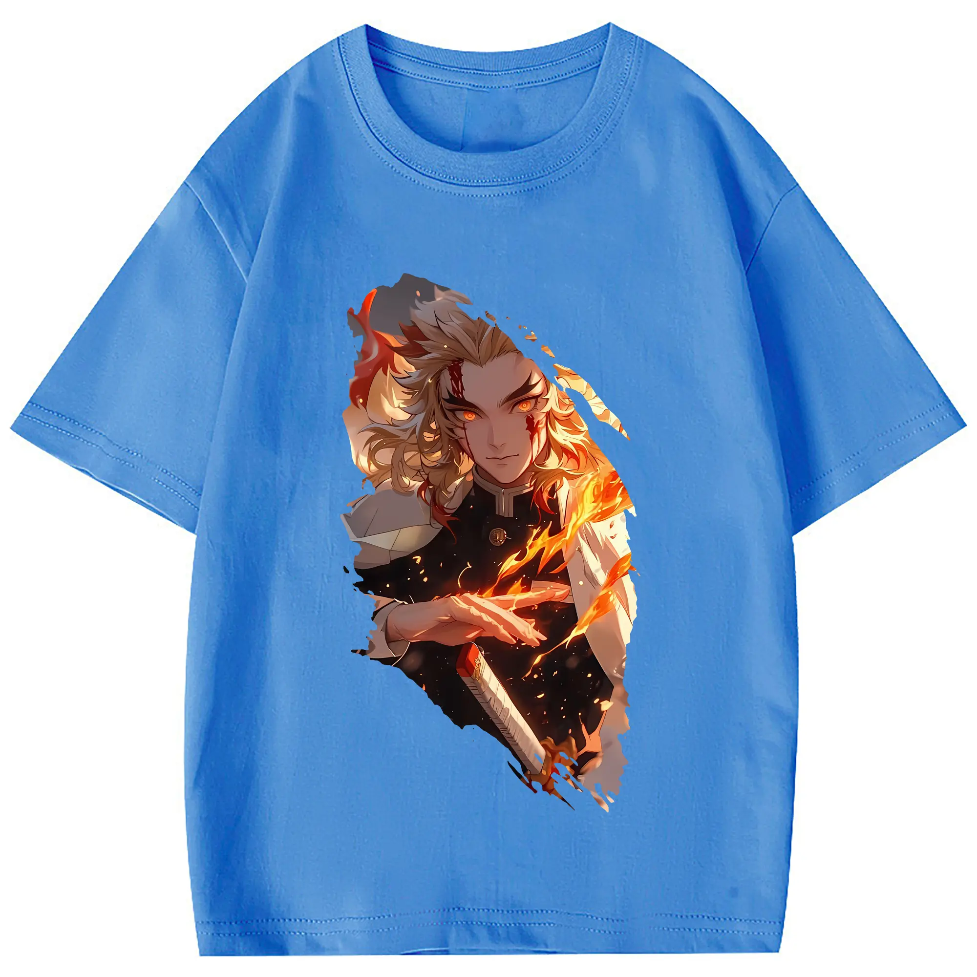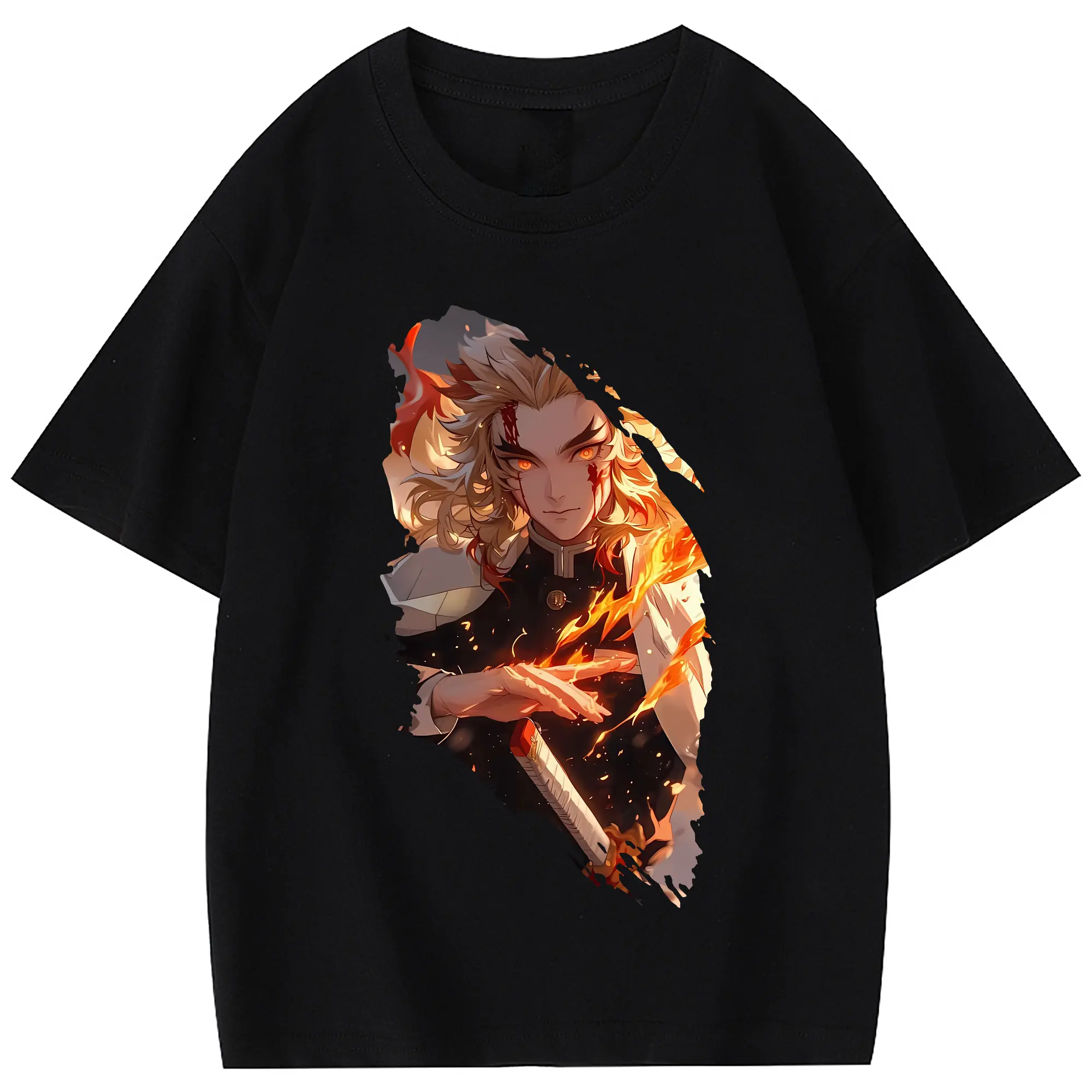 鬼滅の刃 グッズ,煉獄 杏寿郎 - 綿100% 半袖Tシャツ ・ フロントプリント ・ 快適 通気性 ・ 日常使い 散歩 スポーツ用