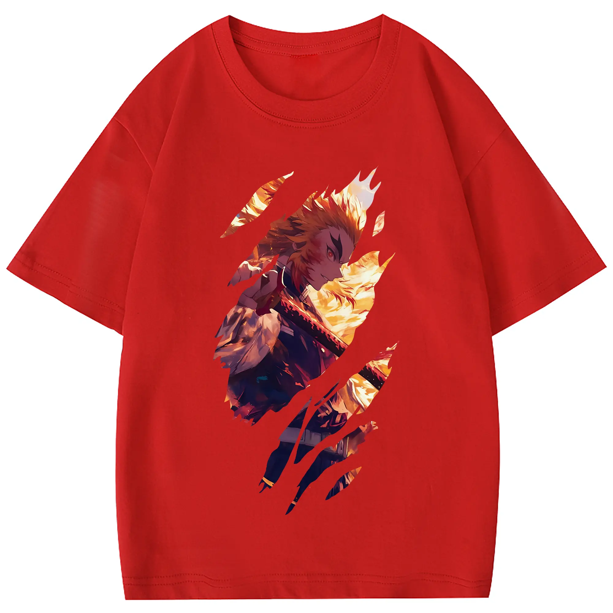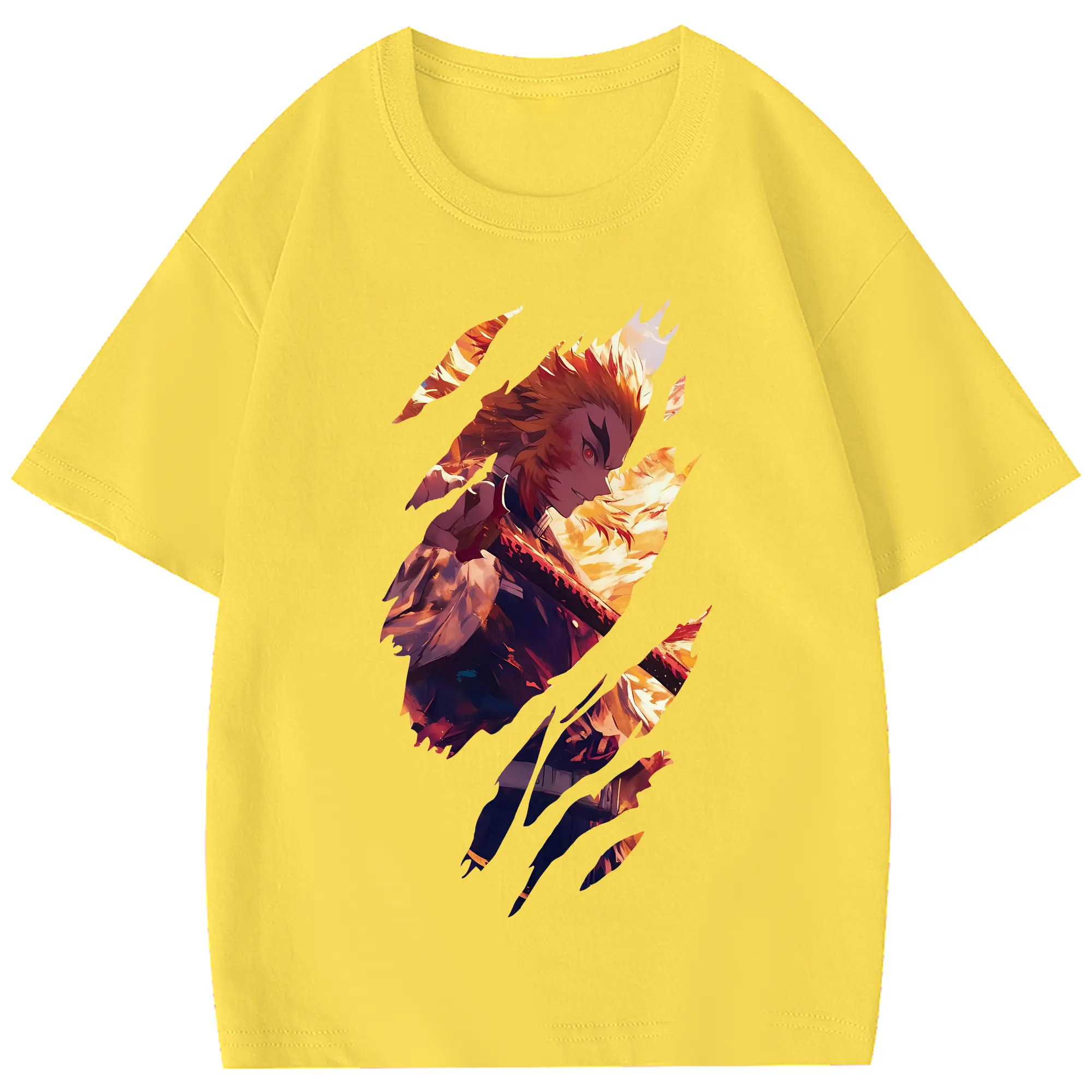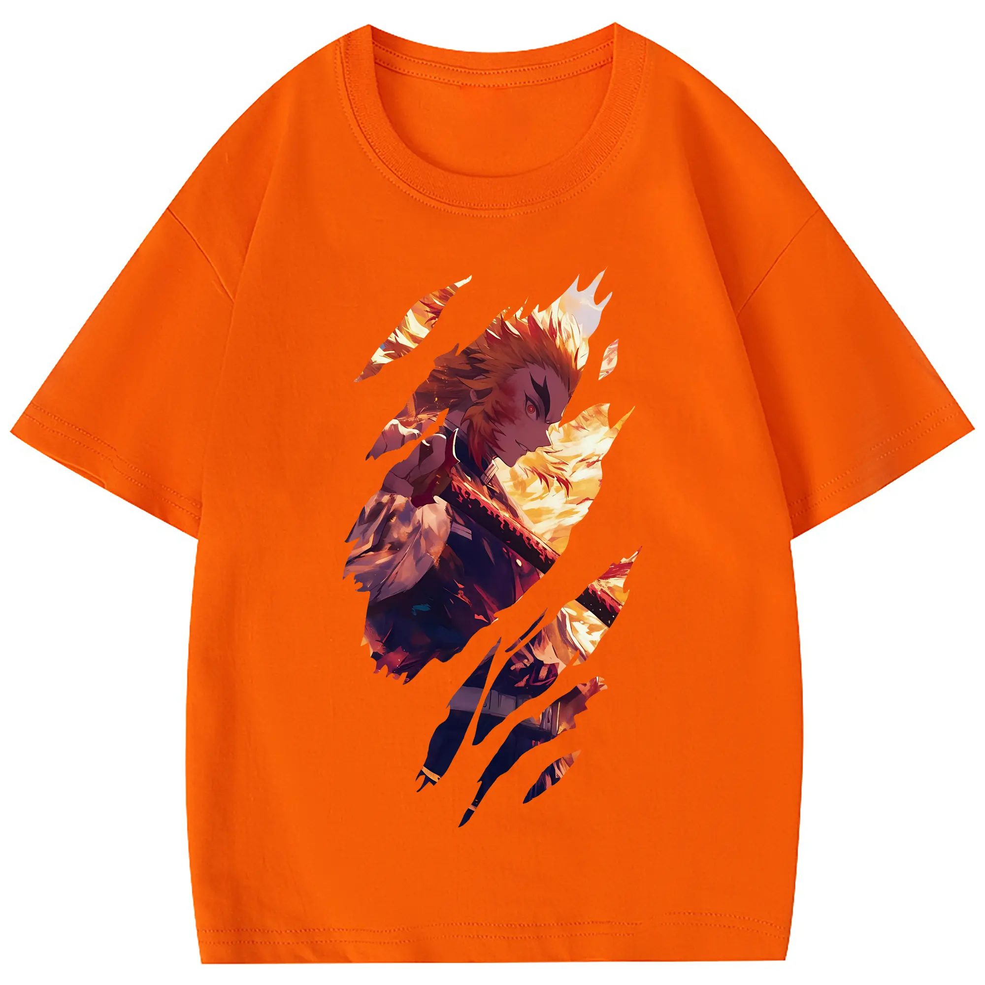 鬼滅の刃 グッズ,煉獄 杏寿郎 - 綿100% 半袖Tシャツ ・ フロントプリント ・ 快適 通気性 ・ 日常使い 散歩 スポーツ用