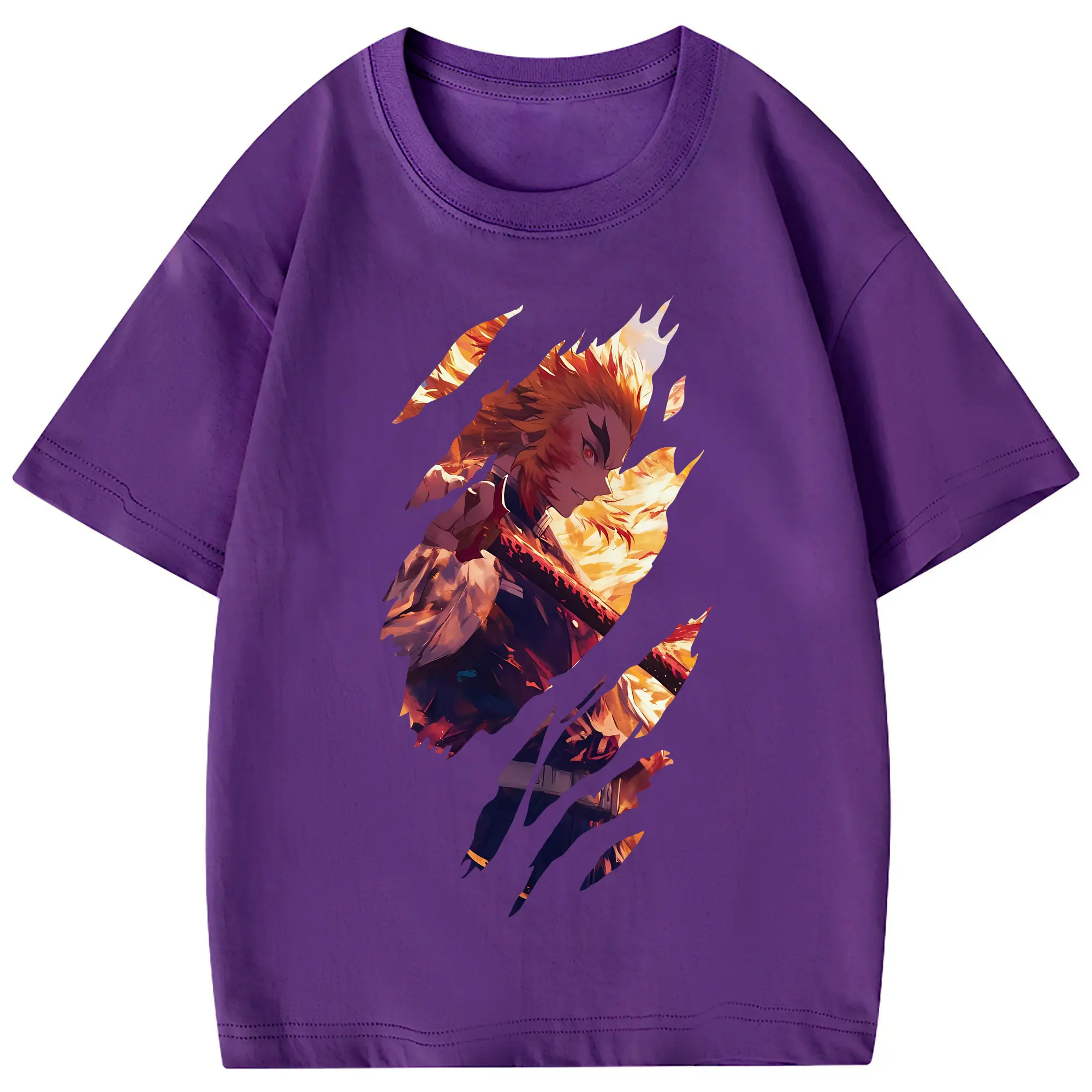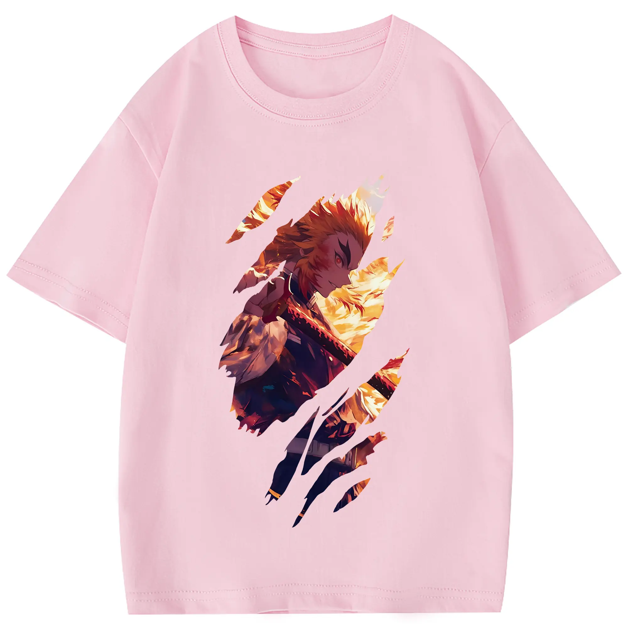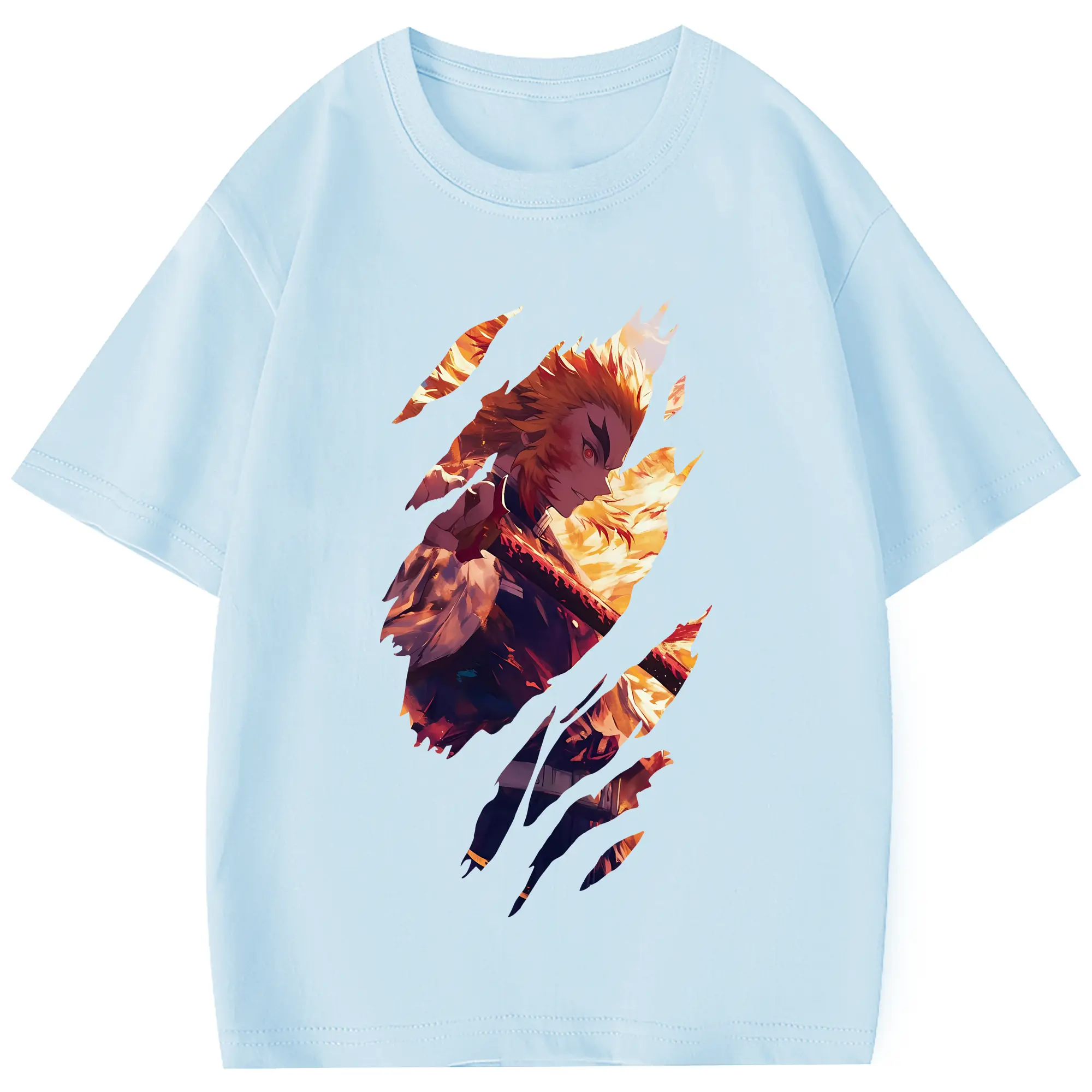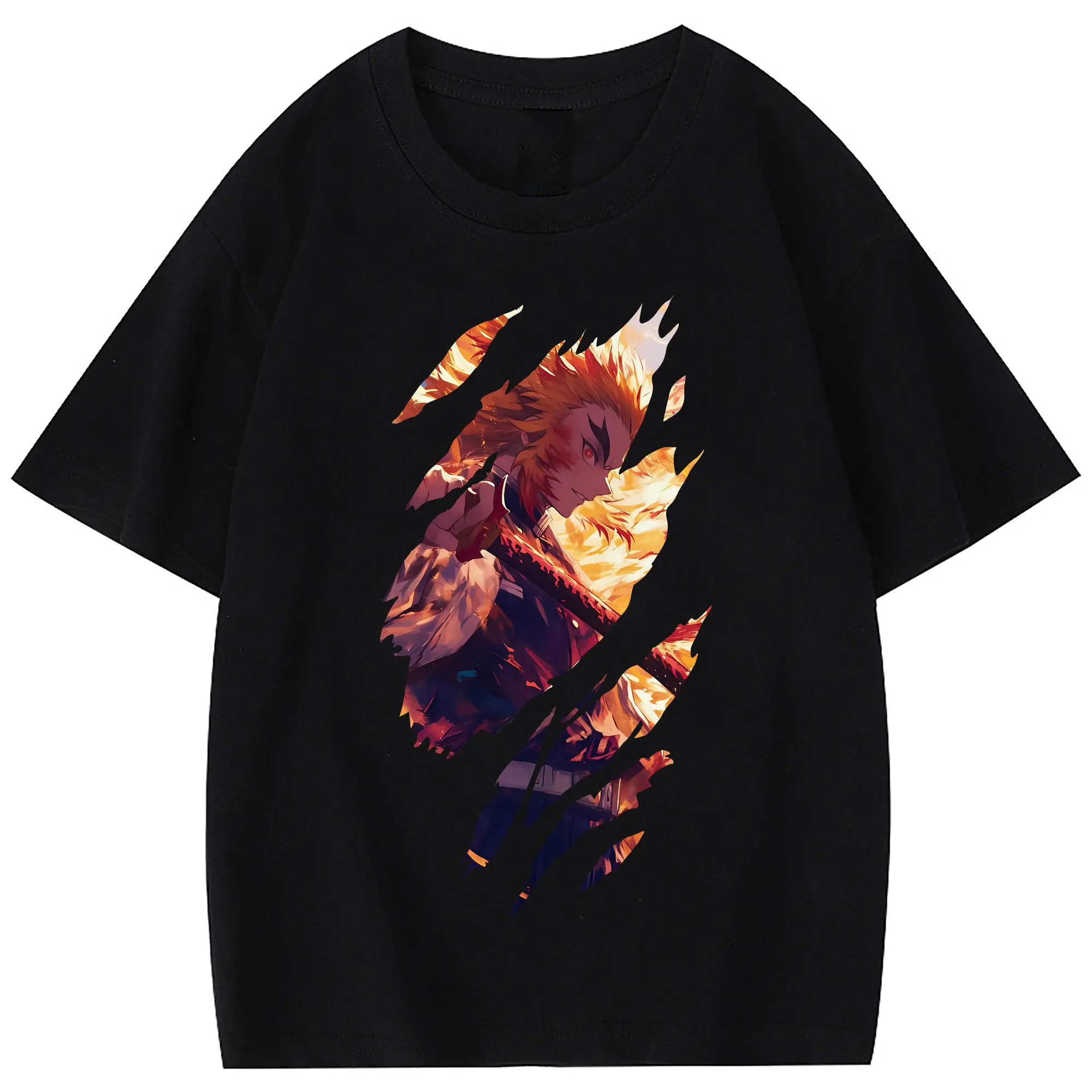 鬼滅の刃 グッズ,煉獄 杏寿郎 - 綿100% 半袖Tシャツ ・ フロントプリント ・ 快適 通気性 ・ 日常使い 散歩 スポーツ用