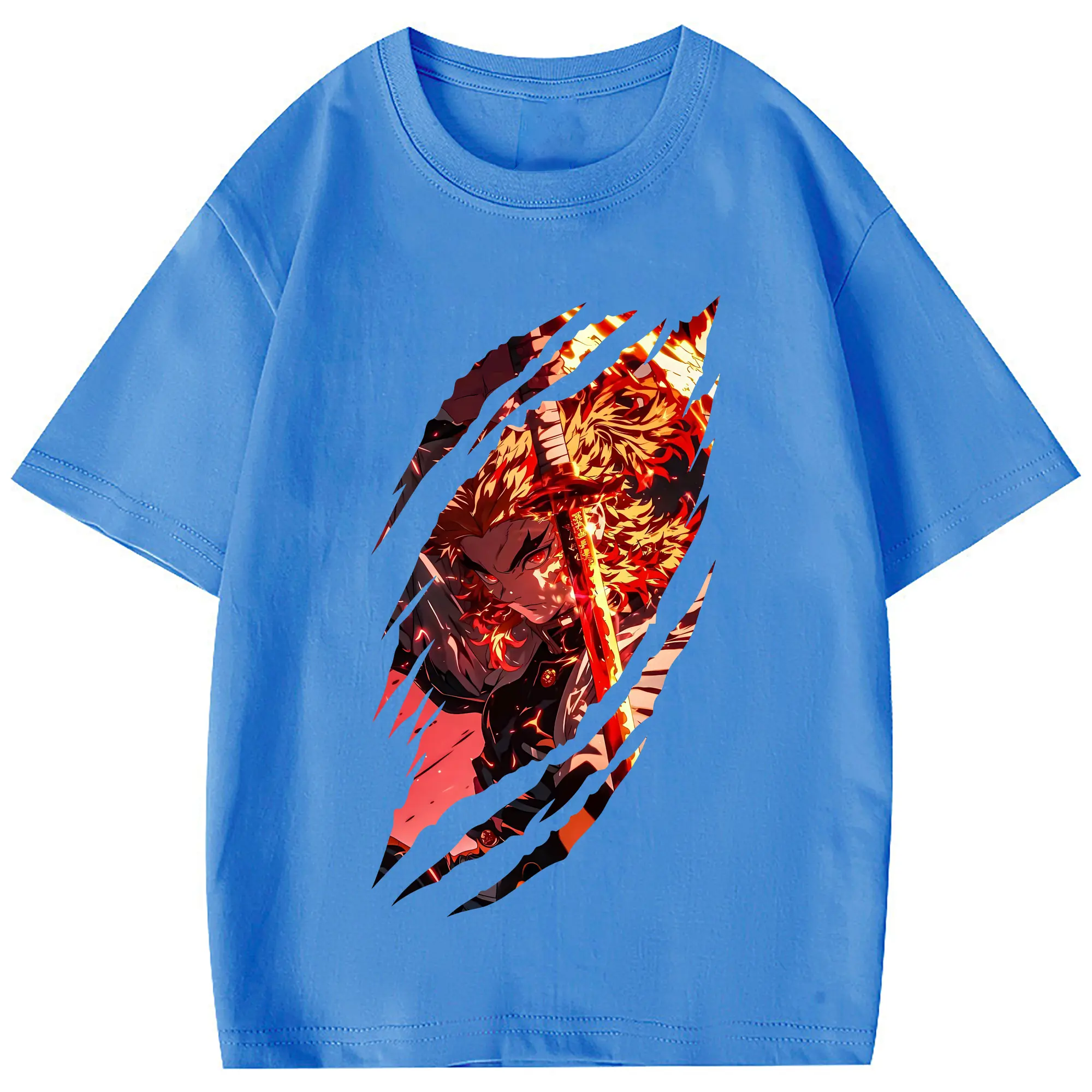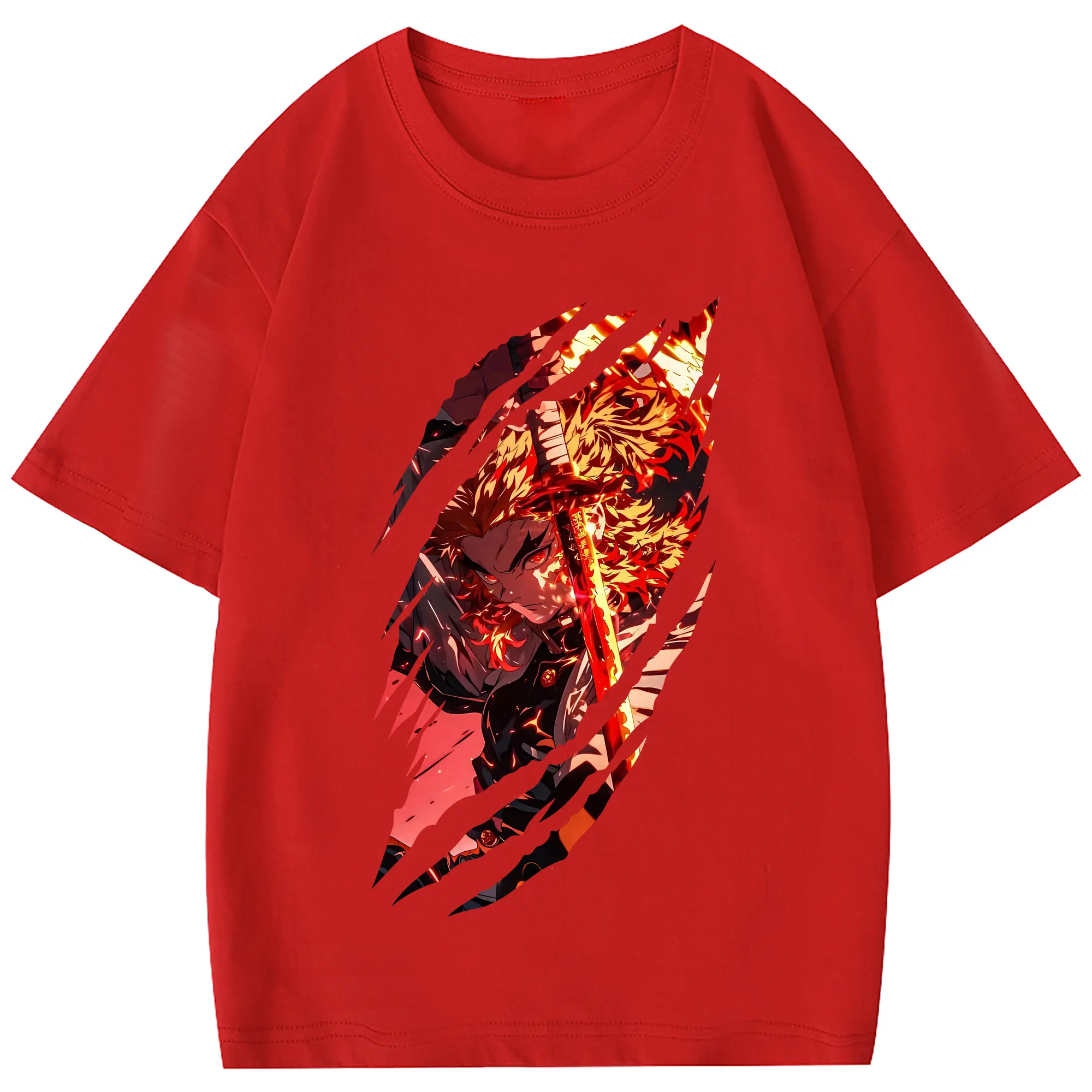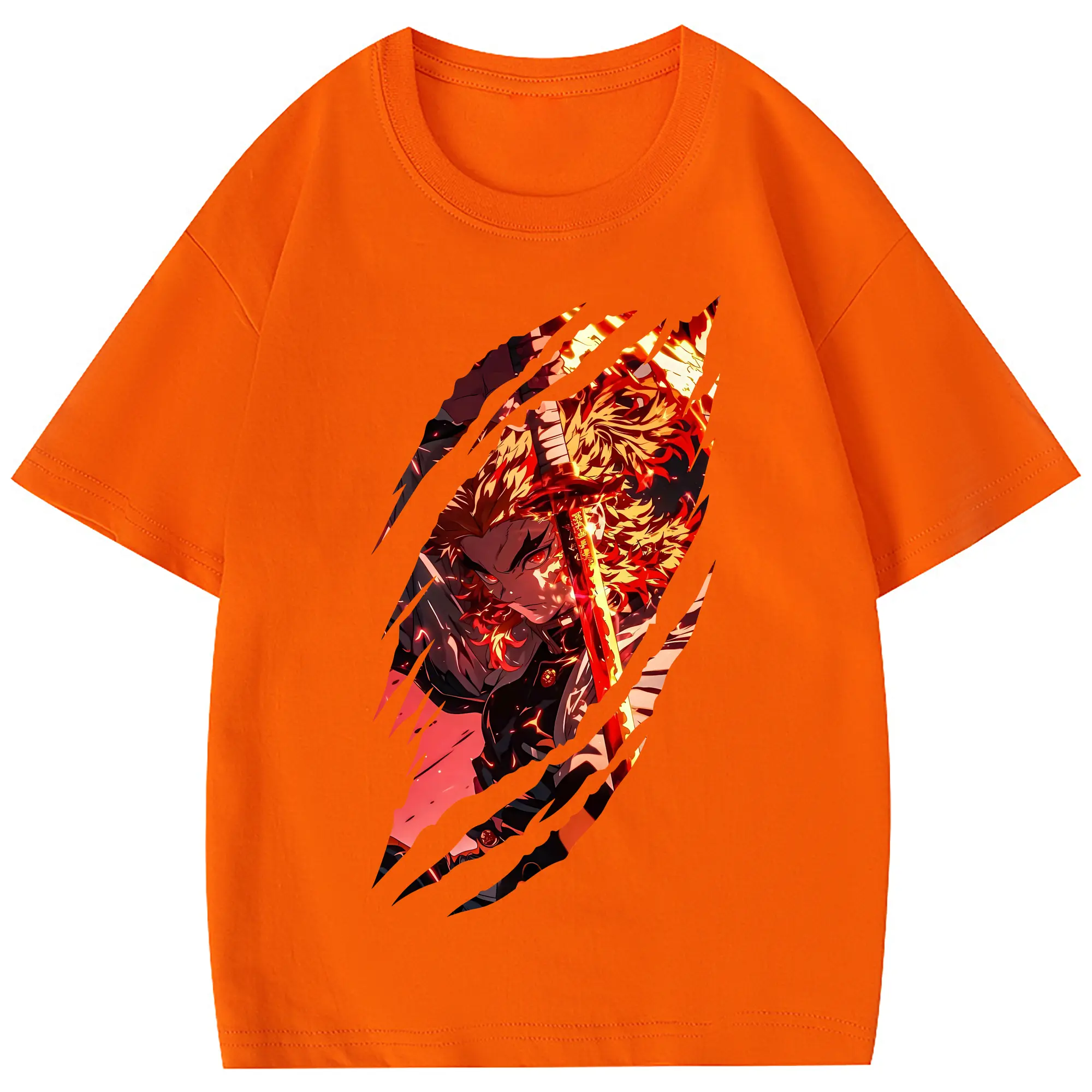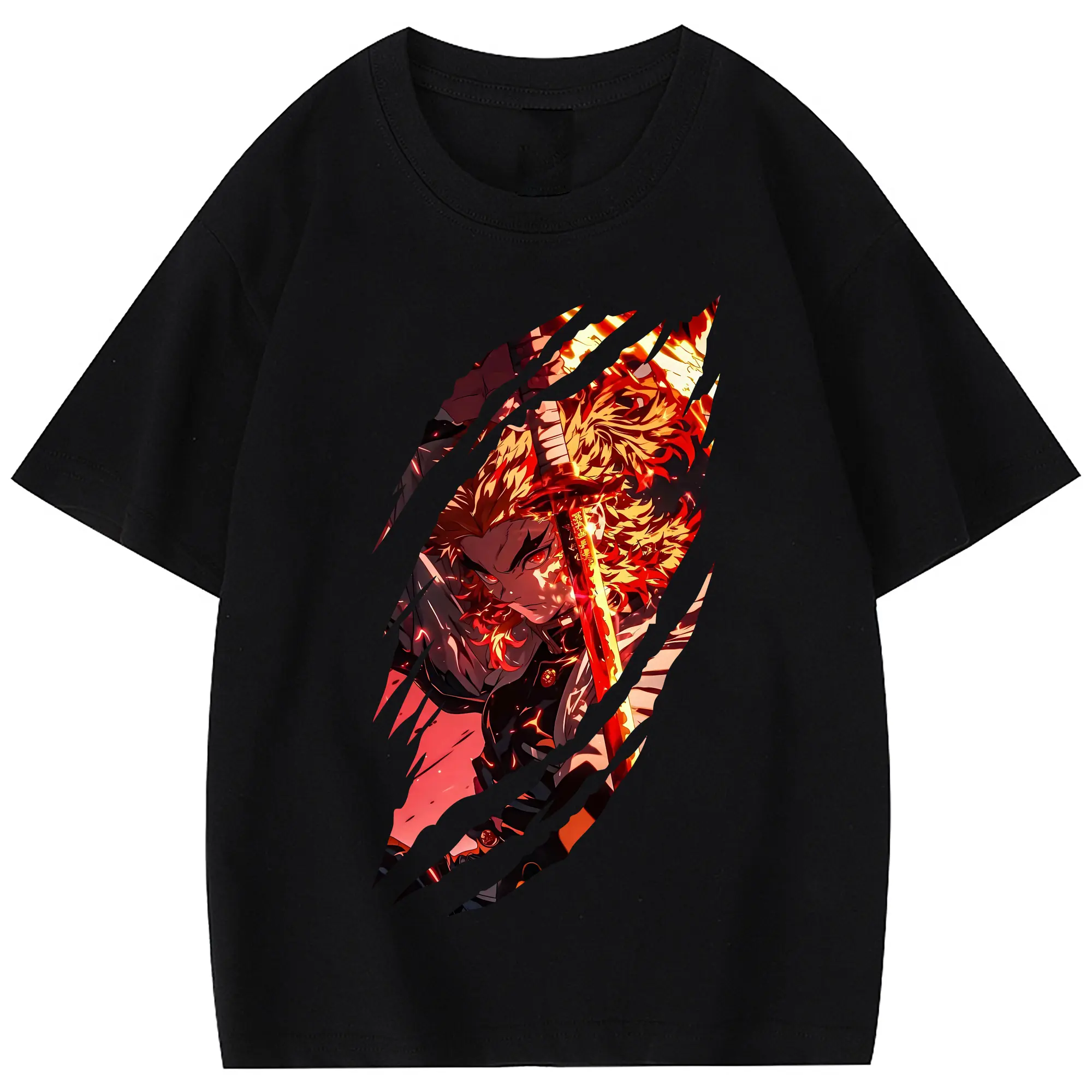 鬼滅の刃 グッズ,煉獄 杏寿郎 - 綿100% 半袖Tシャツ ・ フロントプリント ・ 快適 通気性 ・ 日常使い 散歩 スポーツ用