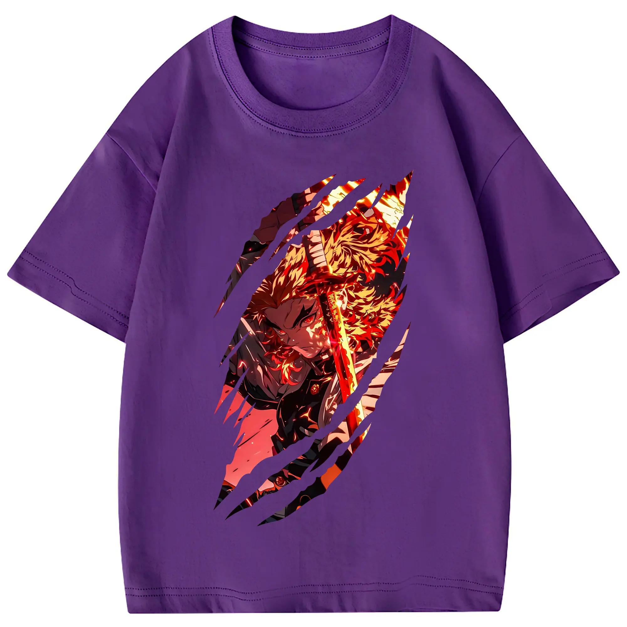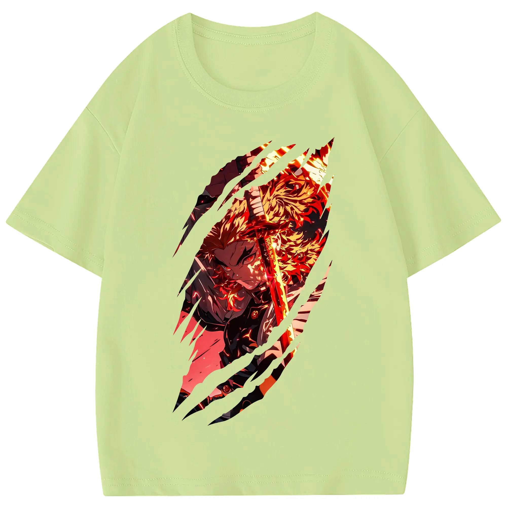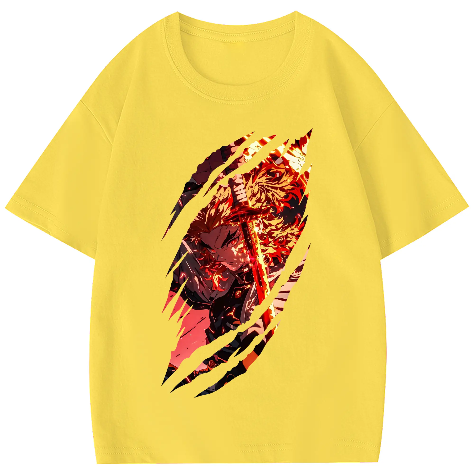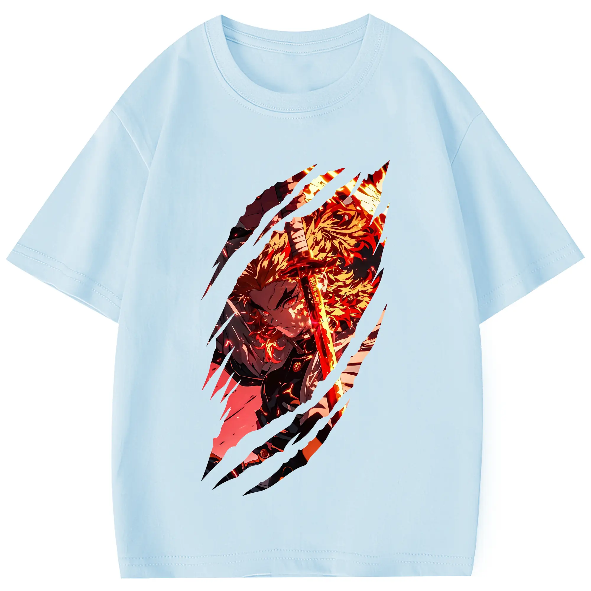 鬼滅の刃 グッズ,煉獄 杏寿郎 - 綿100% 半袖Tシャツ ・ フロントプリント ・ 快適 通気性 ・ 日常使い 散歩 スポーツ用