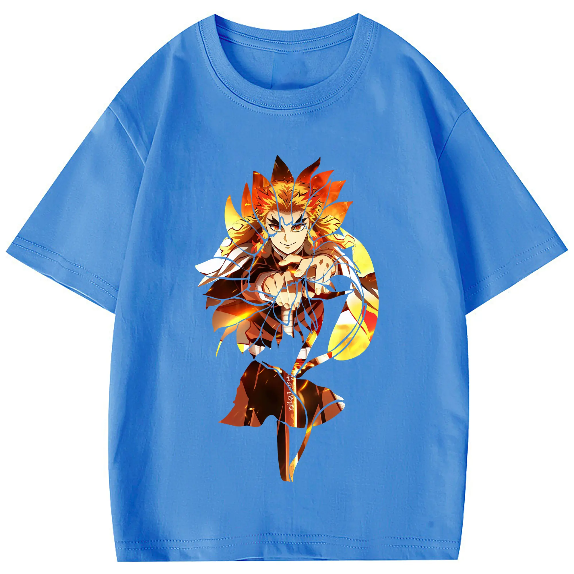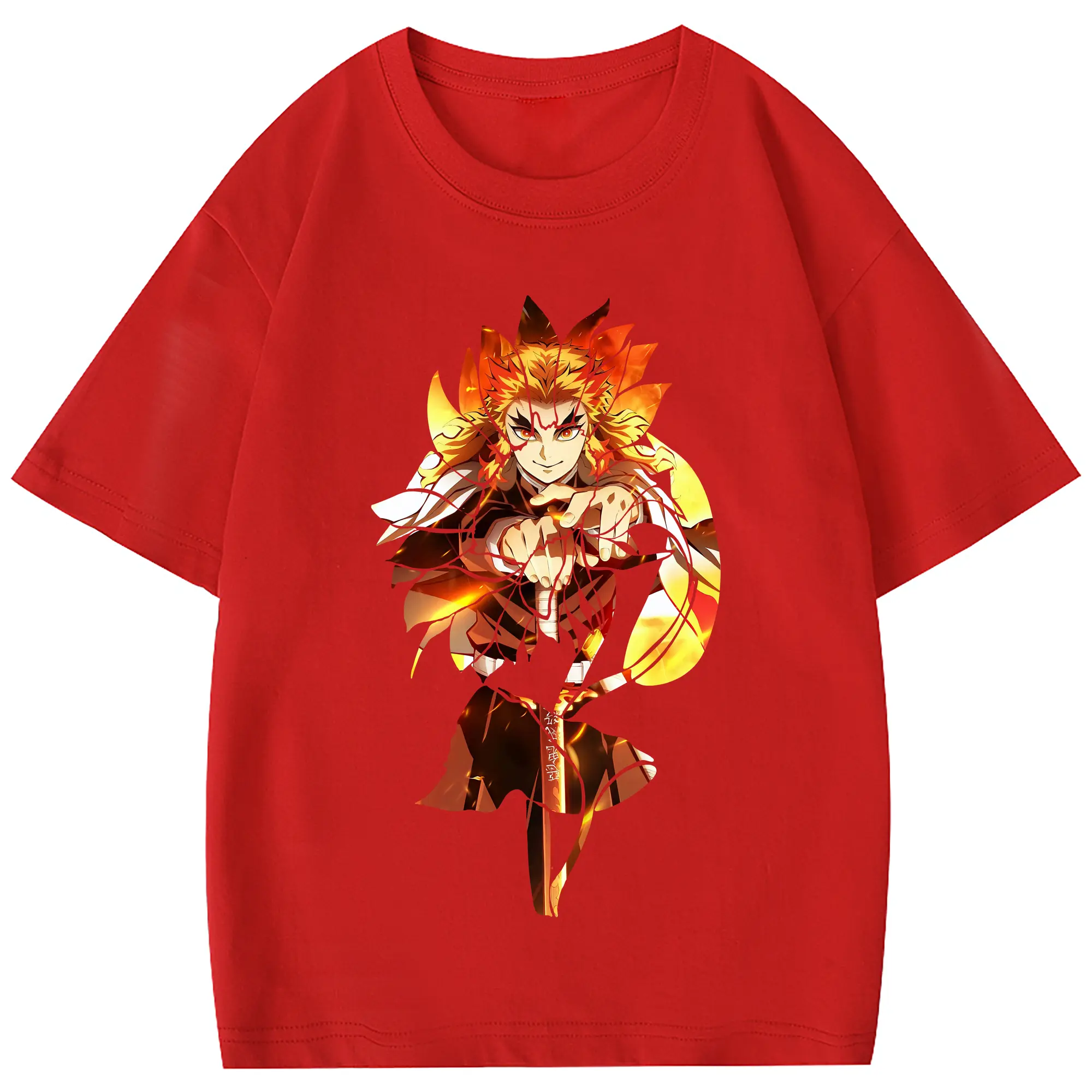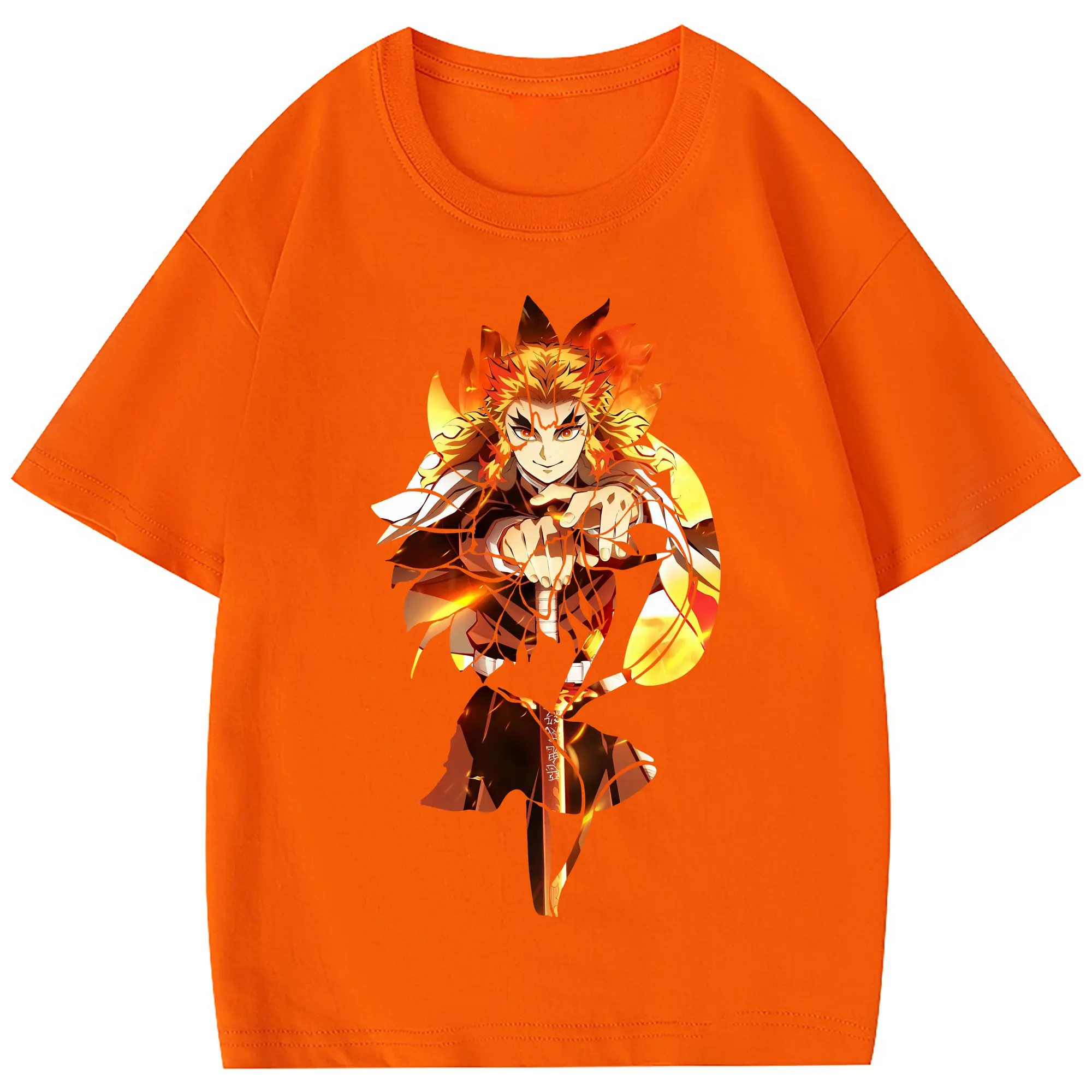 鬼滅の刃 グッズ,煉獄 杏寿郎 - 綿100% 半袖Tシャツ ・ フロントプリント ・ 快適 通気性 ・ 日常使い 散歩 スポーツ用