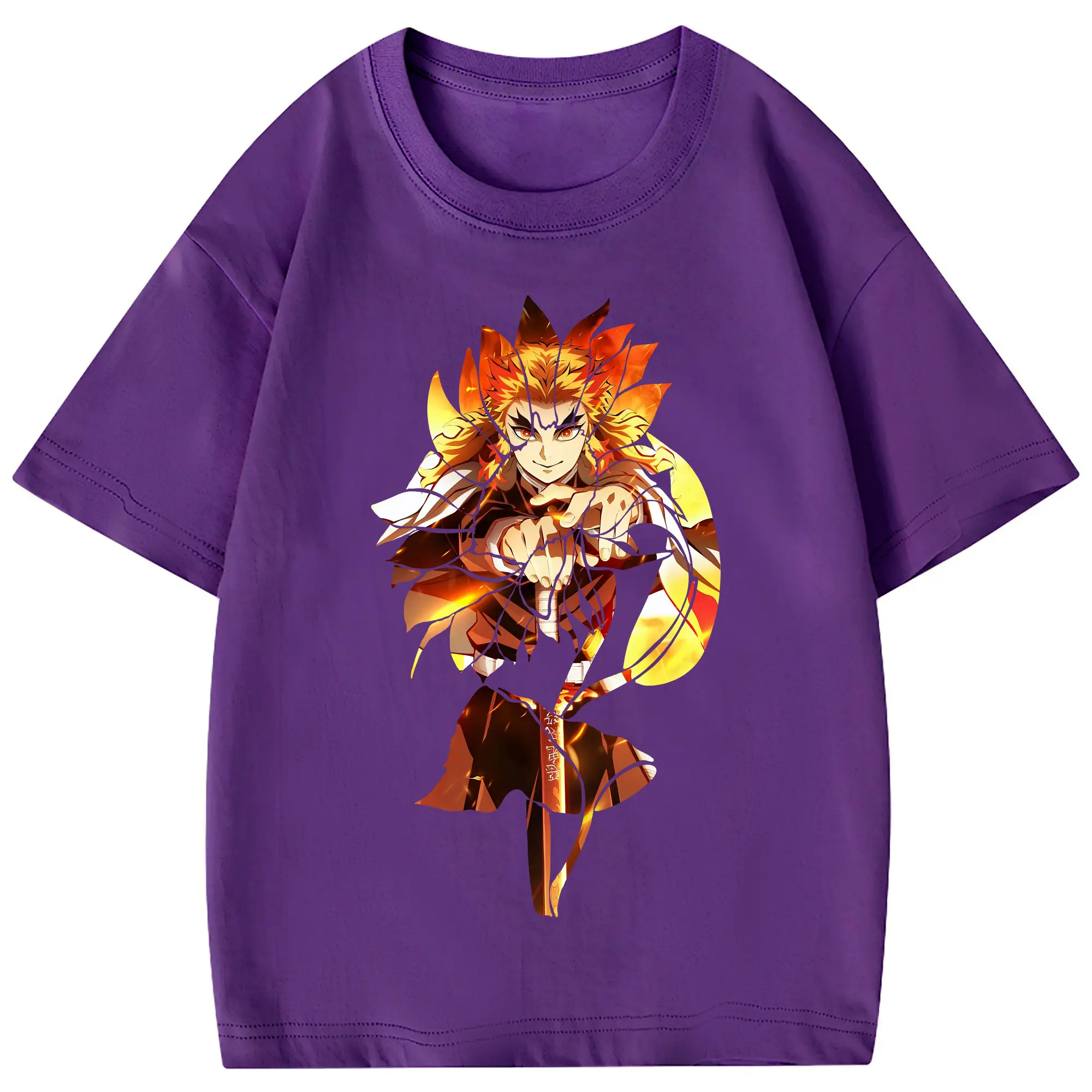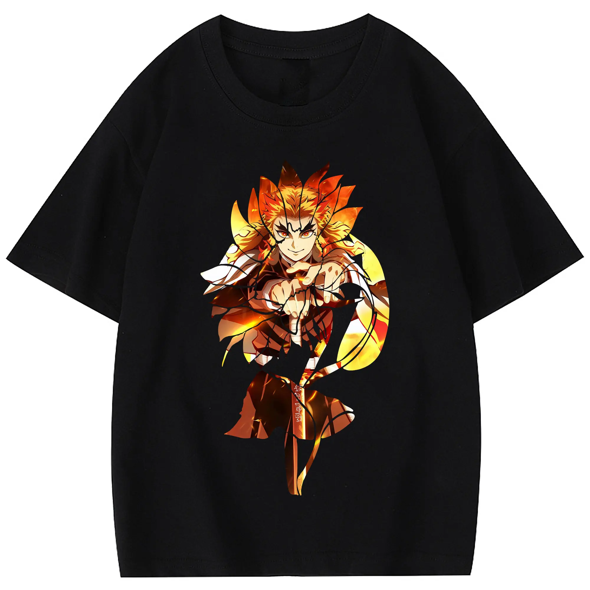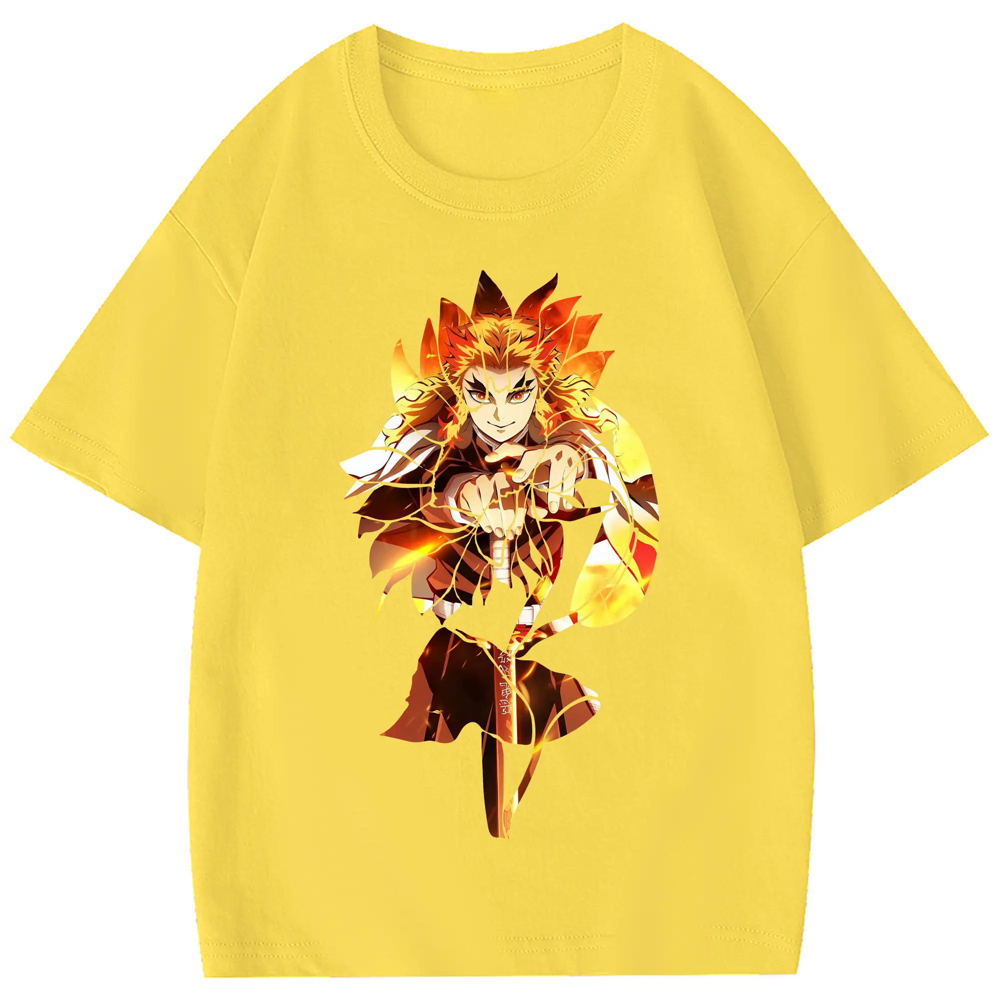 鬼滅の刃 グッズ,煉獄 杏寿郎 - 綿100% 半袖Tシャツ ・ フロントプリント ・ 快適 通気性 ・ 日常使い 散歩 スポーツ用