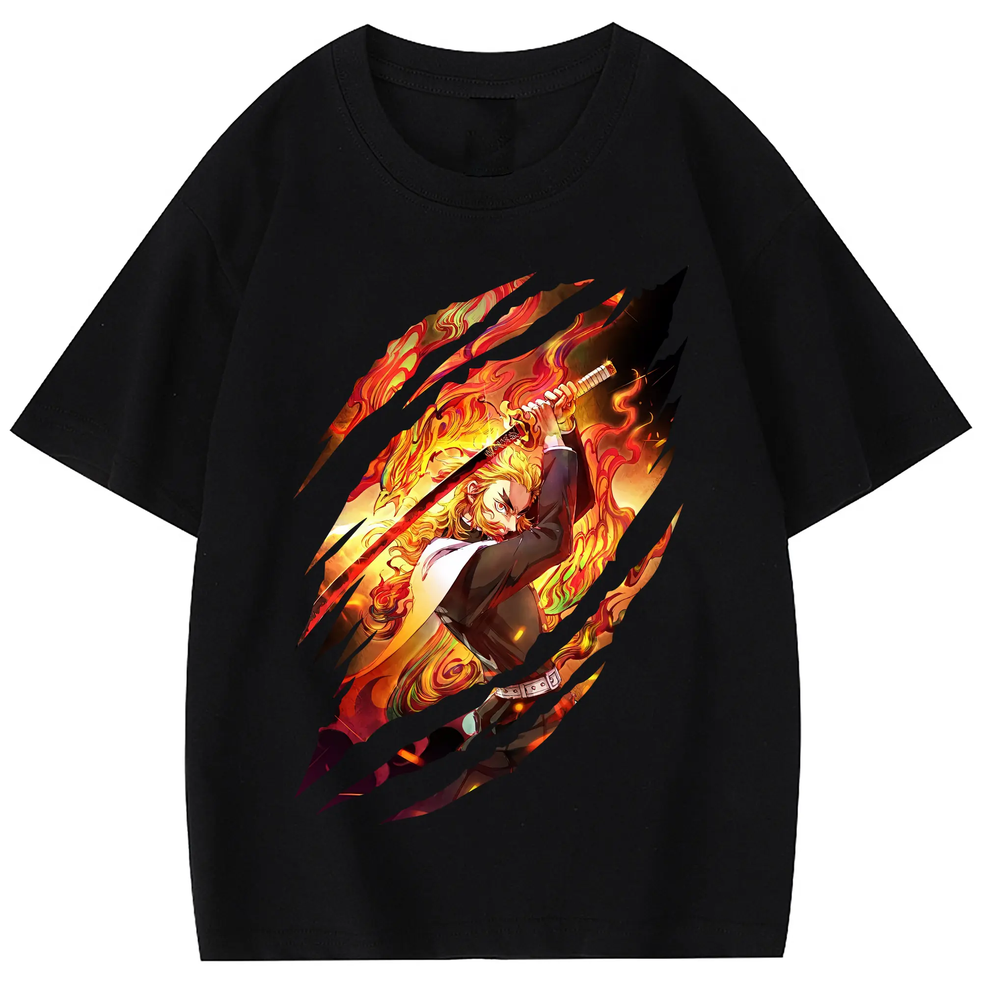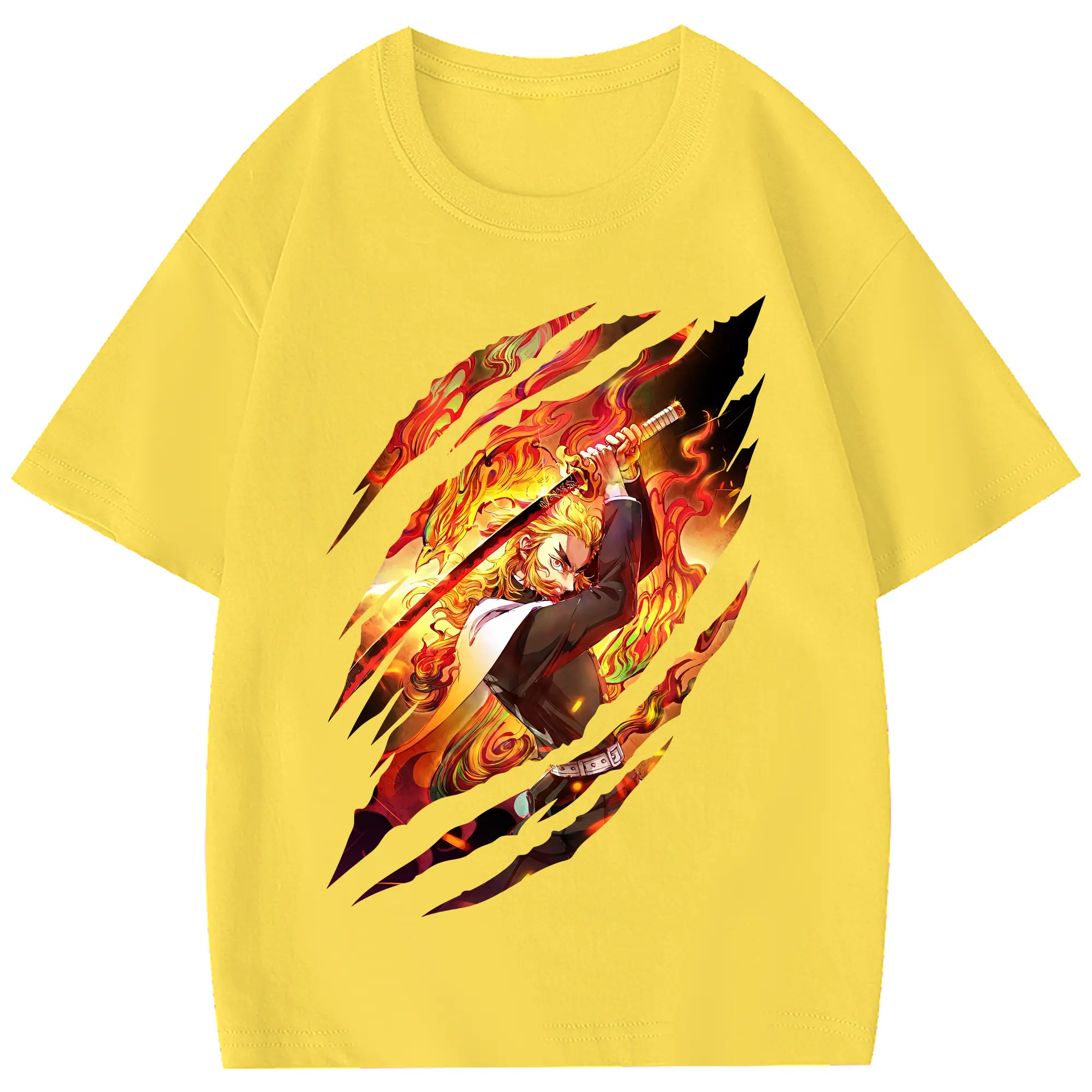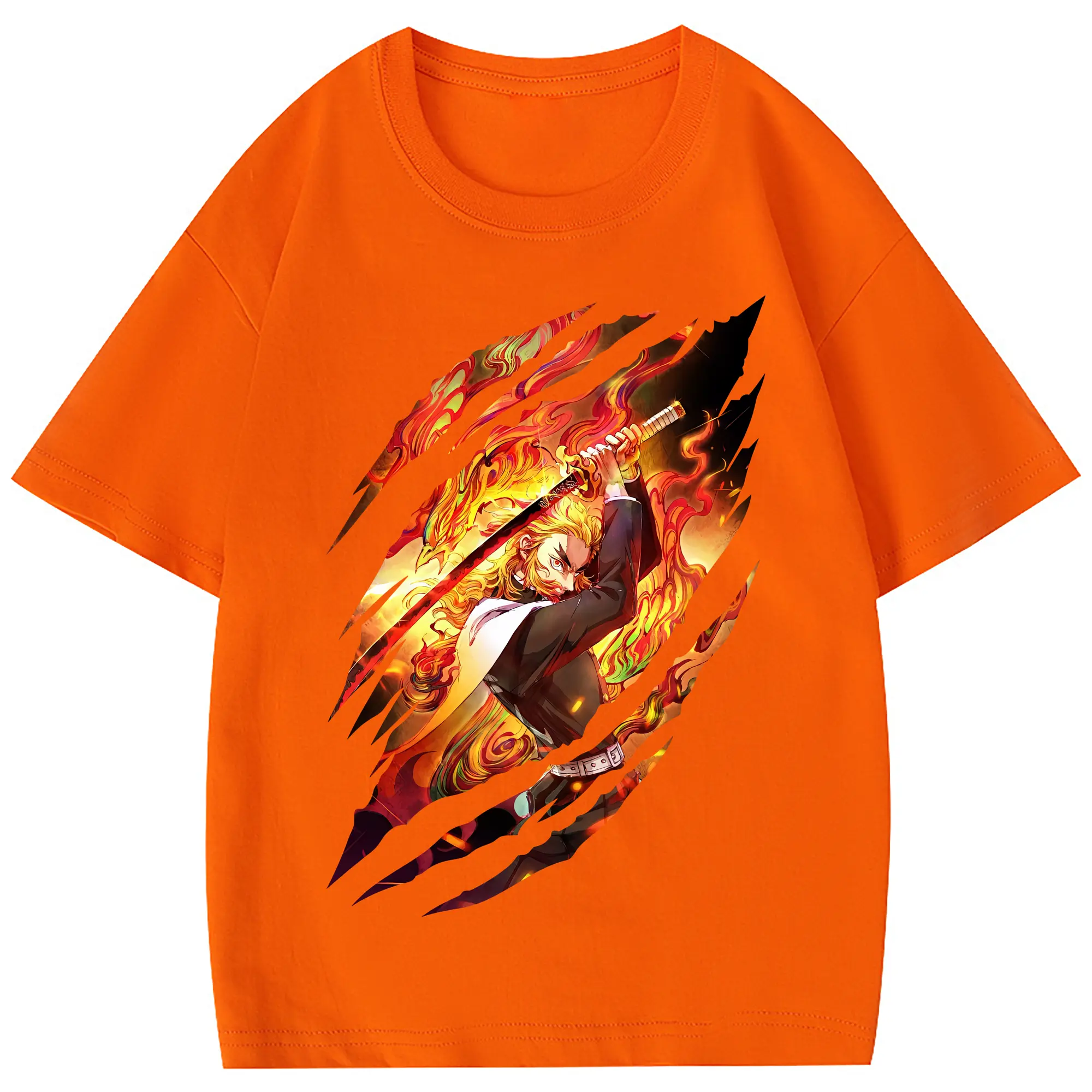 鬼滅の刃 グッズ,煉獄 杏寿郎 - 綿100% 半袖Tシャツ ・ フロントプリント ・ 快適 通気性 ・ 日常使い 散歩 スポーツ用