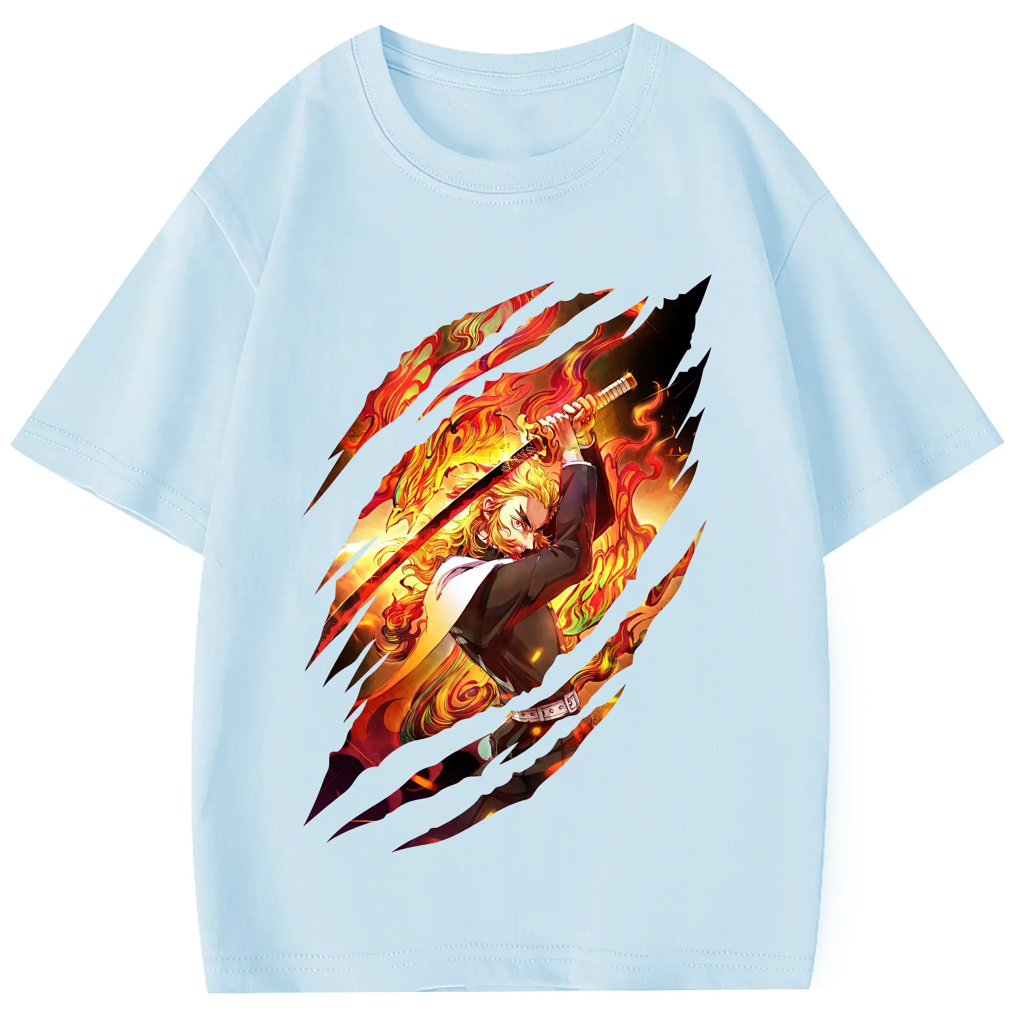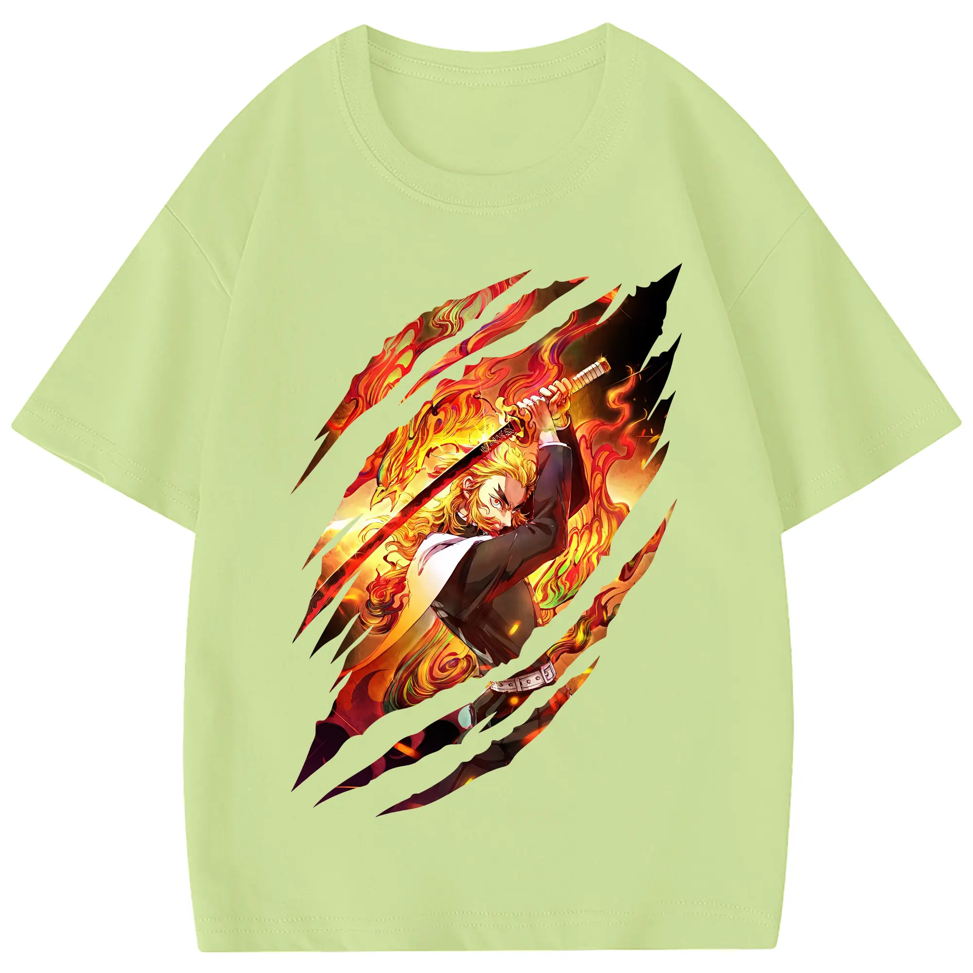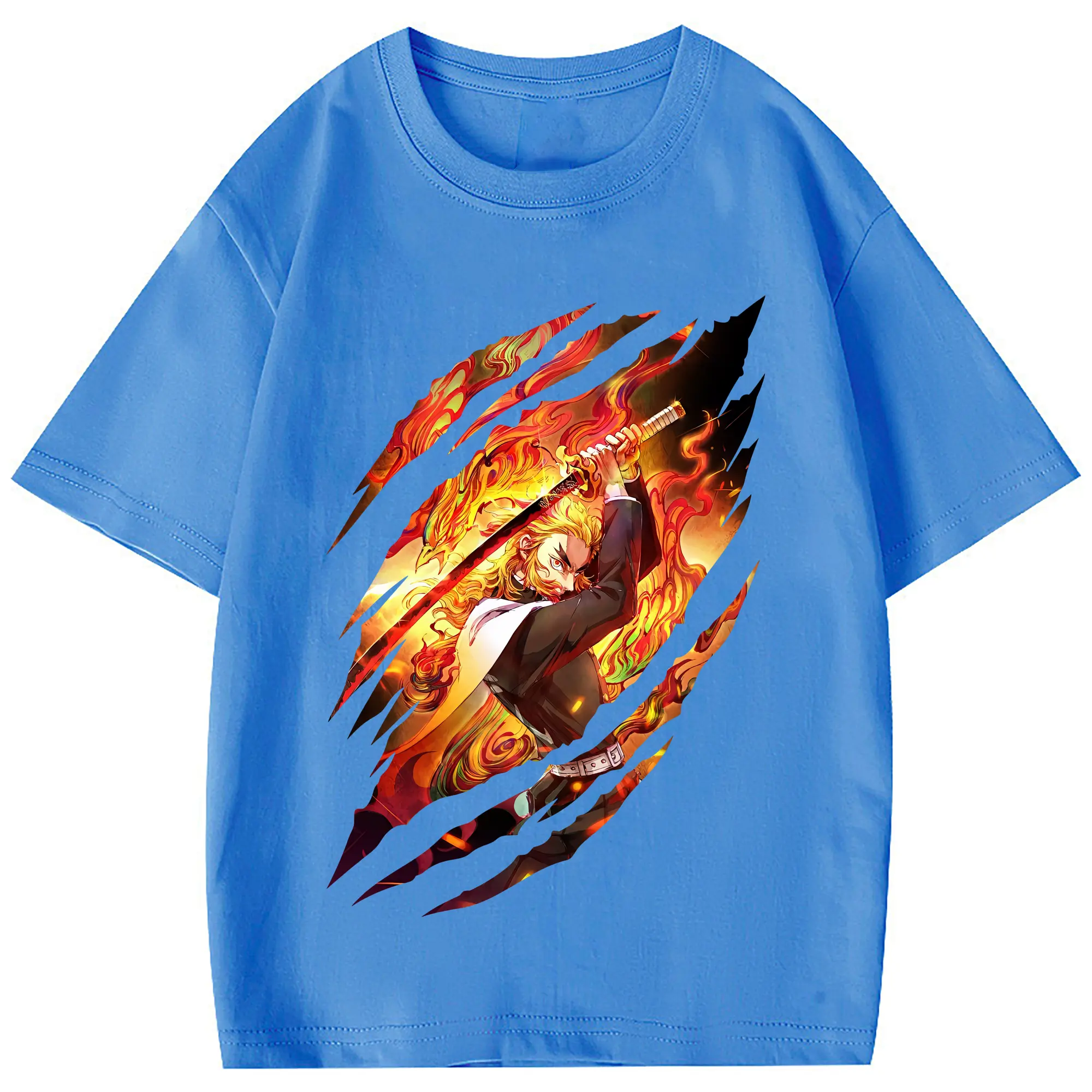 鬼滅の刃 グッズ,煉獄 杏寿郎 - 綿100% 半袖Tシャツ ・ フロントプリント ・ 快適 通気性 ・ 日常使い 散歩 スポーツ用