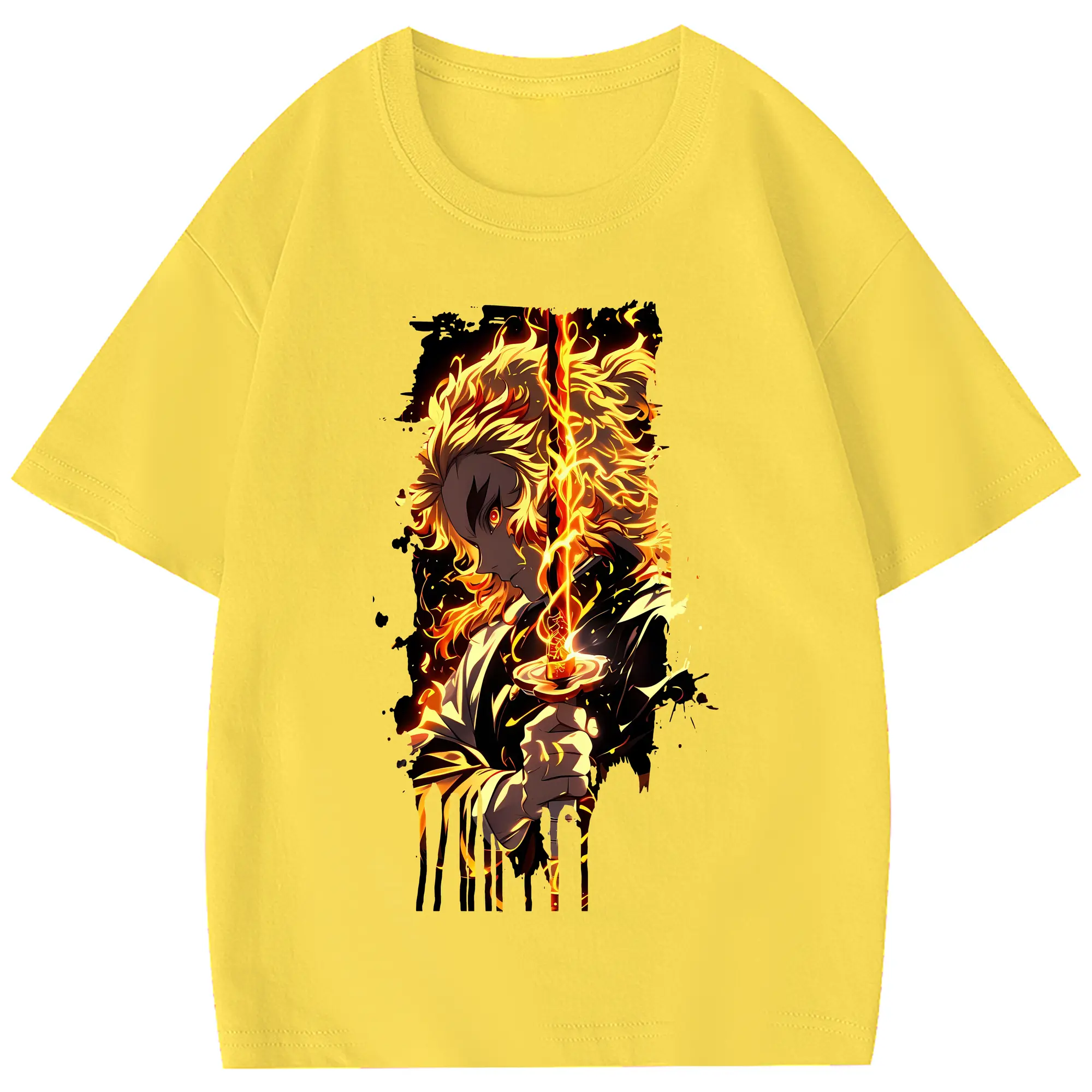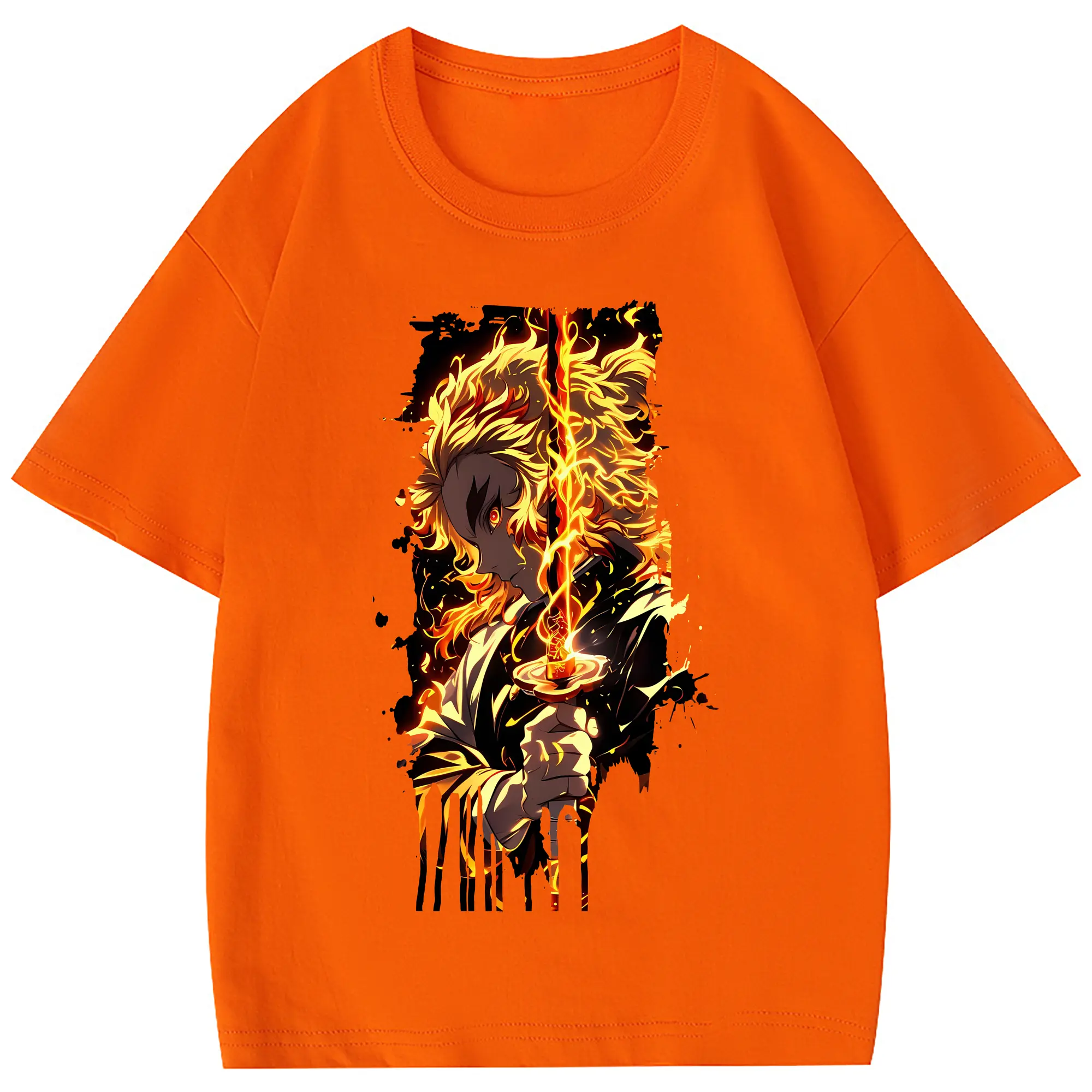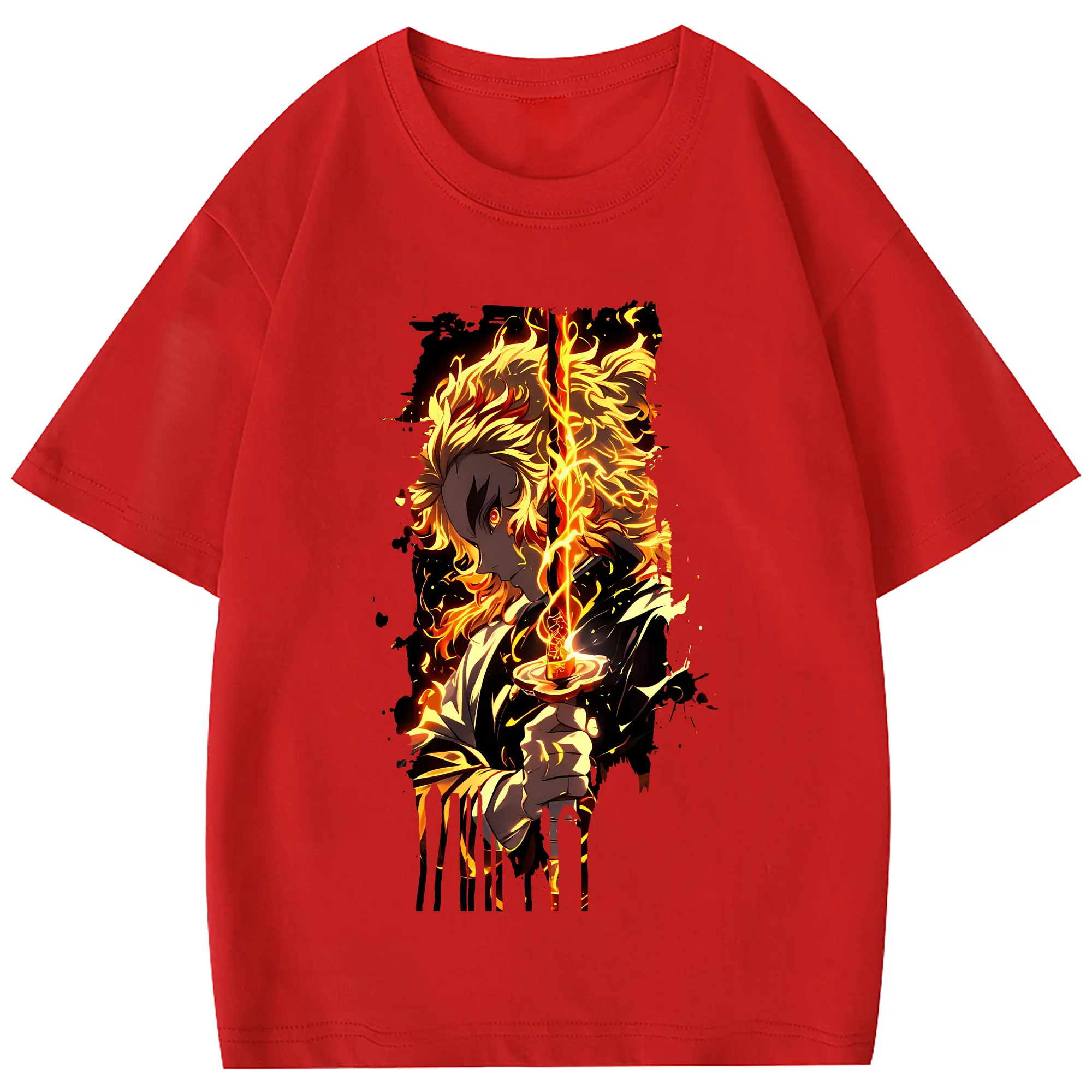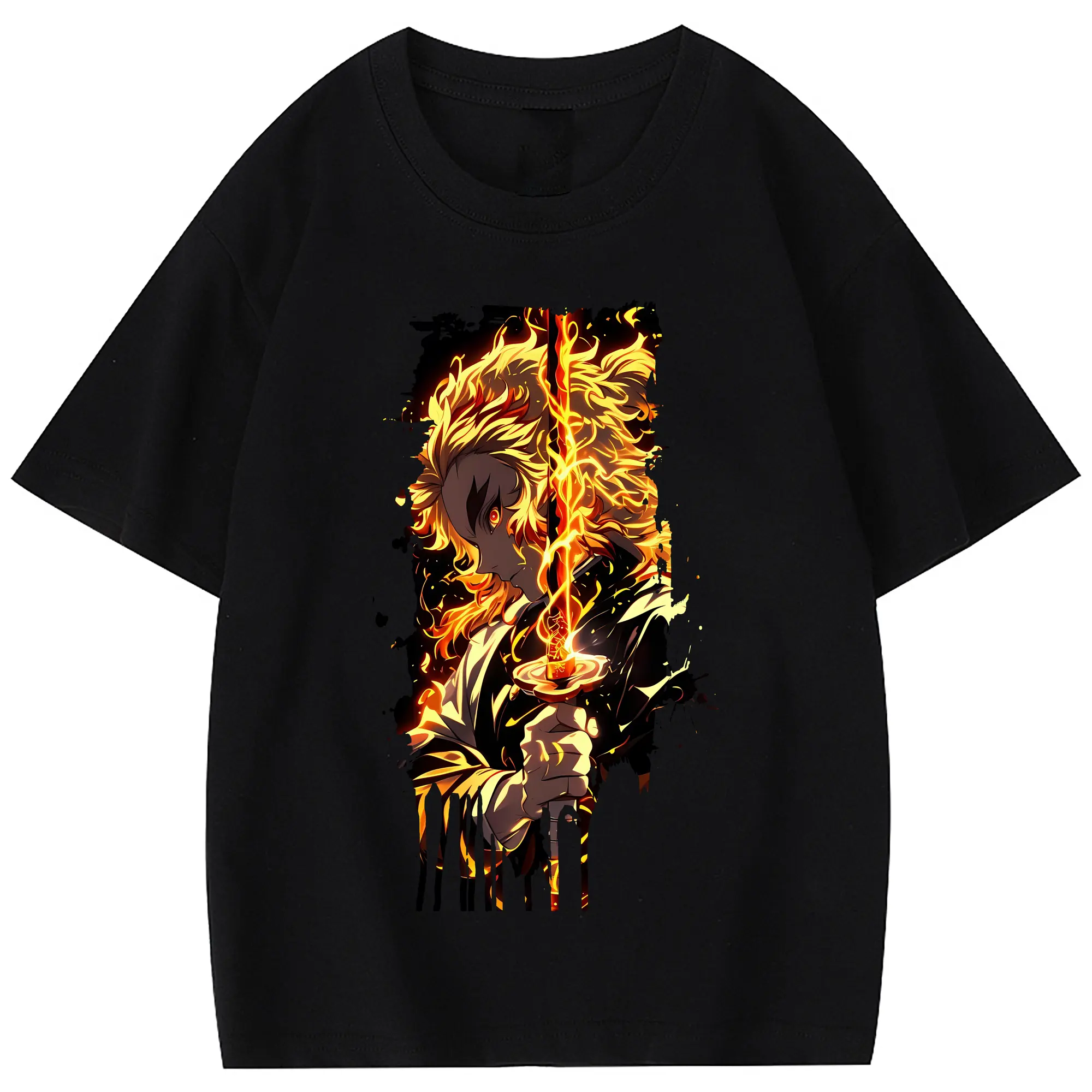 鬼滅の刃 グッズ,煉獄 杏寿郎 - 綿100% 半袖Tシャツ ・ フロントプリント ・ 快適 通気性 ・ 日常使い 散歩 スポーツ用