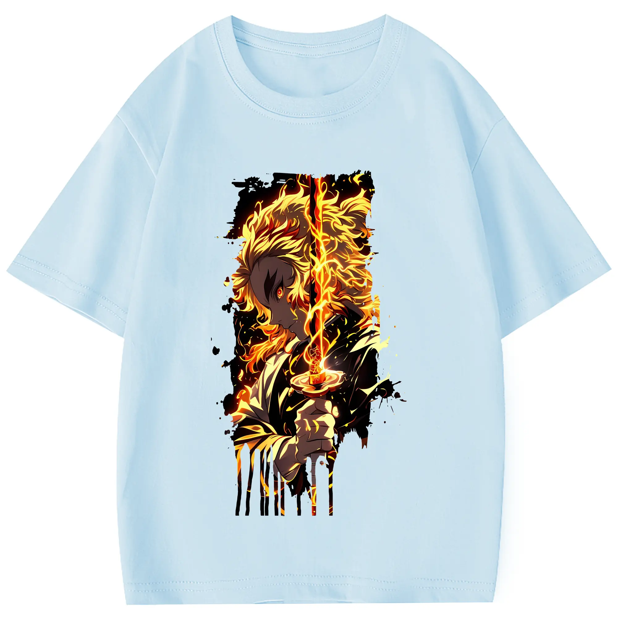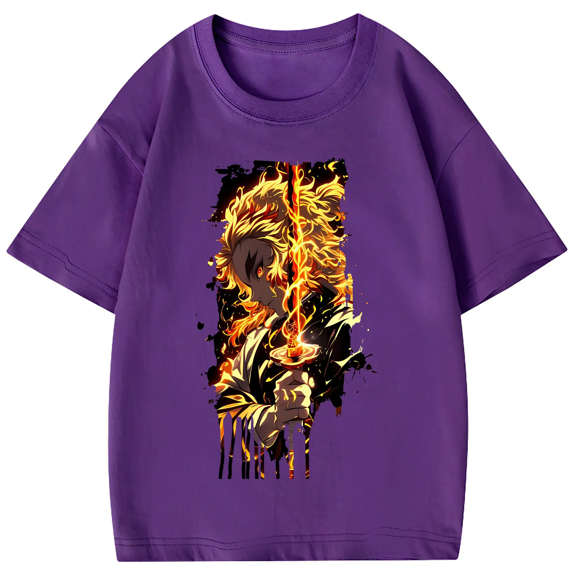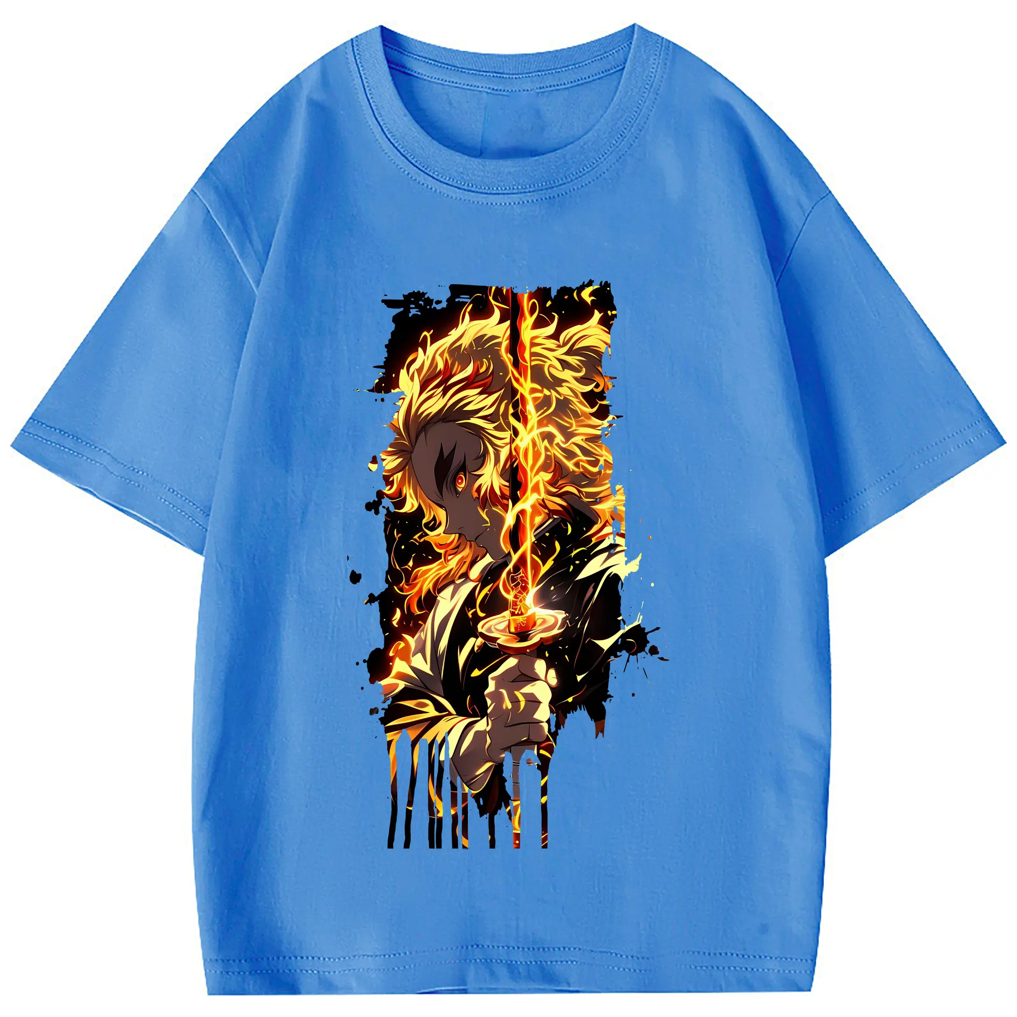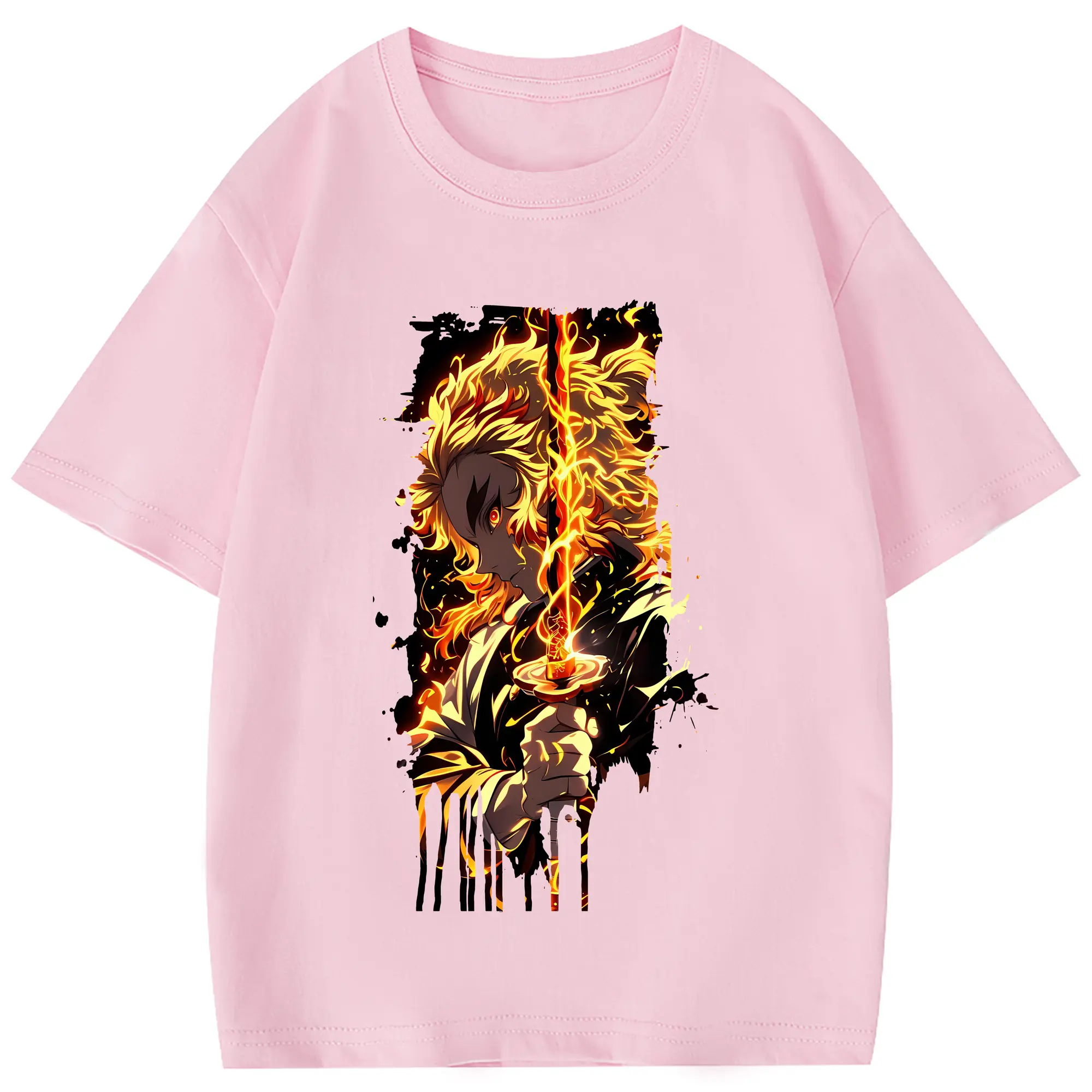 鬼滅の刃 グッズ,煉獄 杏寿郎 - 綿100% 半袖Tシャツ ・ フロントプリント ・ 快適 通気性 ・ 日常使い 散歩 スポーツ用