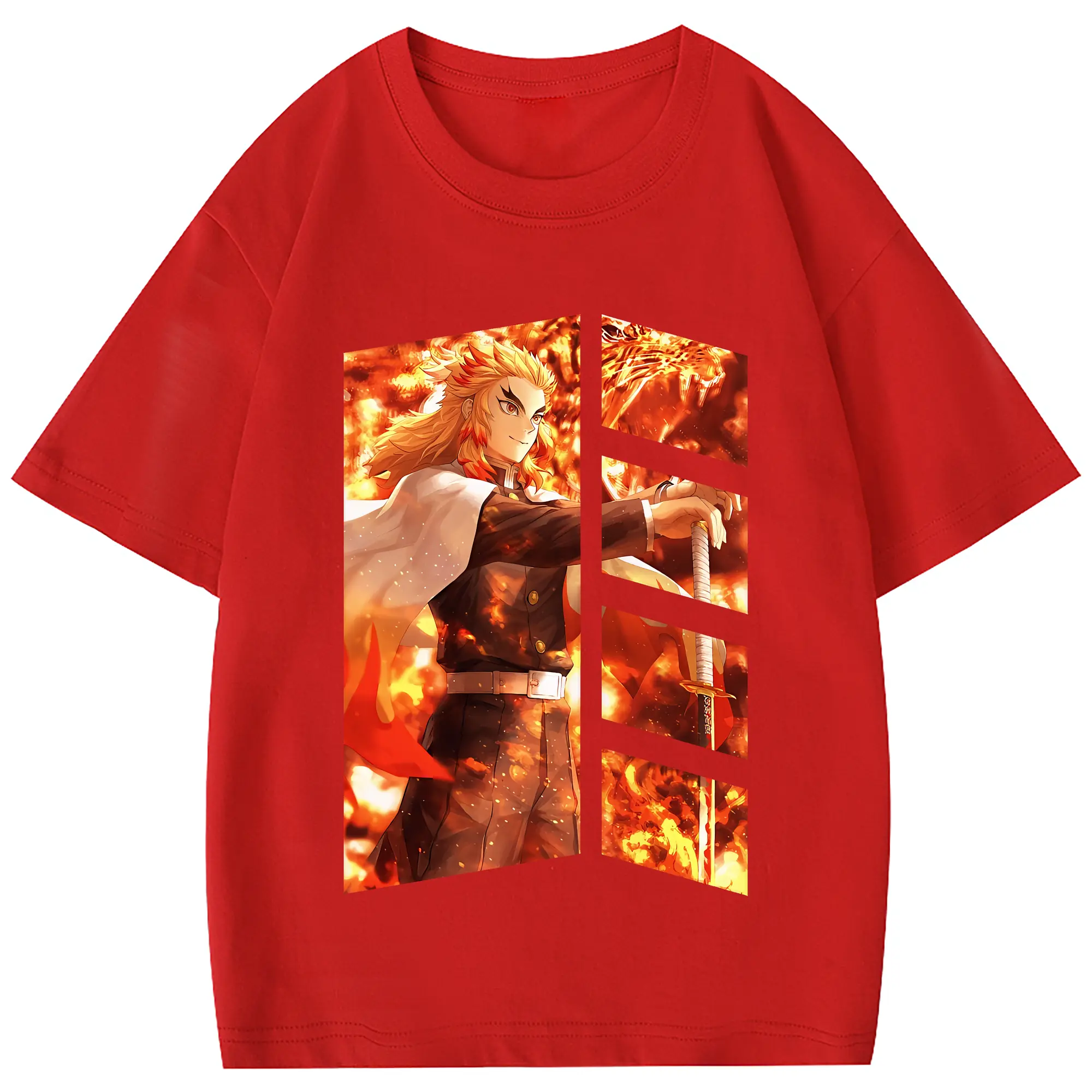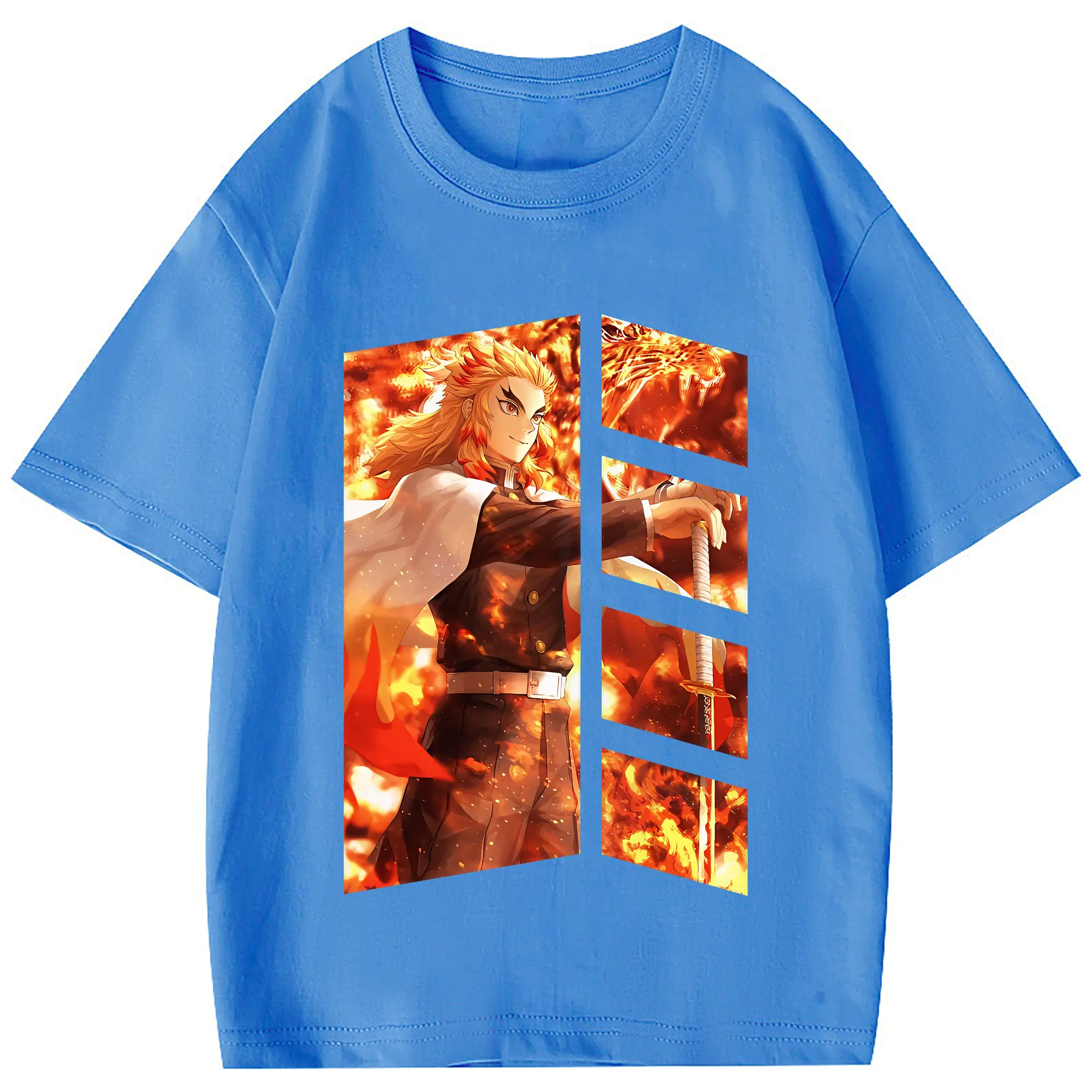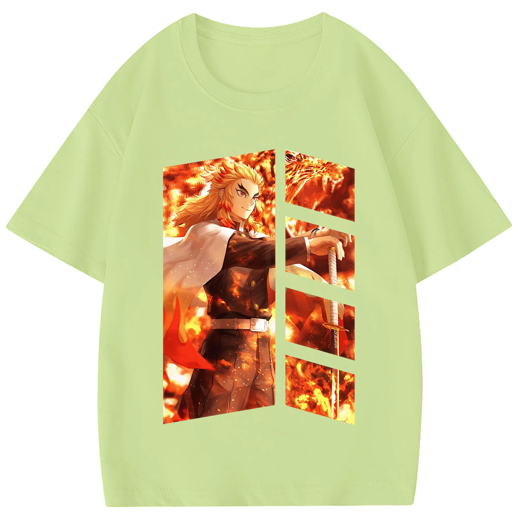 鬼滅の刃 グッズ,煉獄 杏寿郎 - 綿100% 半袖Tシャツ ・ フロントプリント ・ 快適 通気性 ・ 日常使い 散歩 スポーツ用